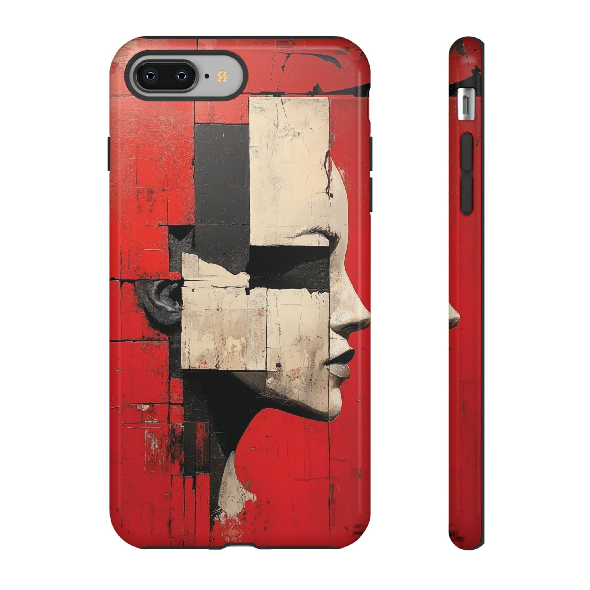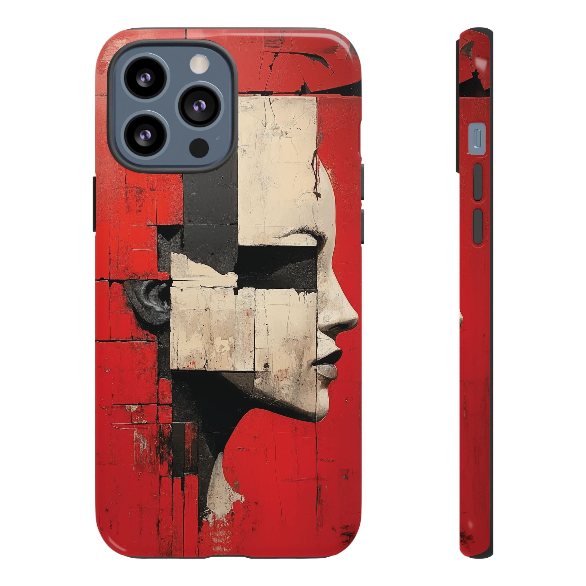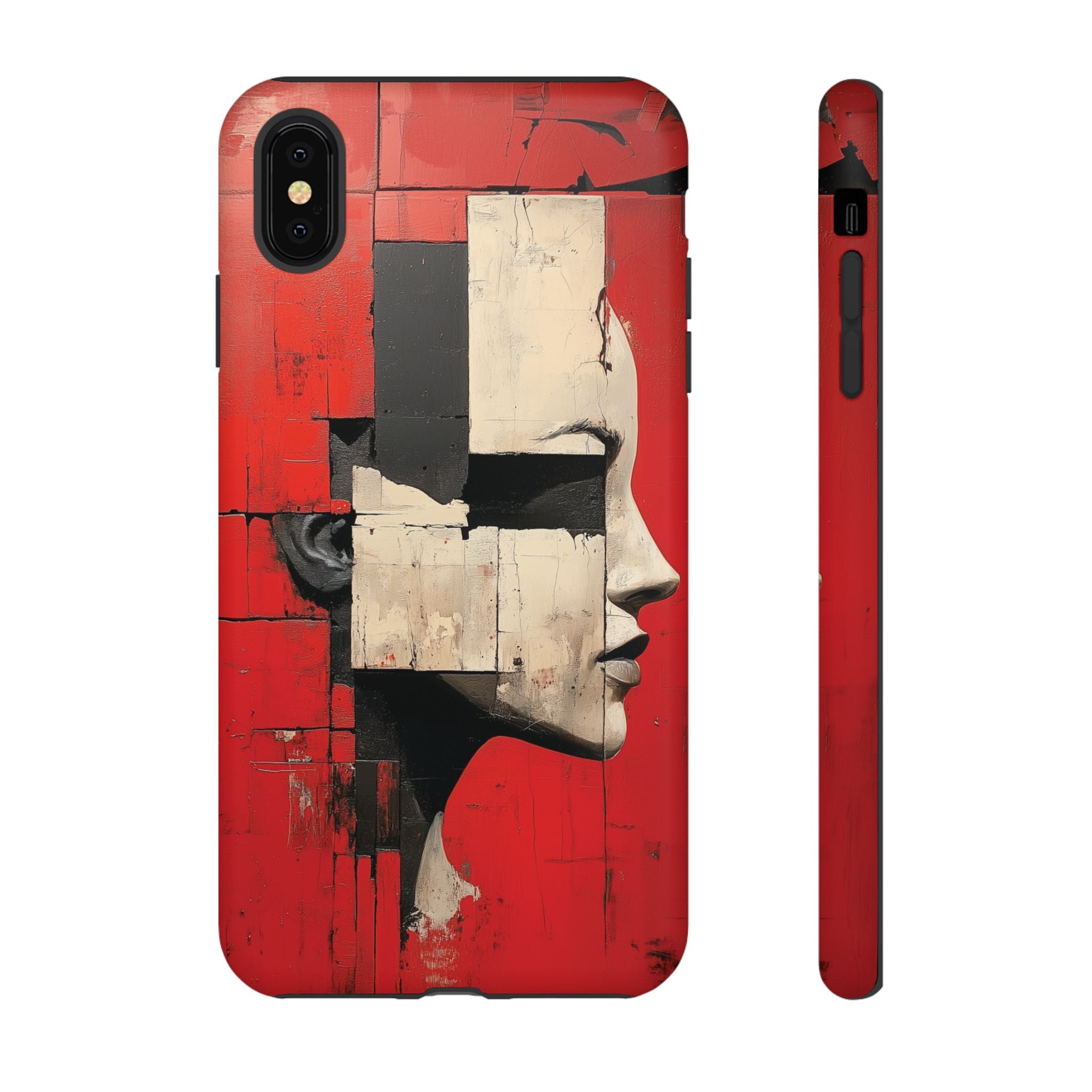 An arresting study in crimson and contrast — a fragmented, abstract face rendered in bold blocks that turns your device... Read more