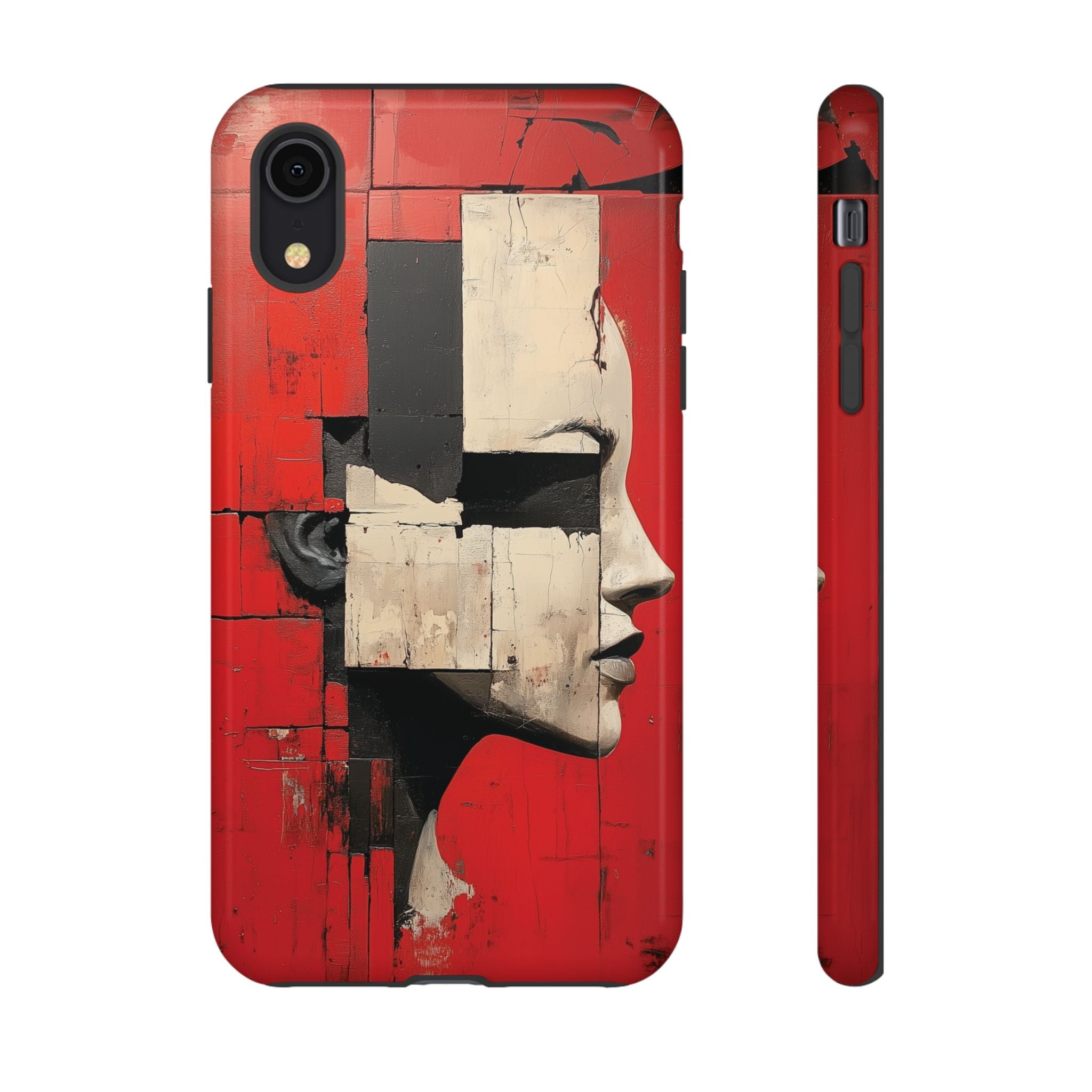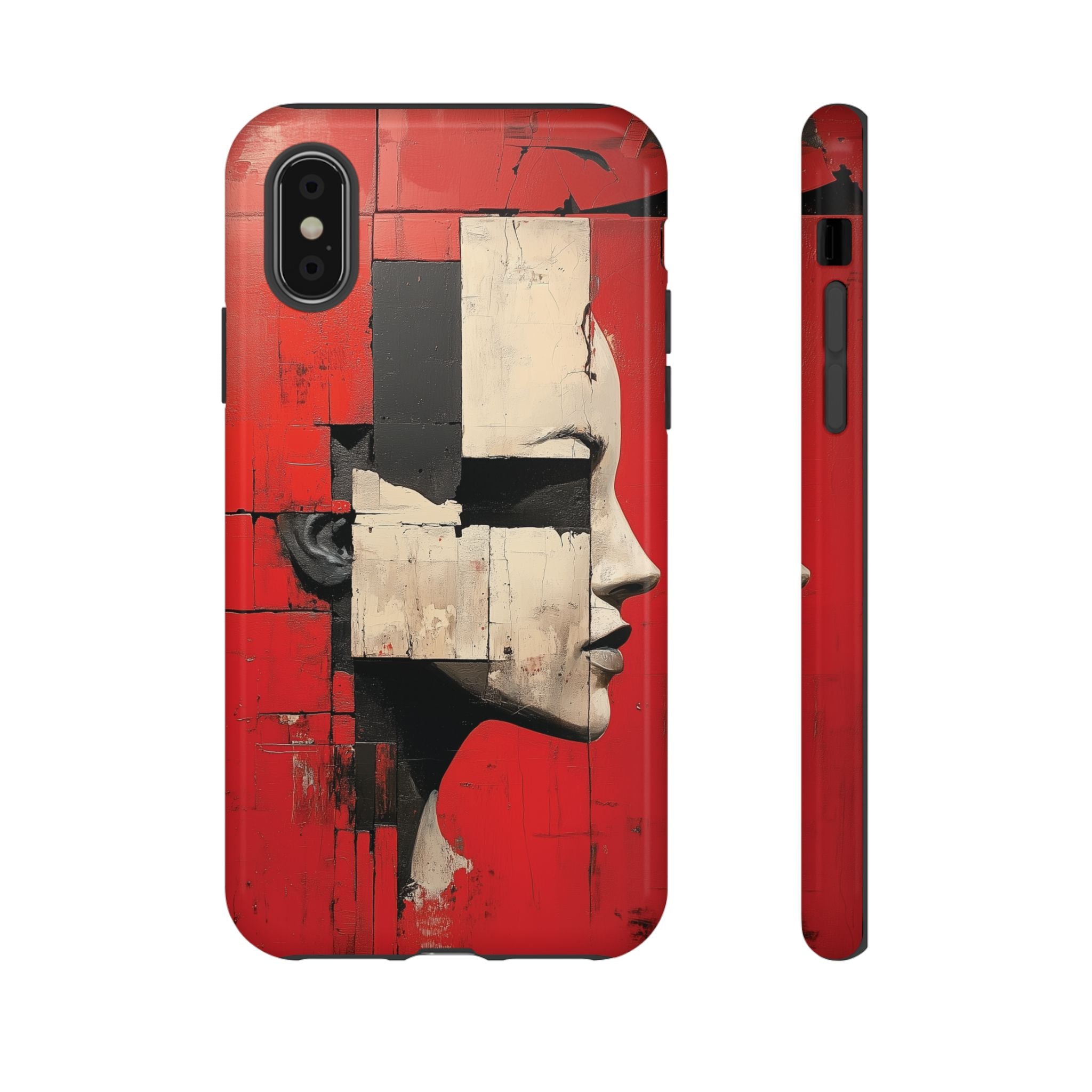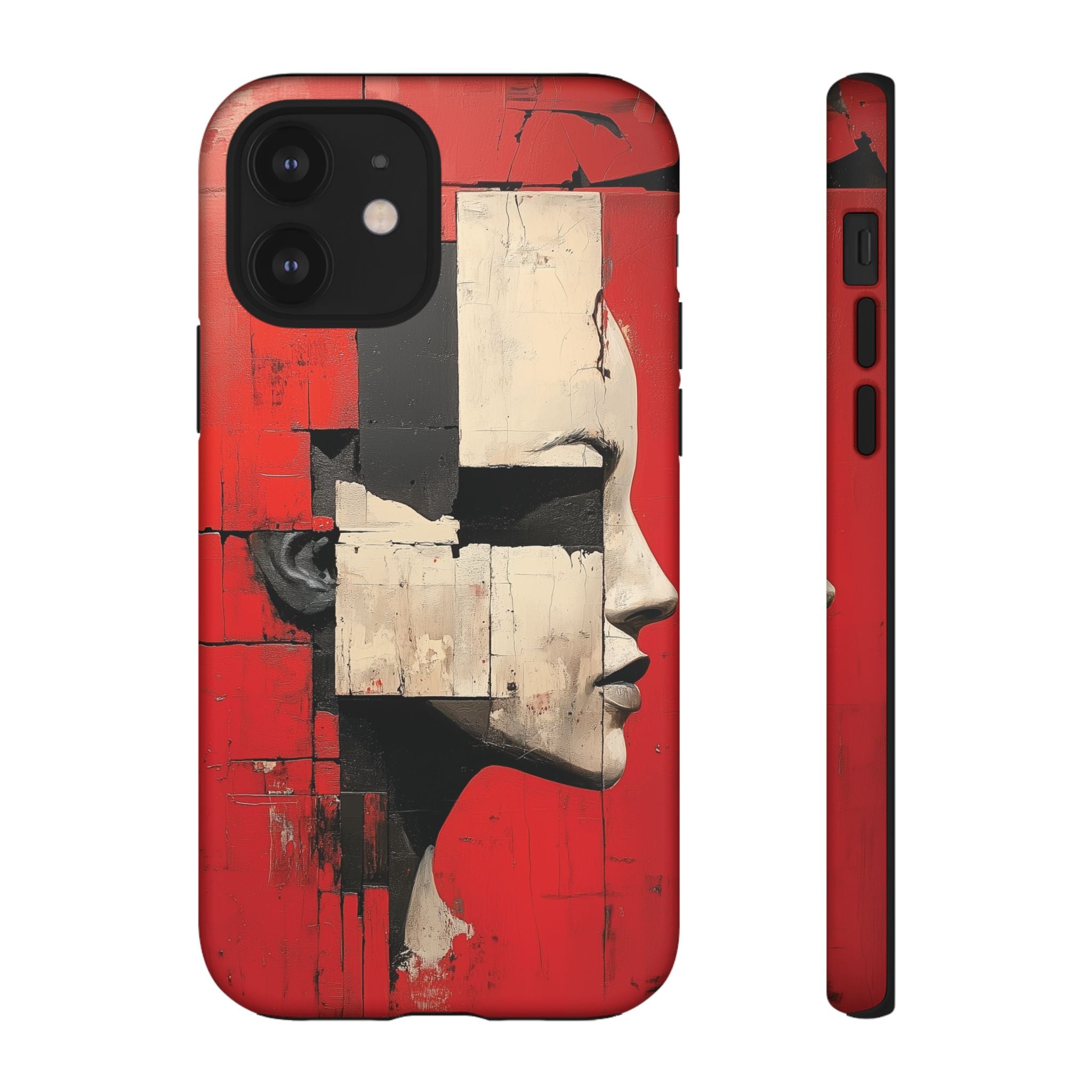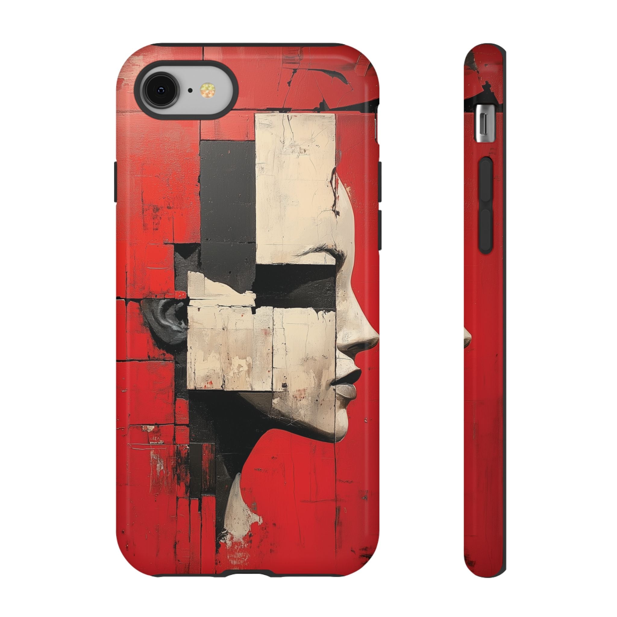 An arresting study in crimson and contrast — a fragmented, abstract face rendered in bold blocks that turns your device... Read more