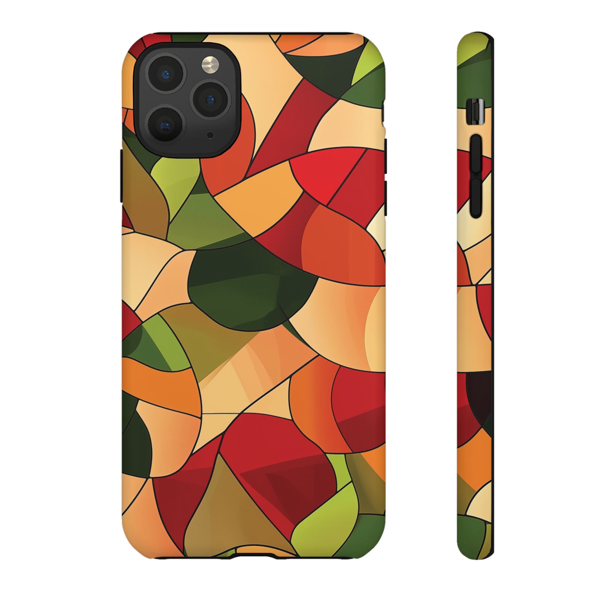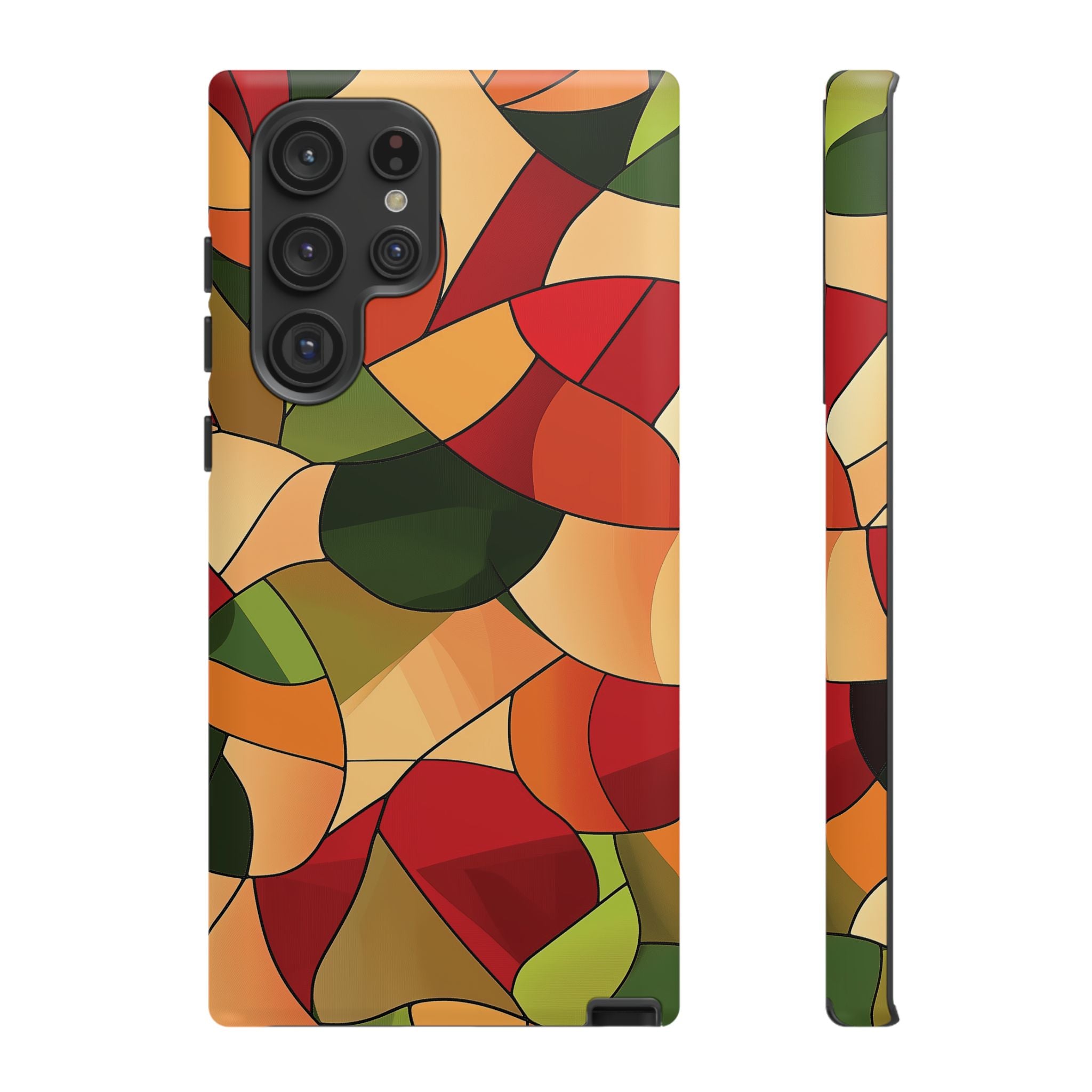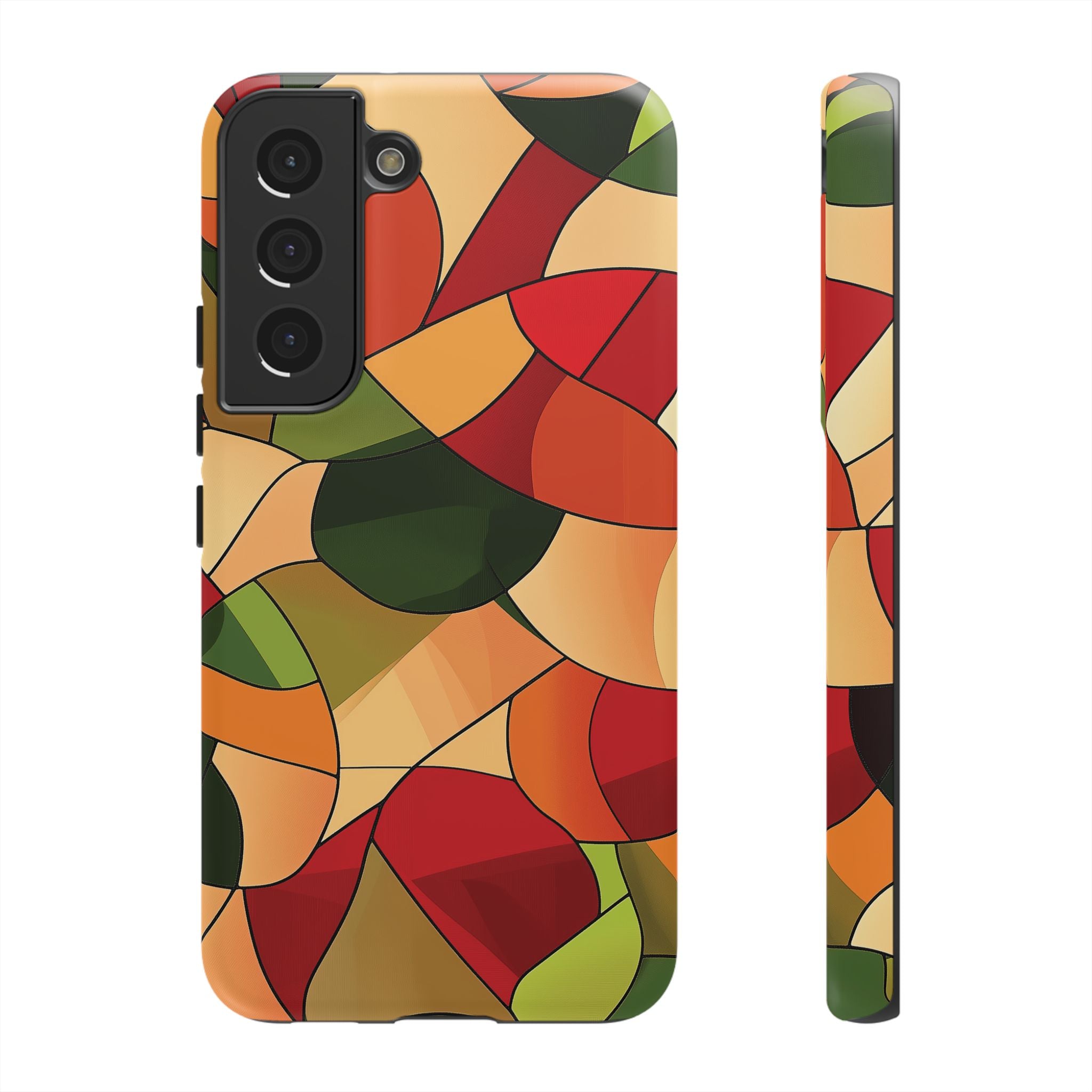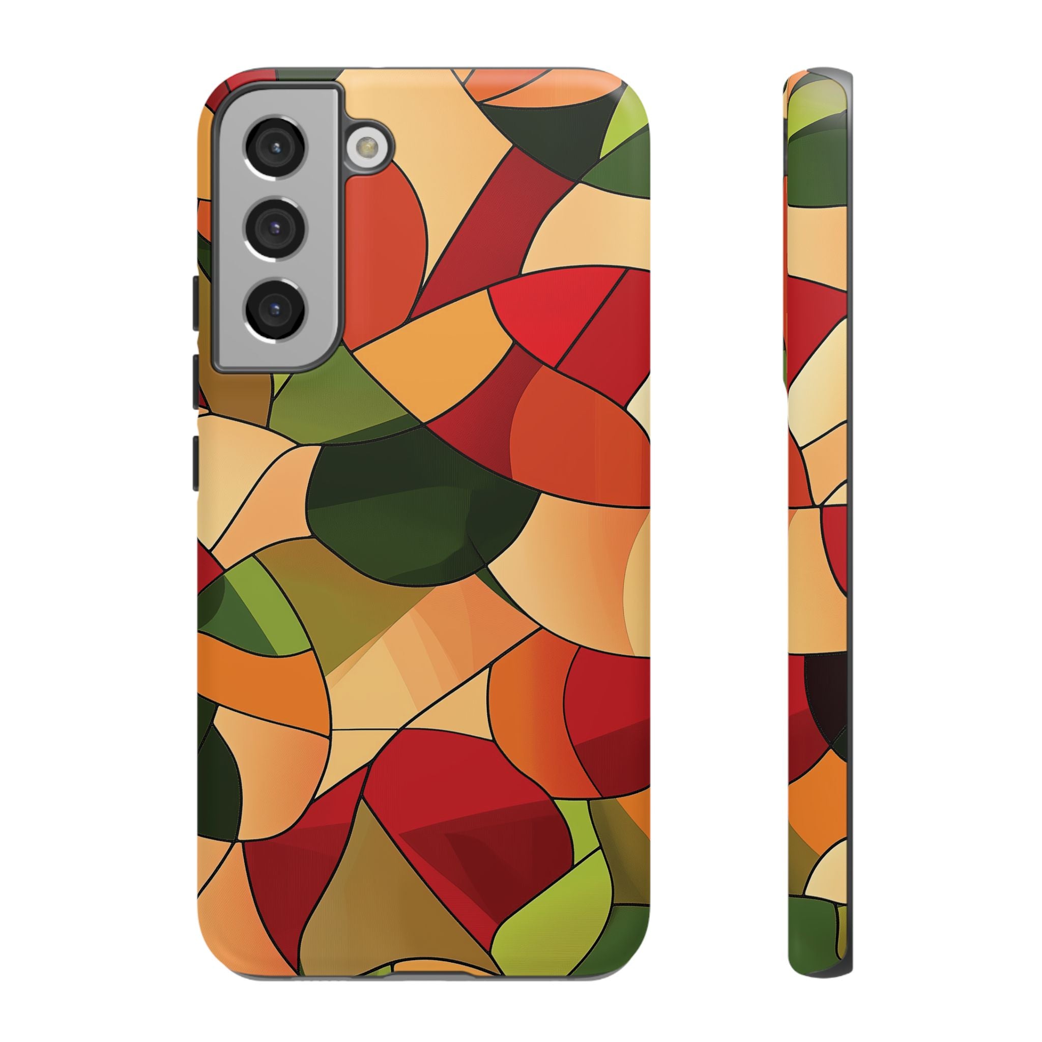 A warm, modern stained-glass mosaic that feels like a cozy autumn walk — rich reds, burnt oranges and olive greens... Read more