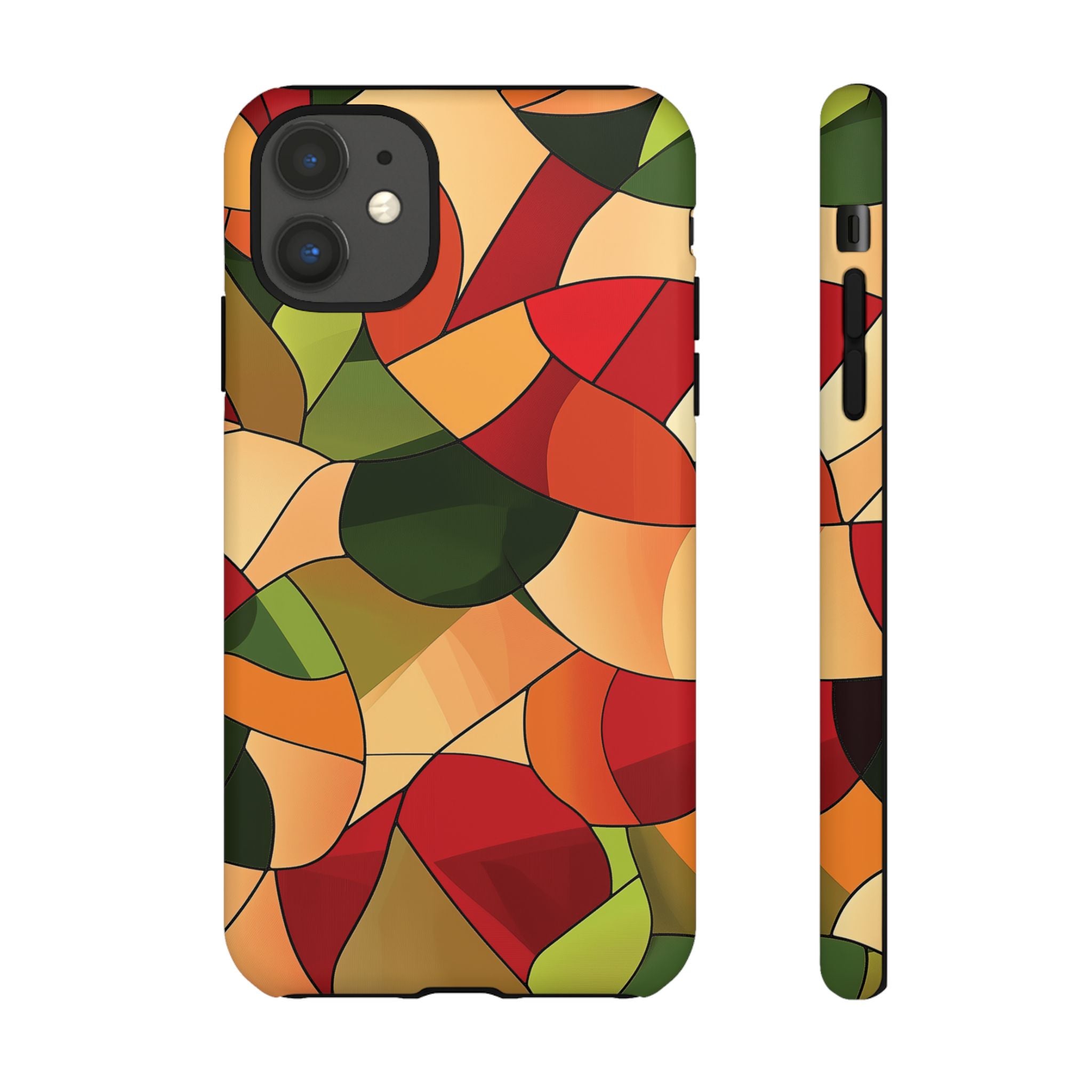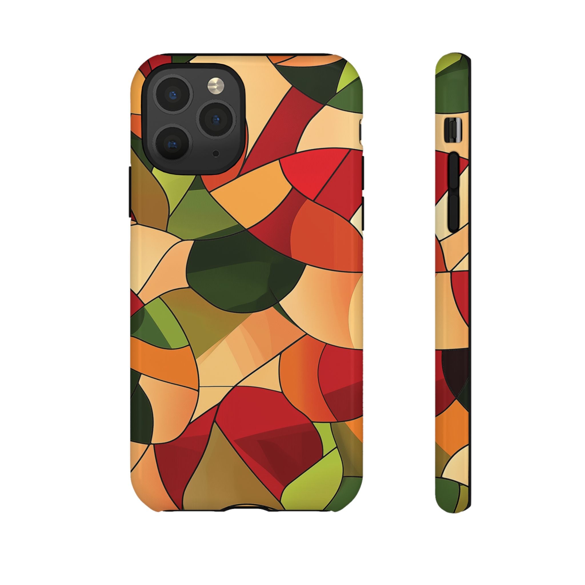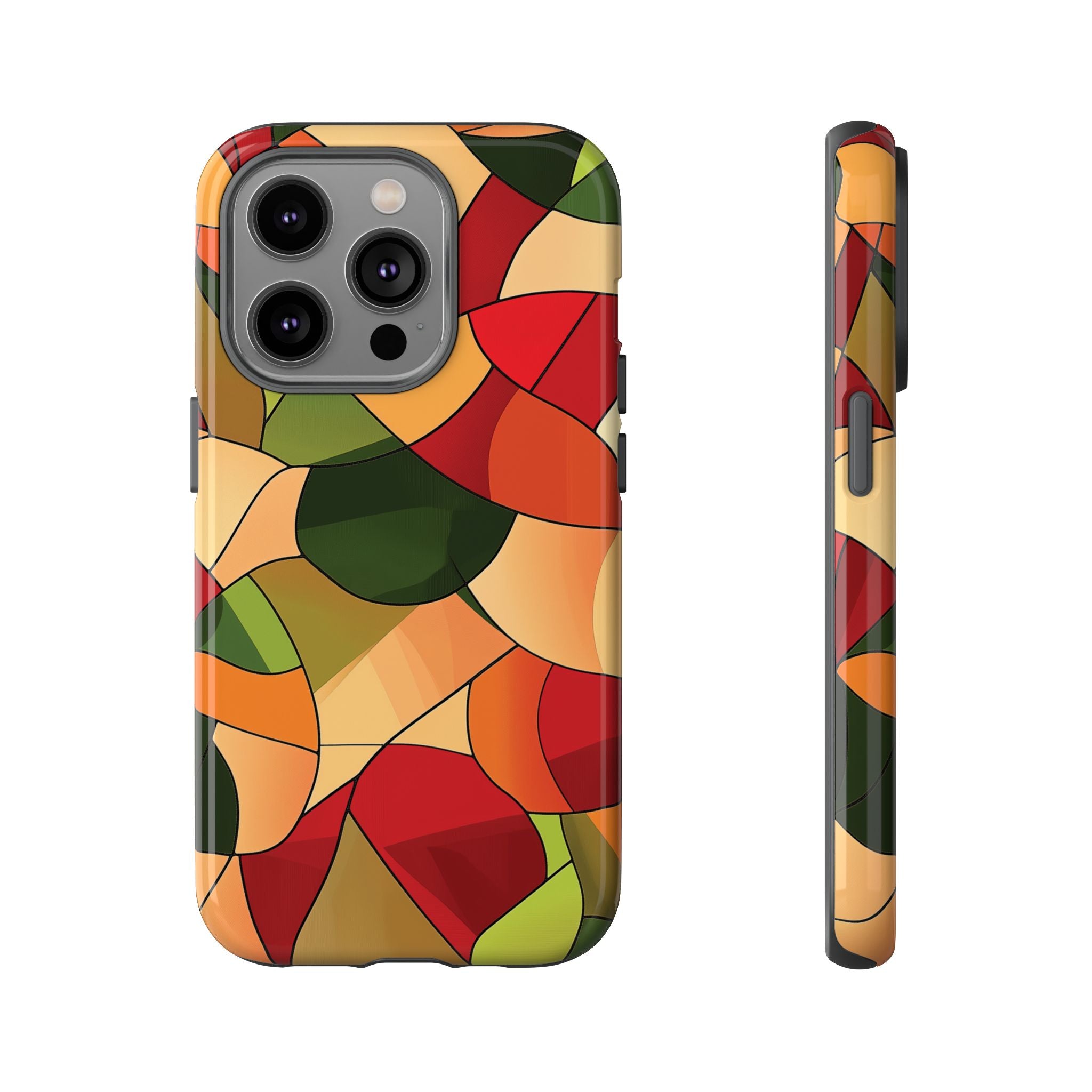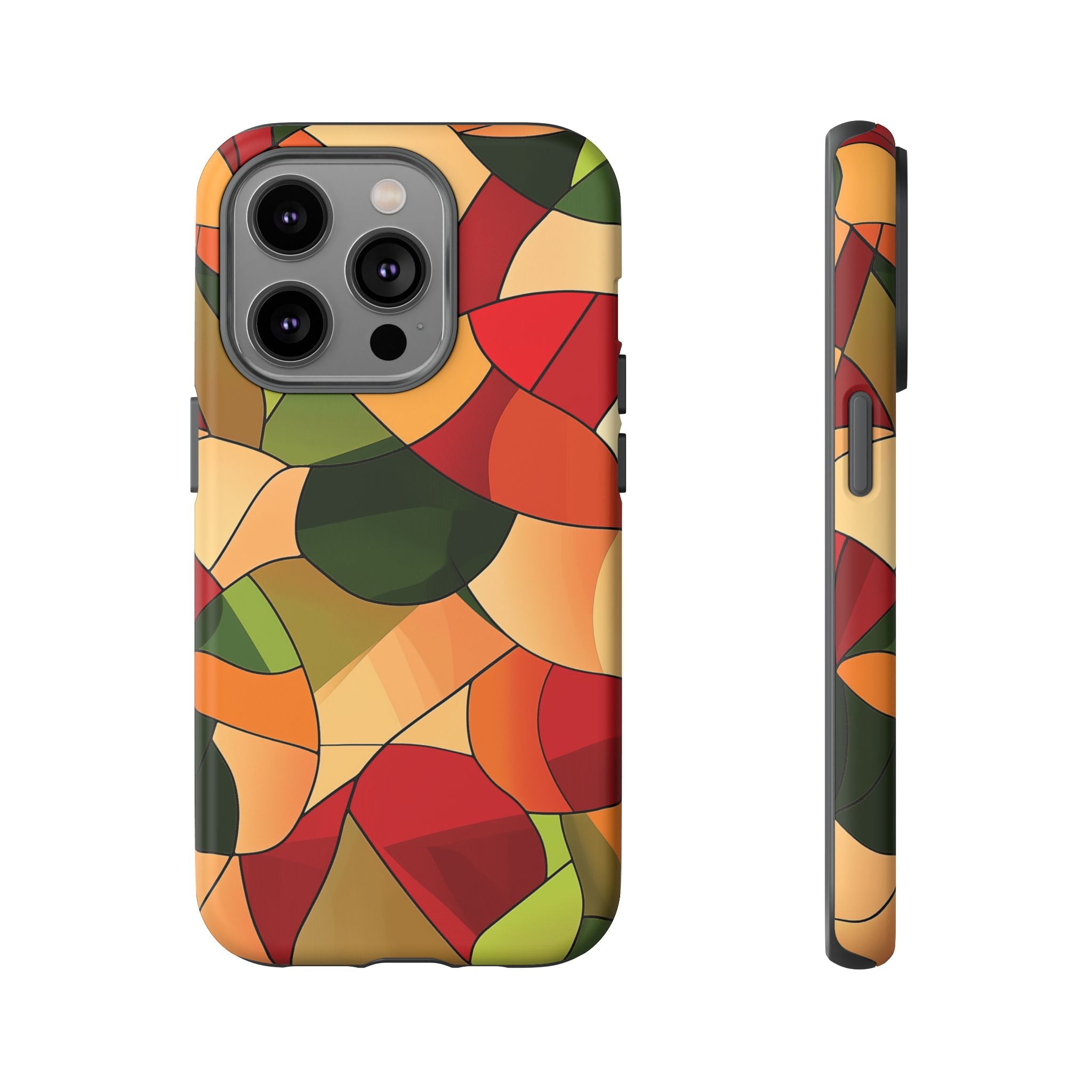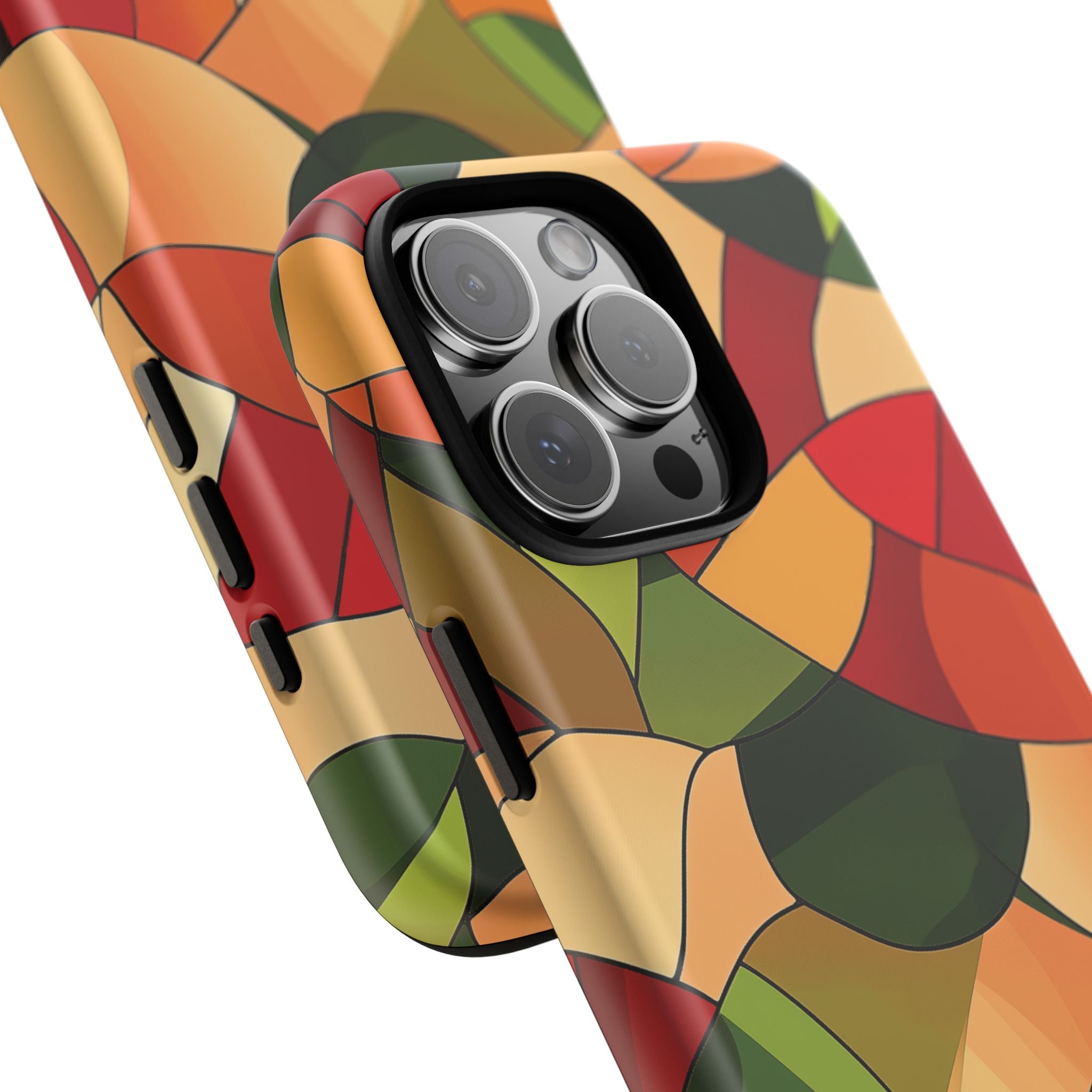 A warm, modern stained-glass mosaic that feels like a cozy autumn walk — rich reds, burnt oranges and olive greens... Read more