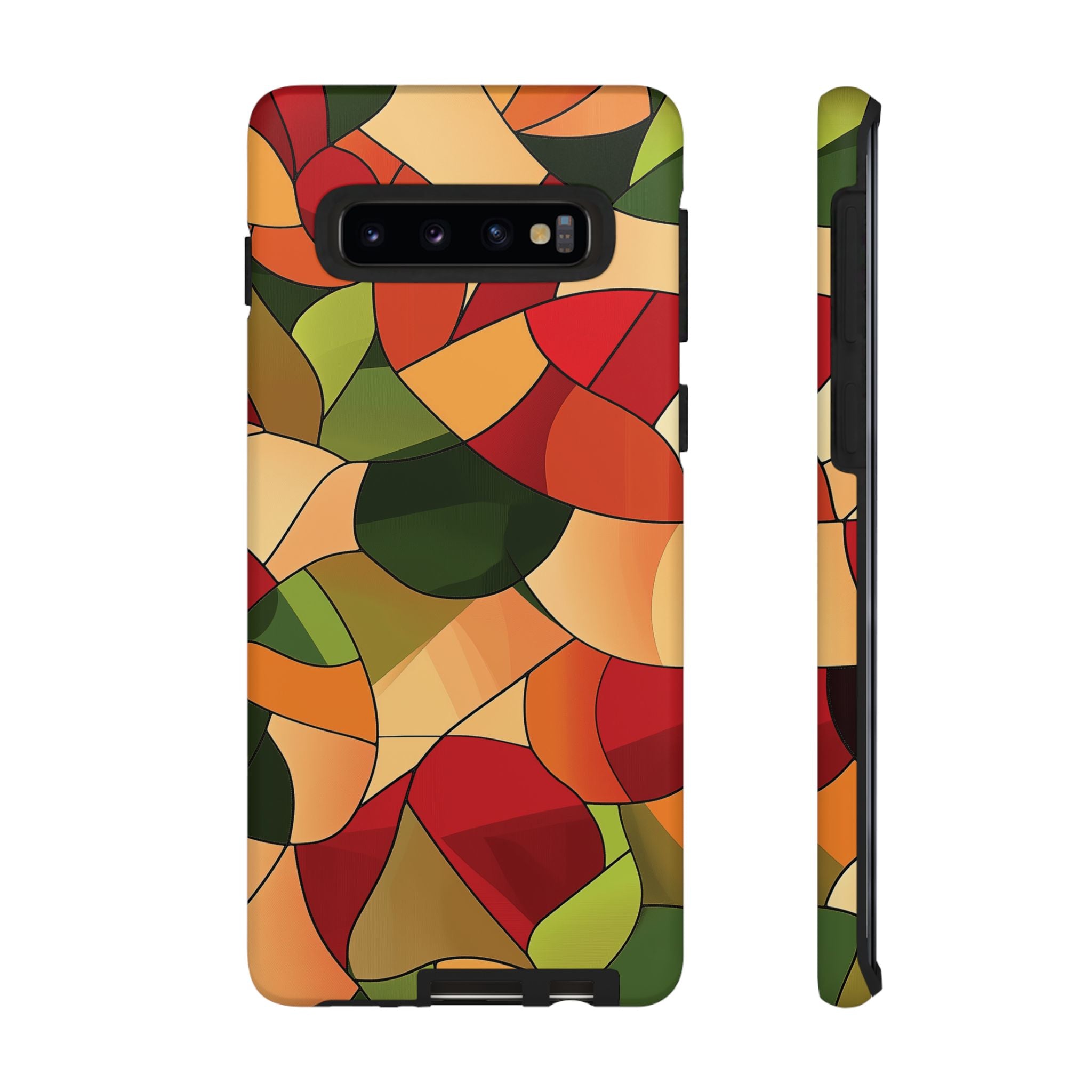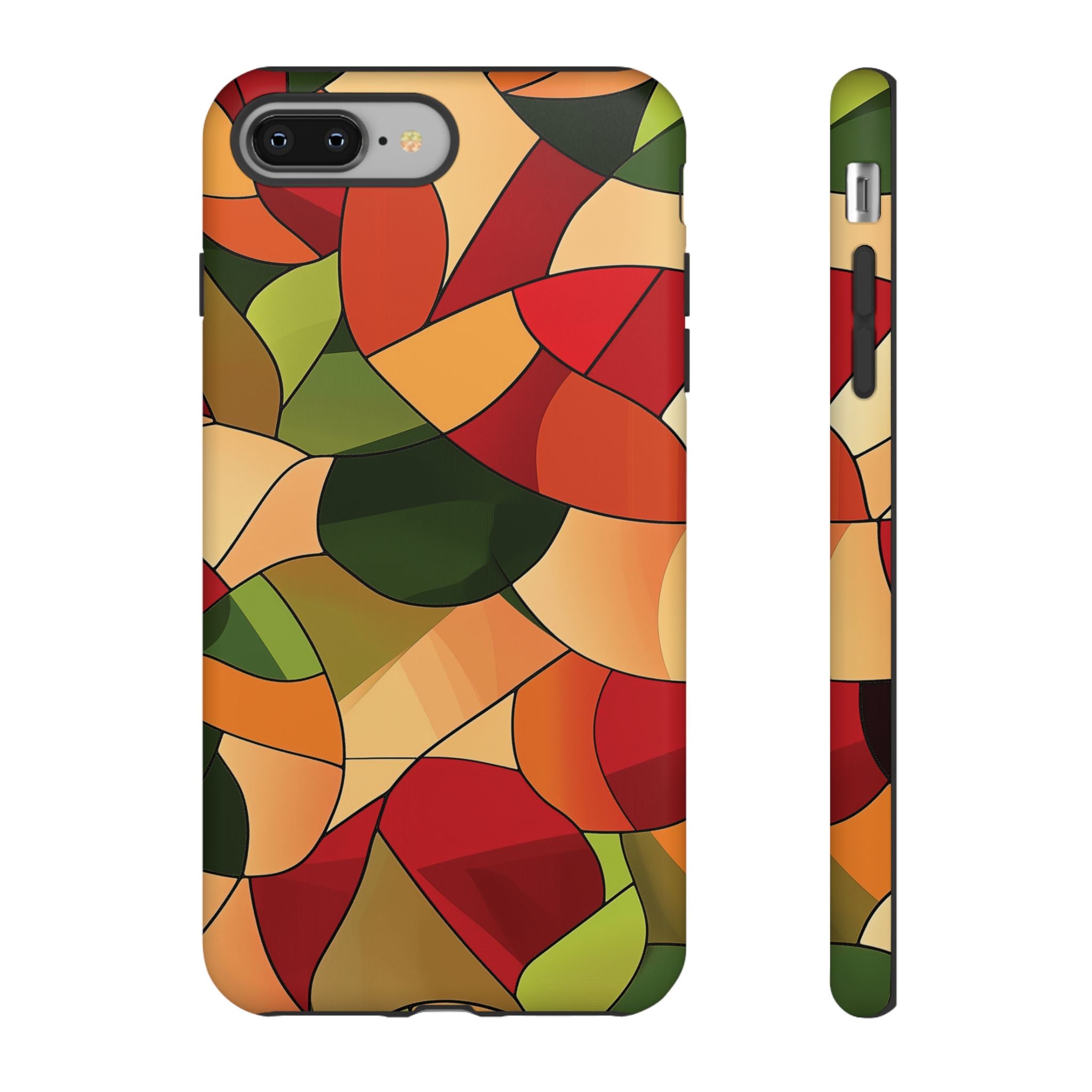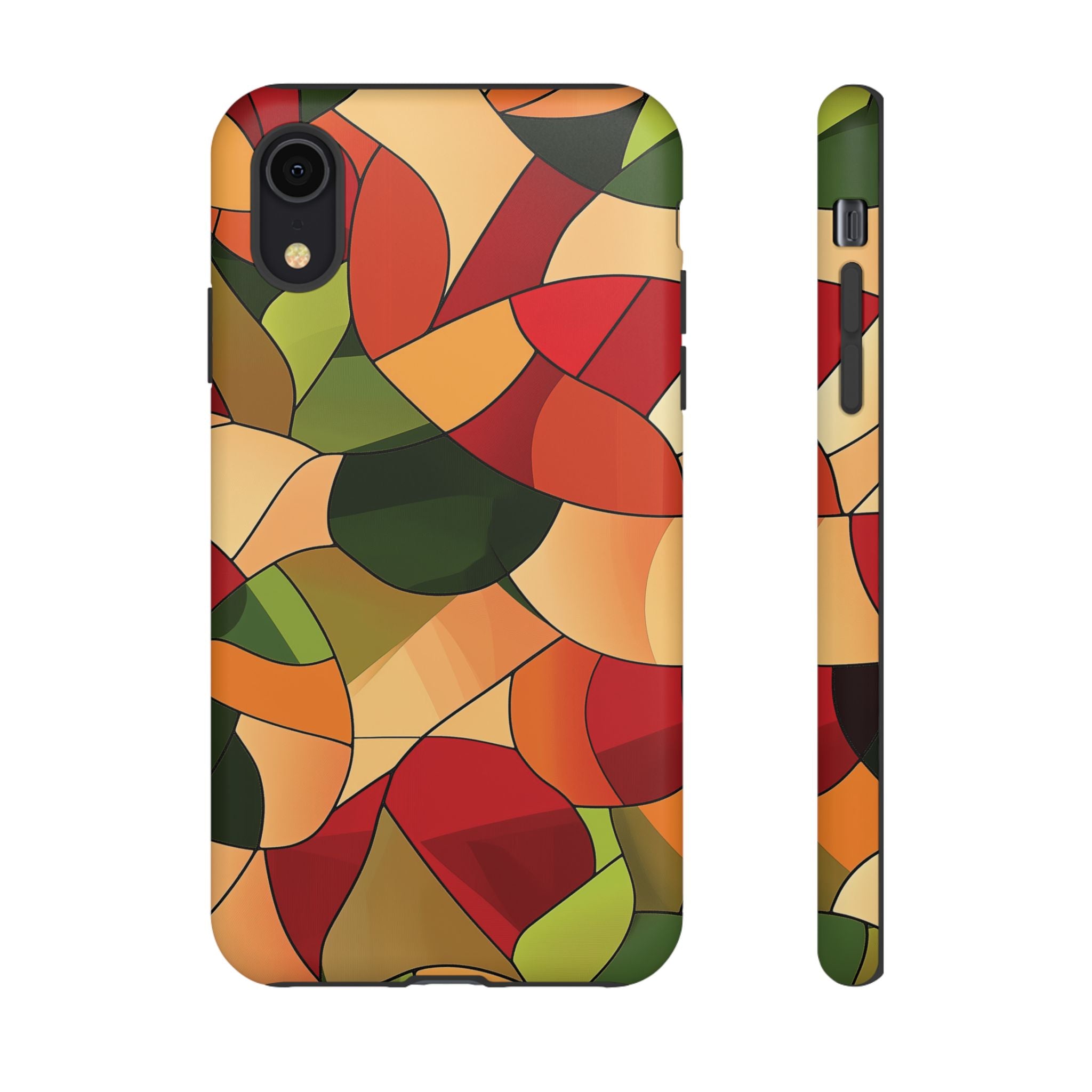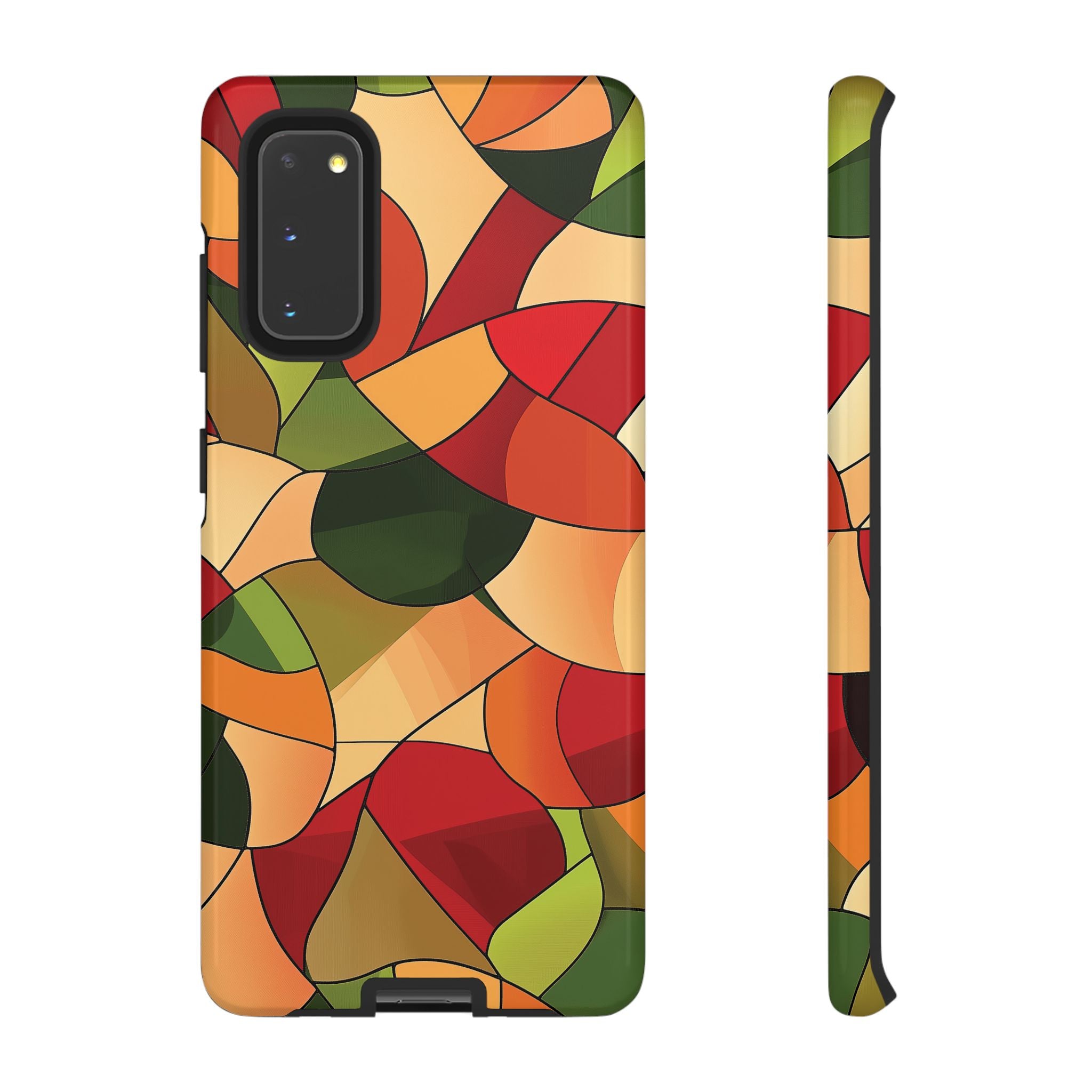 A warm, modern stained-glass mosaic that feels like a cozy autumn walk — rich reds, burnt oranges and olive greens... Read more