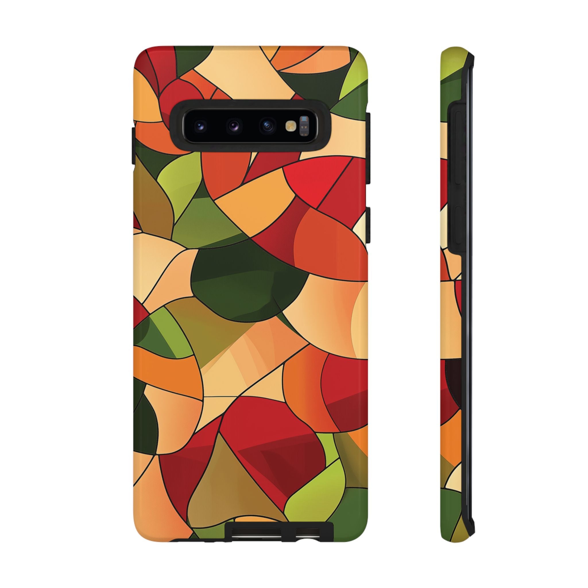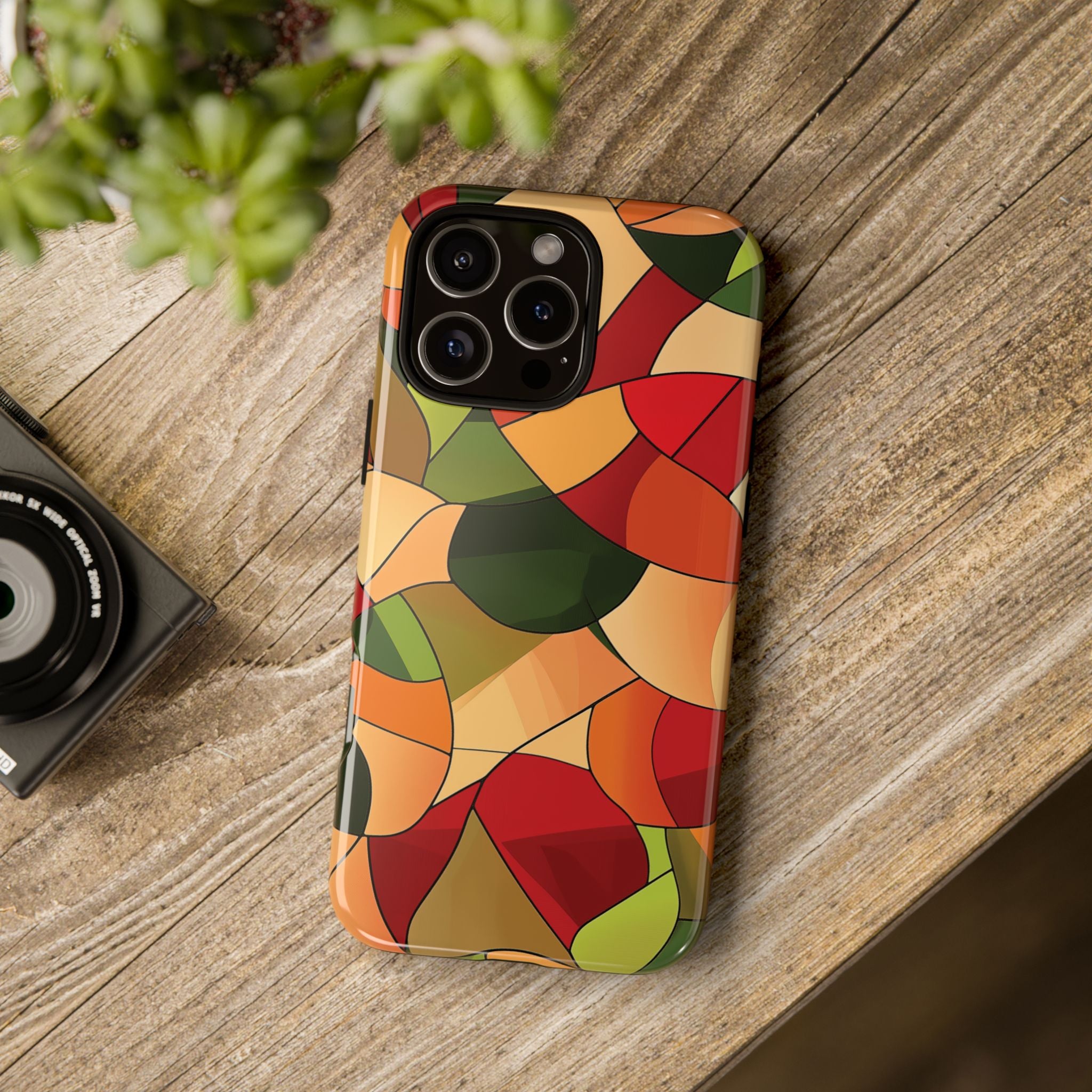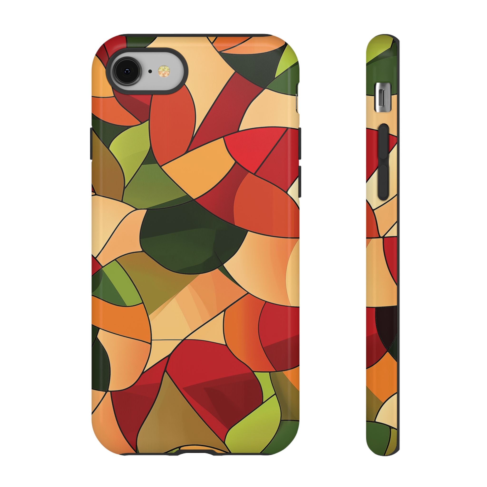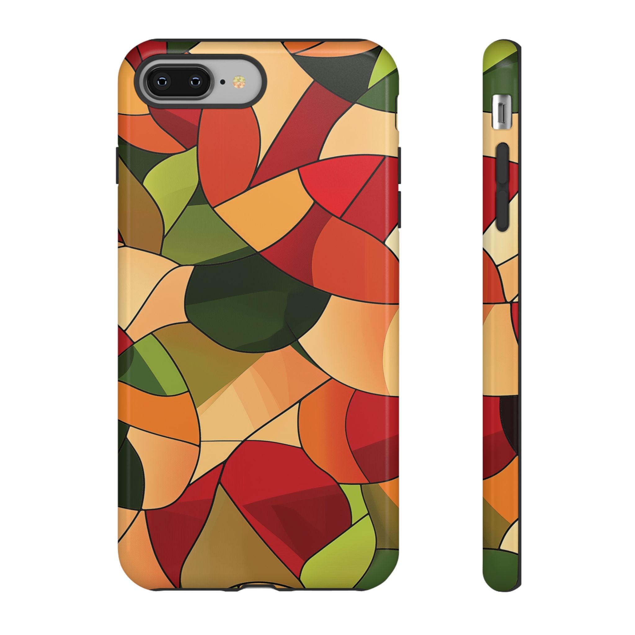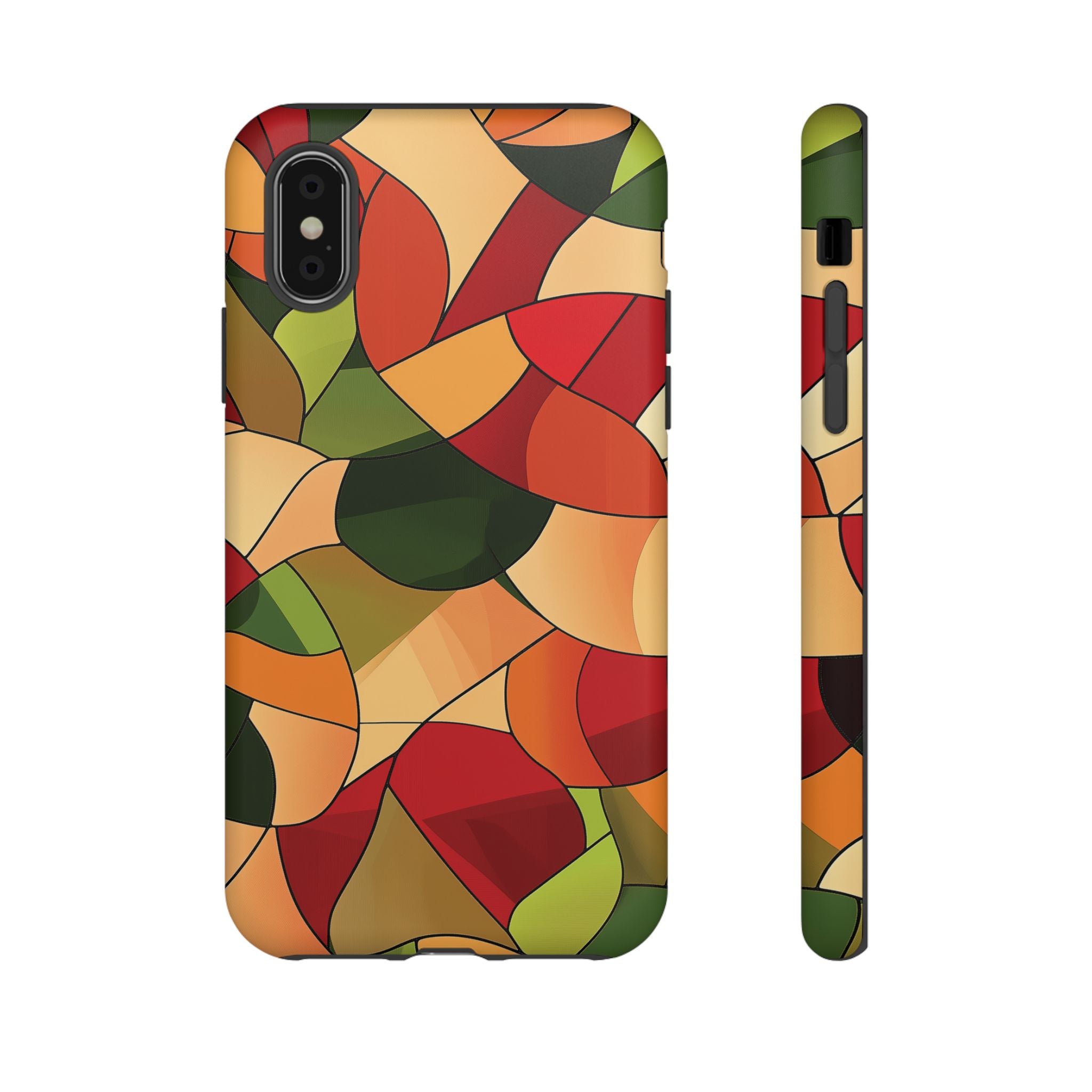 A warm, modern stained-glass mosaic that feels like a cozy autumn walk — rich reds, burnt oranges and olive greens... Read more