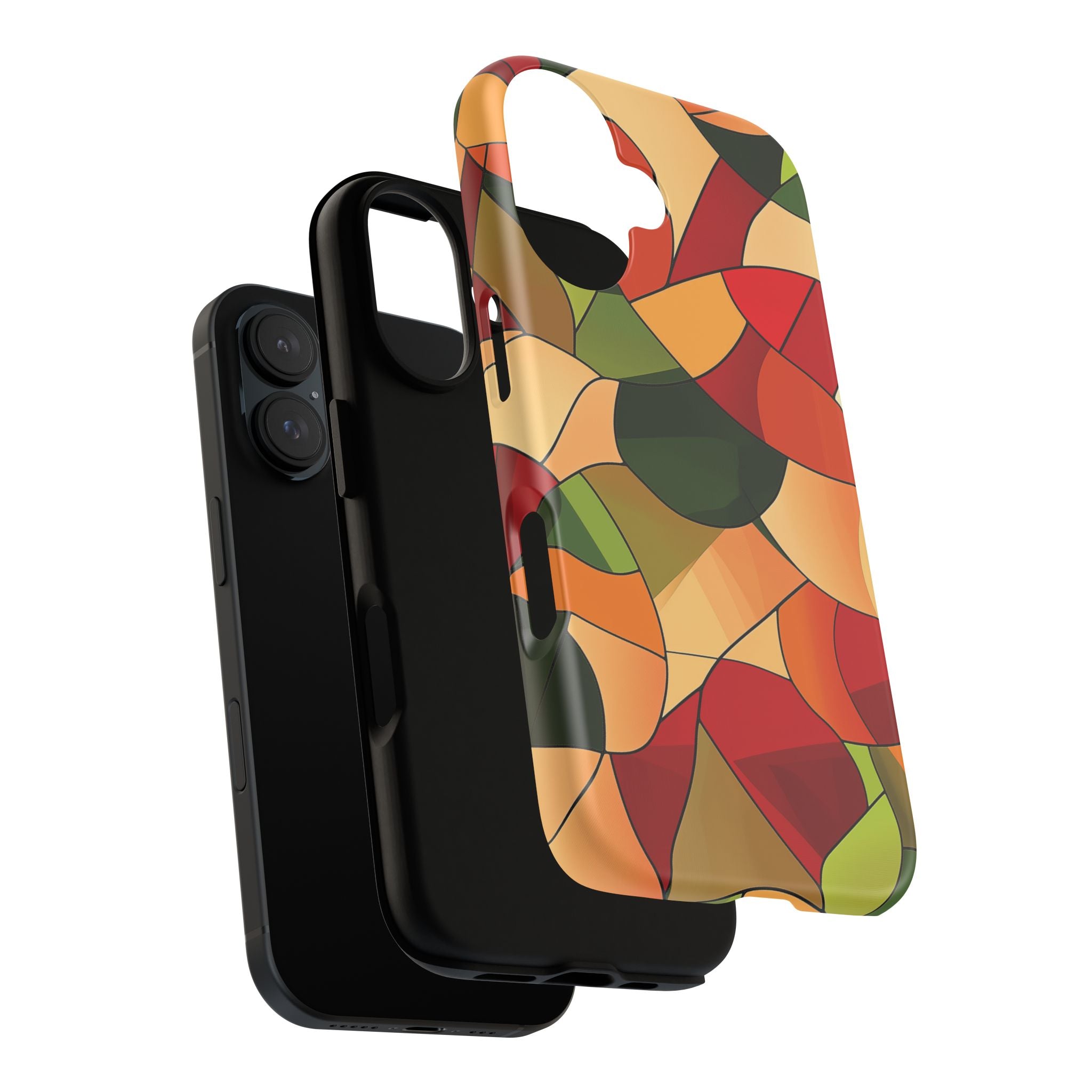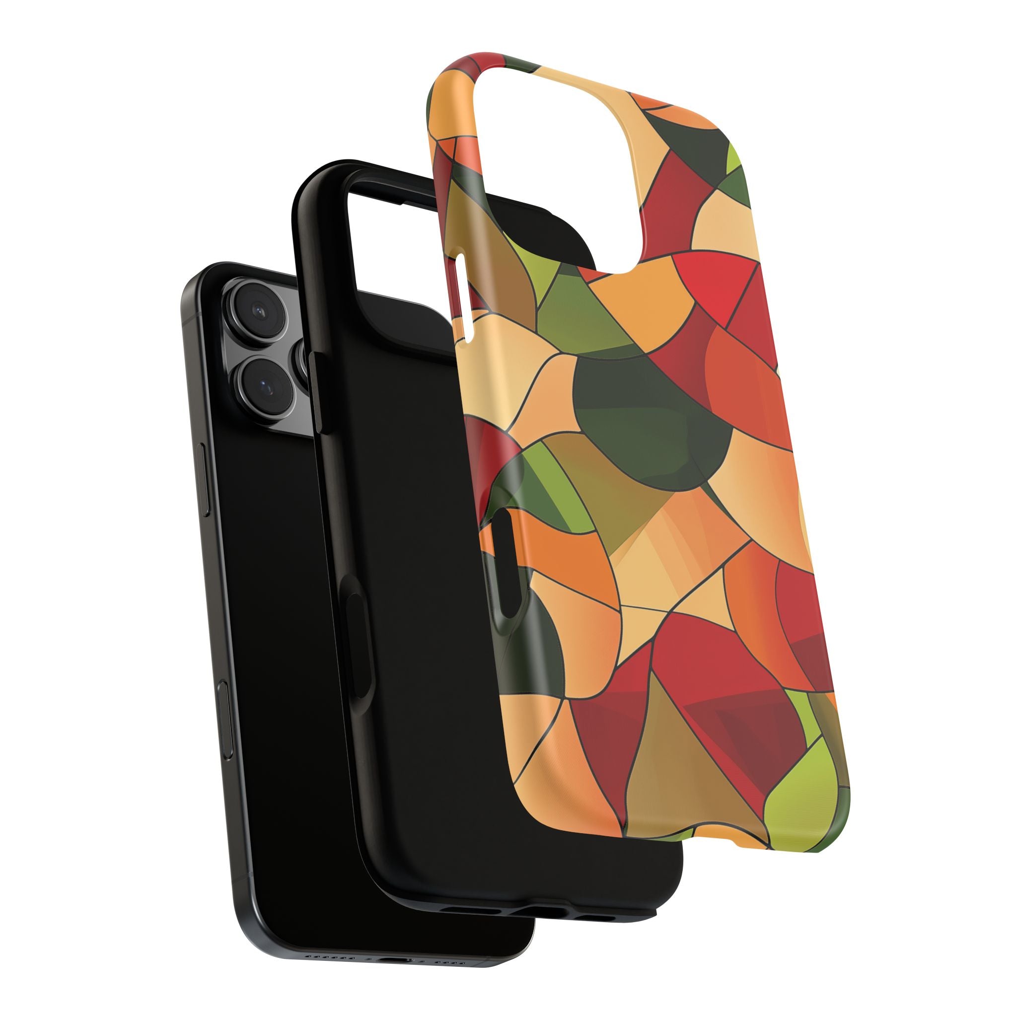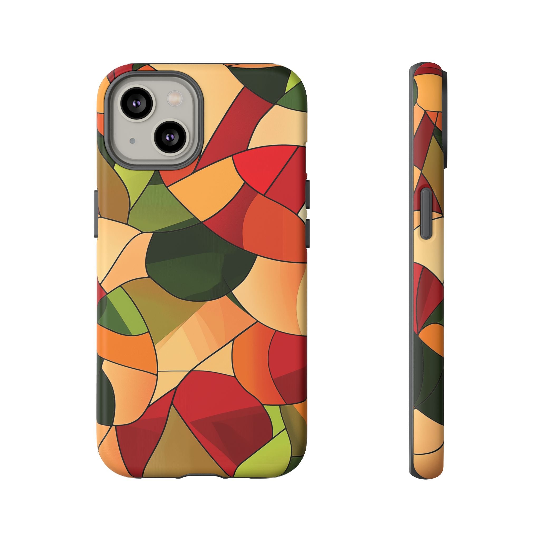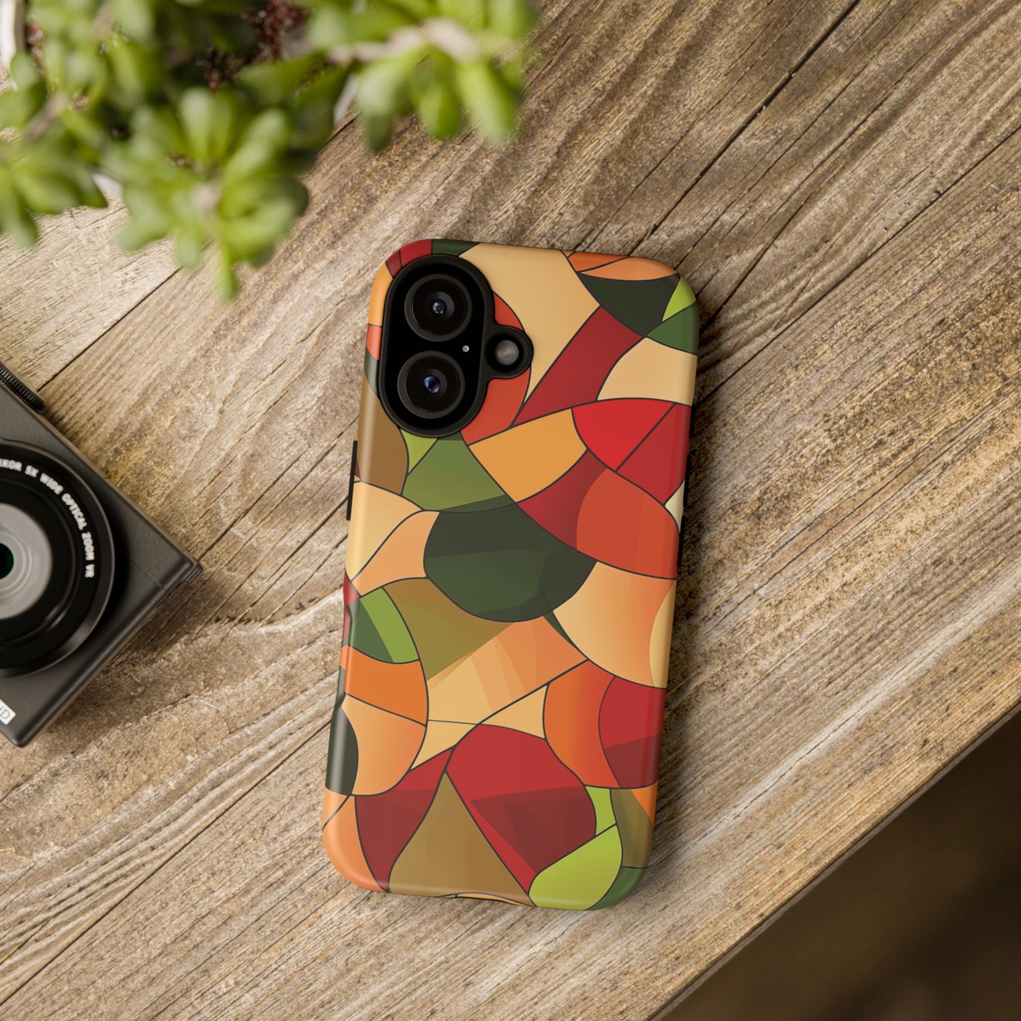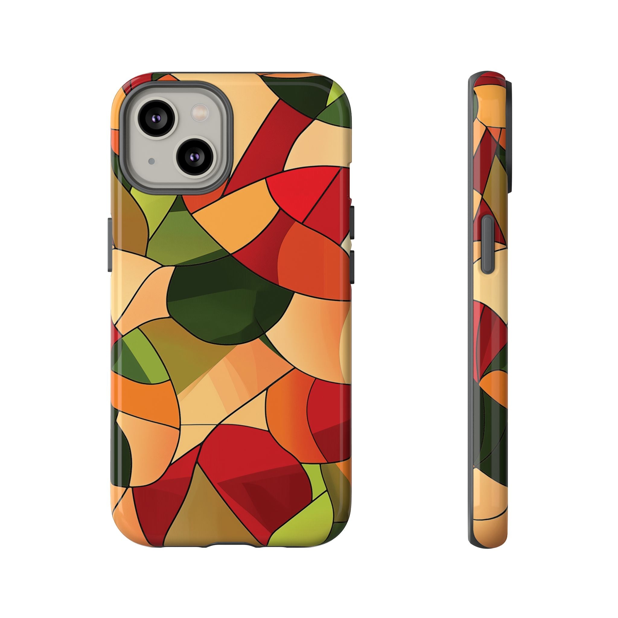 A warm, modern stained-glass mosaic that feels like a cozy autumn walk — rich reds, burnt oranges and olive greens... Read more