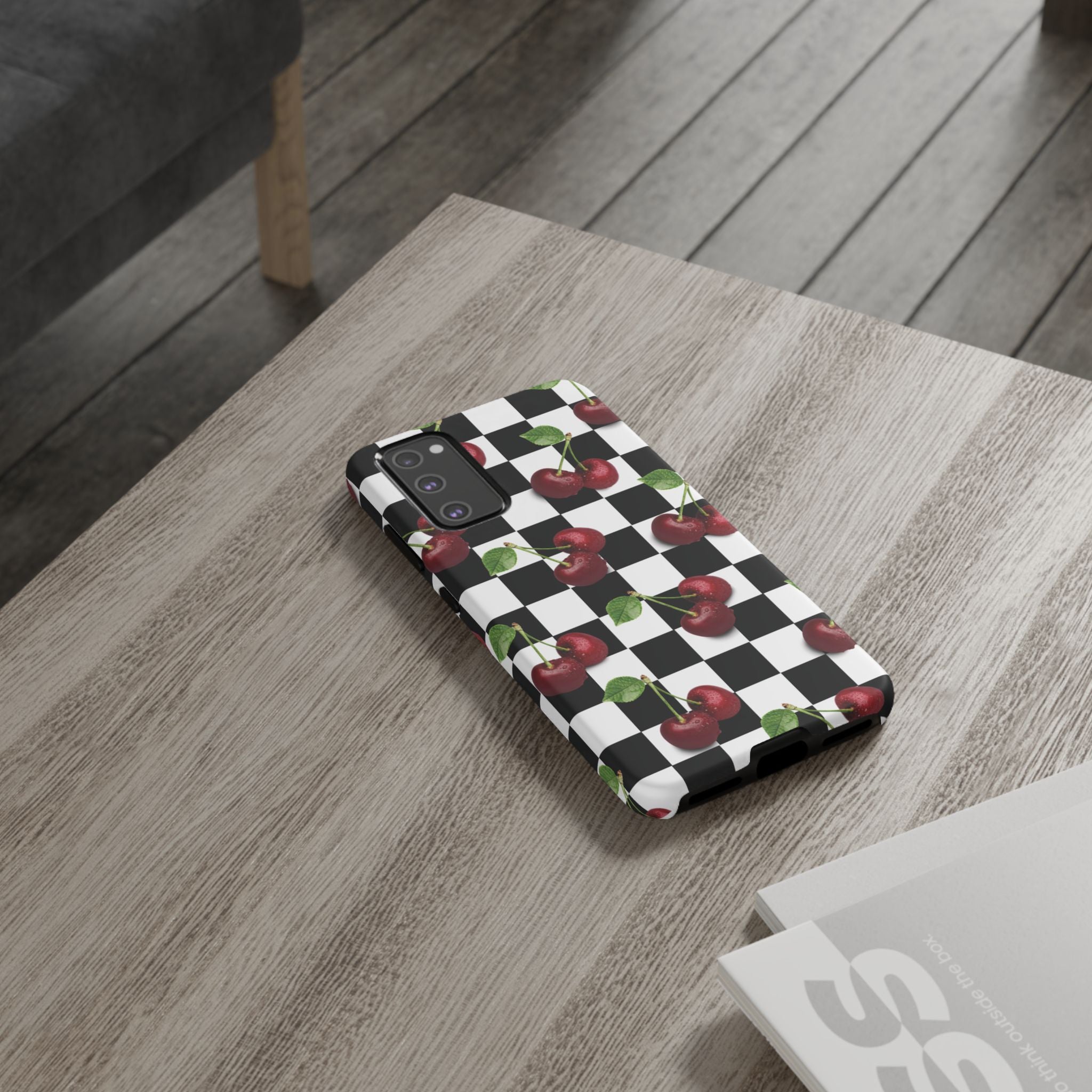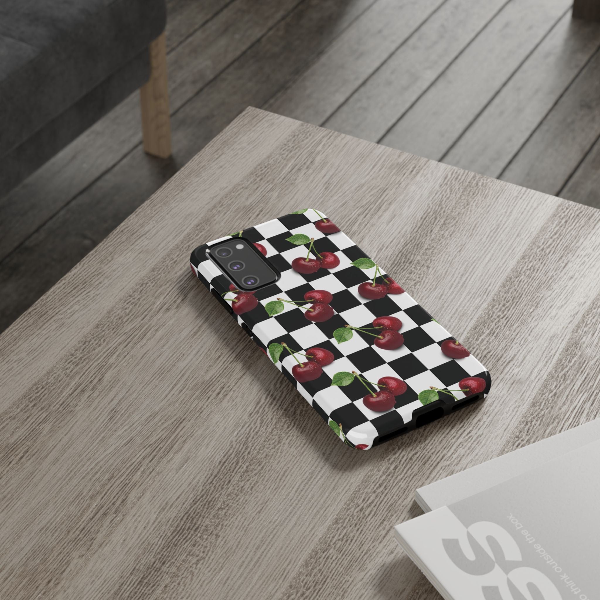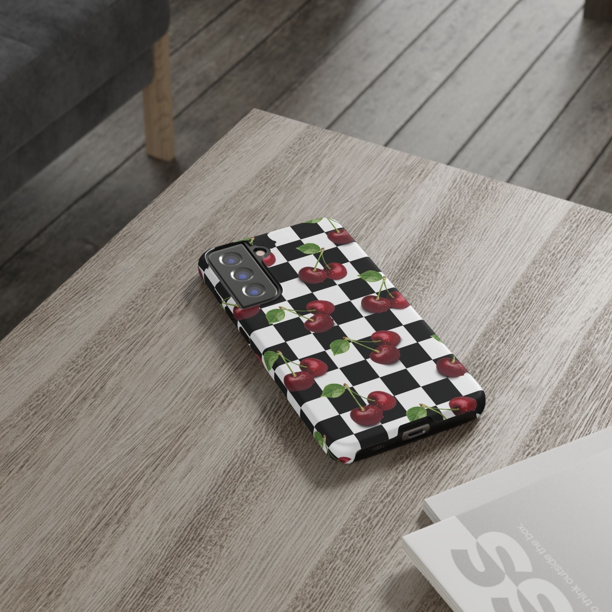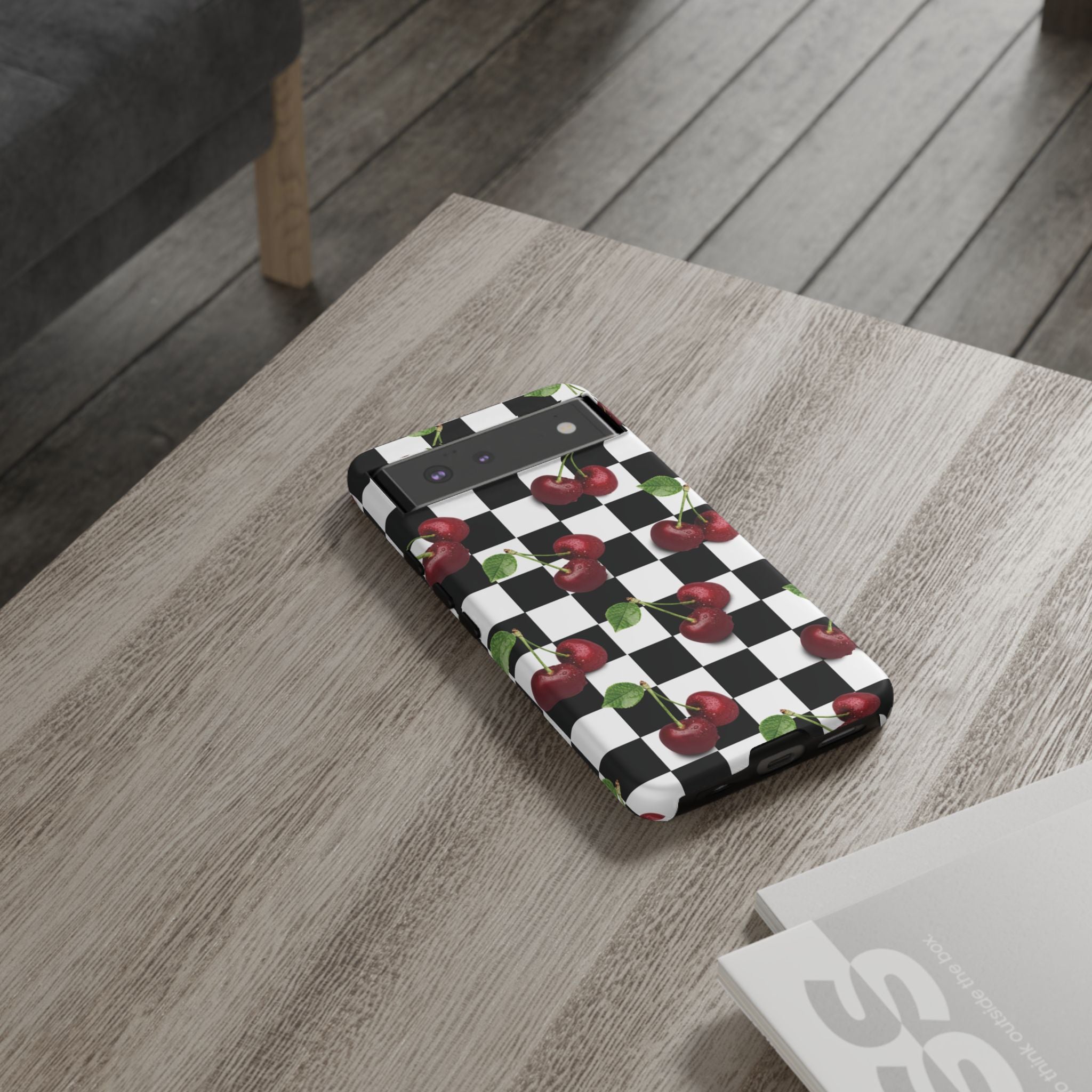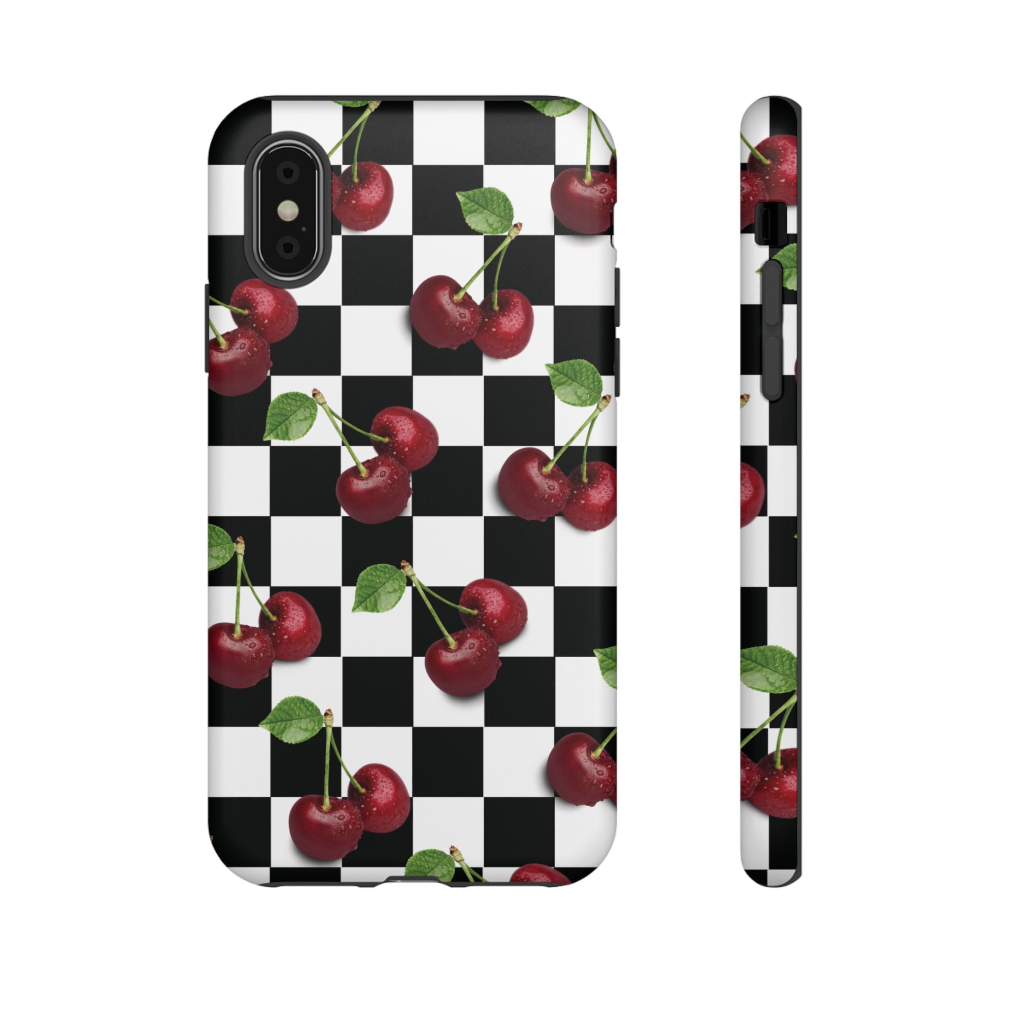 A playful, modern twist on retro style — glossy cherries scattered across a crisp black-and-white checker for a look that’s... Read more