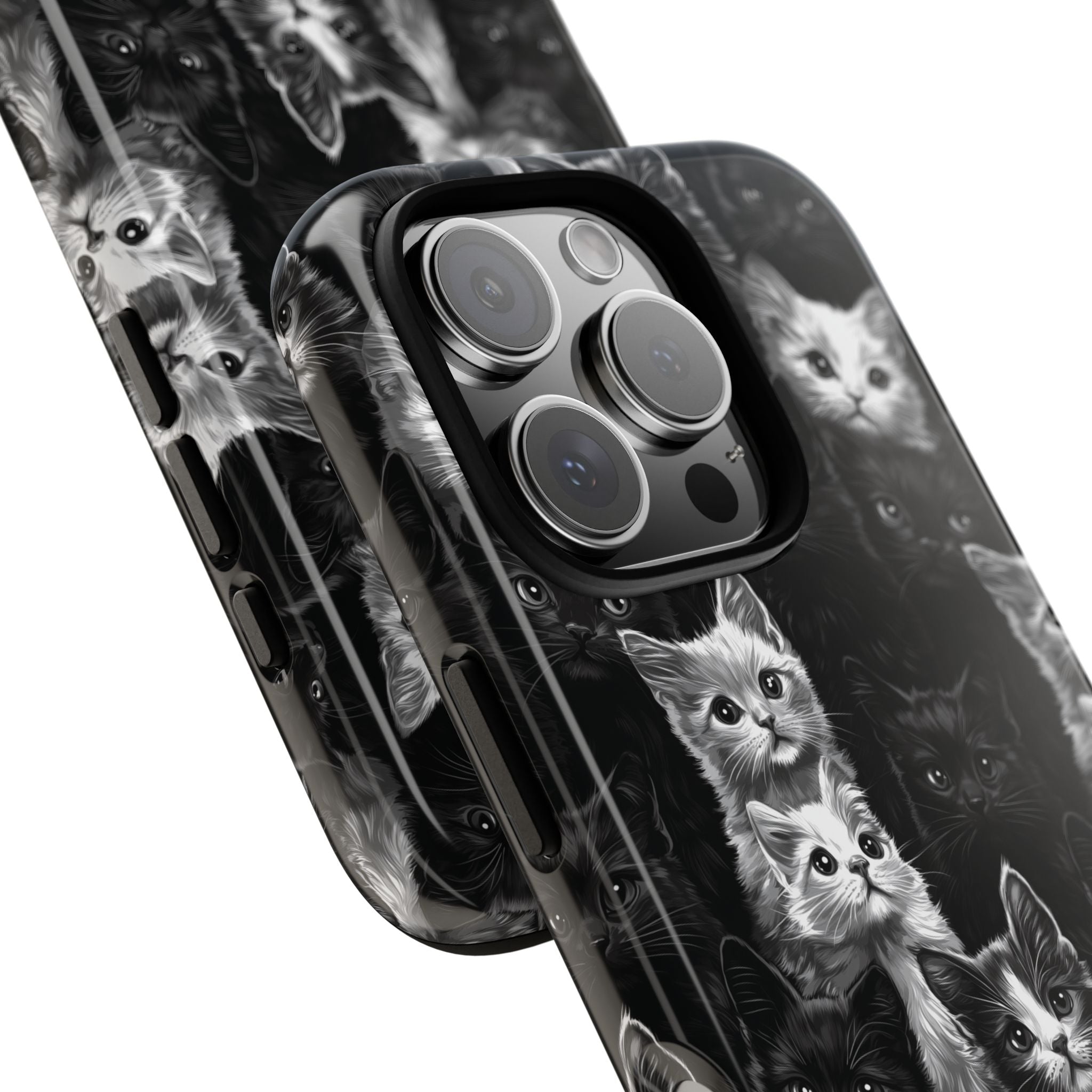 Midnight charm for your pocket — a chorus of curious kittens in rich black-and-white, designed to feel both whimsical and... Read more