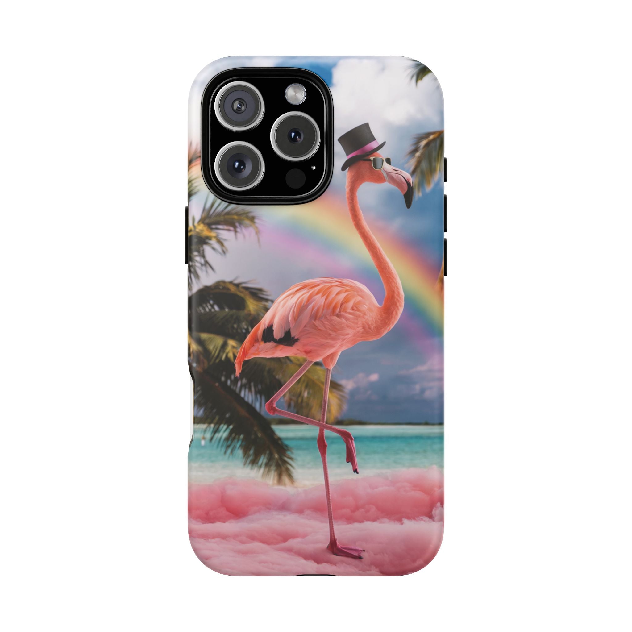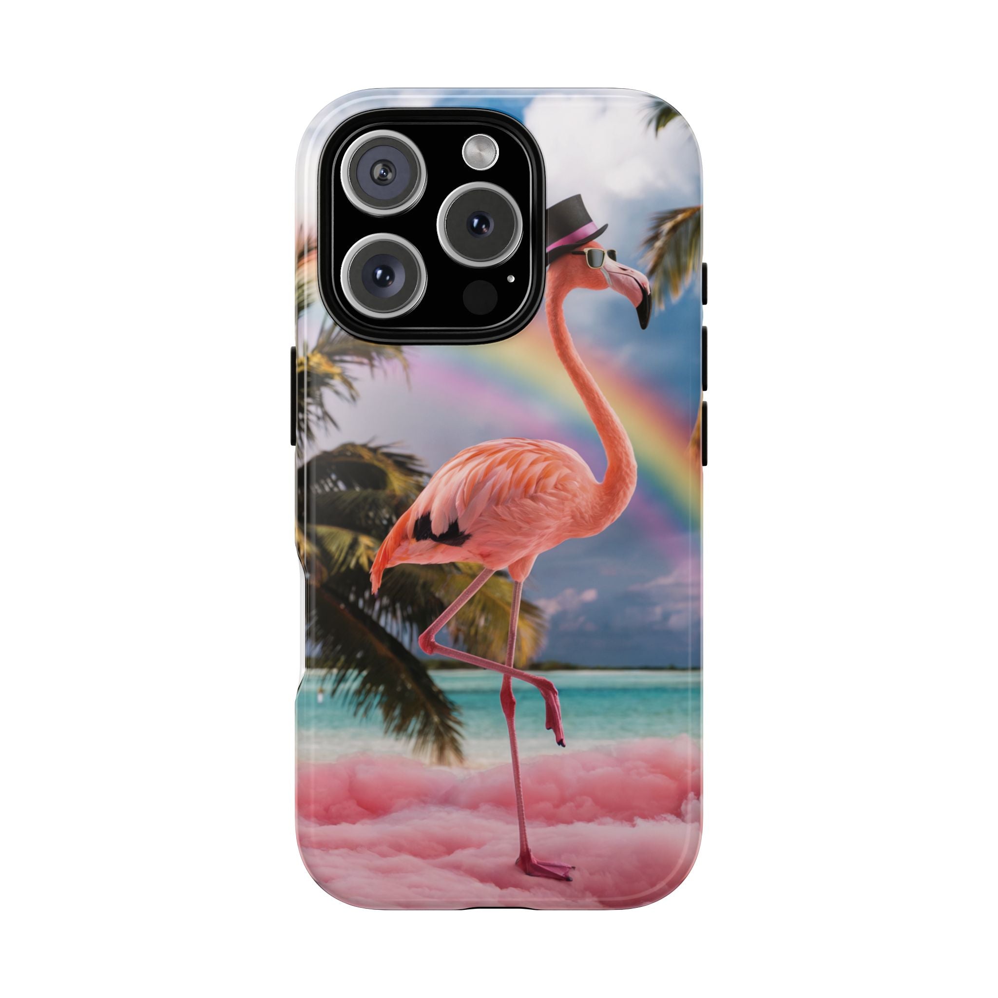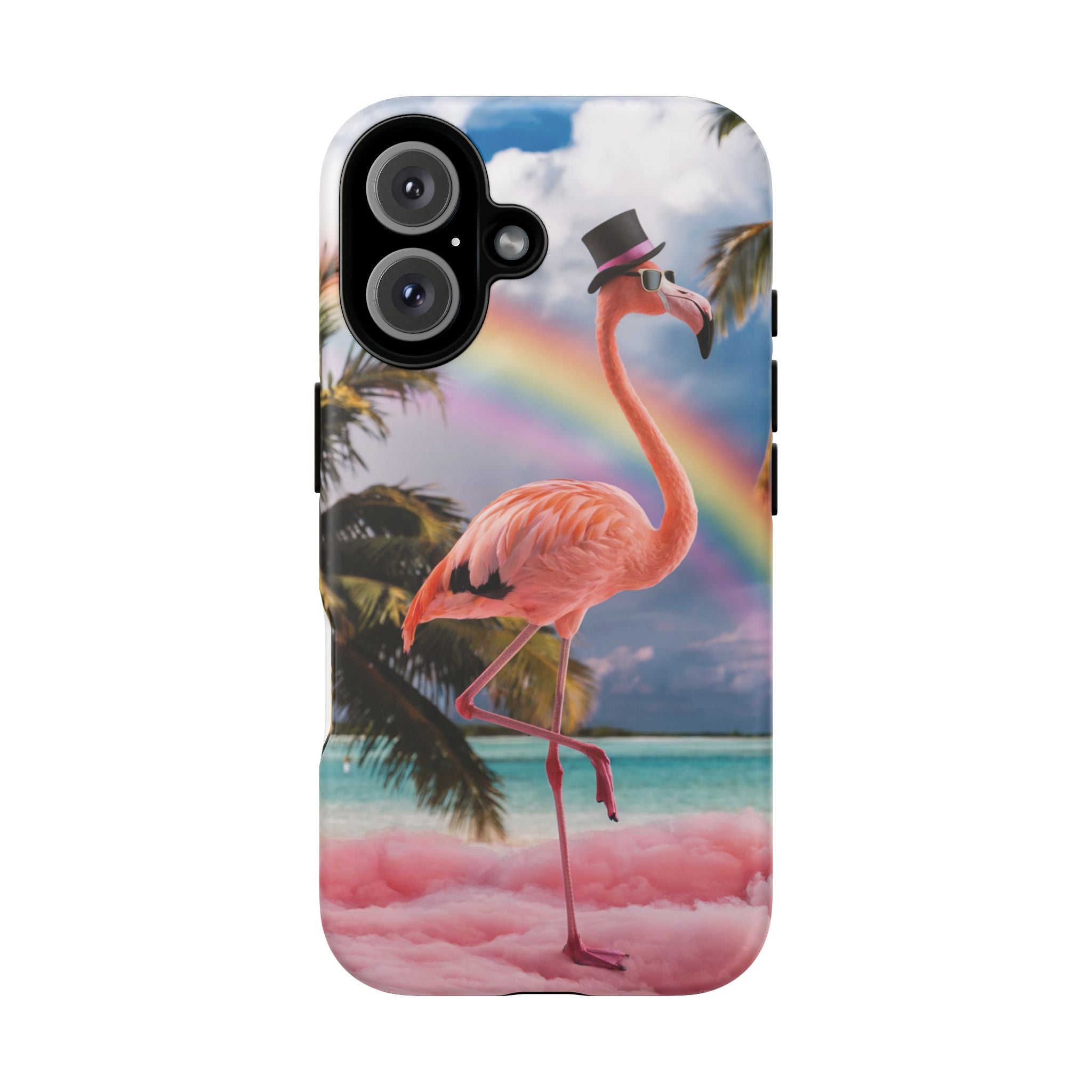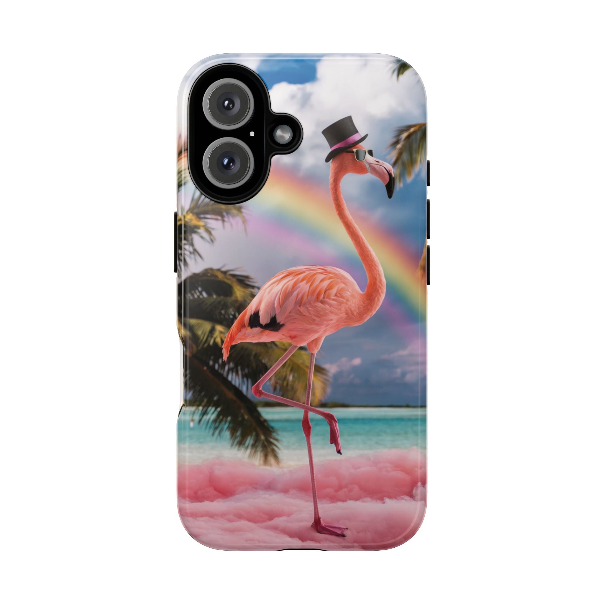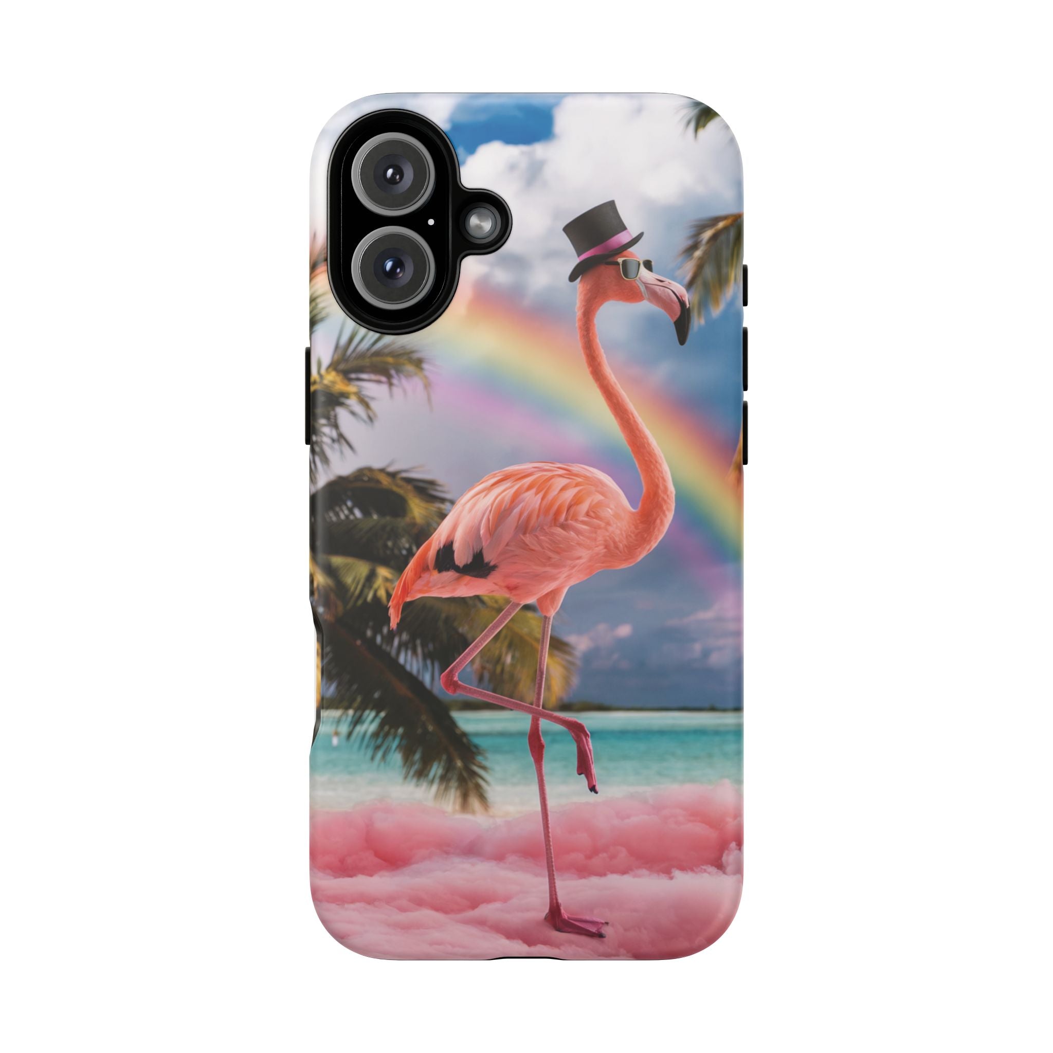 A dreamy, tropical day in your pocket — a debonair flamingo balances on cotton‑candy clouds beneath a soft pastel rainbow.... Read more