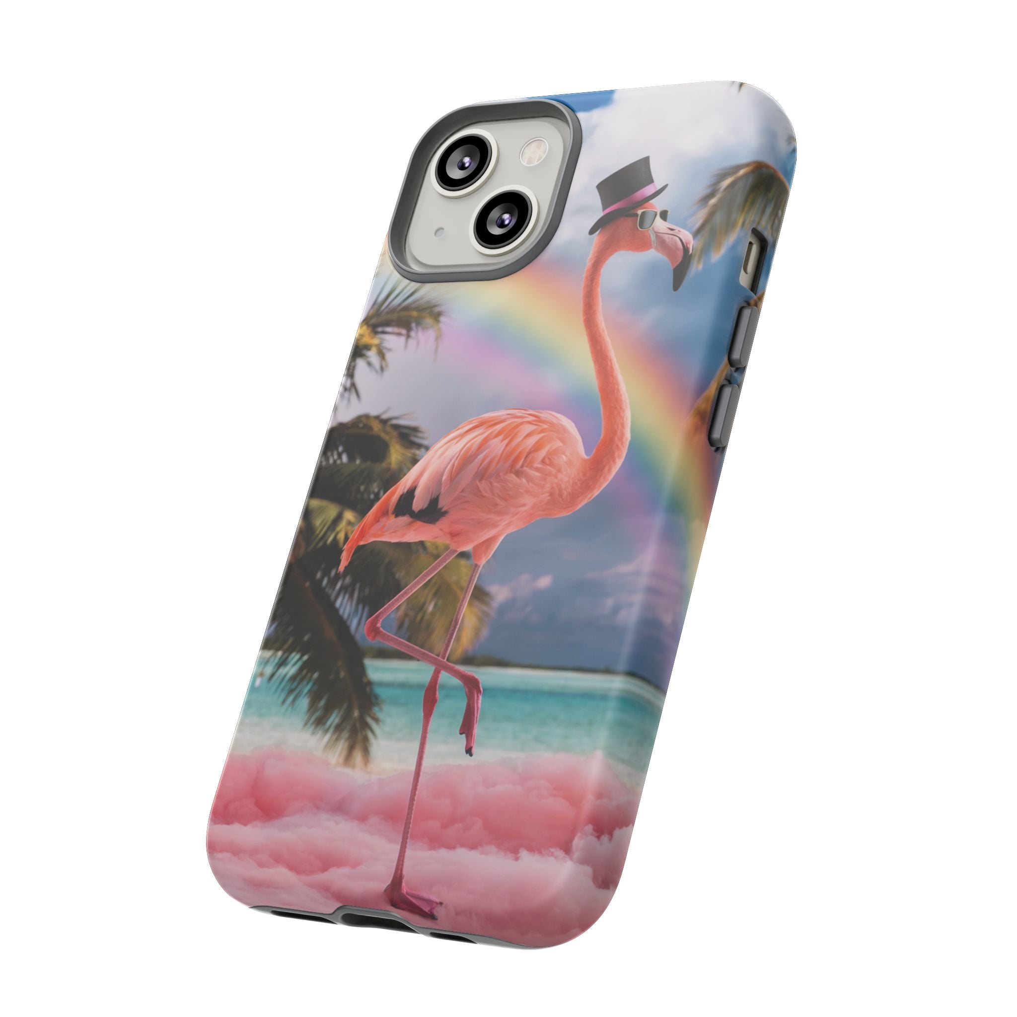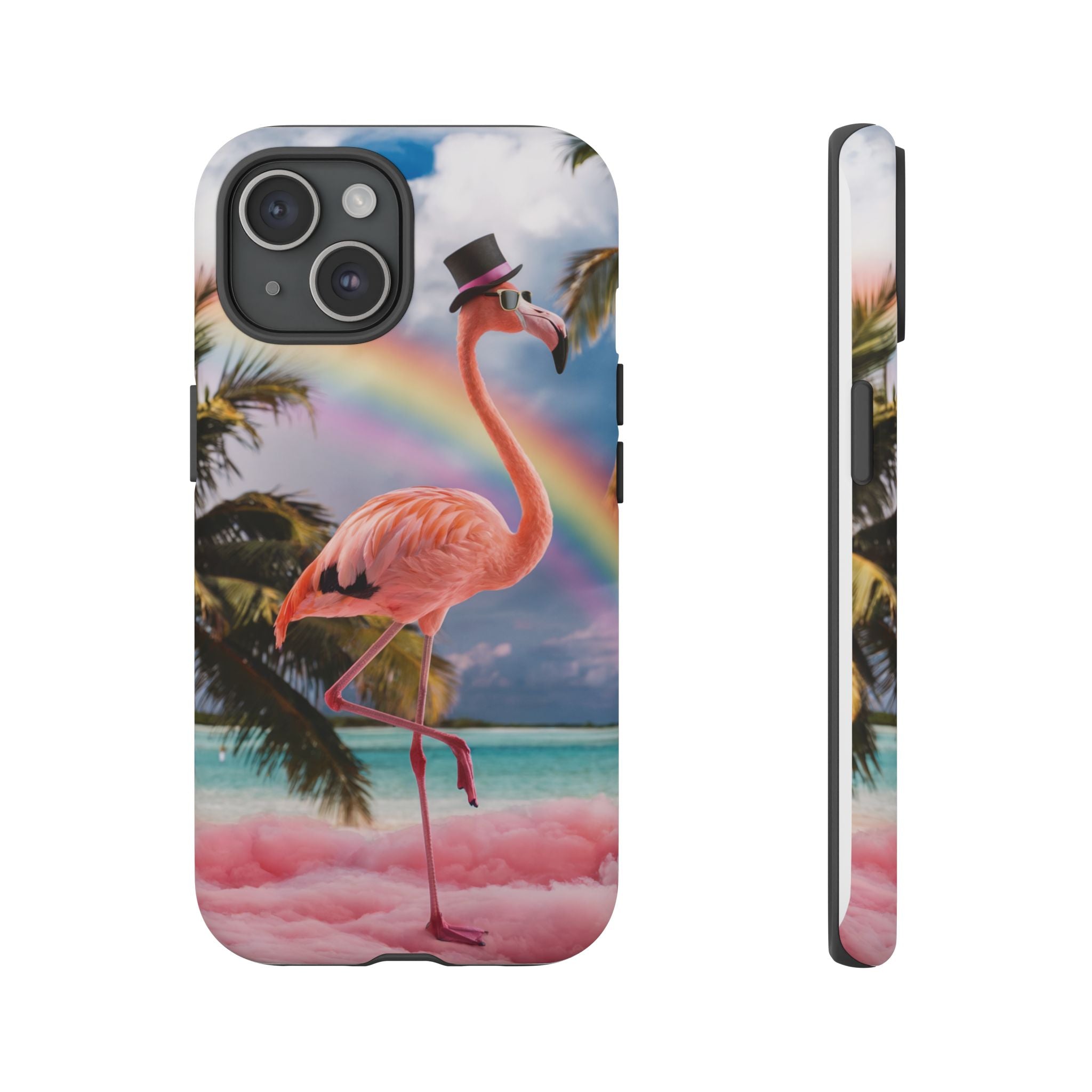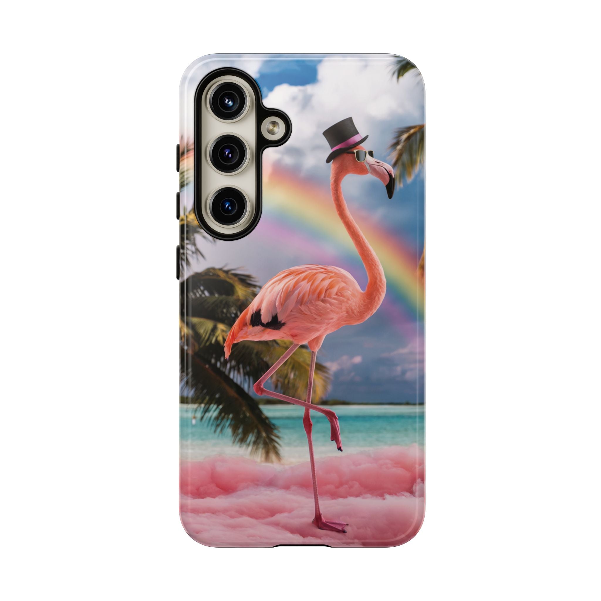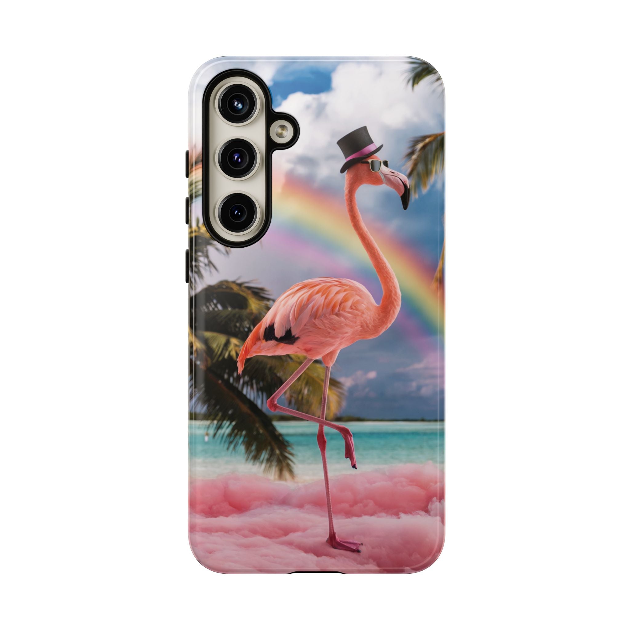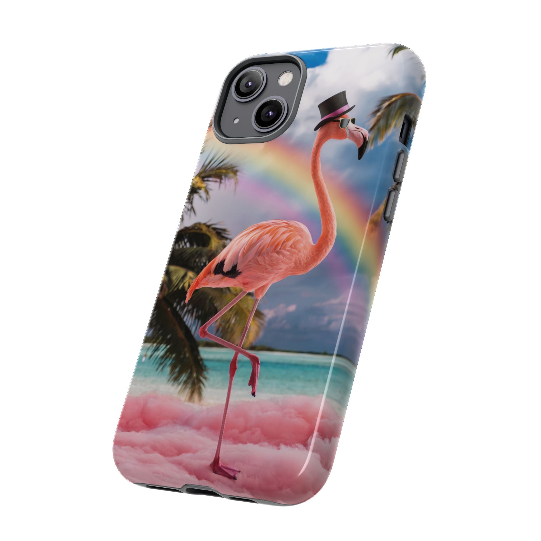 A dreamy, tropical day in your pocket — a debonair flamingo balances on cotton‑candy clouds beneath a soft pastel rainbow.... Read more