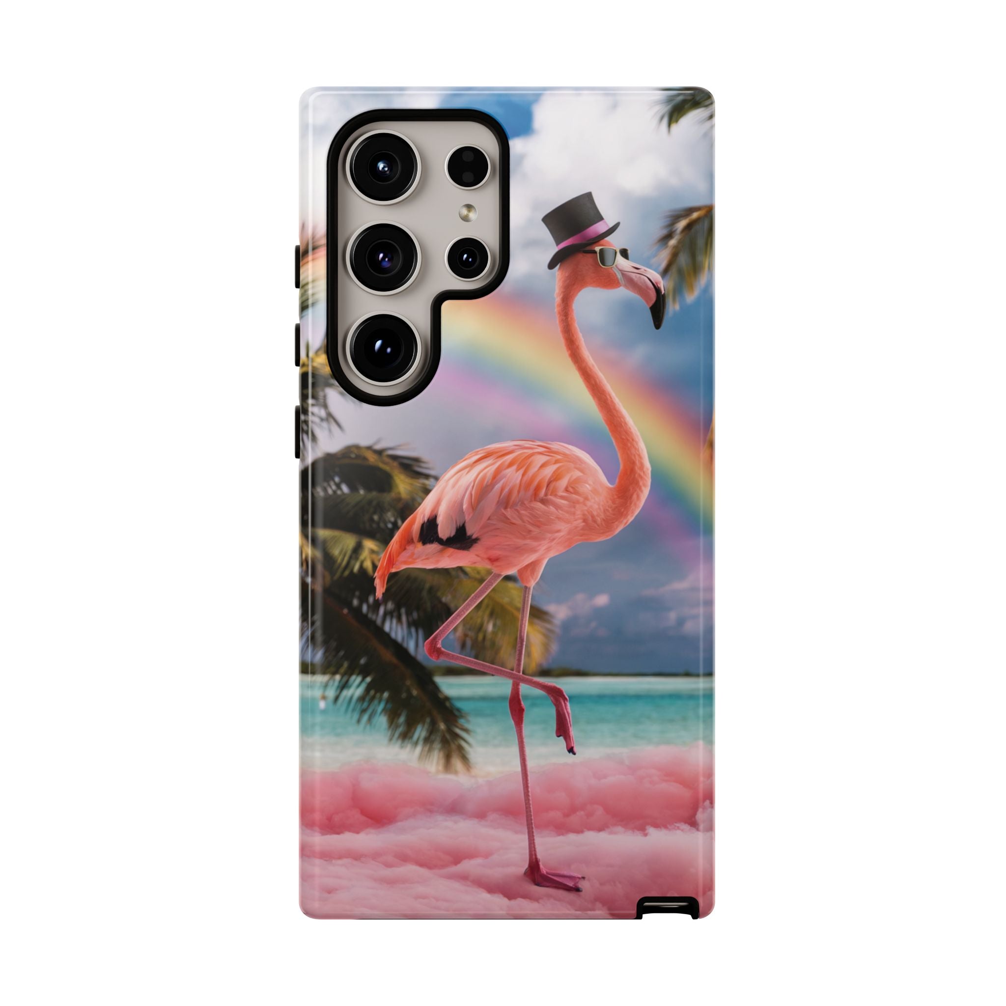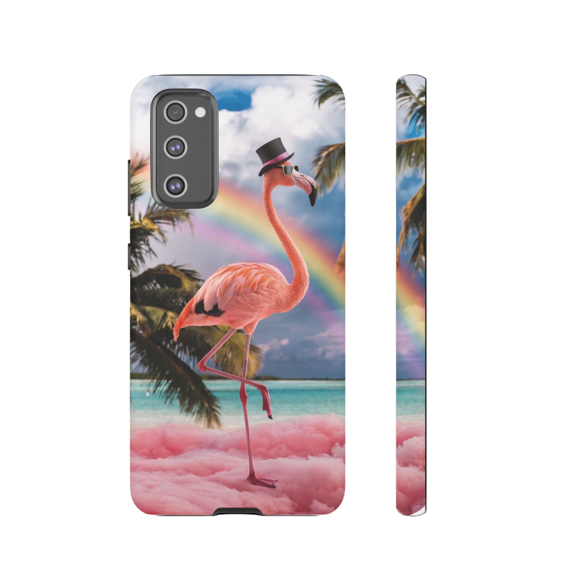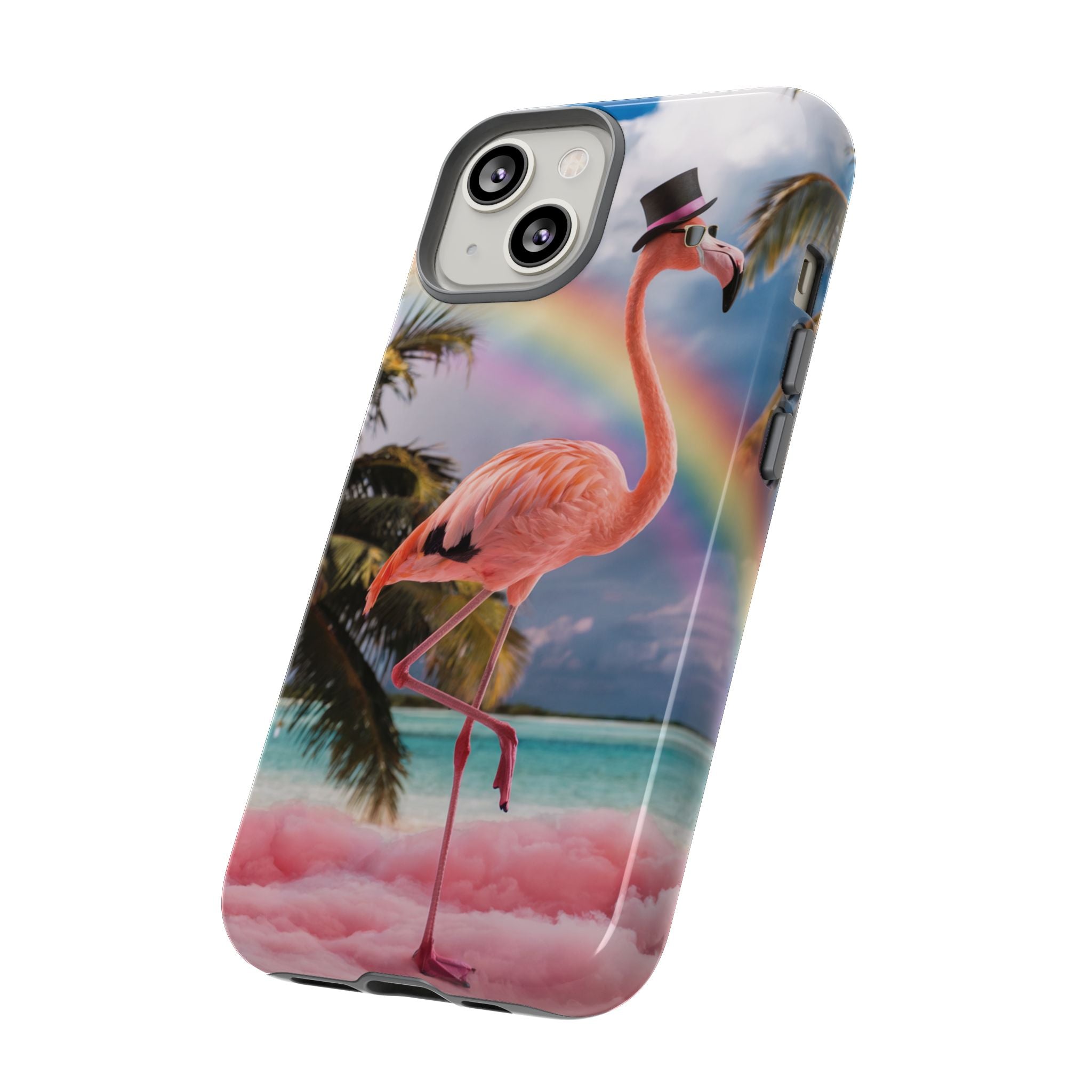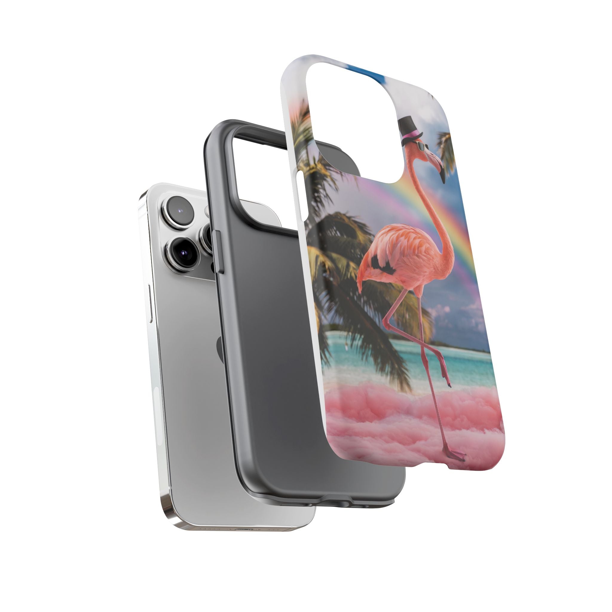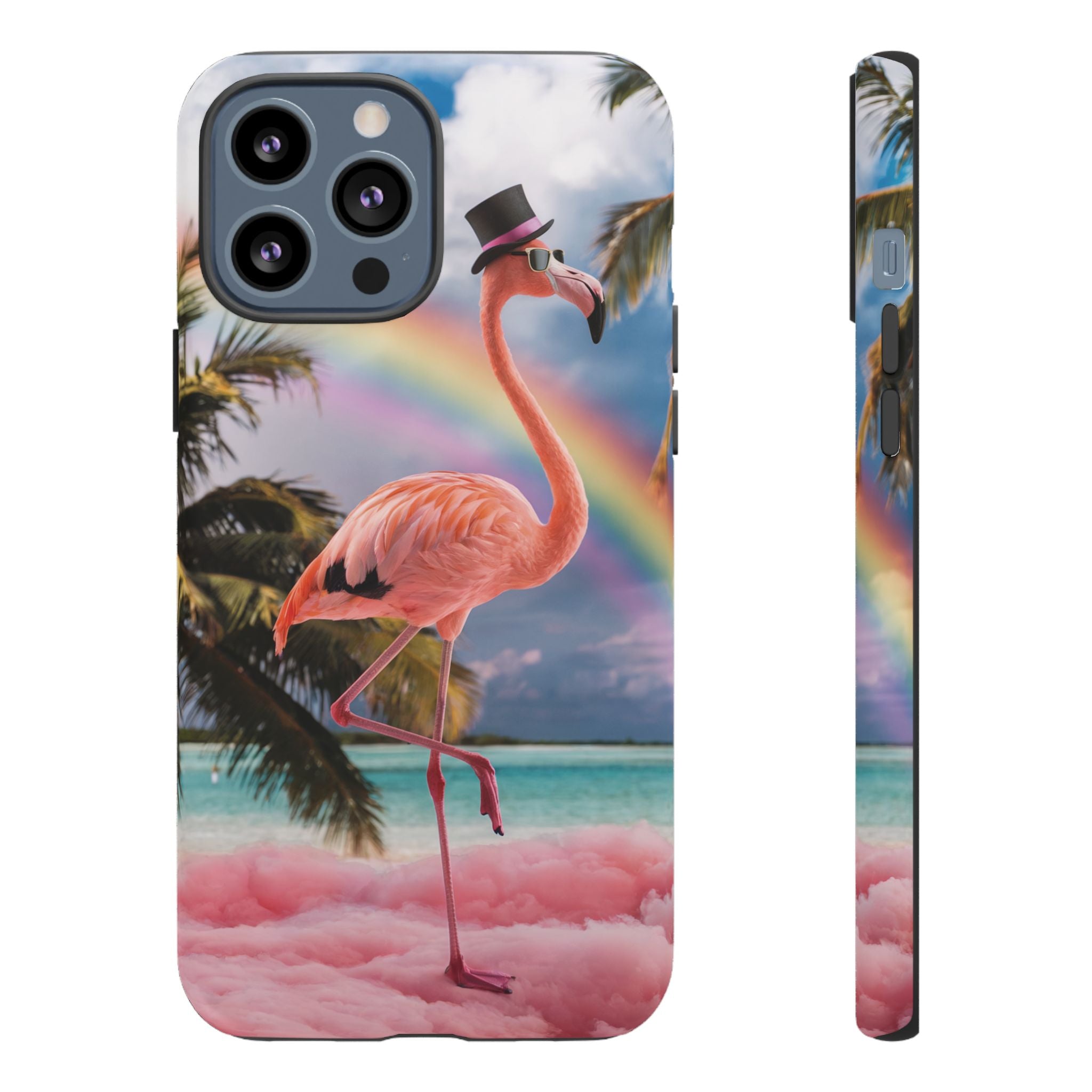 A dreamy, tropical day in your pocket — a debonair flamingo balances on cotton‑candy clouds beneath a soft pastel rainbow.... Read more