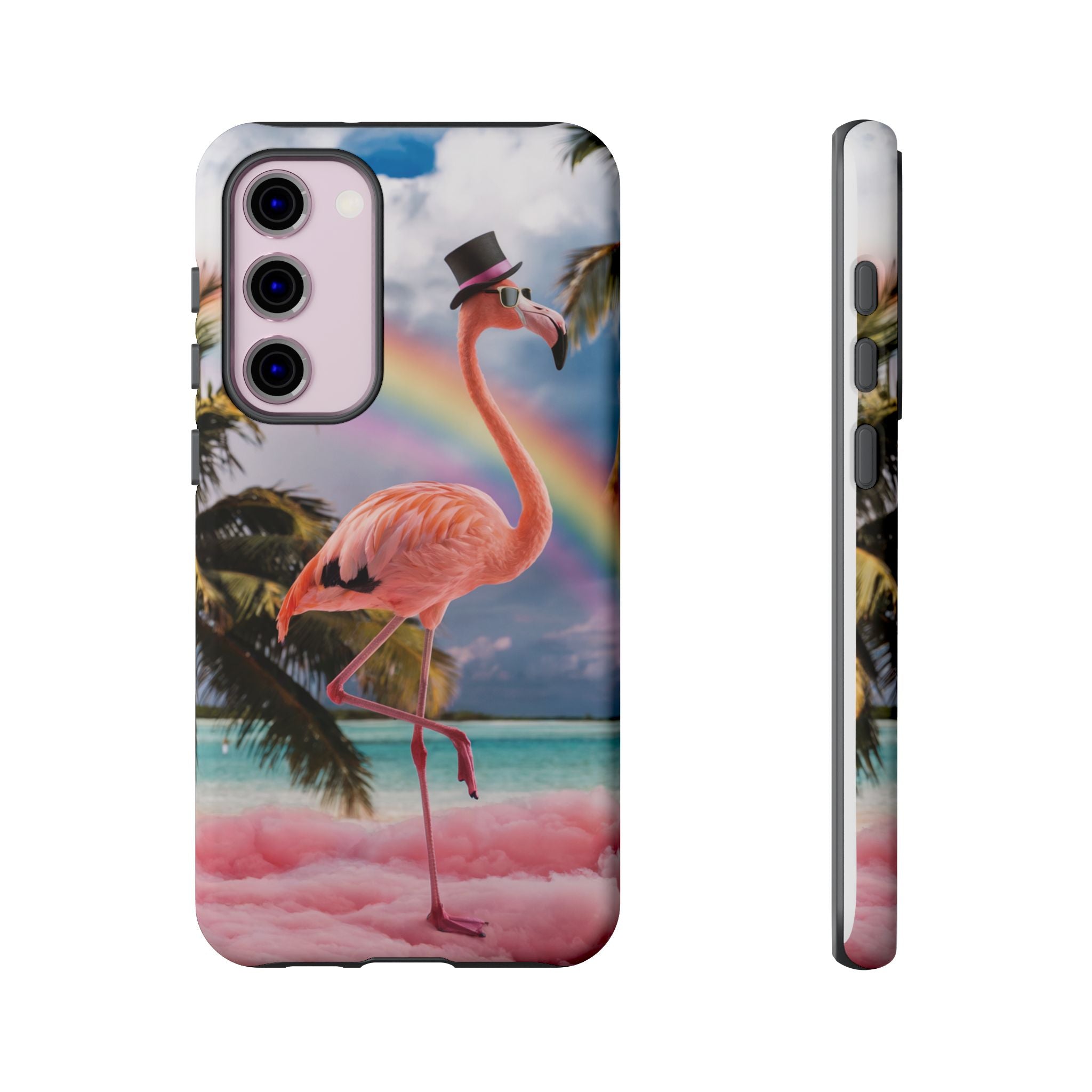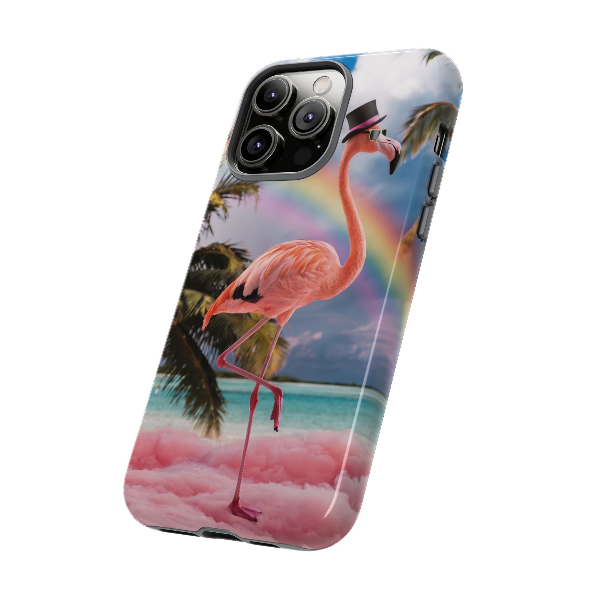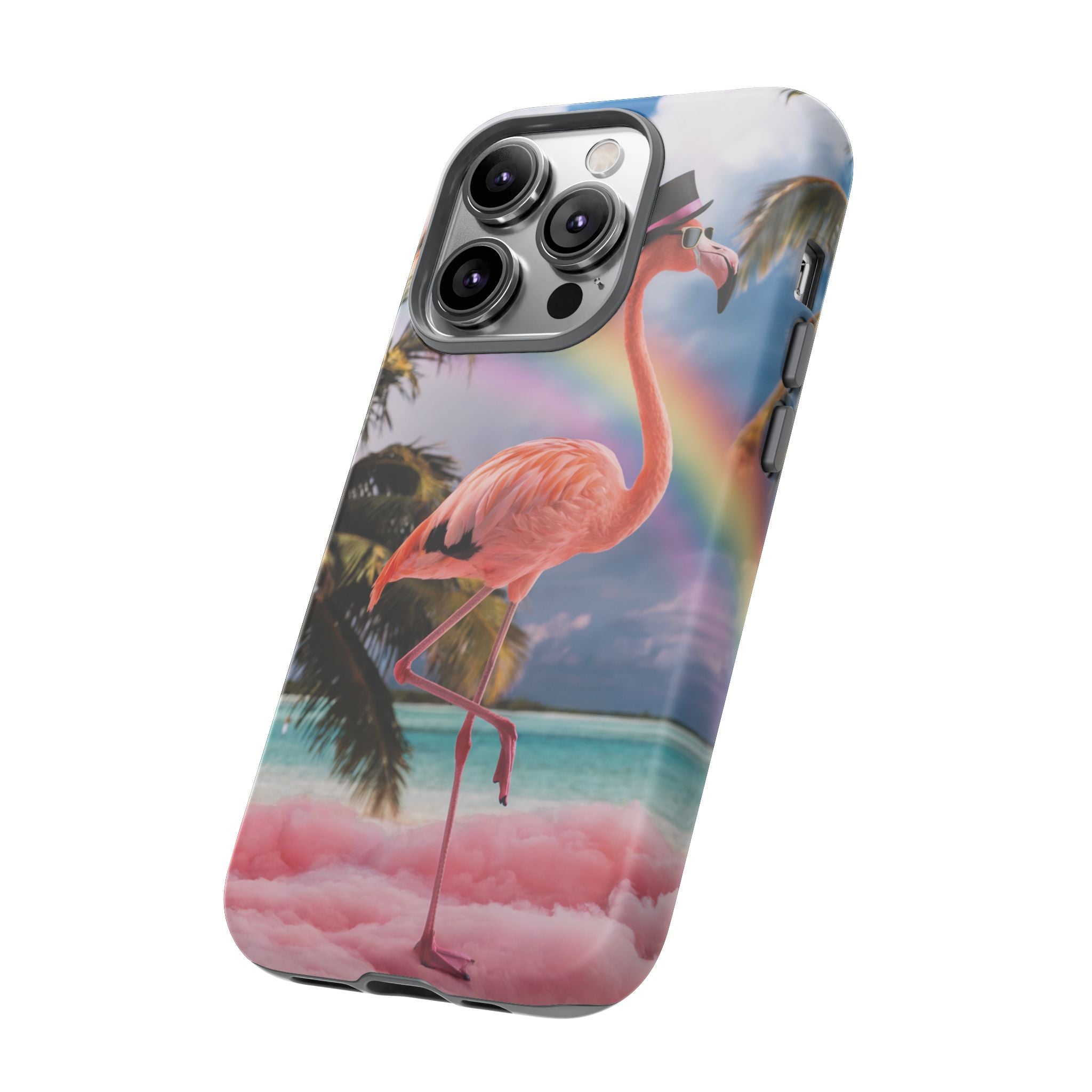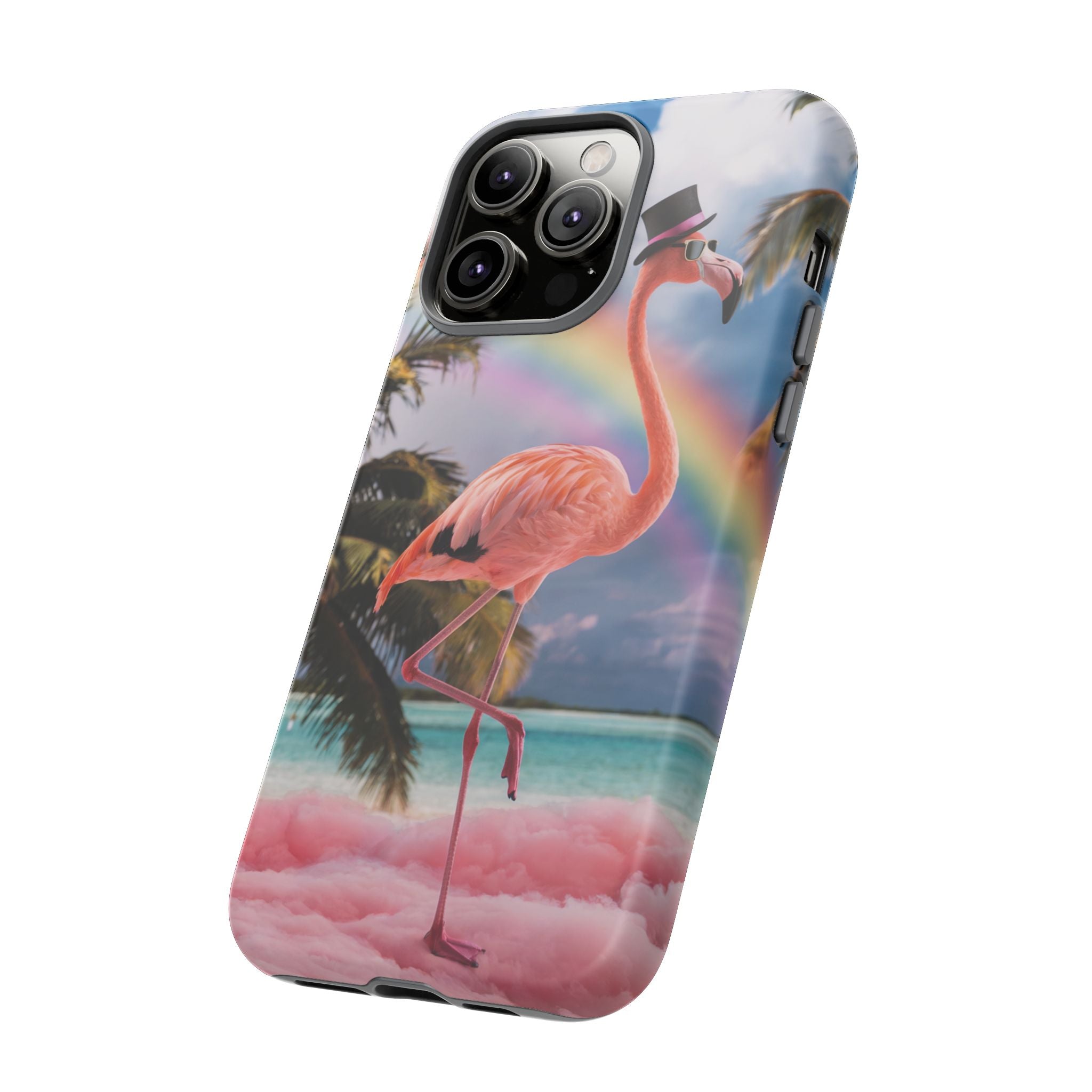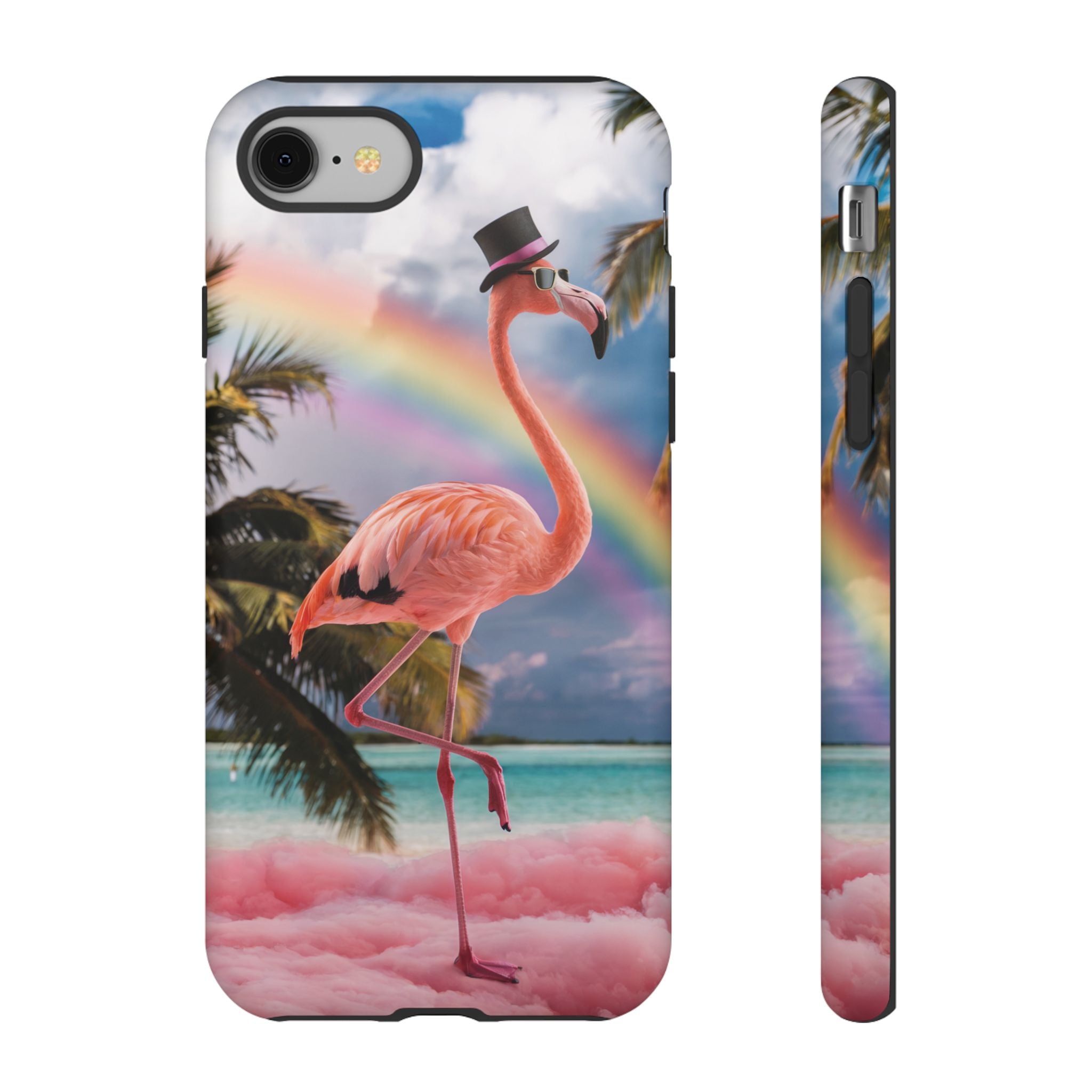A dreamy, tropical day in your pocket — a debonair flamingo balances on cotton‑candy clouds beneath a soft pastel rainbow.... Read more