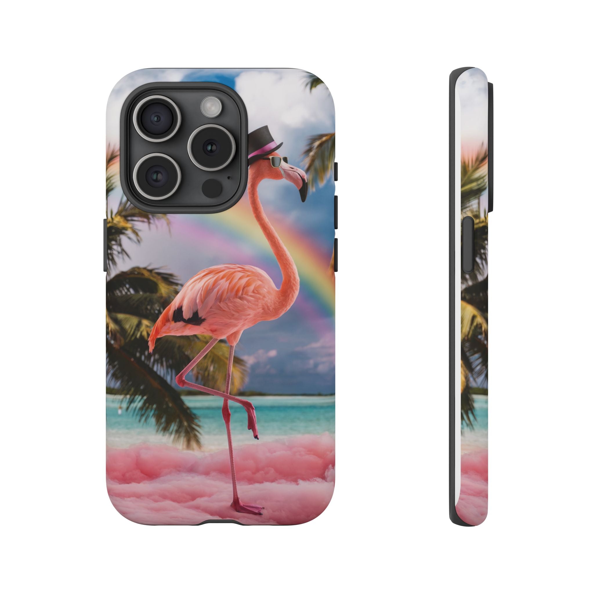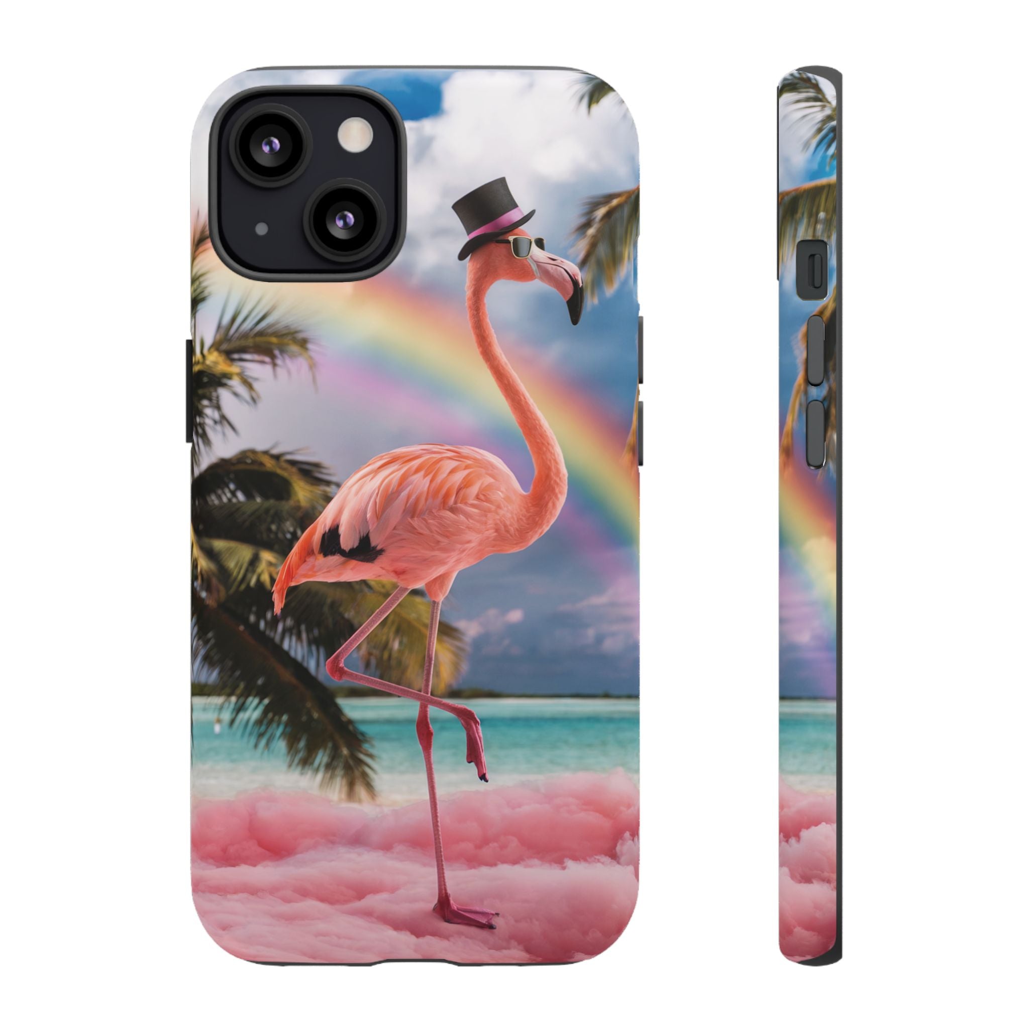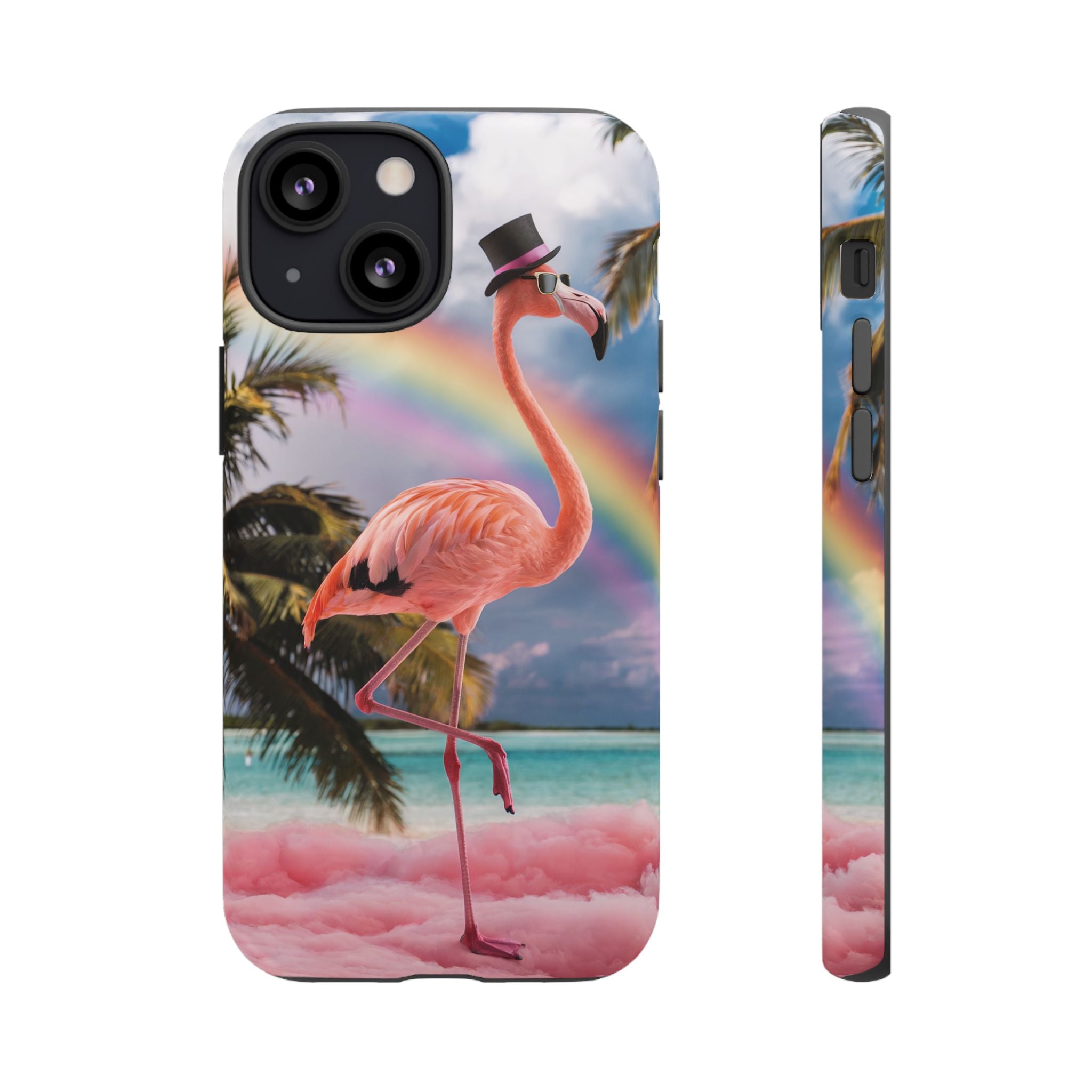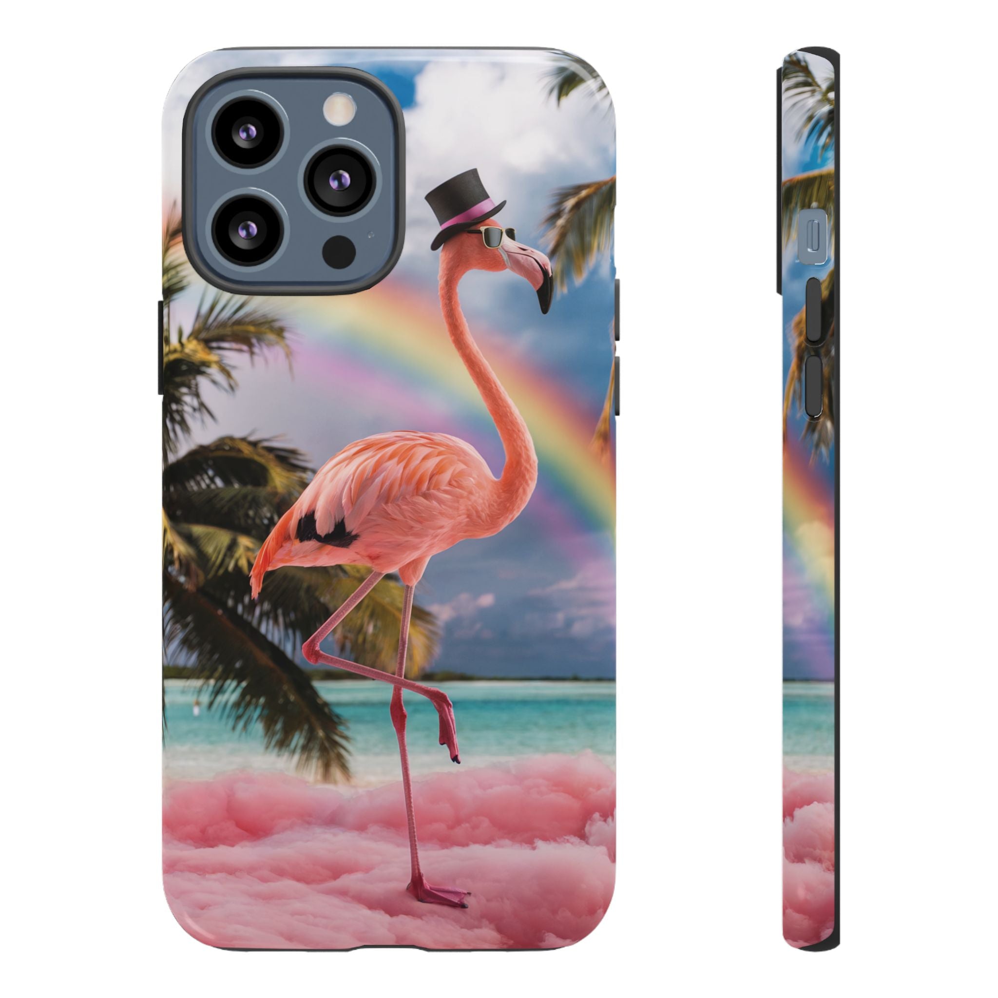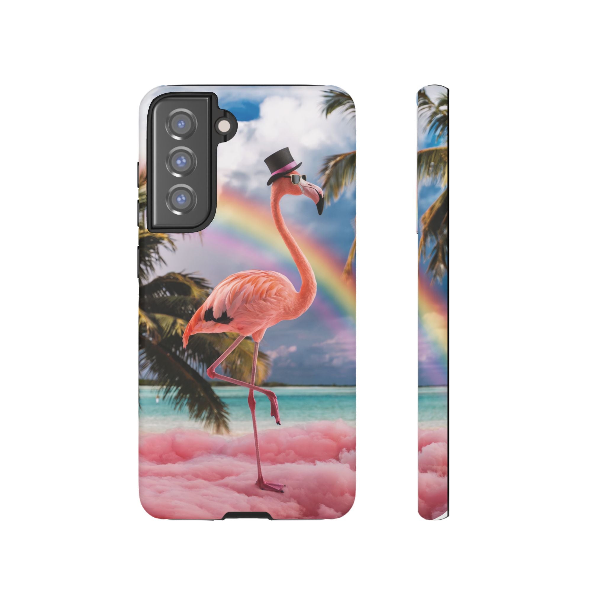 A dreamy, tropical day in your pocket — a debonair flamingo balances on cotton‑candy clouds beneath a soft pastel rainbow.... Read more
