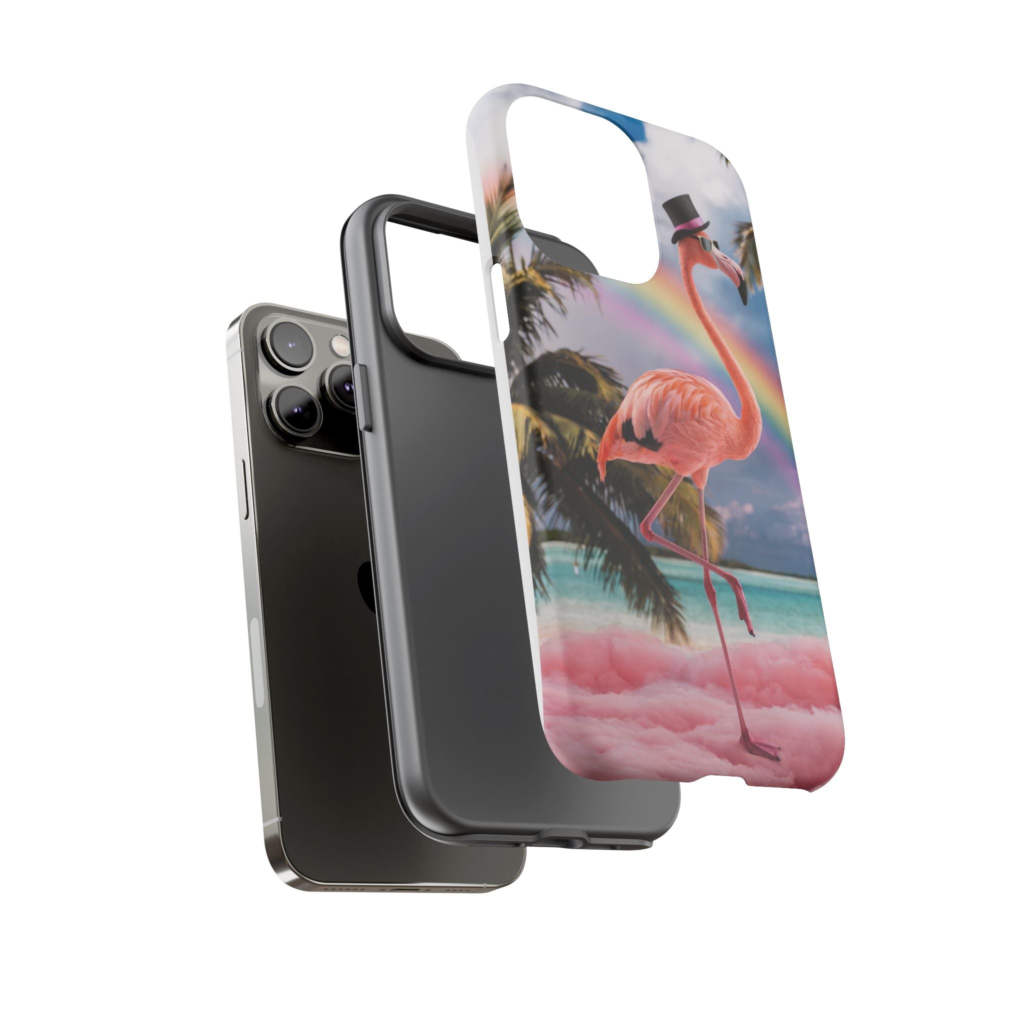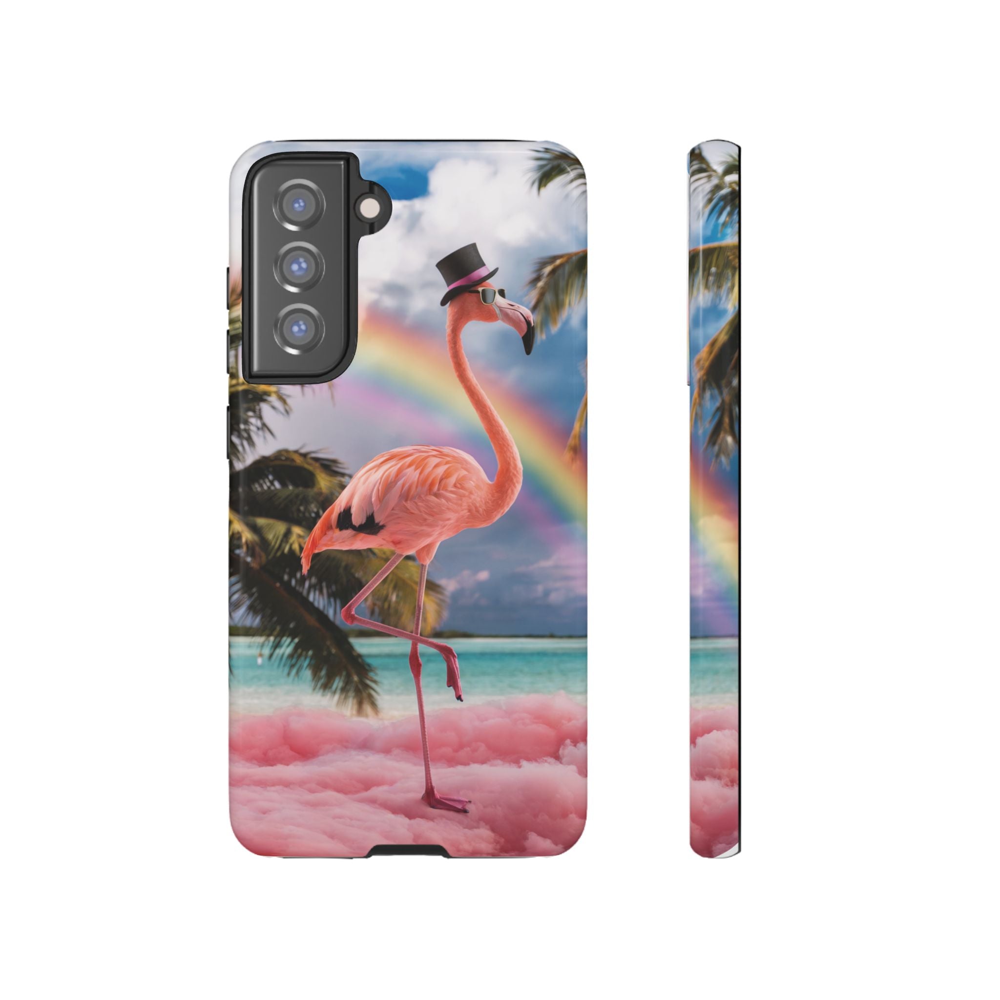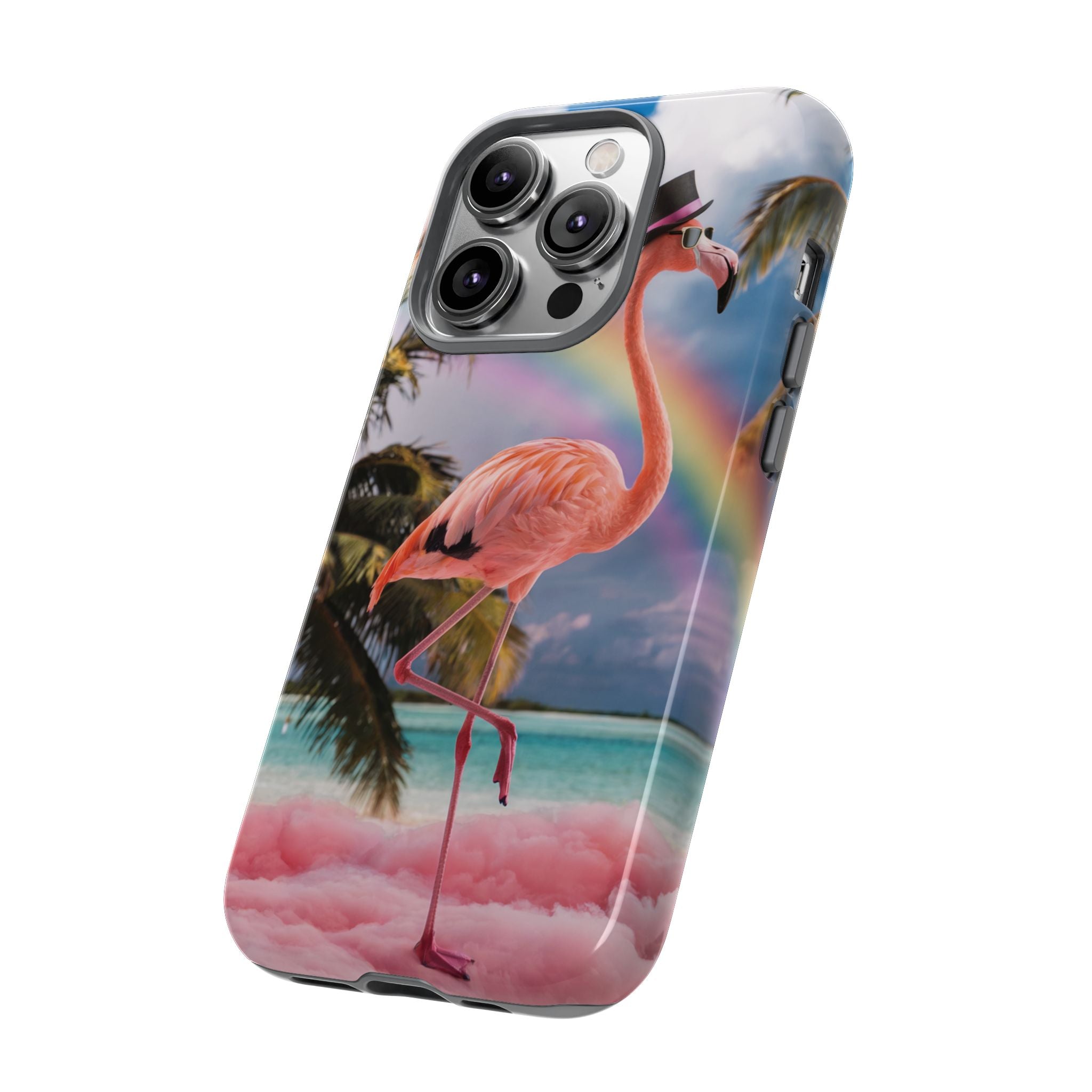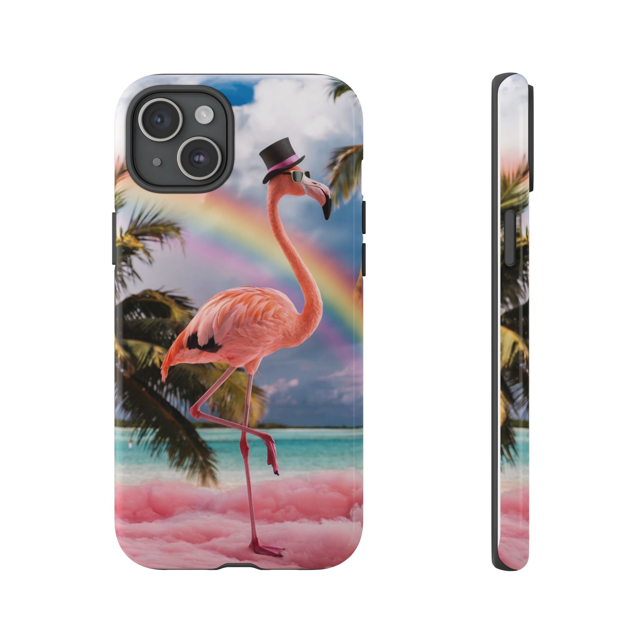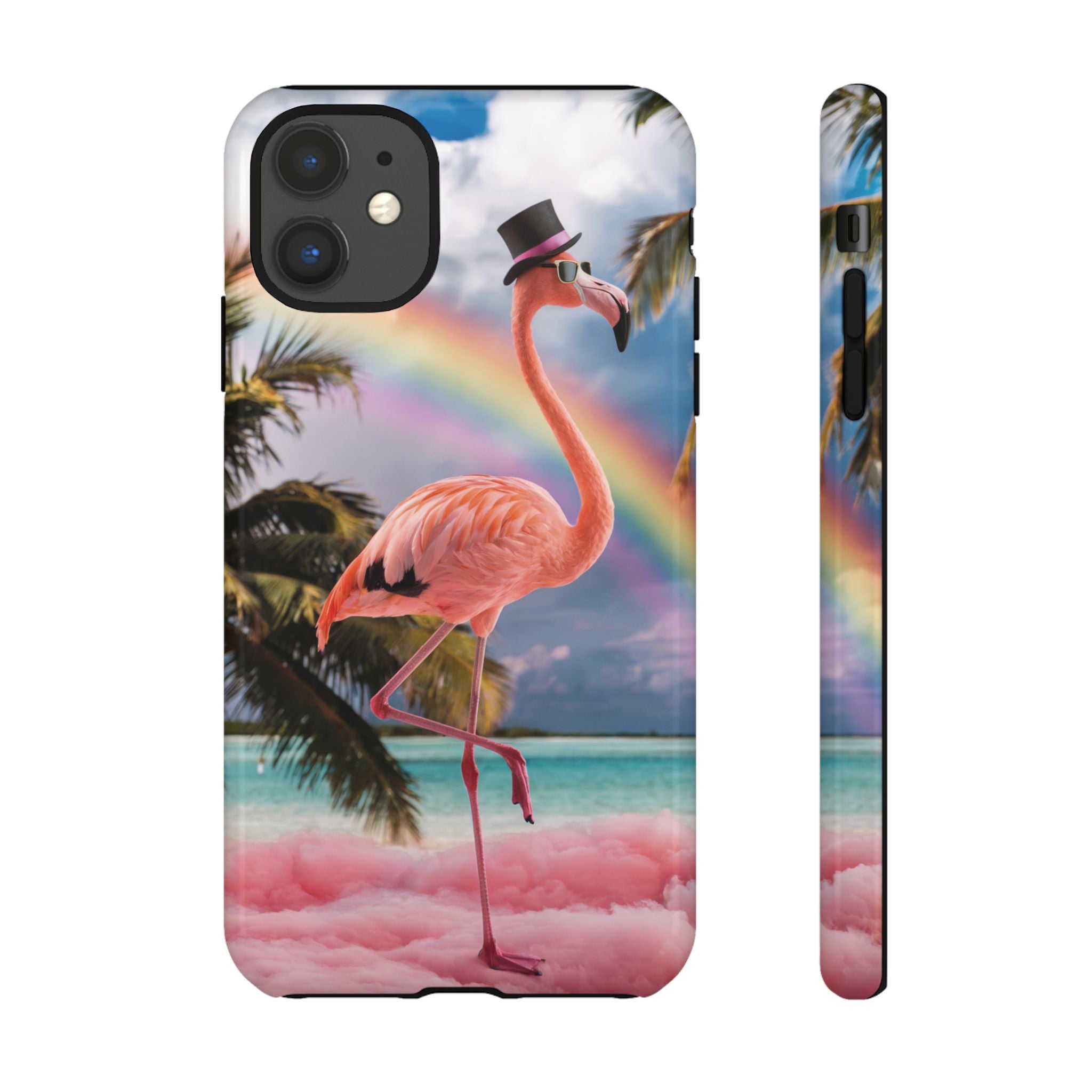 A dreamy, tropical day in your pocket — a debonair flamingo balances on cotton‑candy clouds beneath a soft pastel rainbow.... Read more