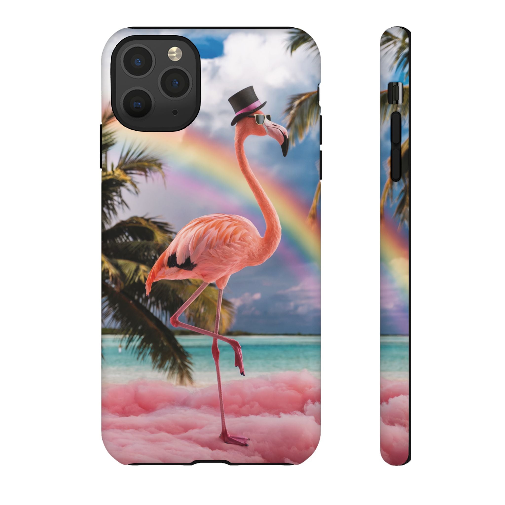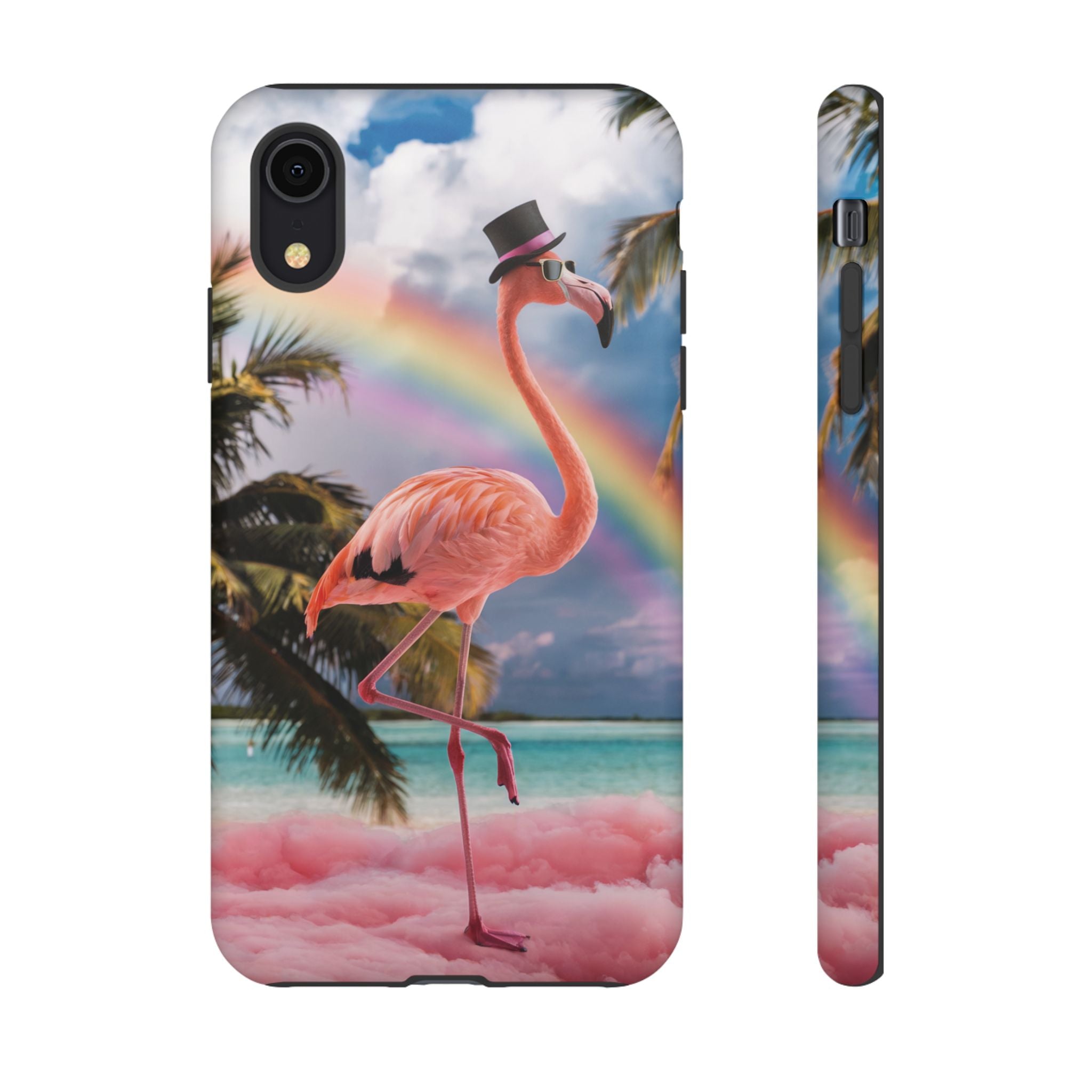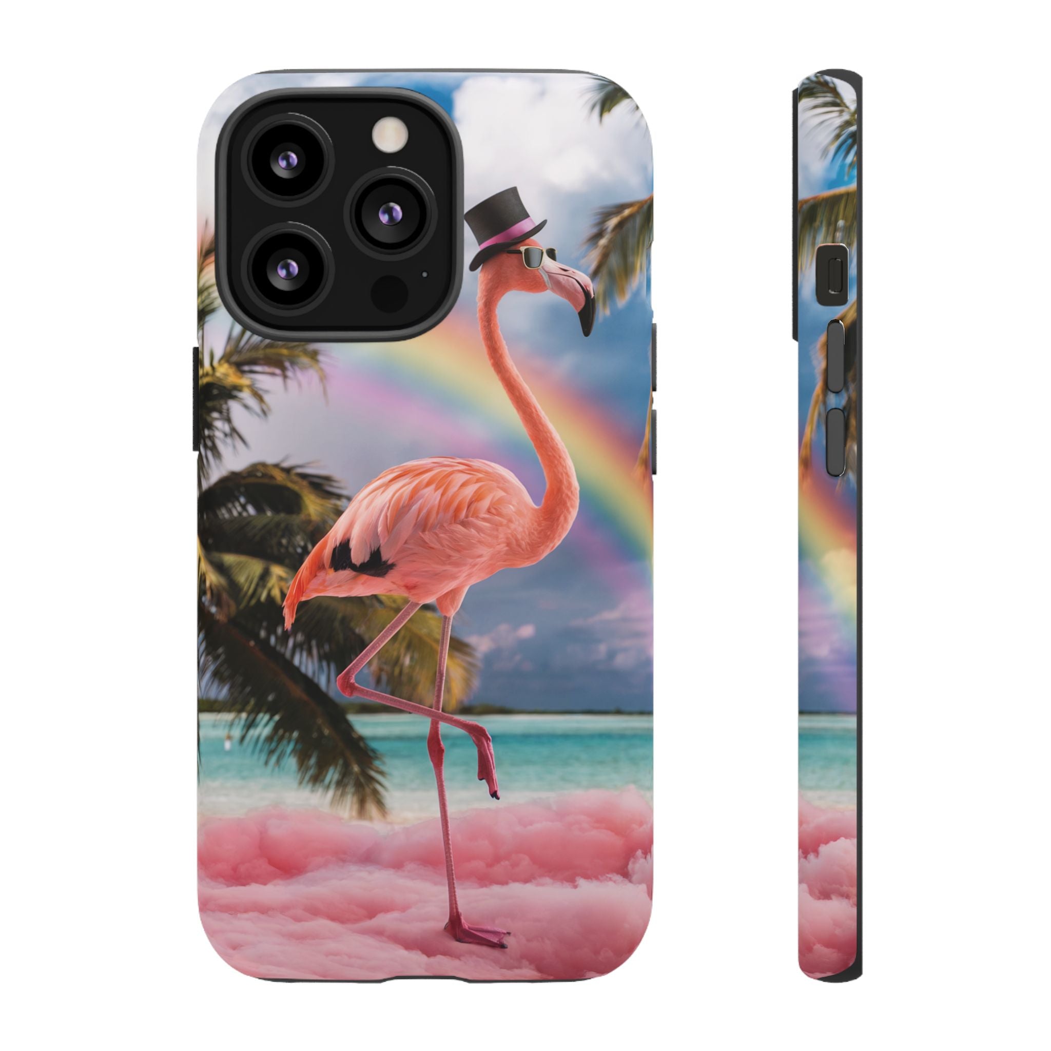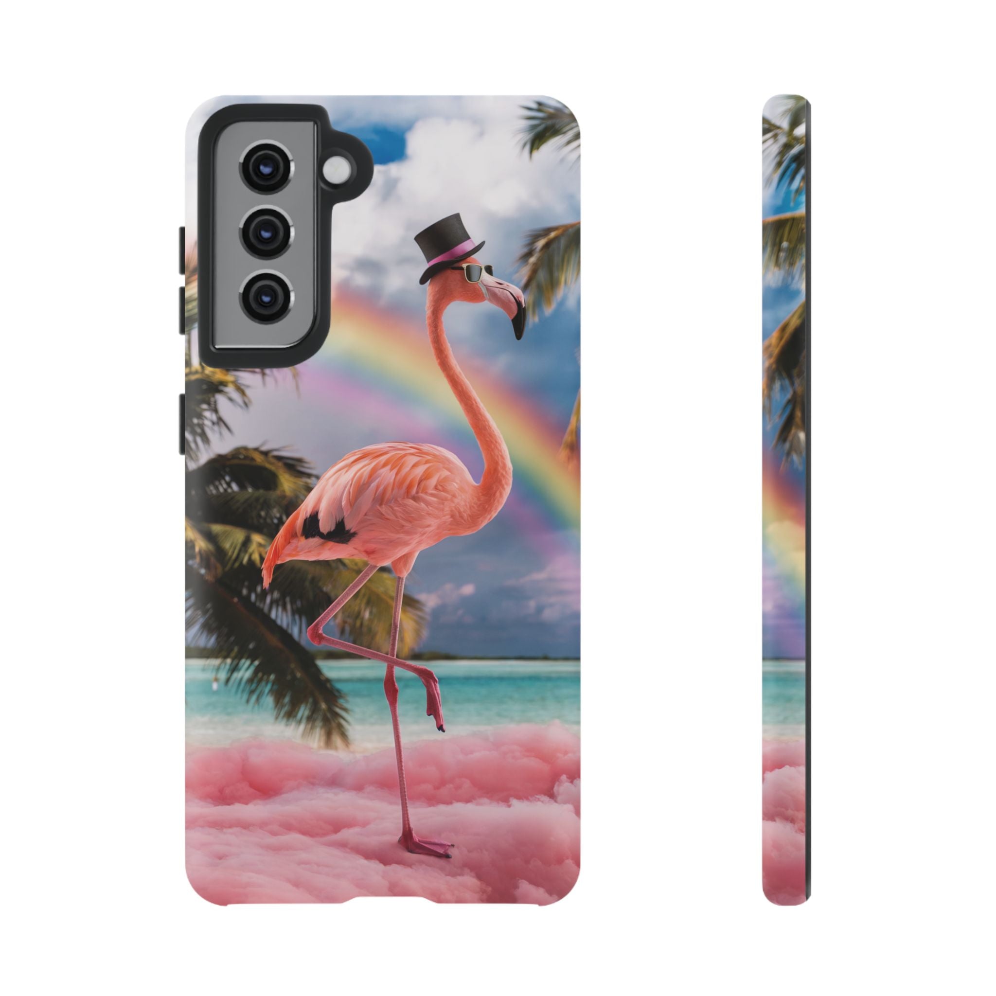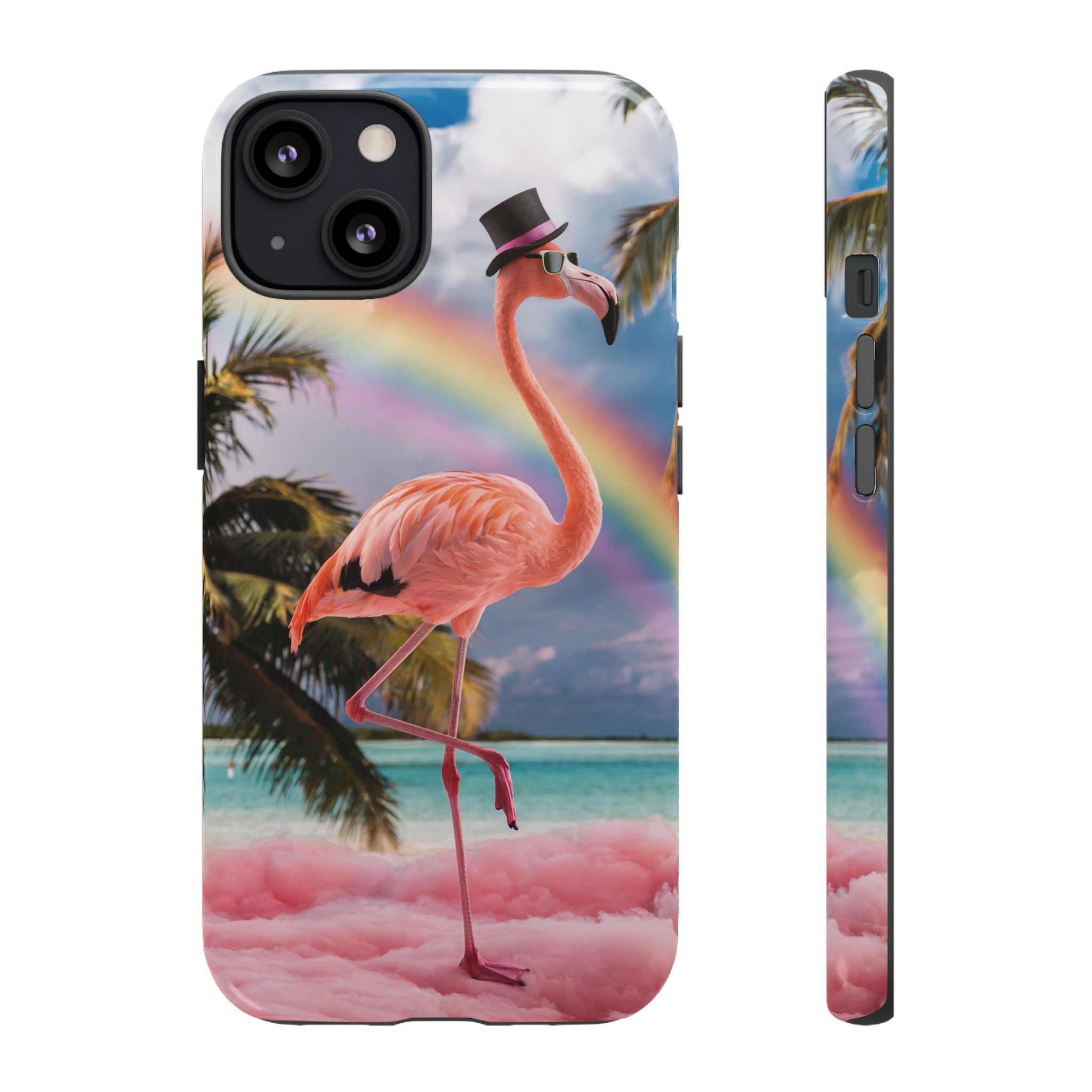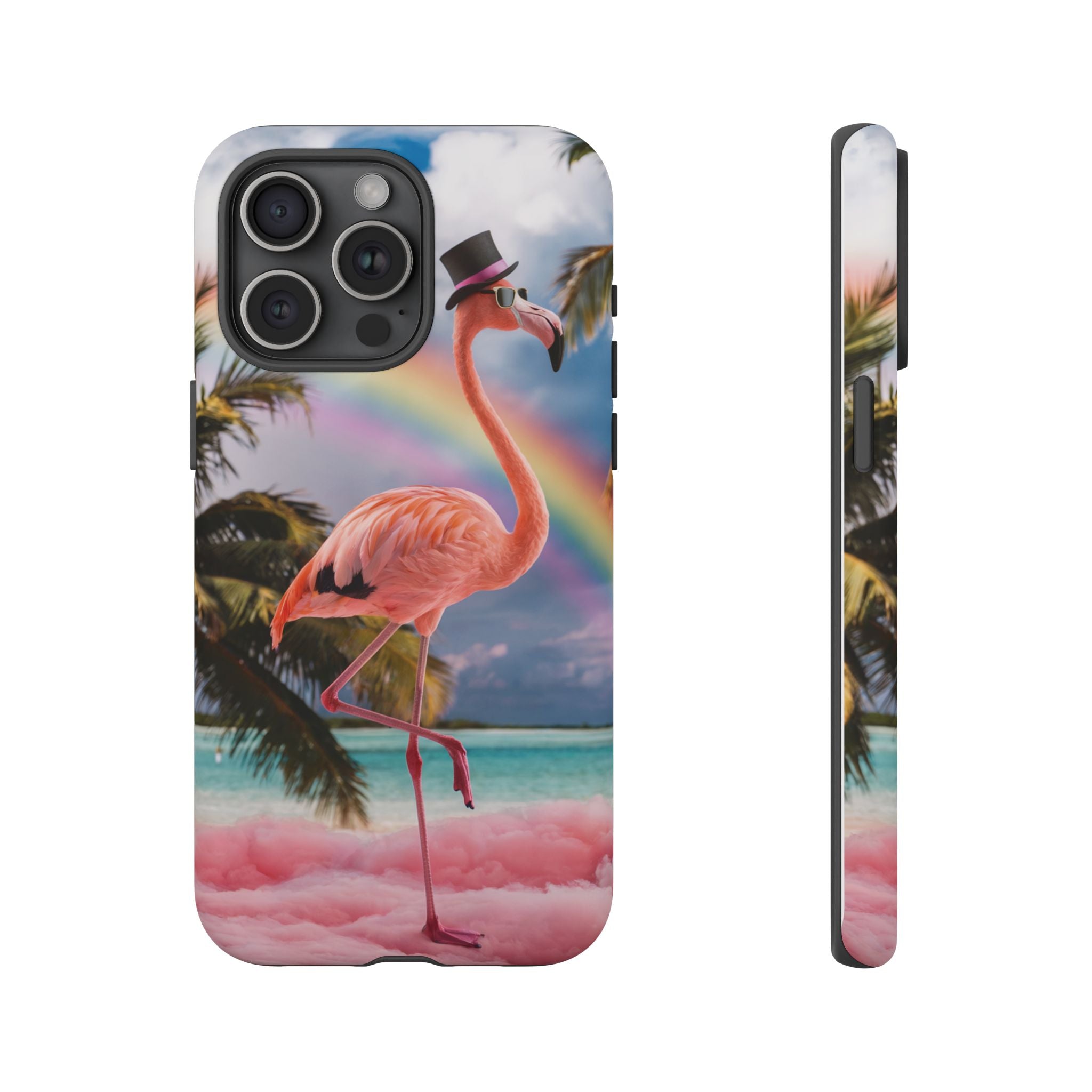 A dreamy, tropical day in your pocket — a debonair flamingo balances on cotton‑candy clouds beneath a soft pastel rainbow.... Read more
