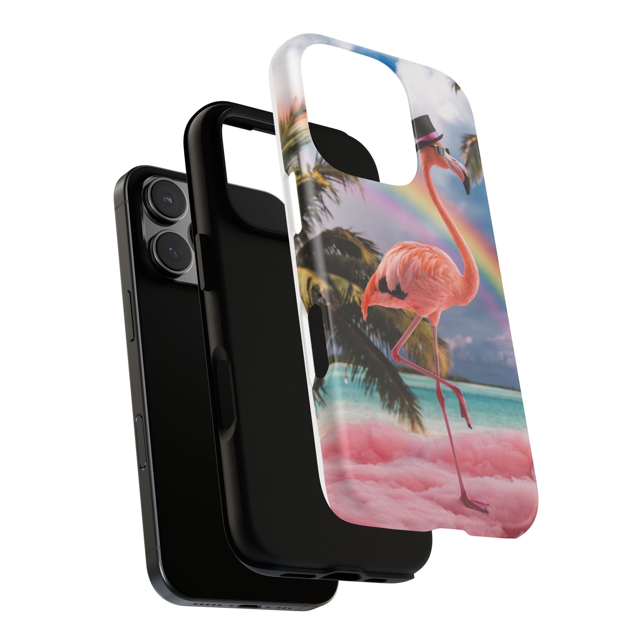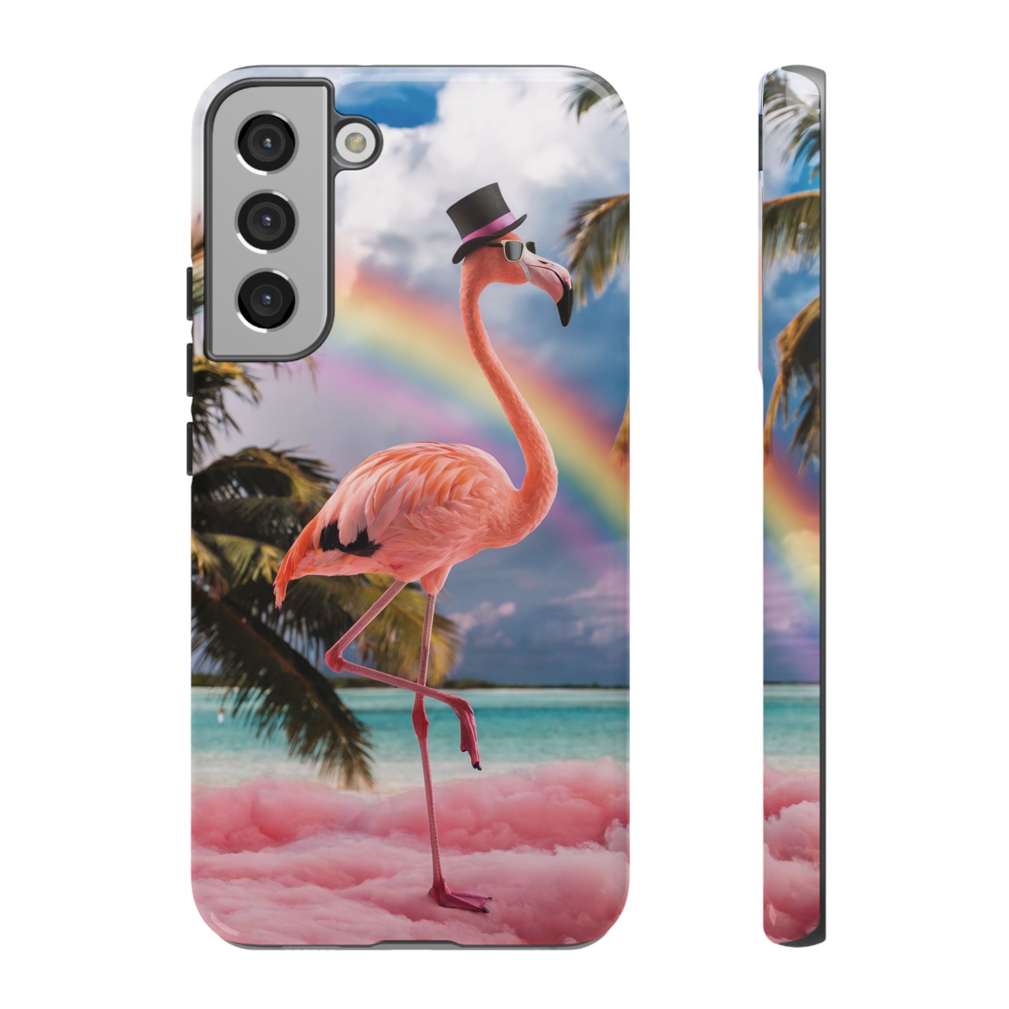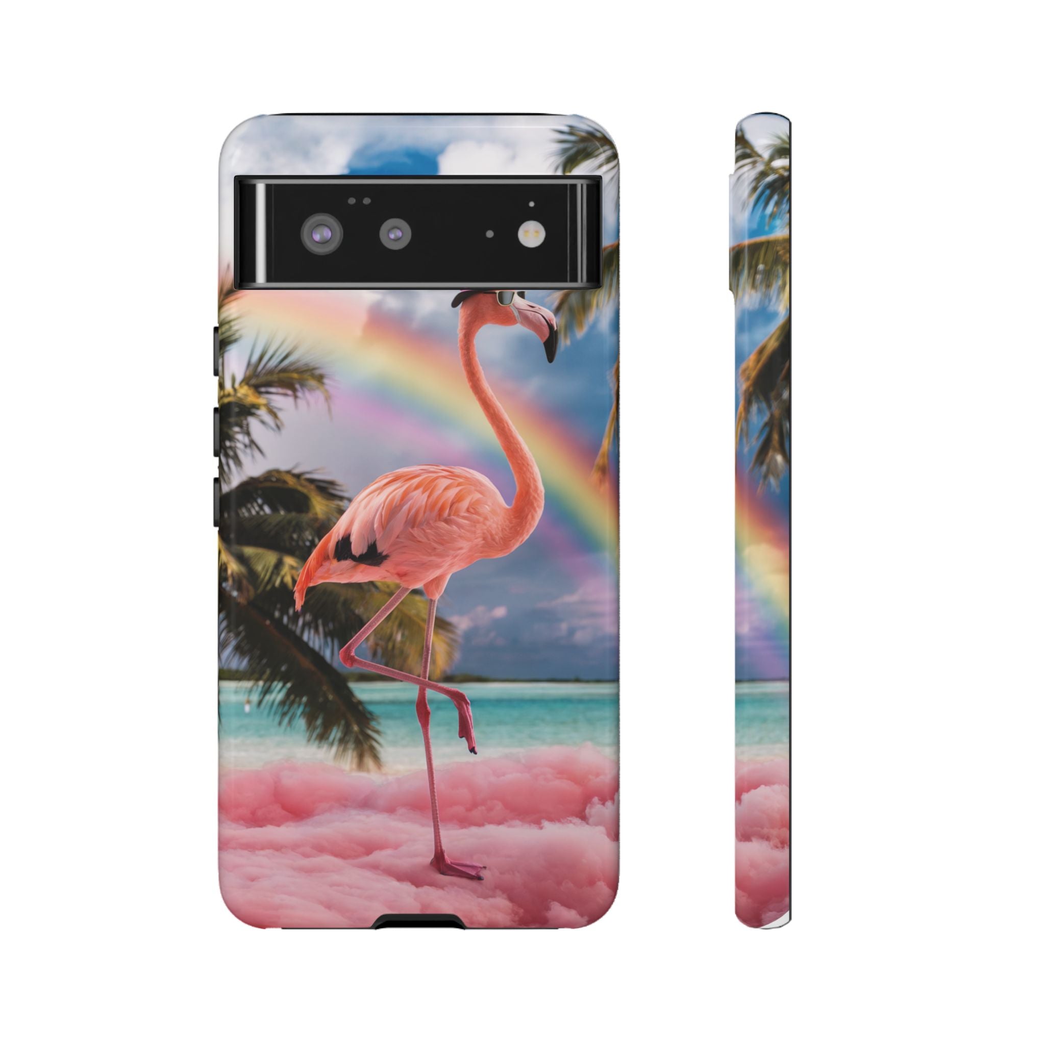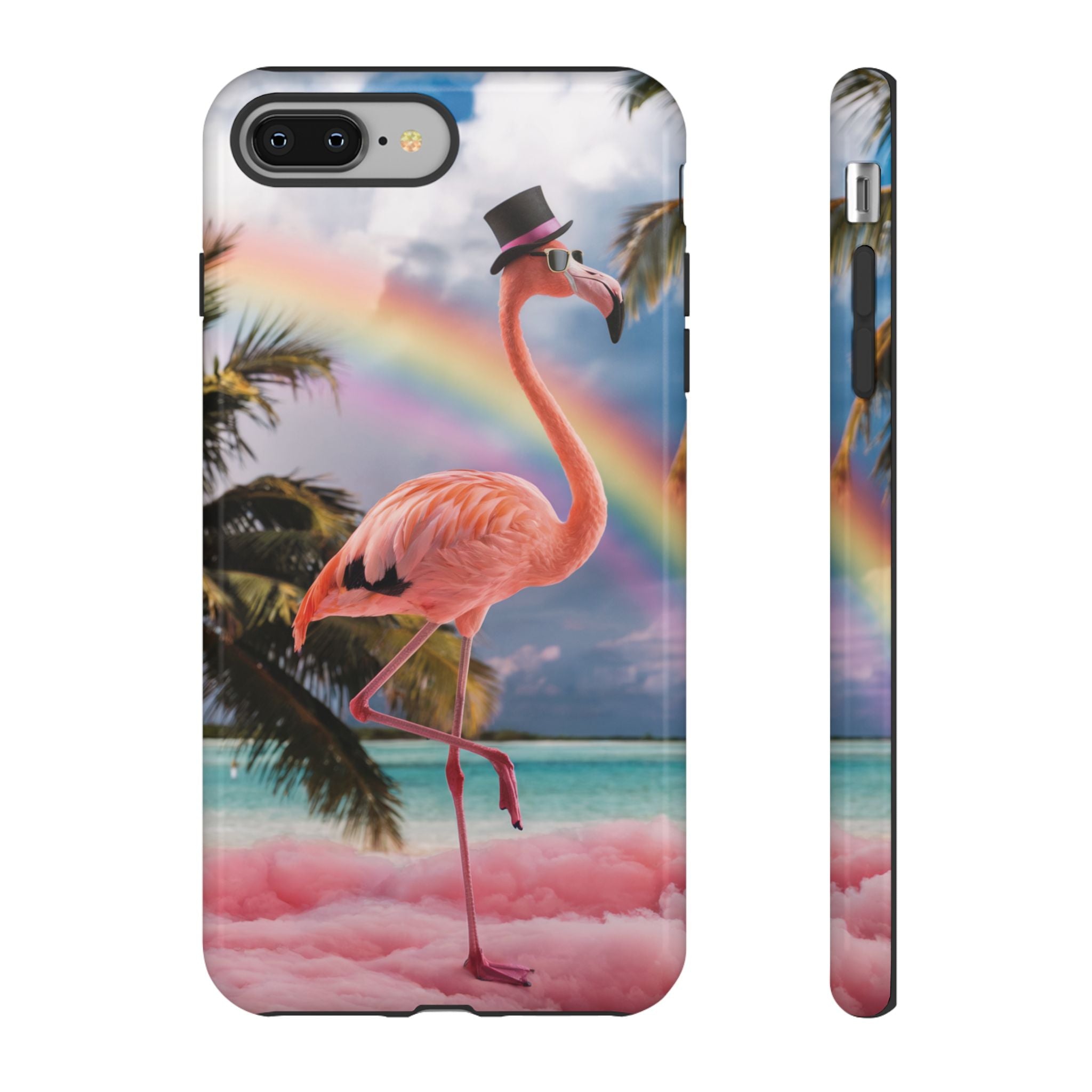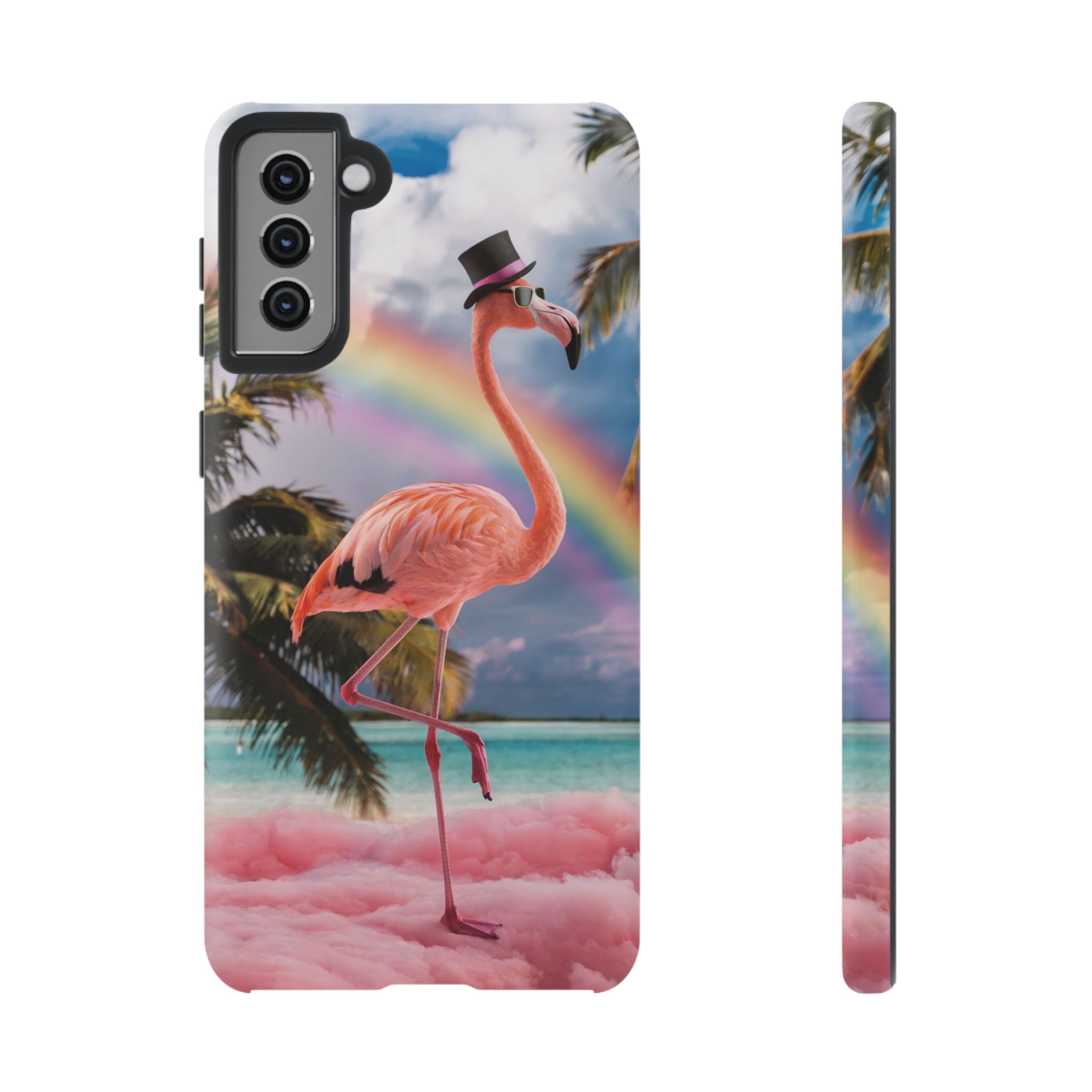 A dreamy, tropical day in your pocket — a debonair flamingo balances on cotton‑candy clouds beneath a soft pastel rainbow.... Read more