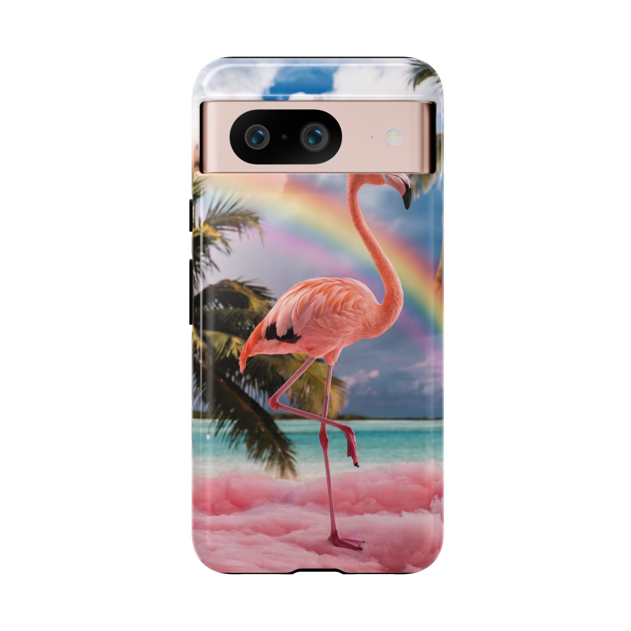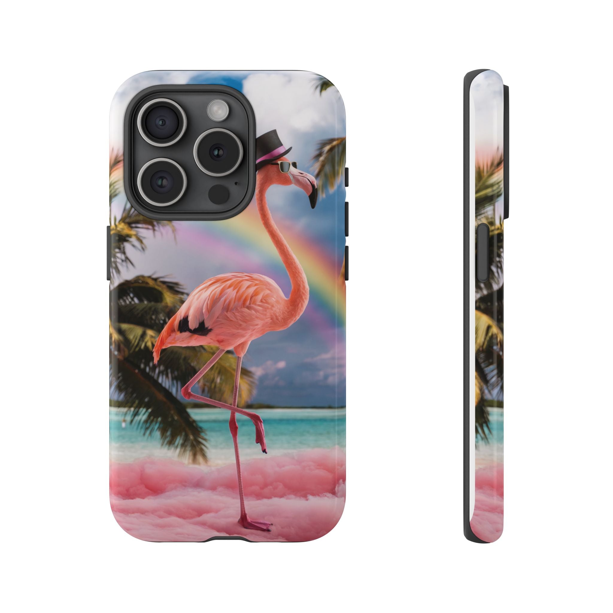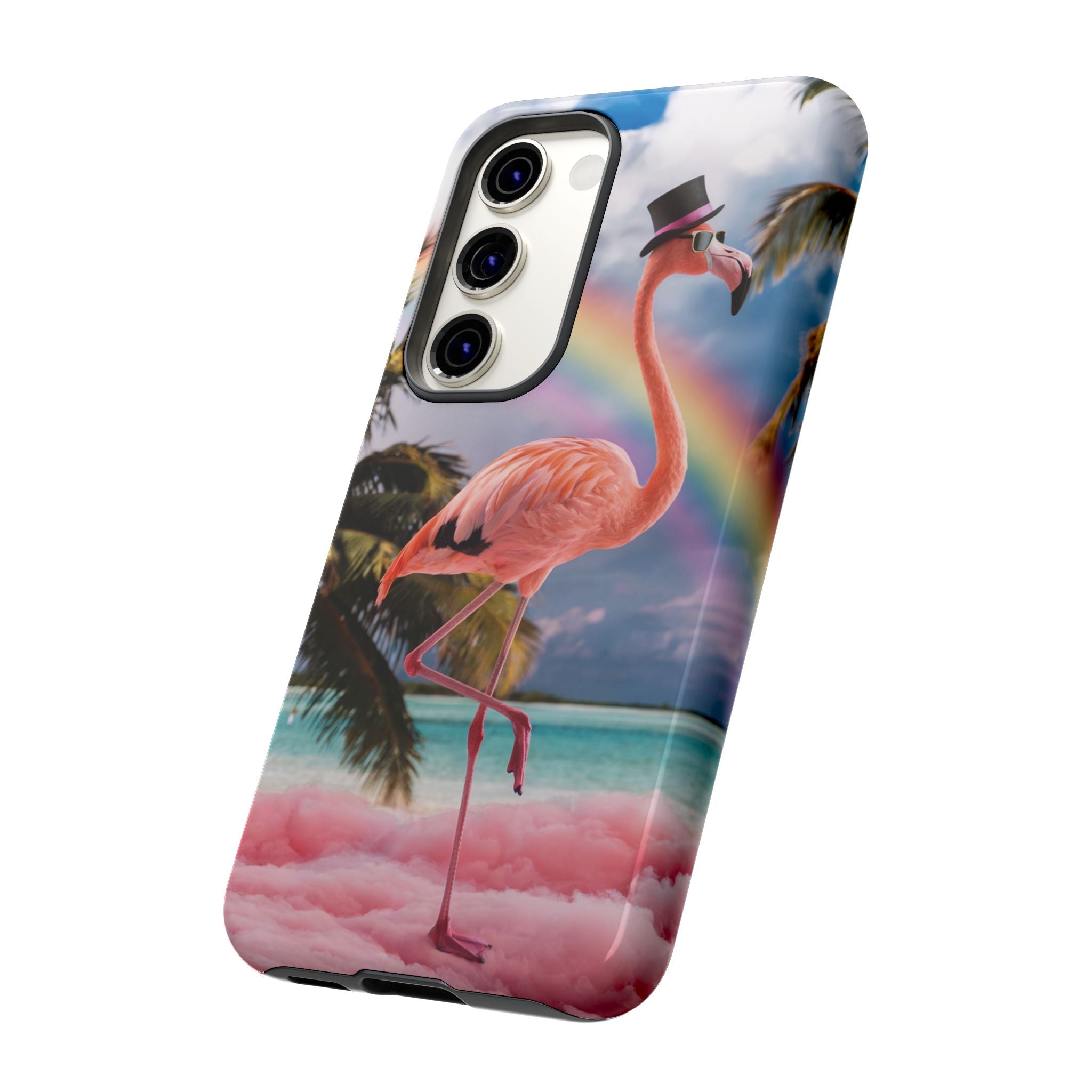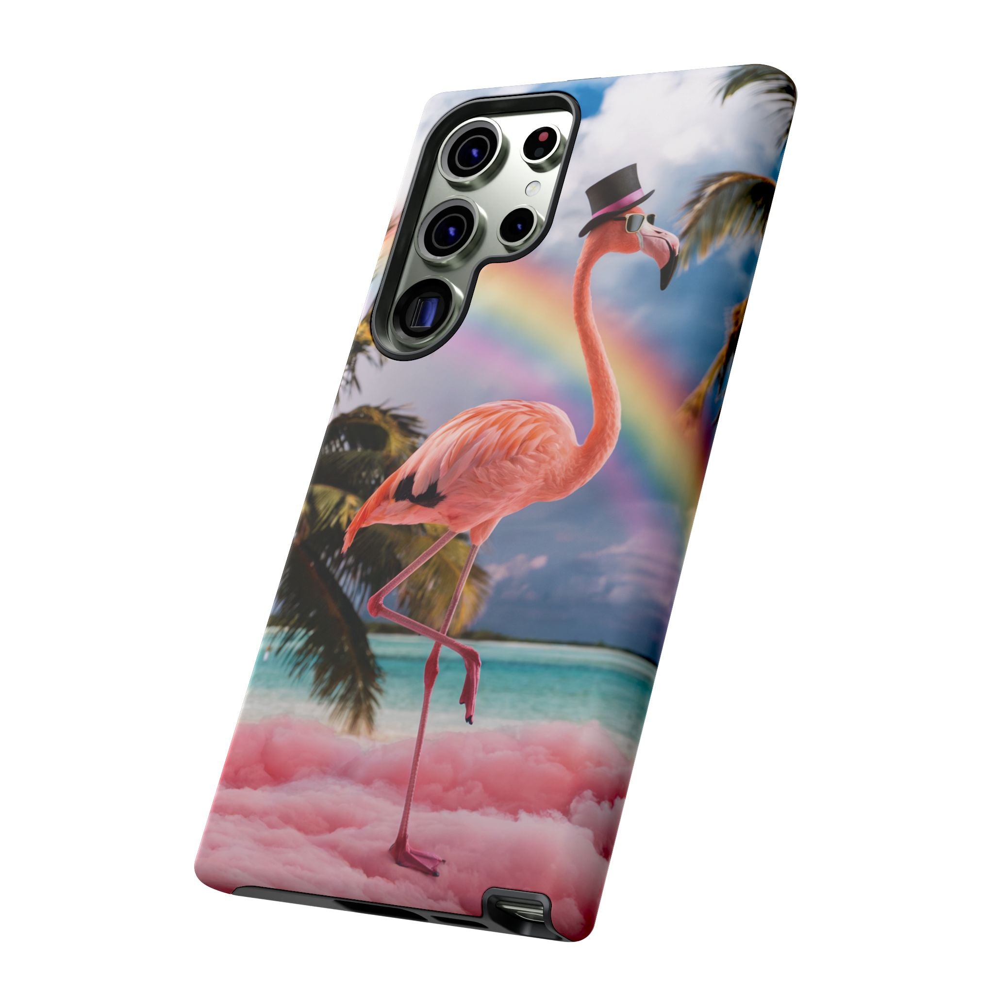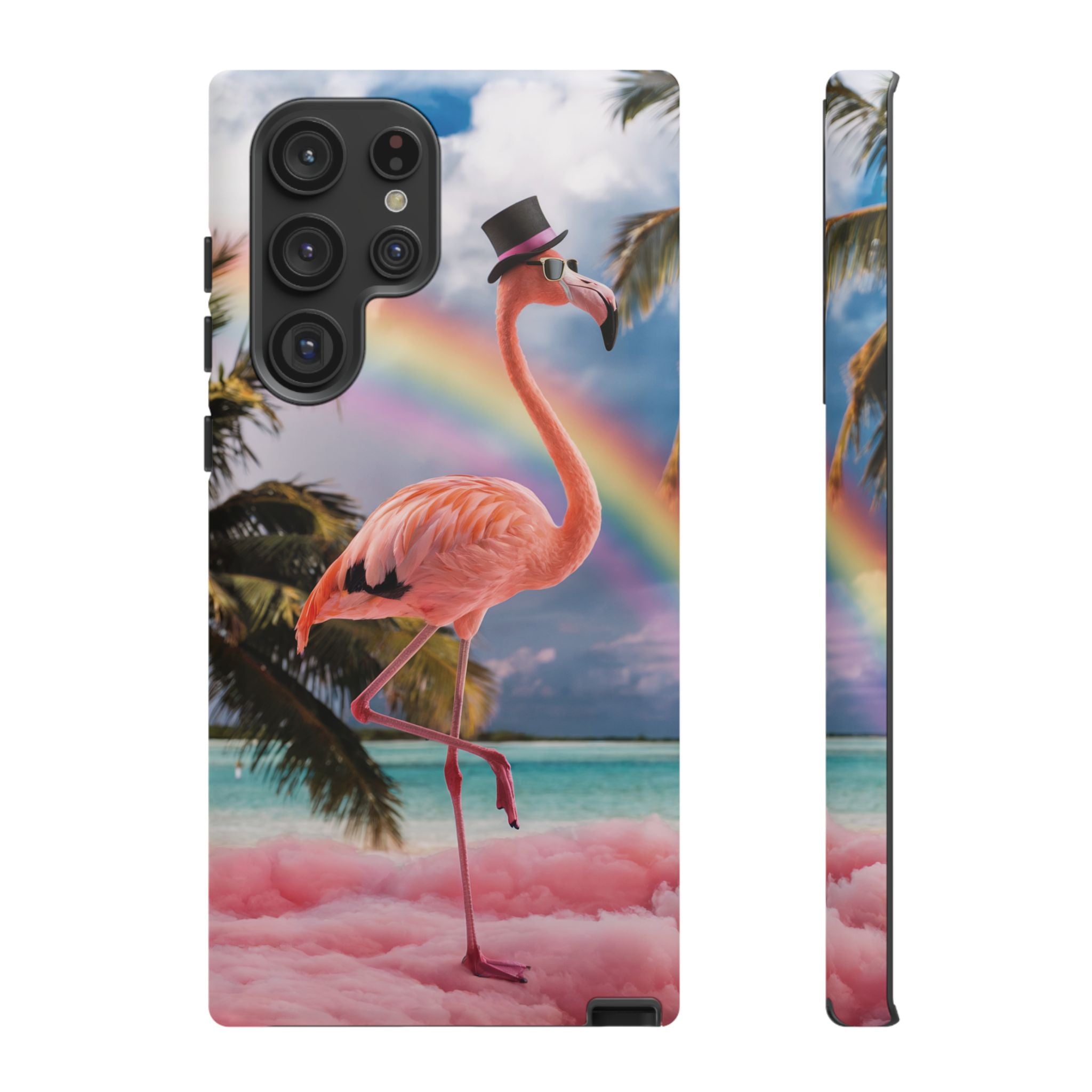 A dreamy, tropical day in your pocket — a debonair flamingo balances on cotton‑candy clouds beneath a soft pastel rainbow.... Read more