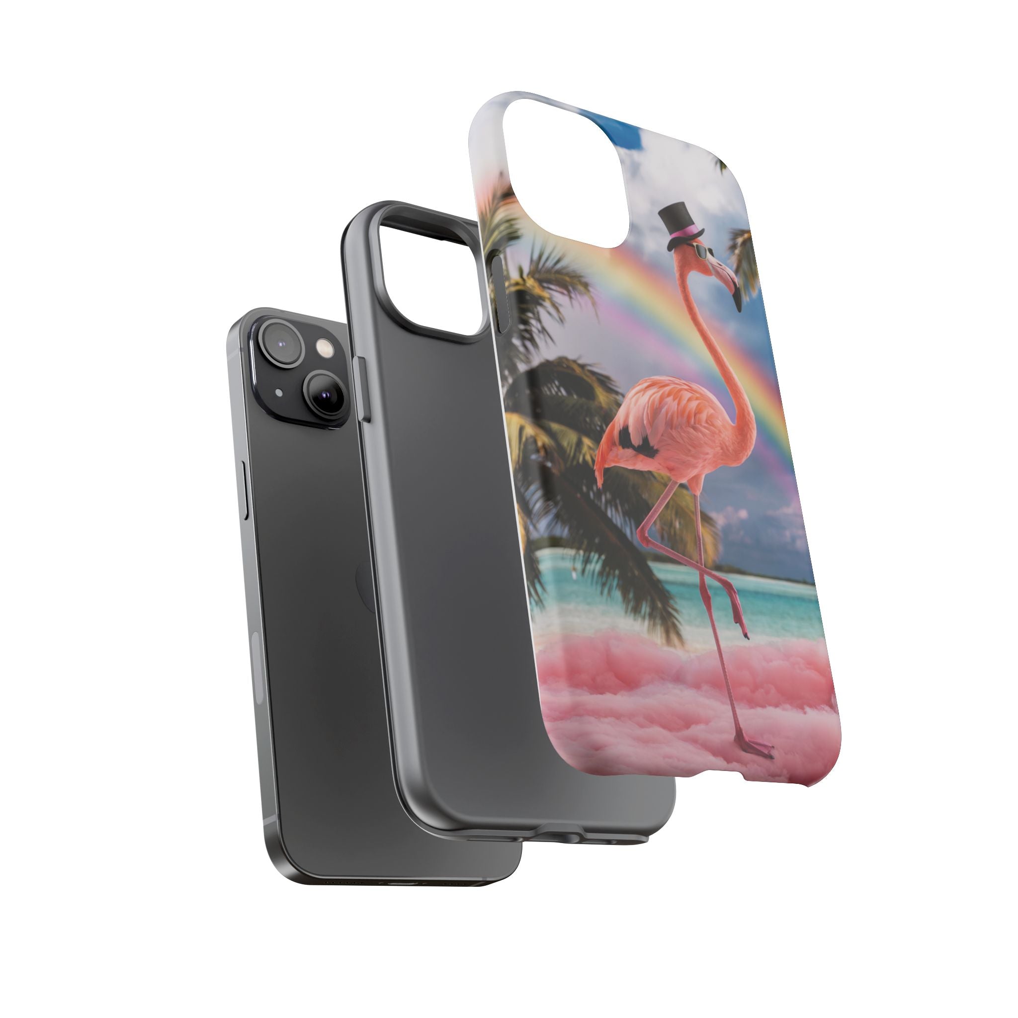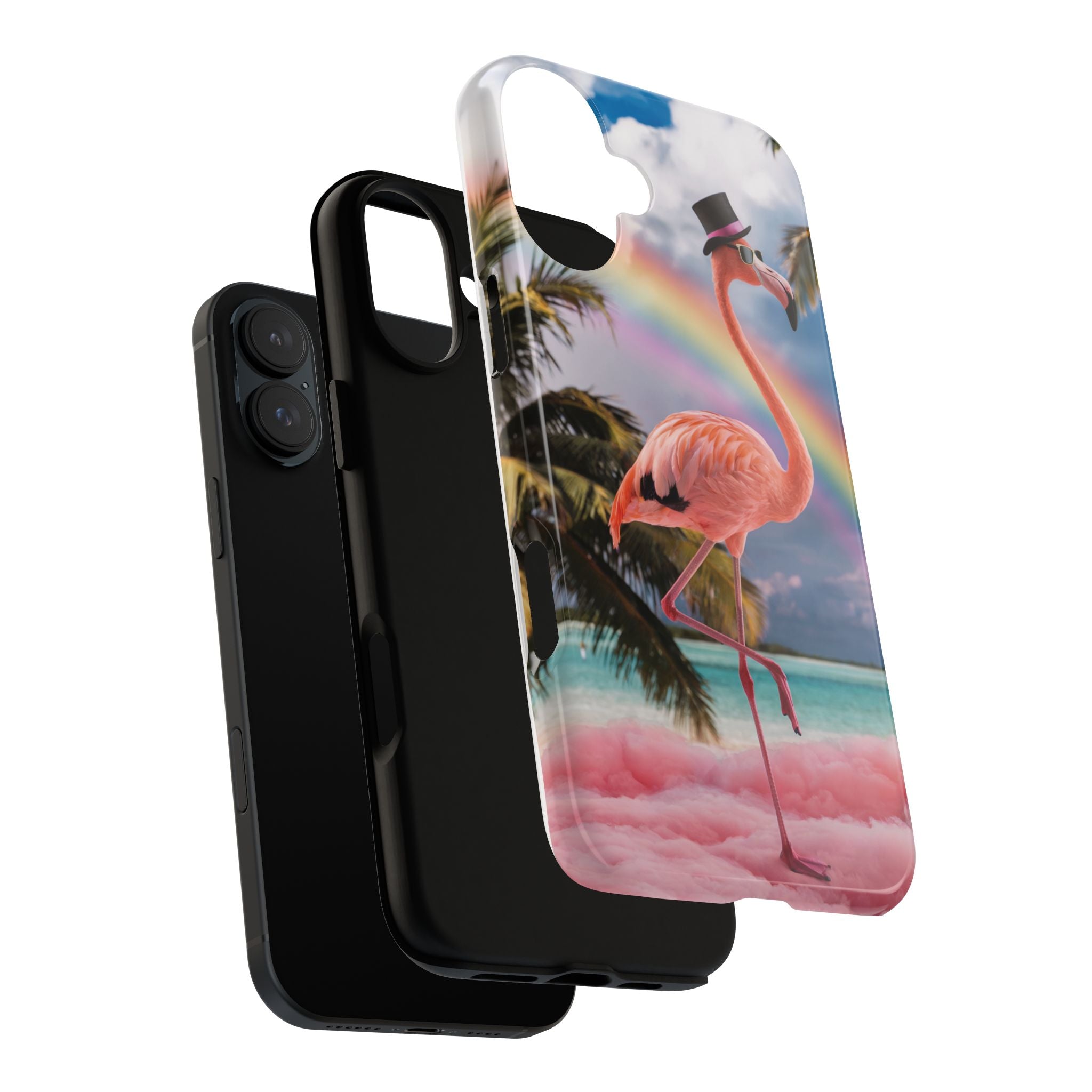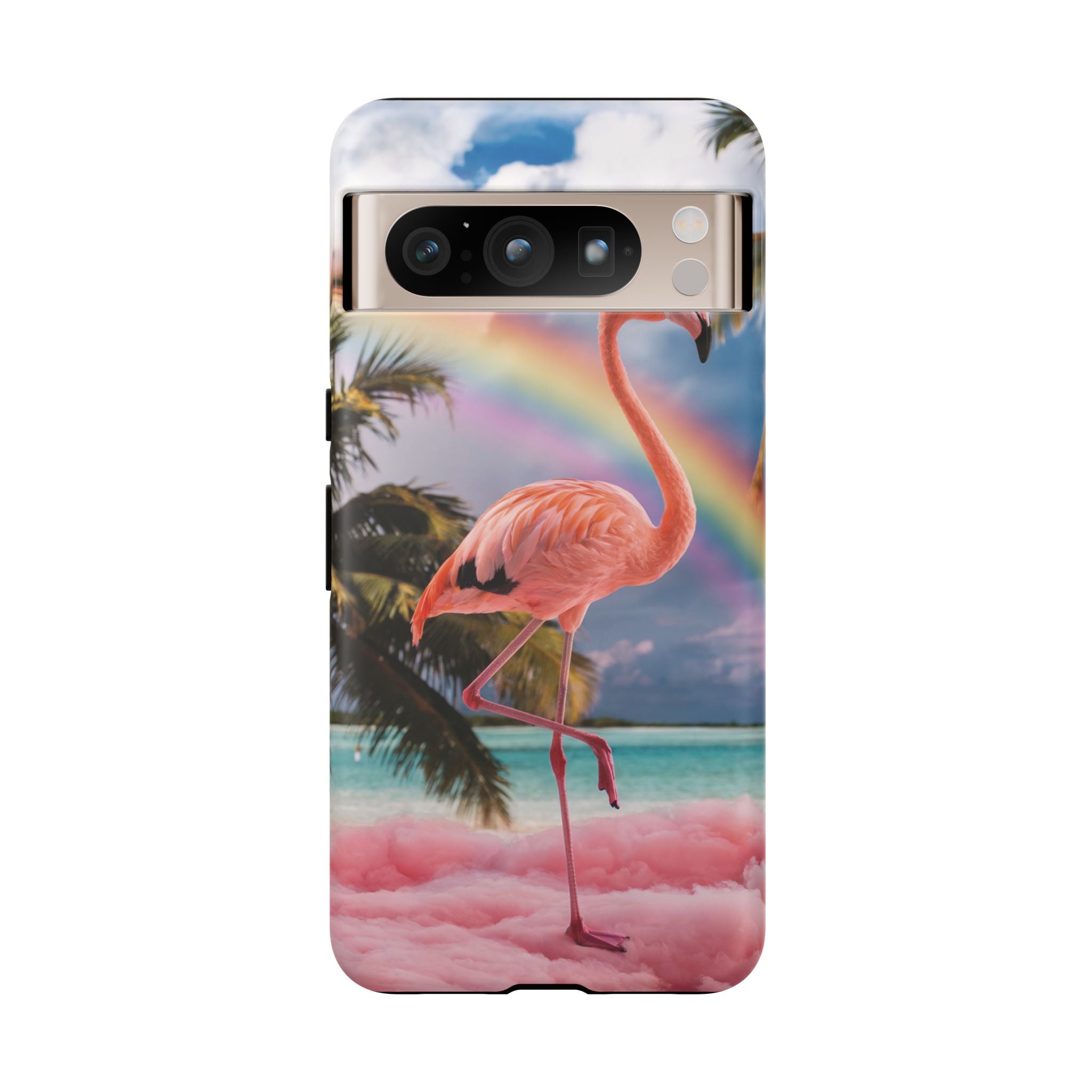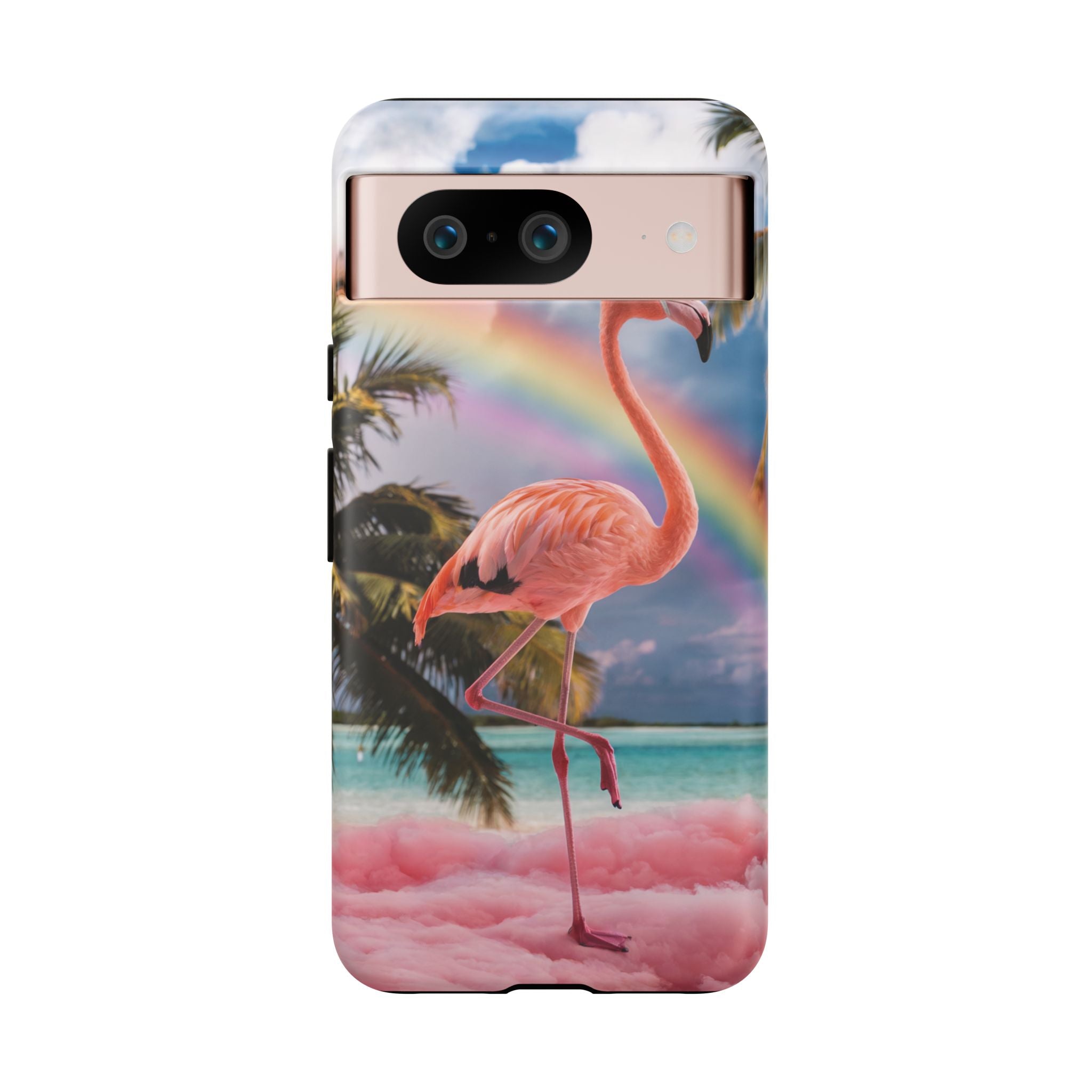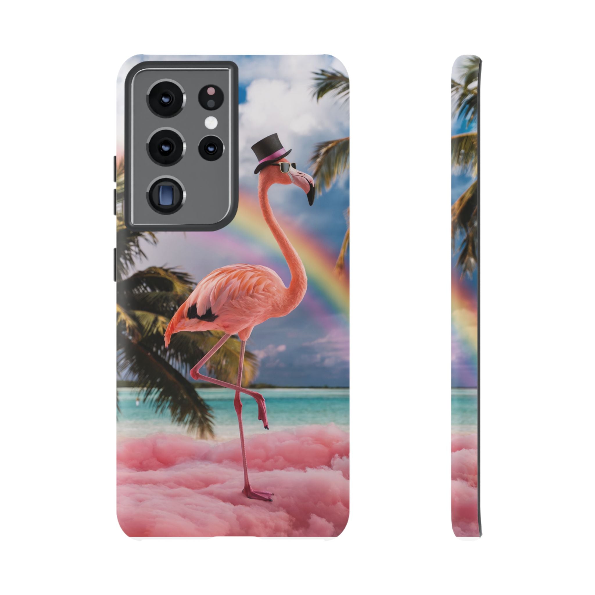 A dreamy, tropical day in your pocket — a debonair flamingo balances on cotton‑candy clouds beneath a soft pastel rainbow.... Read more