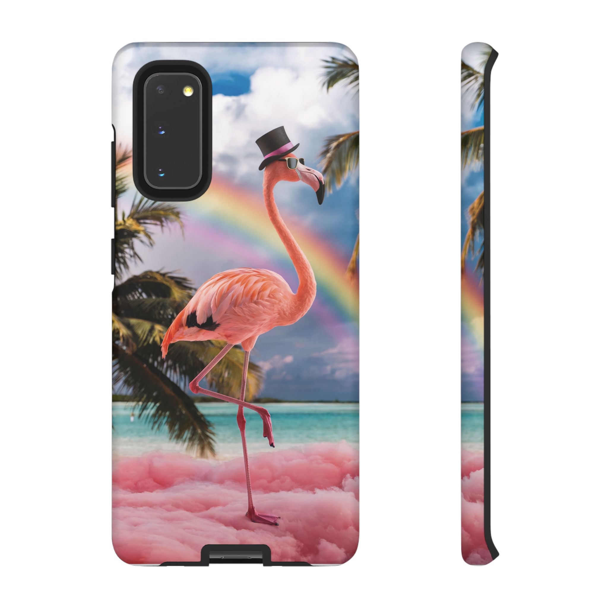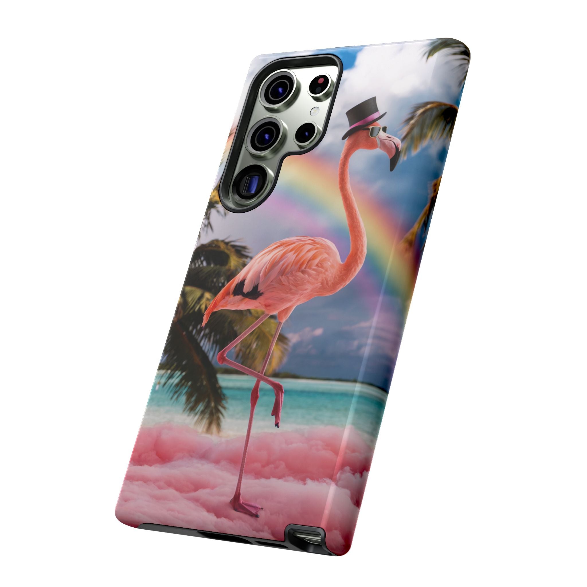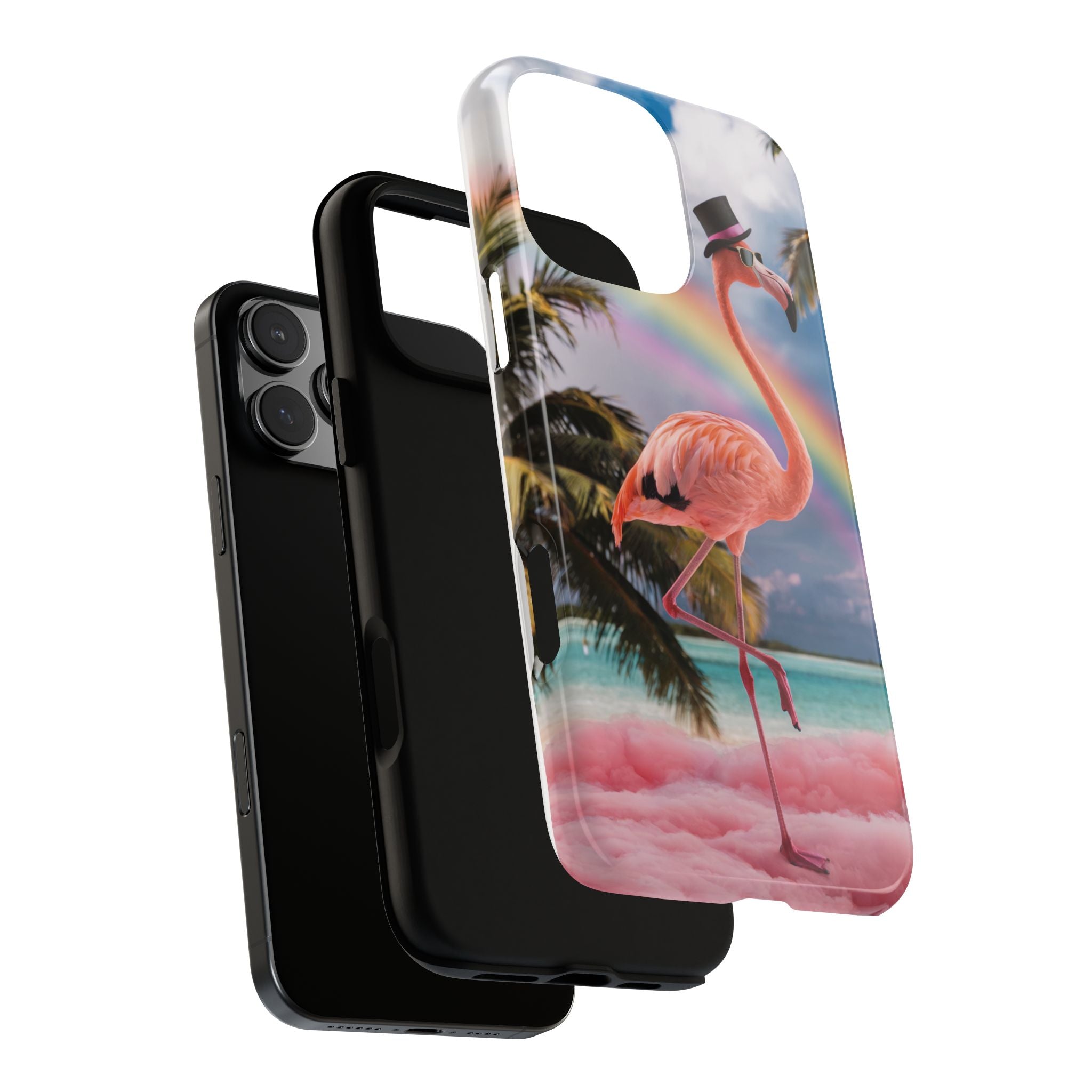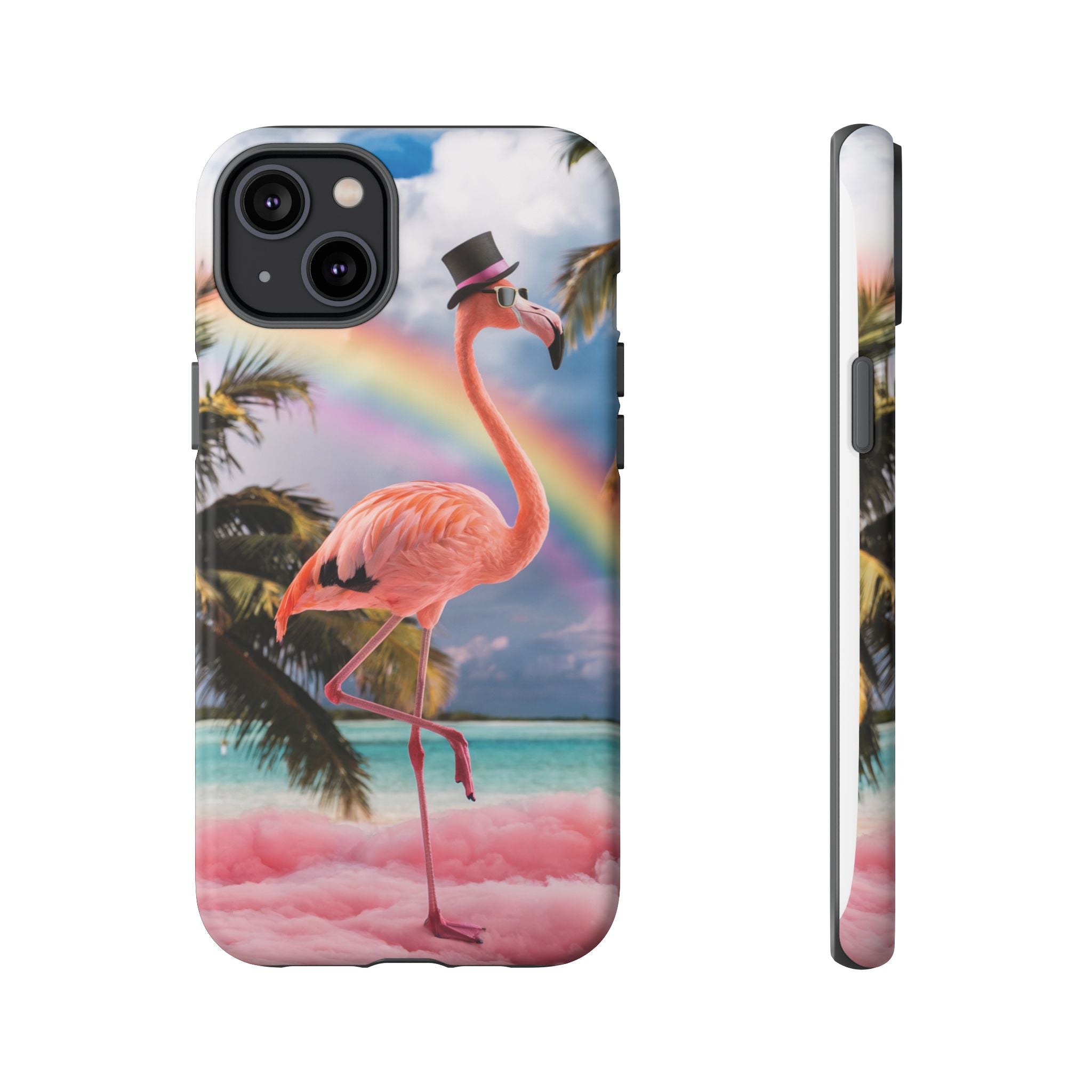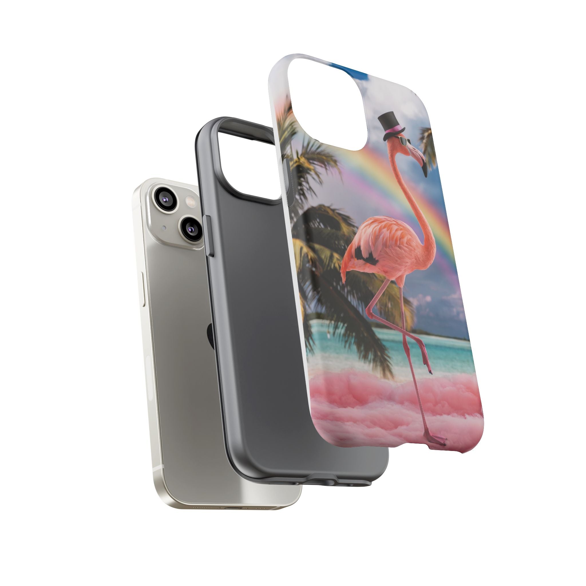 A dreamy, tropical day in your pocket — a debonair flamingo balances on cotton‑candy clouds beneath a soft pastel rainbow.... Read more