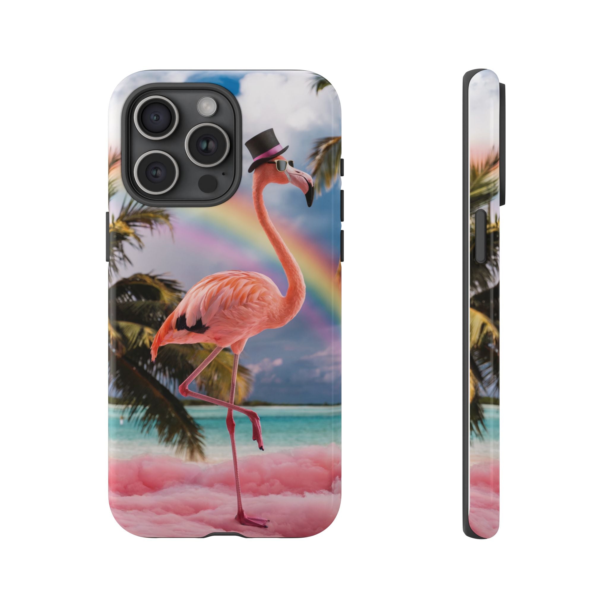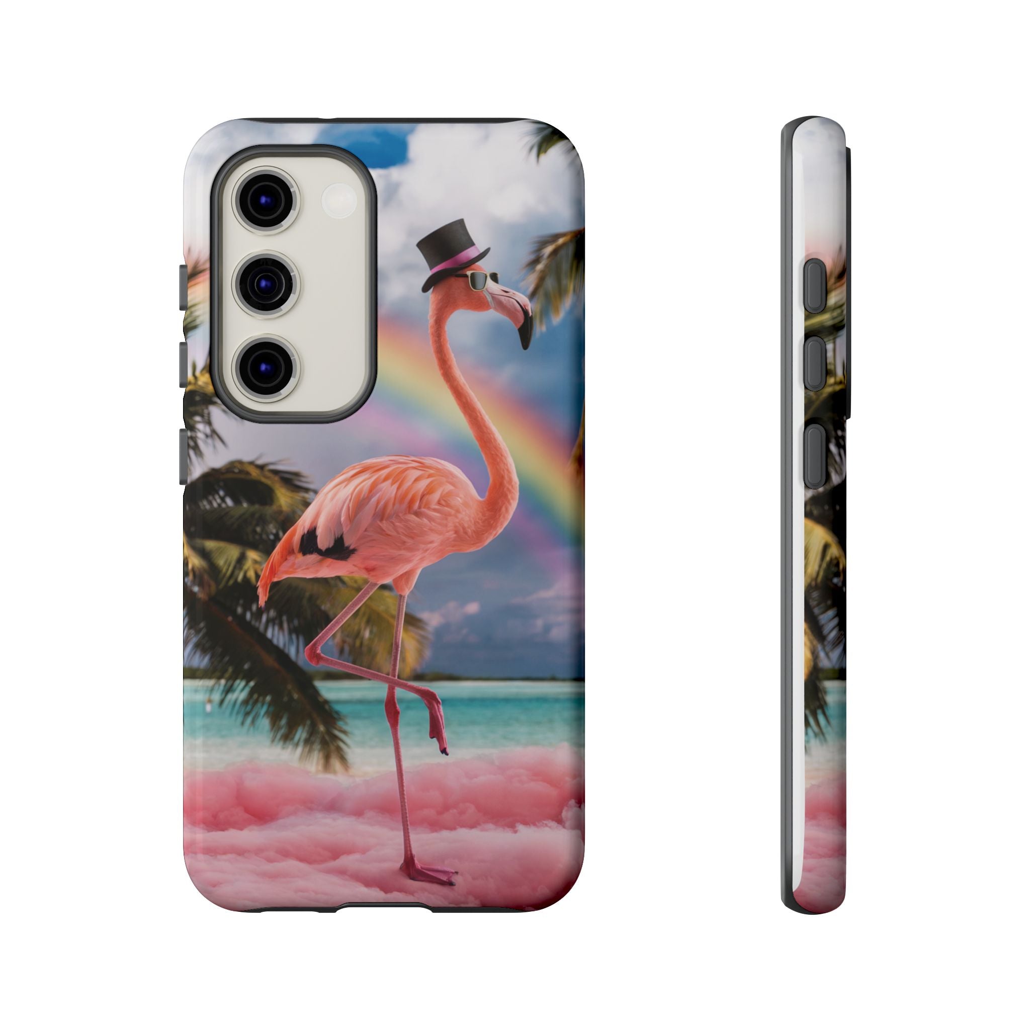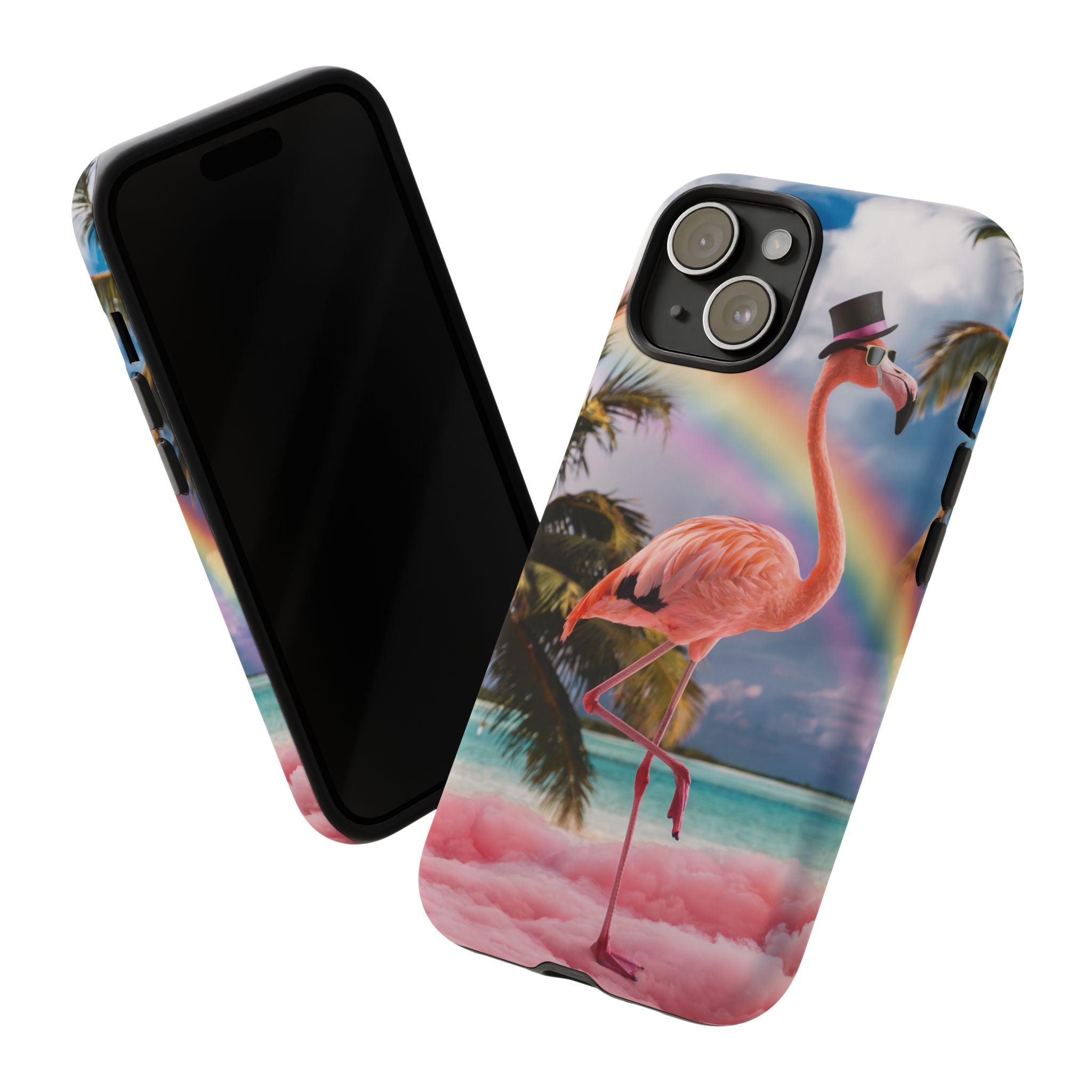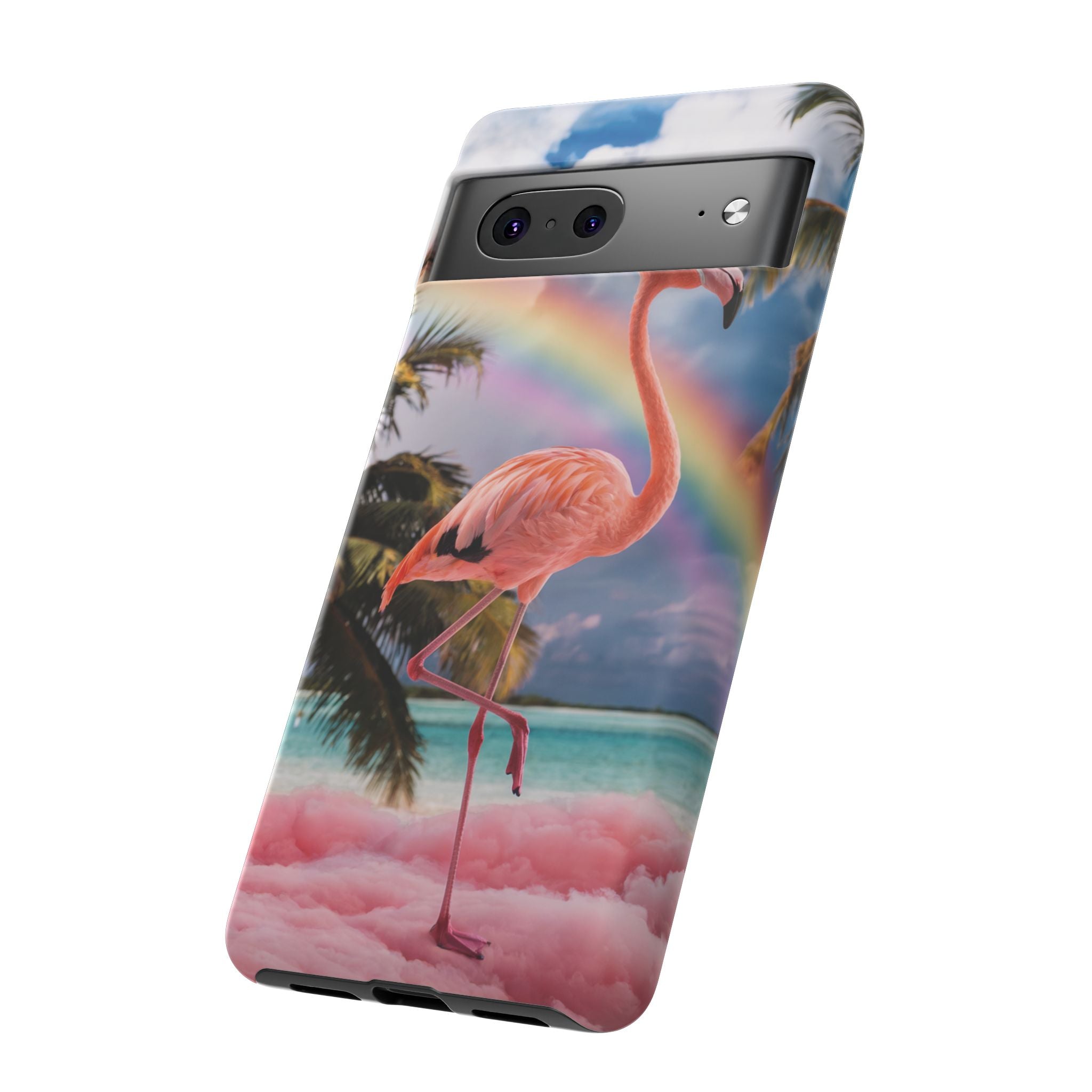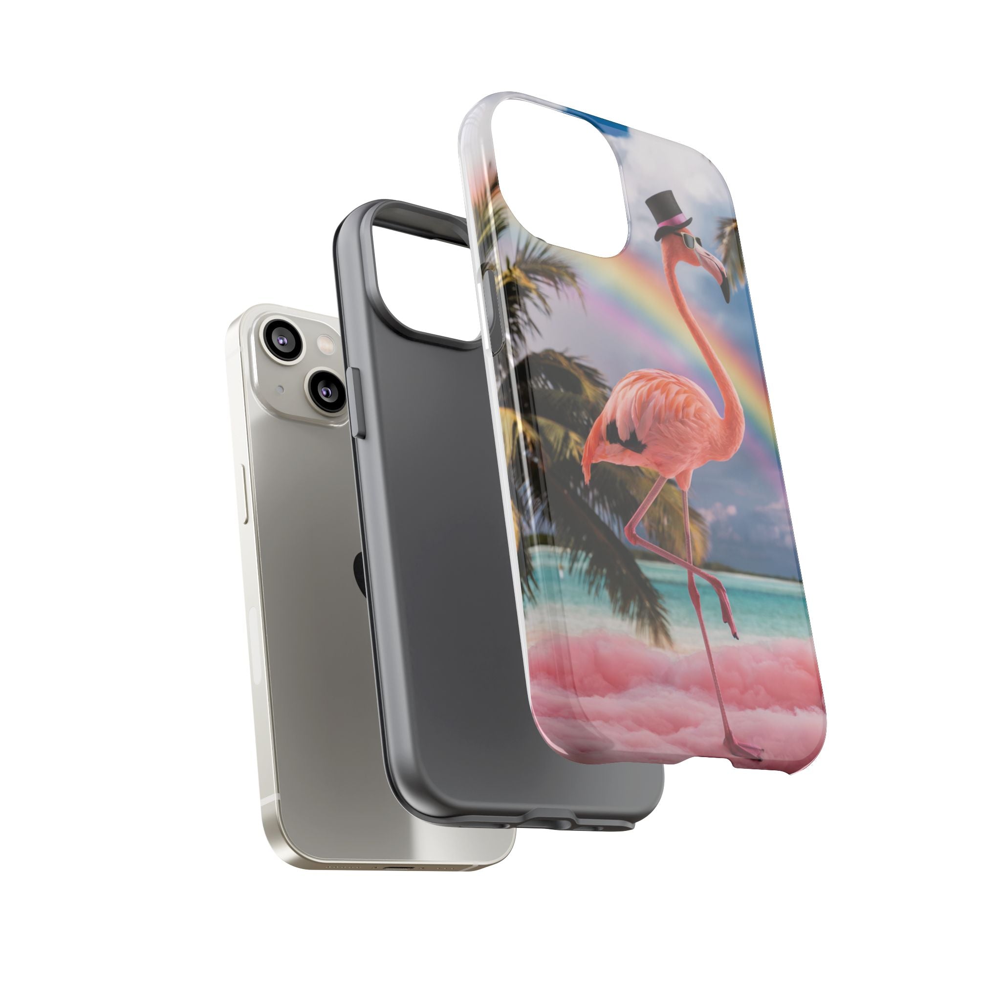 A dreamy, tropical day in your pocket — a debonair flamingo balances on cotton‑candy clouds beneath a soft pastel rainbow.... Read more