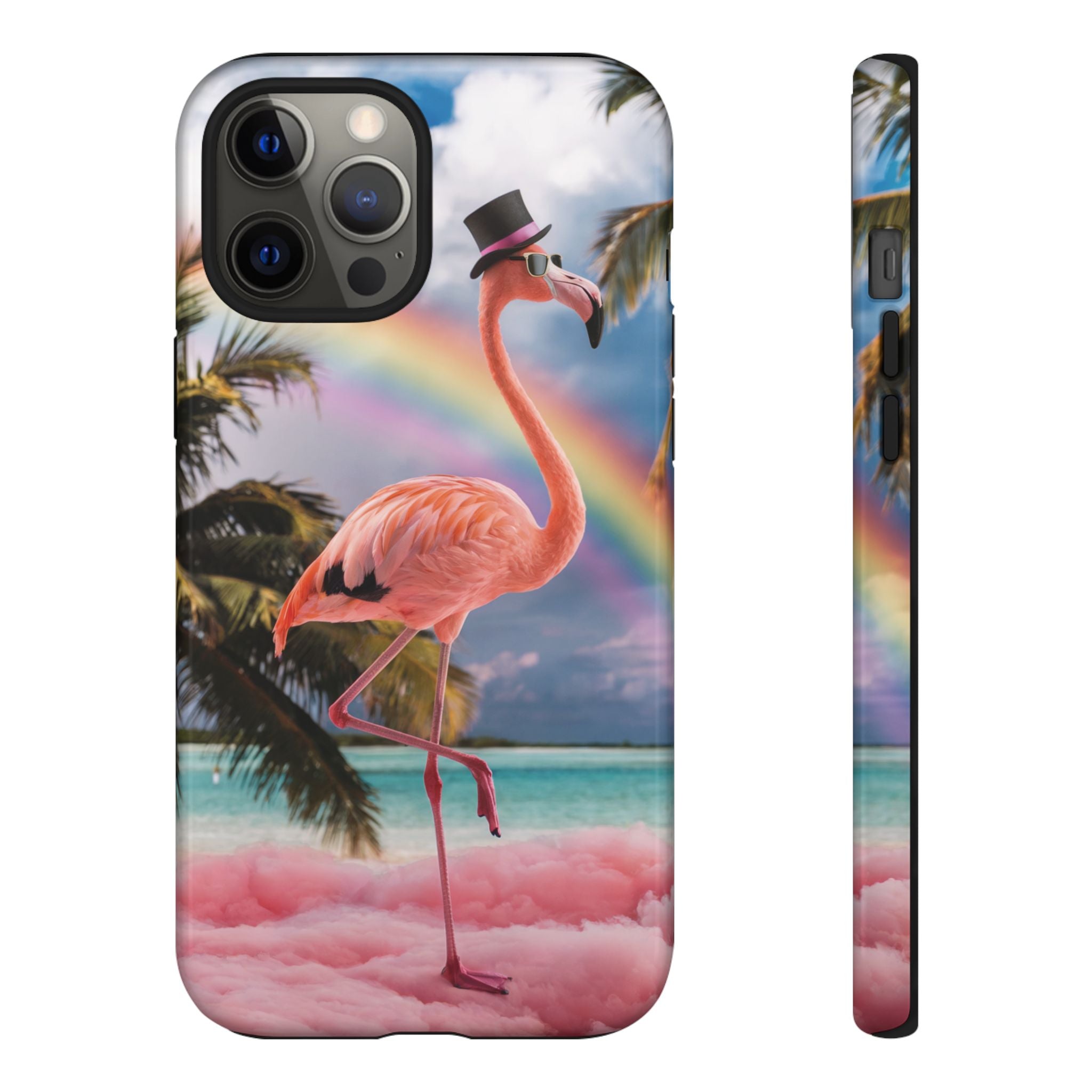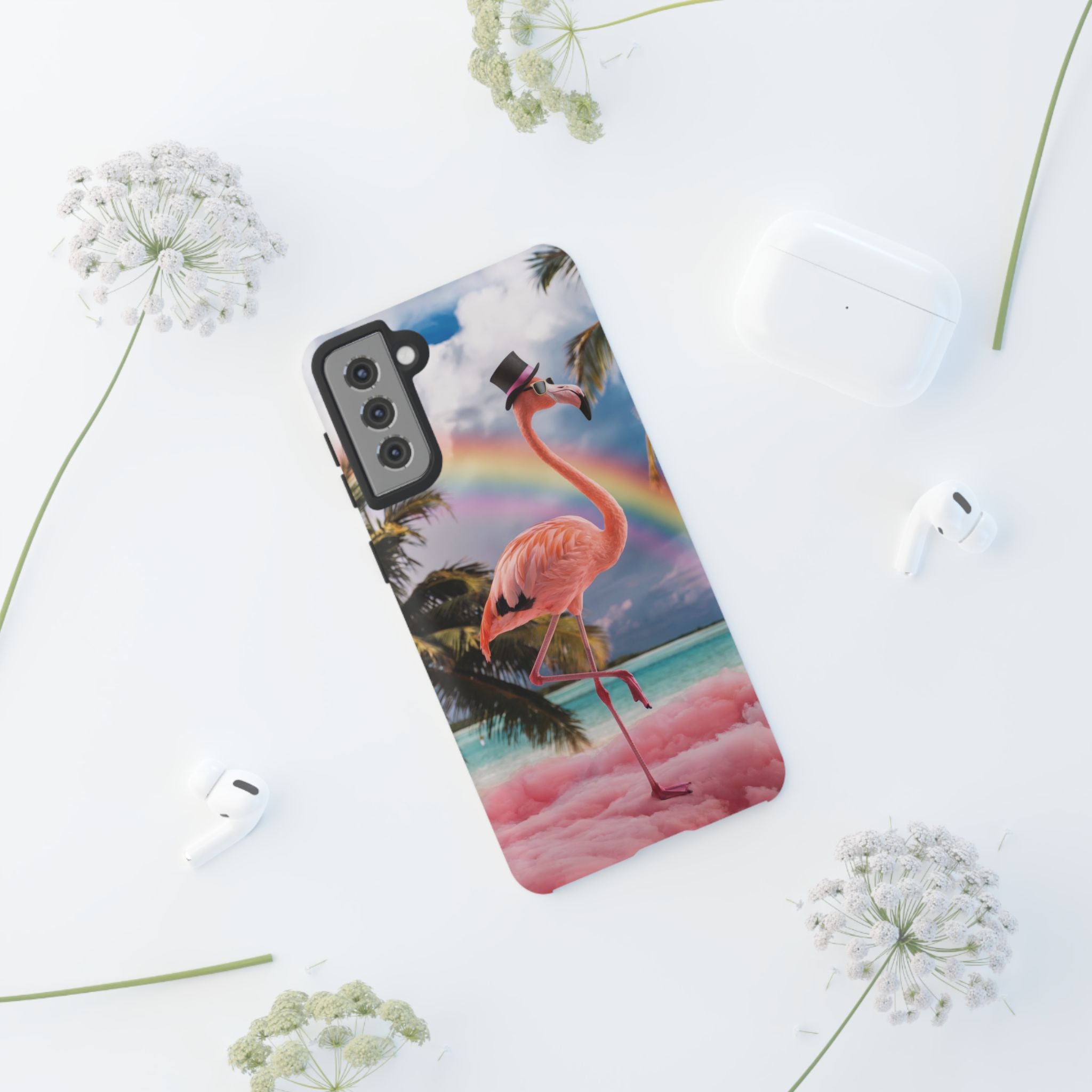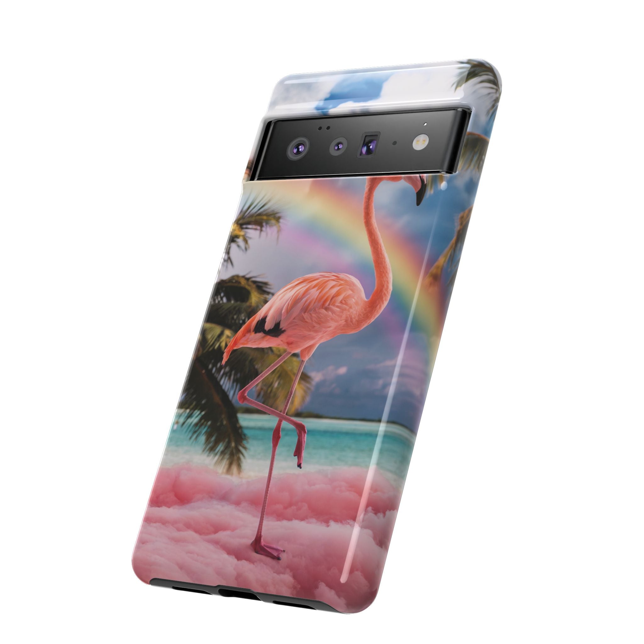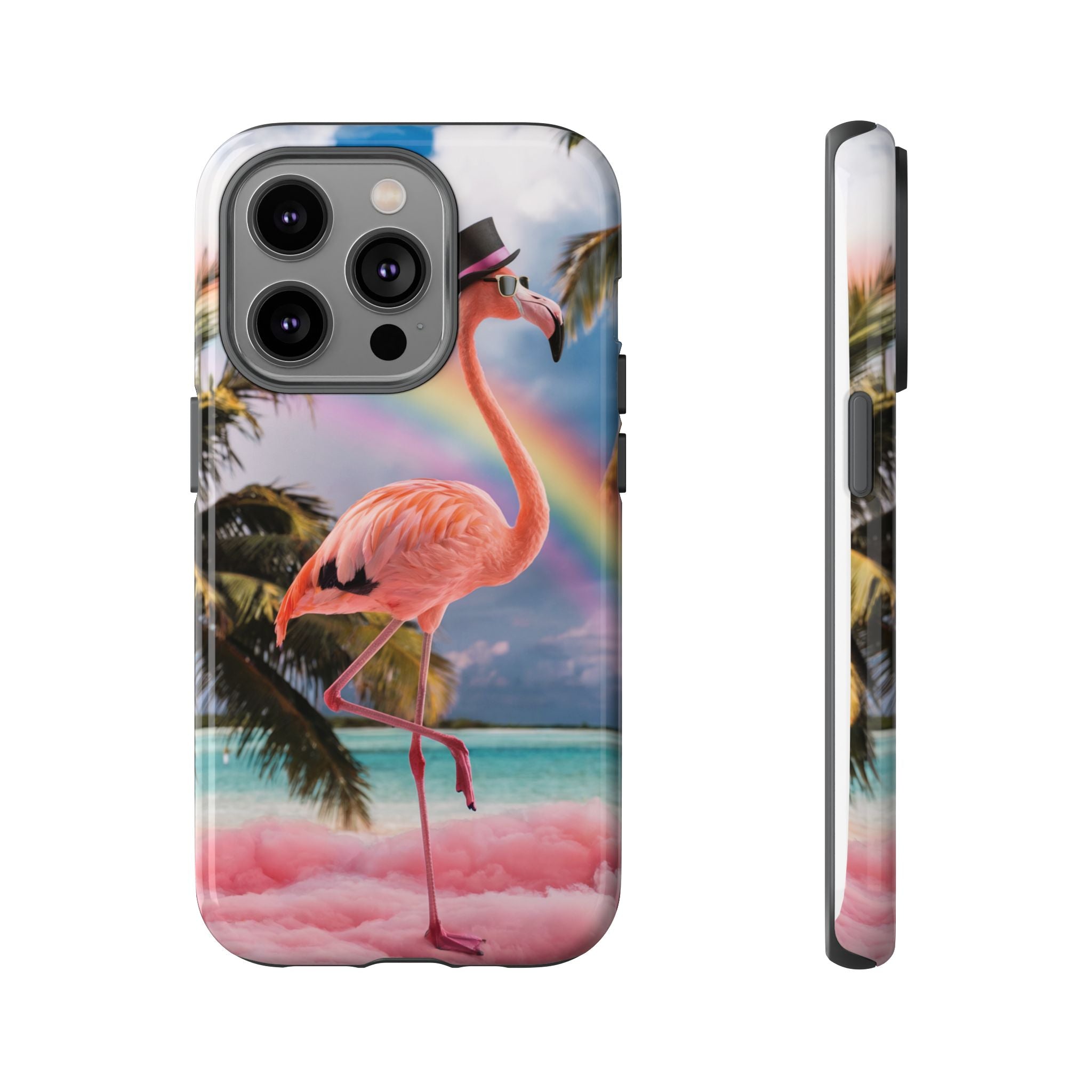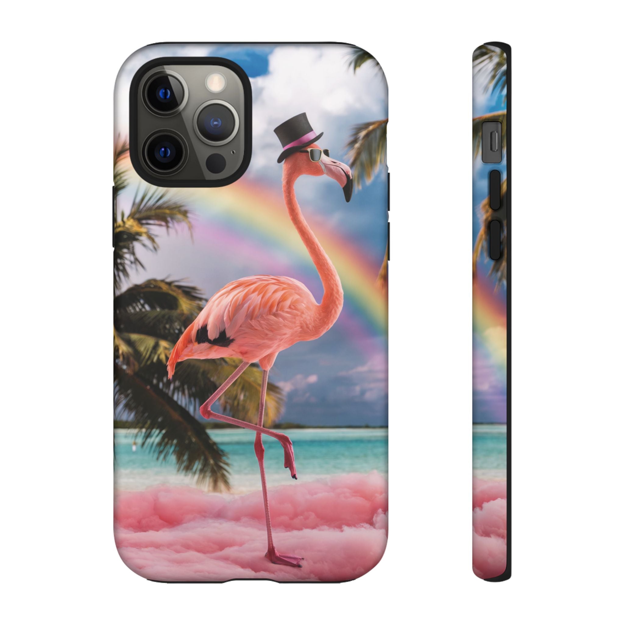 A dreamy, tropical day in your pocket — a debonair flamingo balances on cotton‑candy clouds beneath a soft pastel rainbow.... Read more