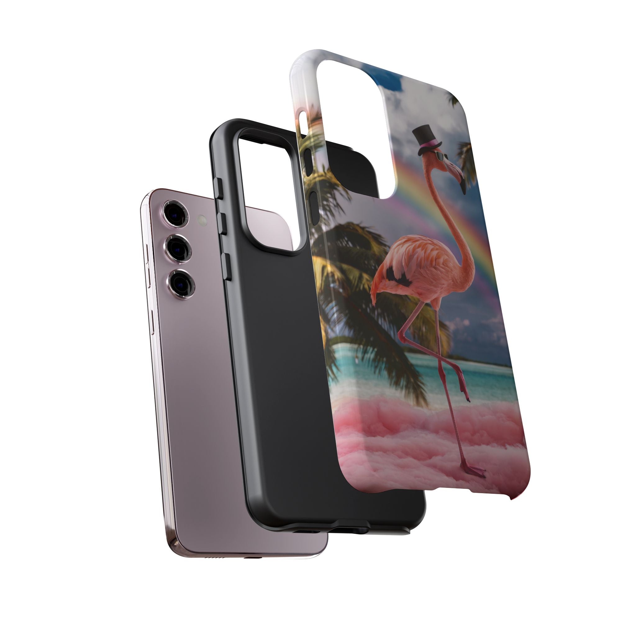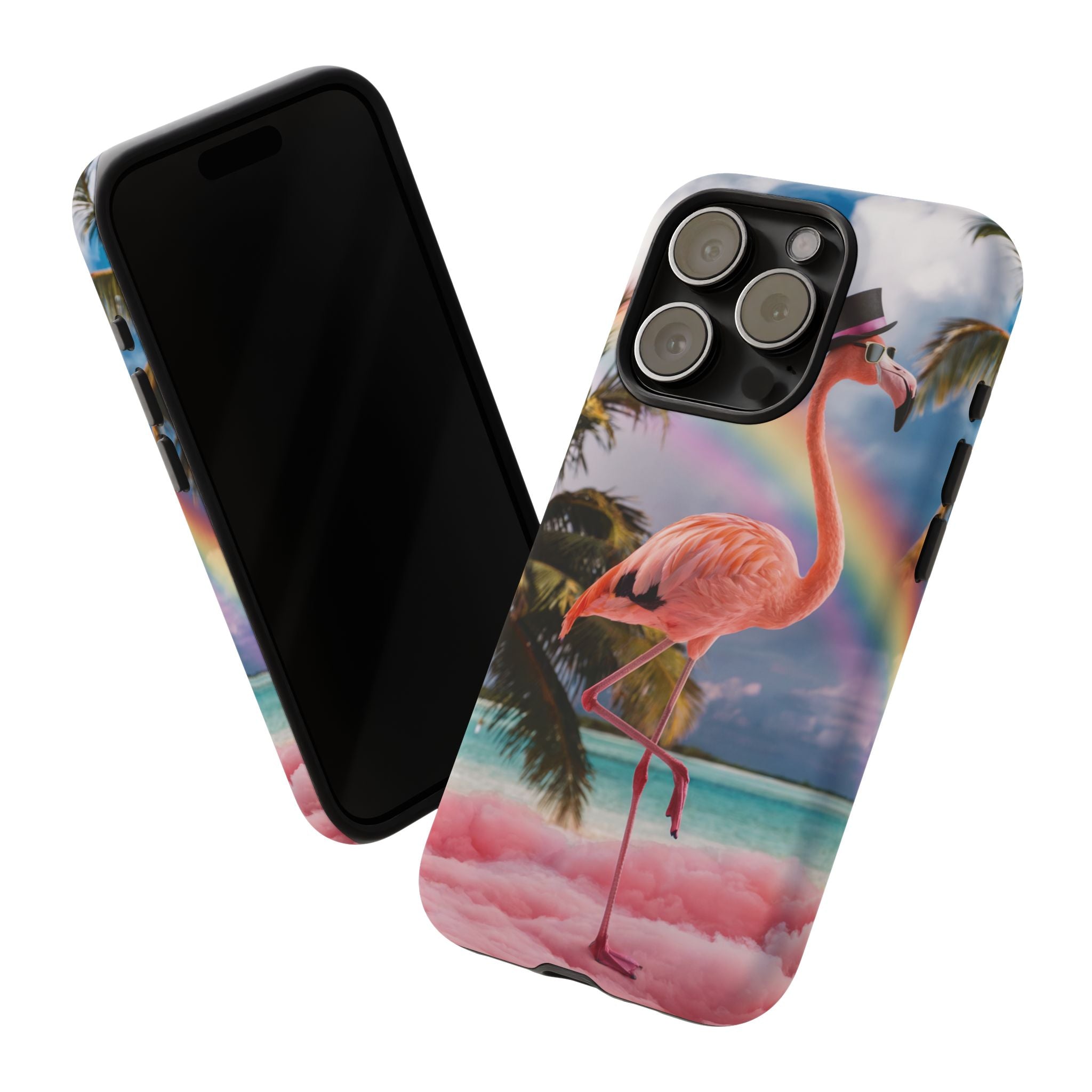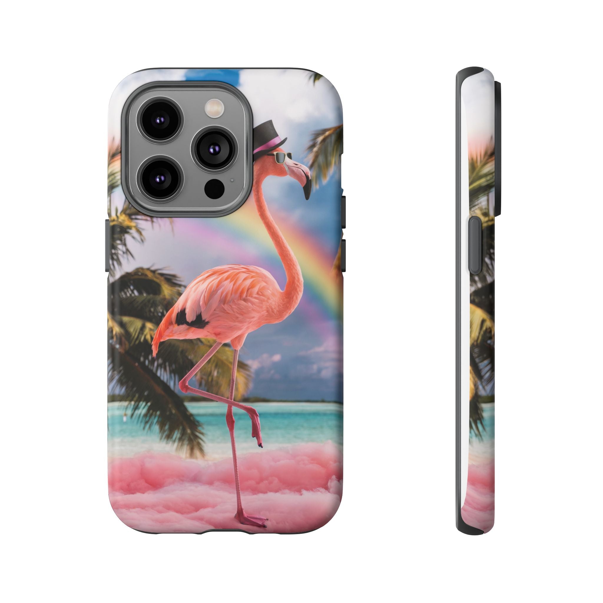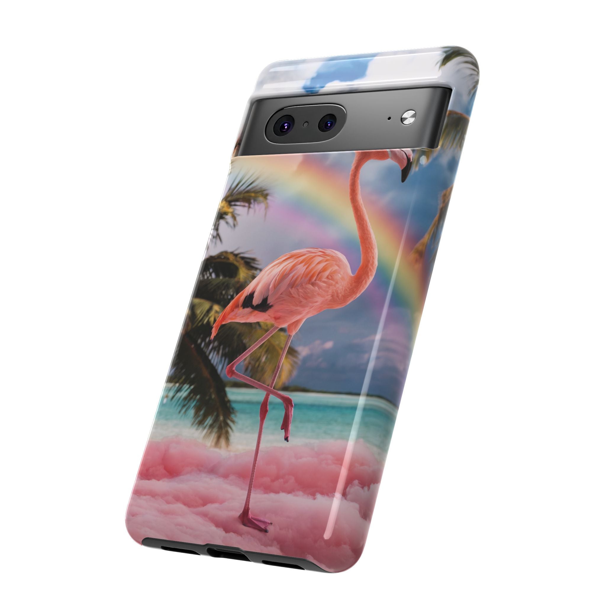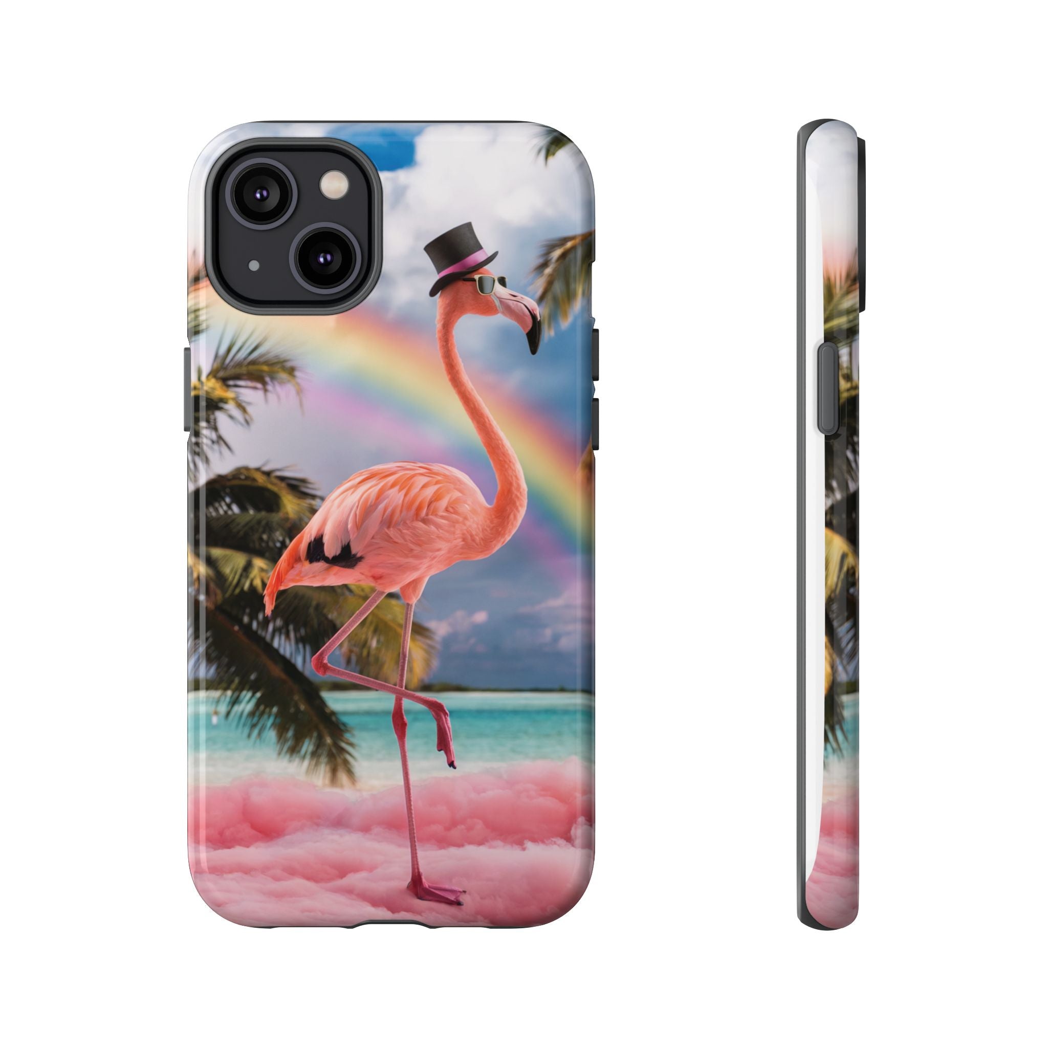 A dreamy, tropical day in your pocket — a debonair flamingo balances on cotton‑candy clouds beneath a soft pastel rainbow.... Read more