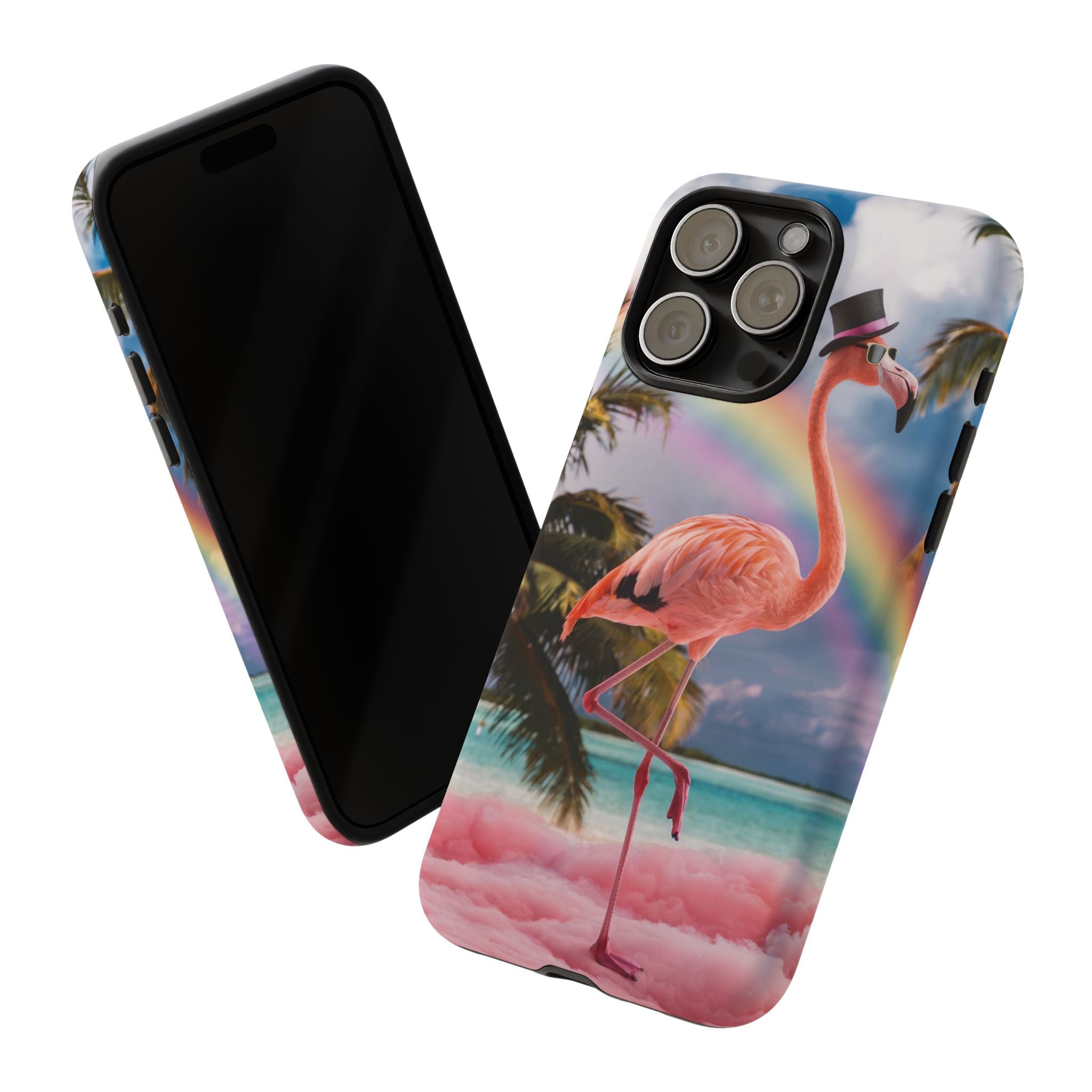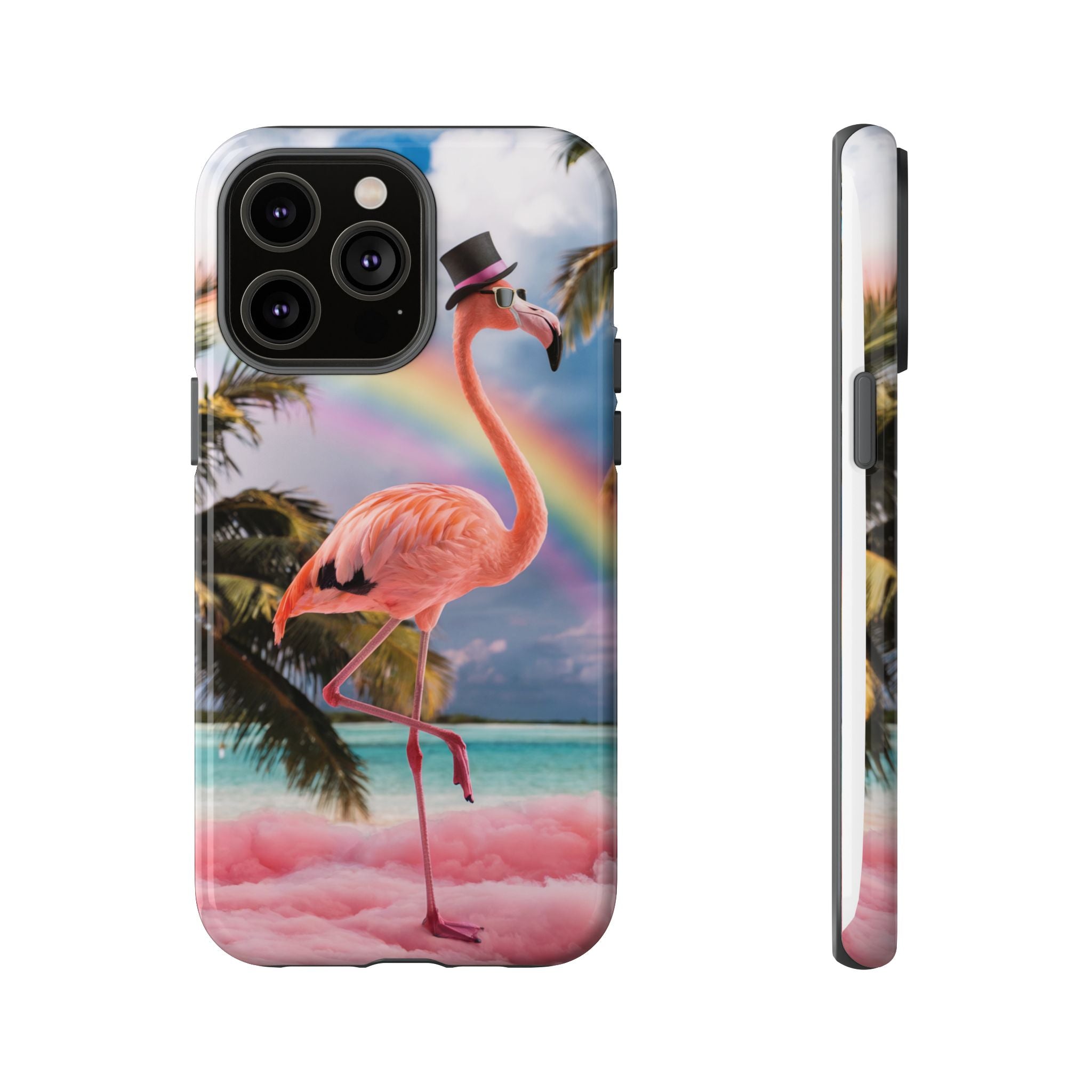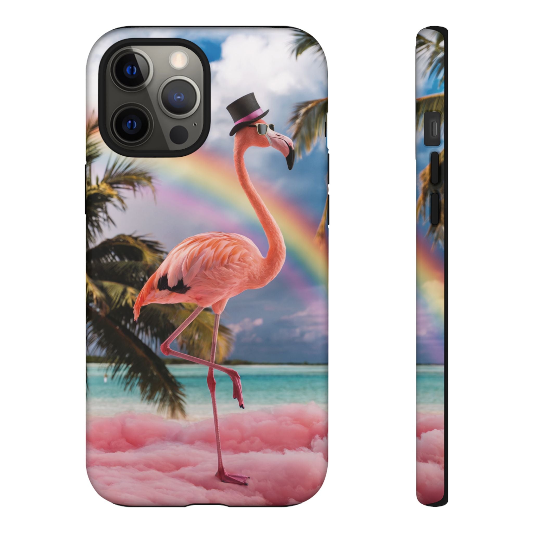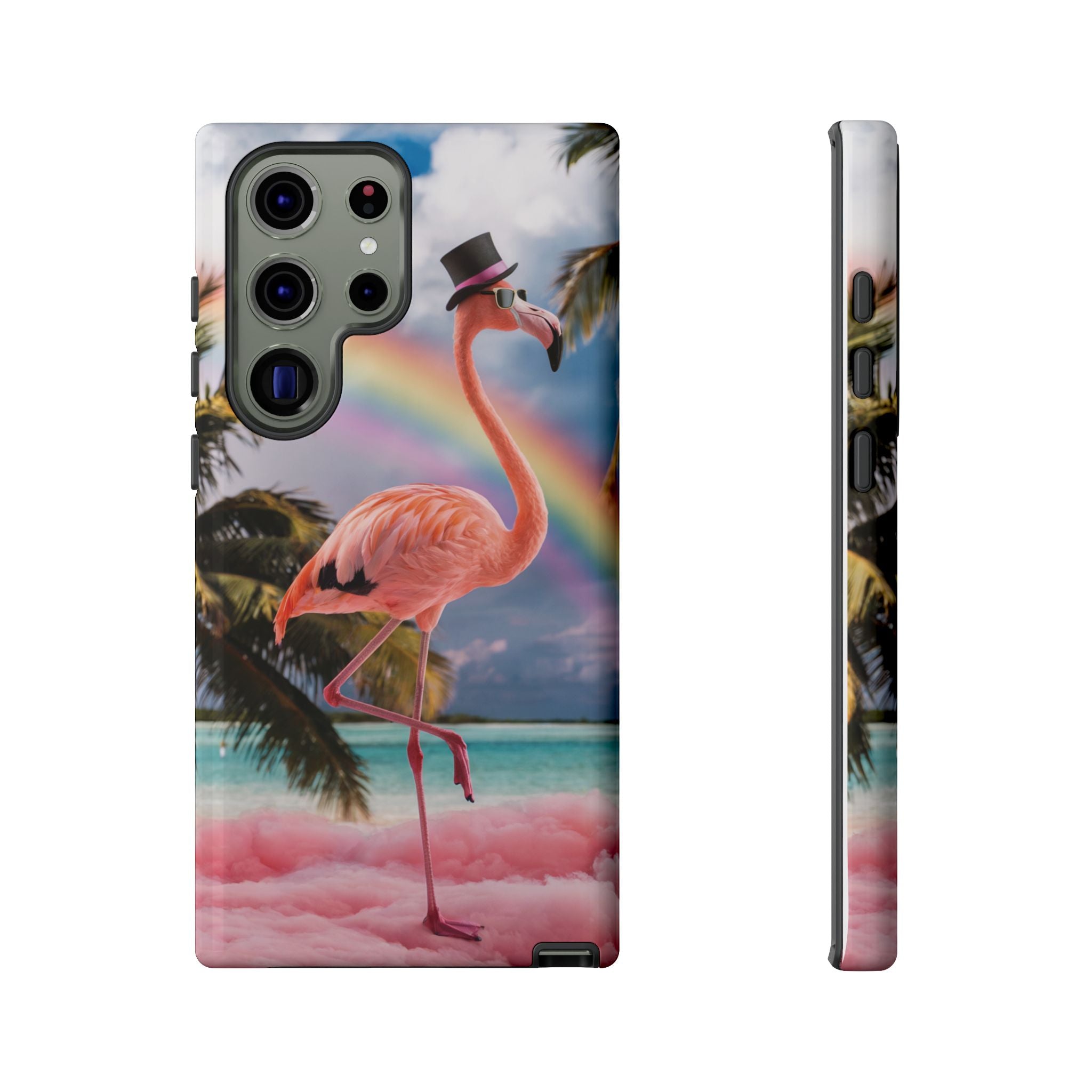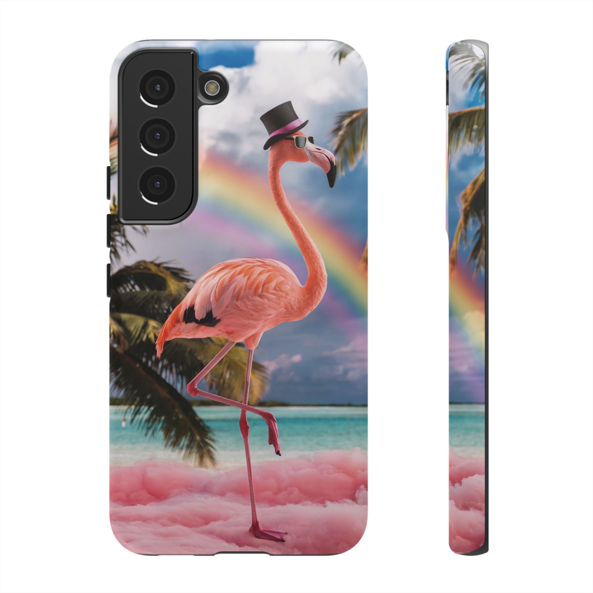 A dreamy, tropical day in your pocket — a debonair flamingo balances on cotton‑candy clouds beneath a soft pastel rainbow.... Read more