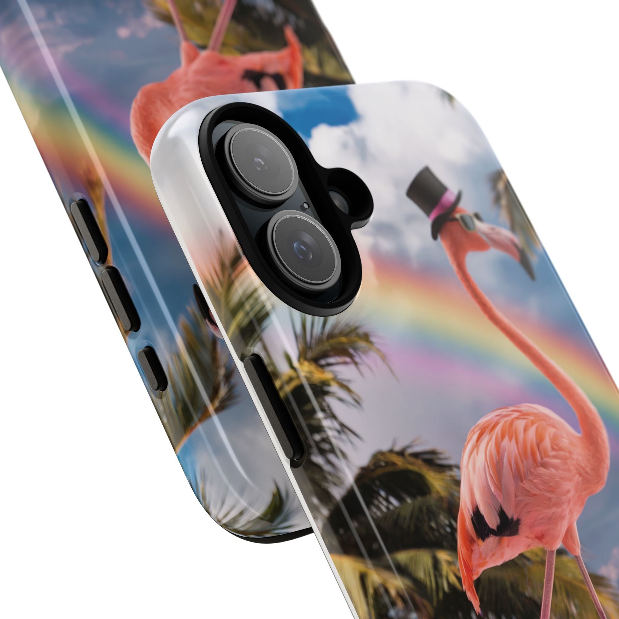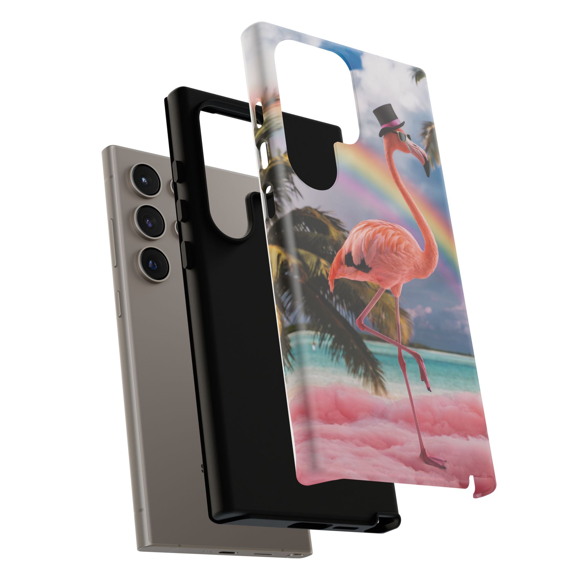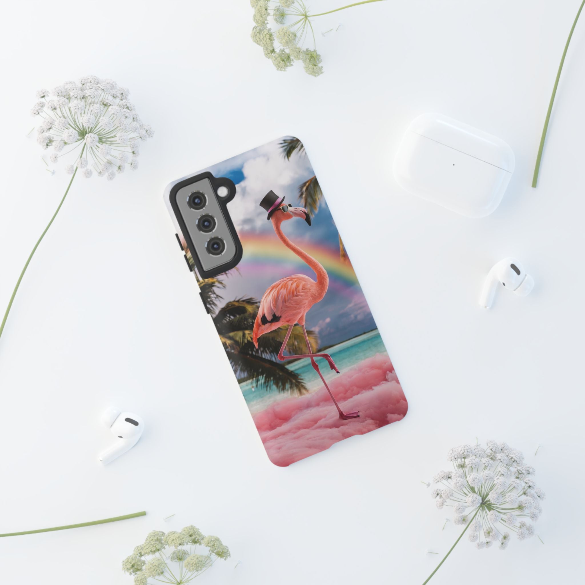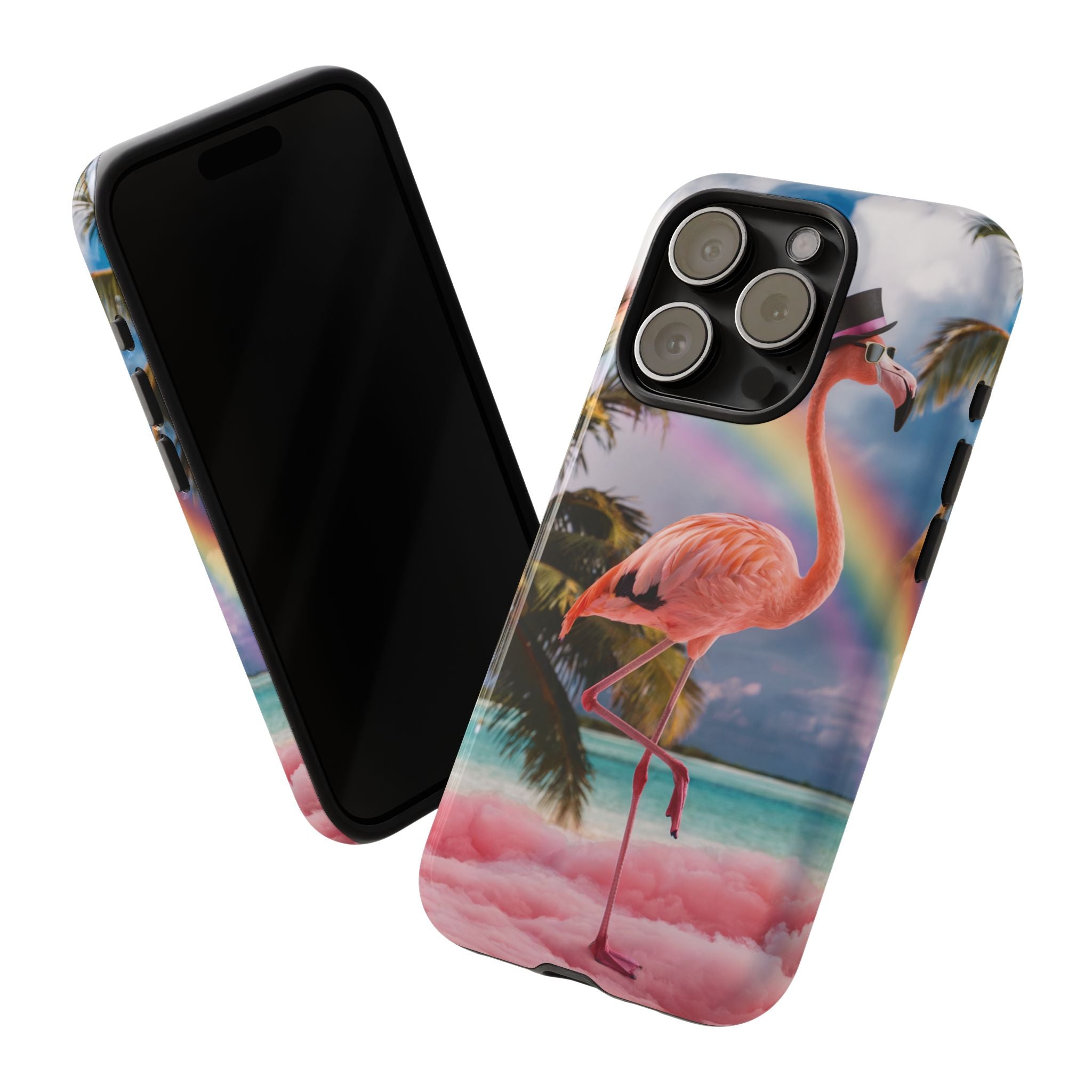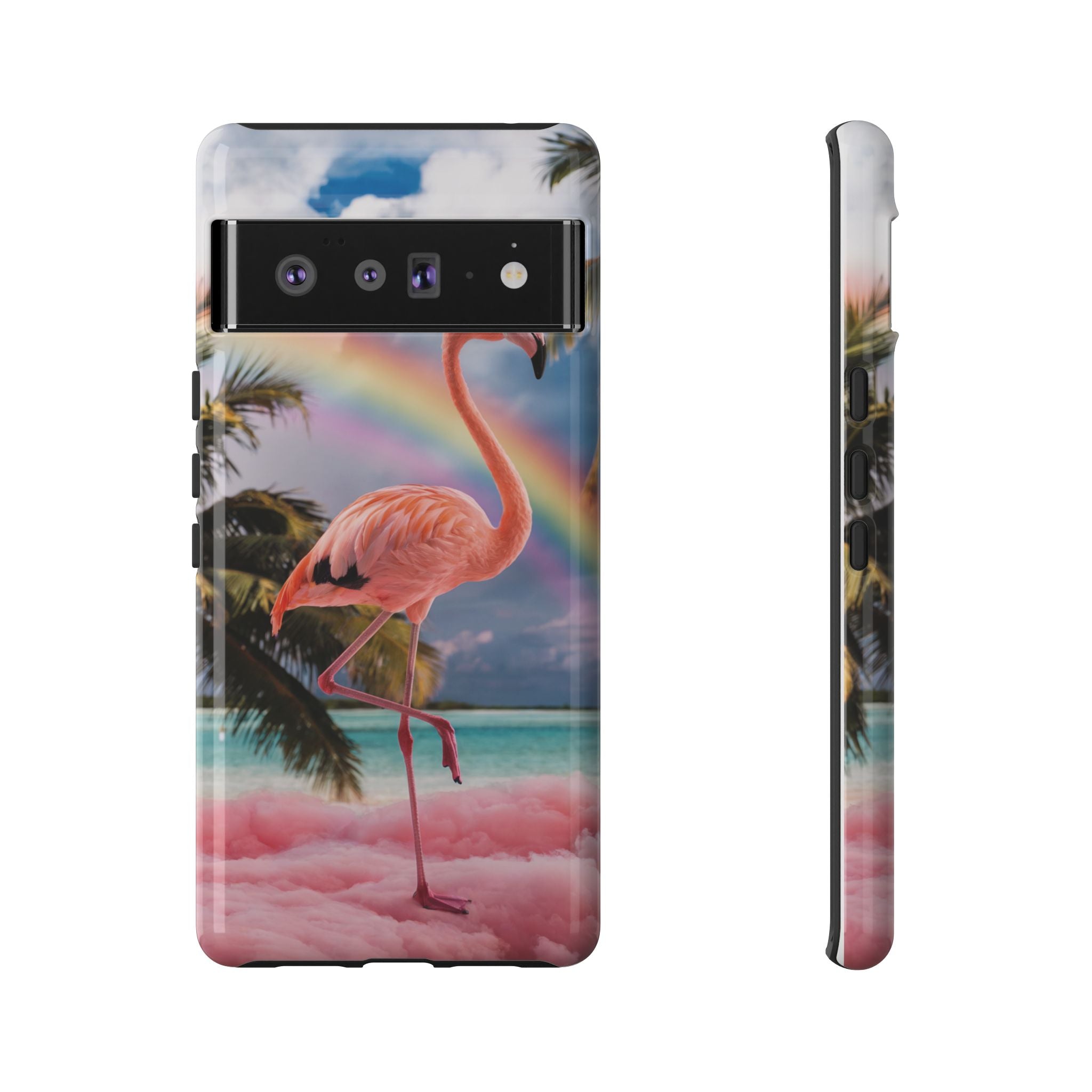 A dreamy, tropical day in your pocket — a debonair flamingo balances on cotton‑candy clouds beneath a soft pastel rainbow.... Read more