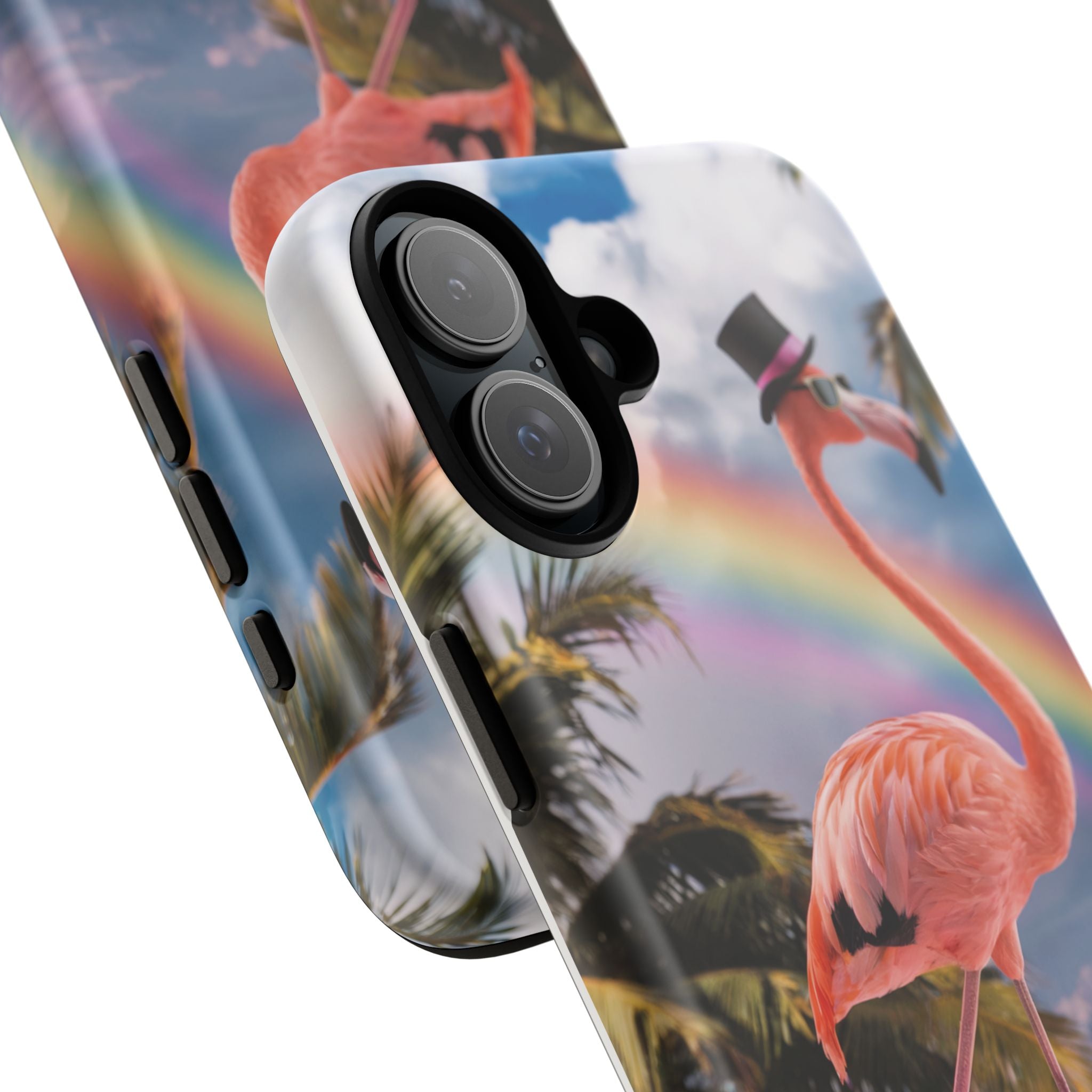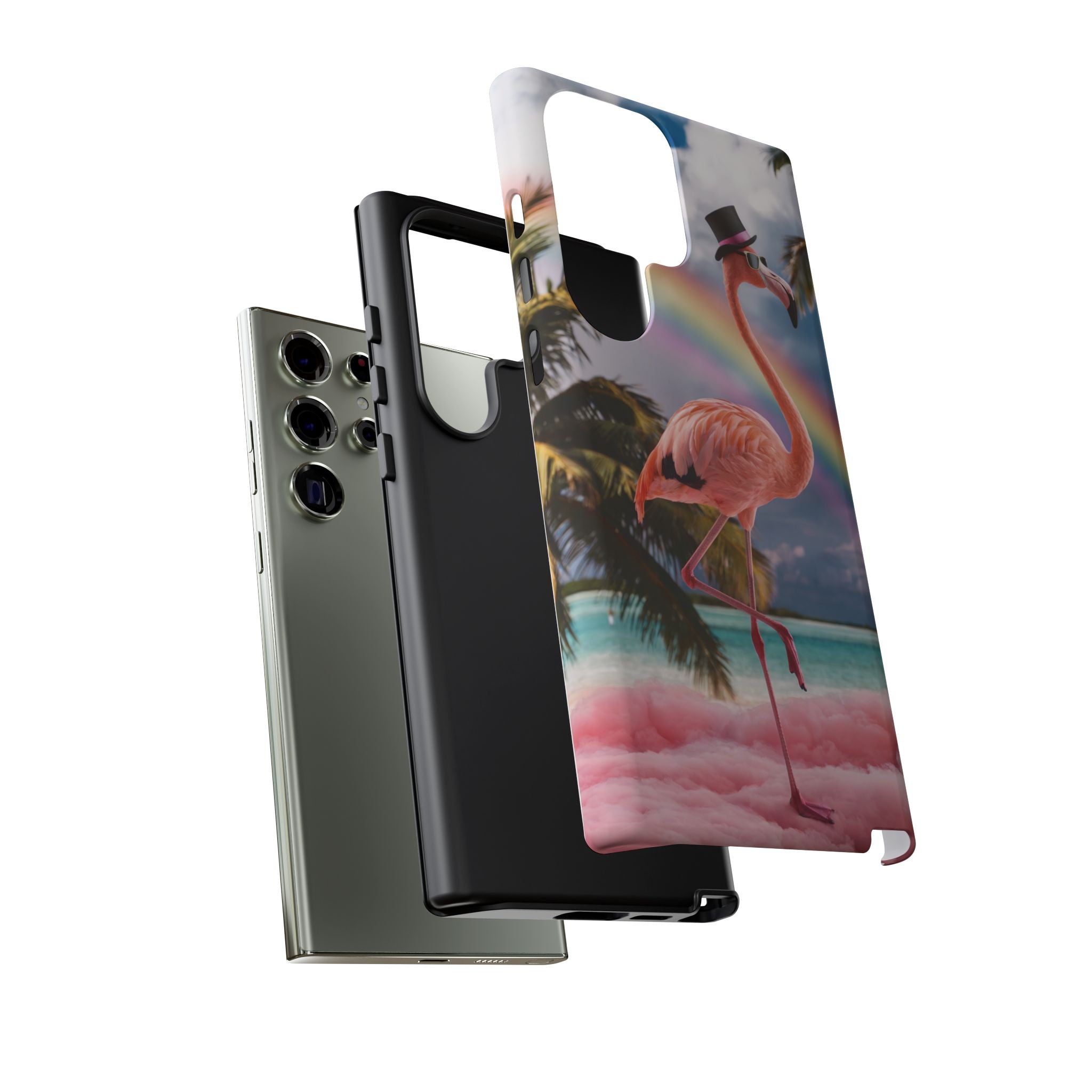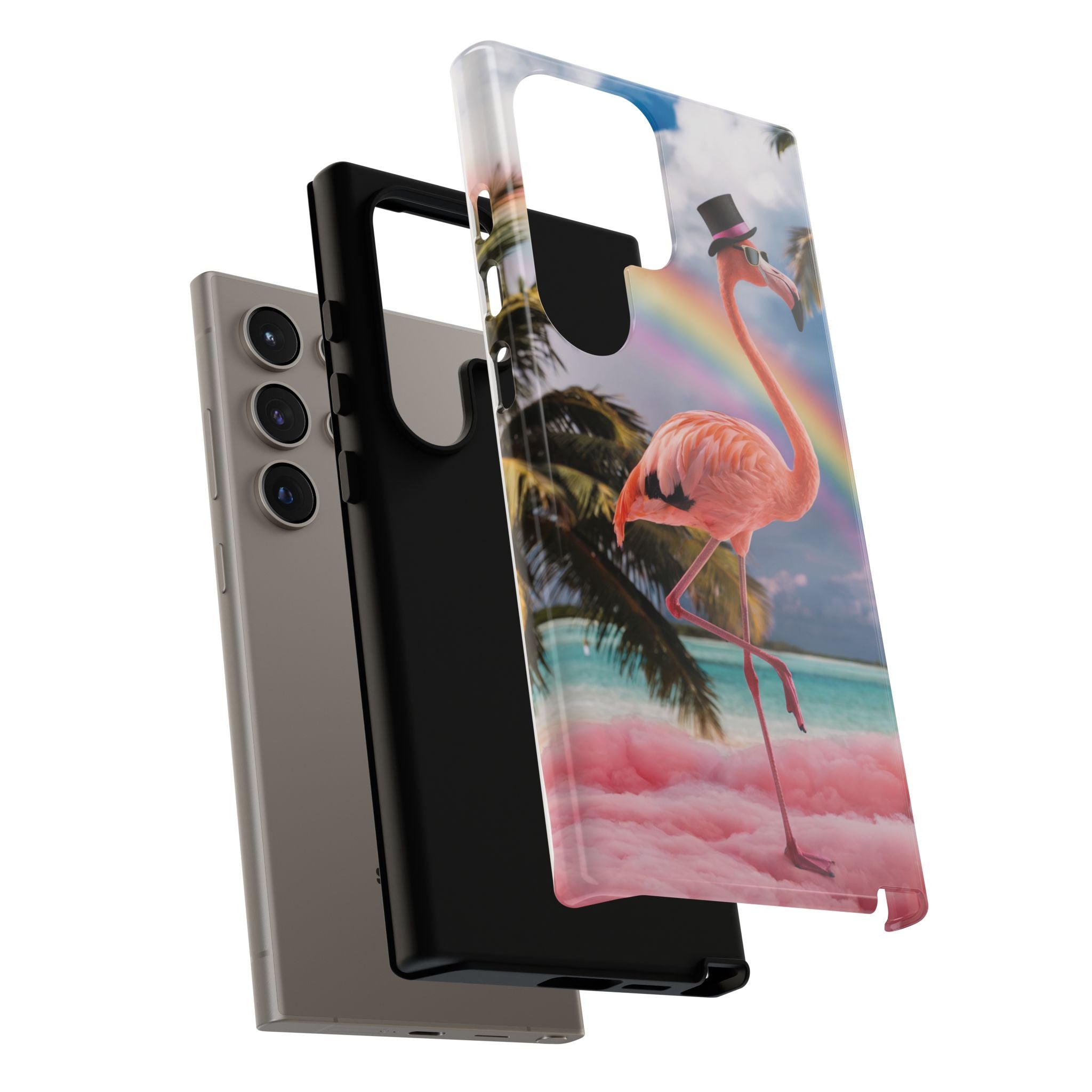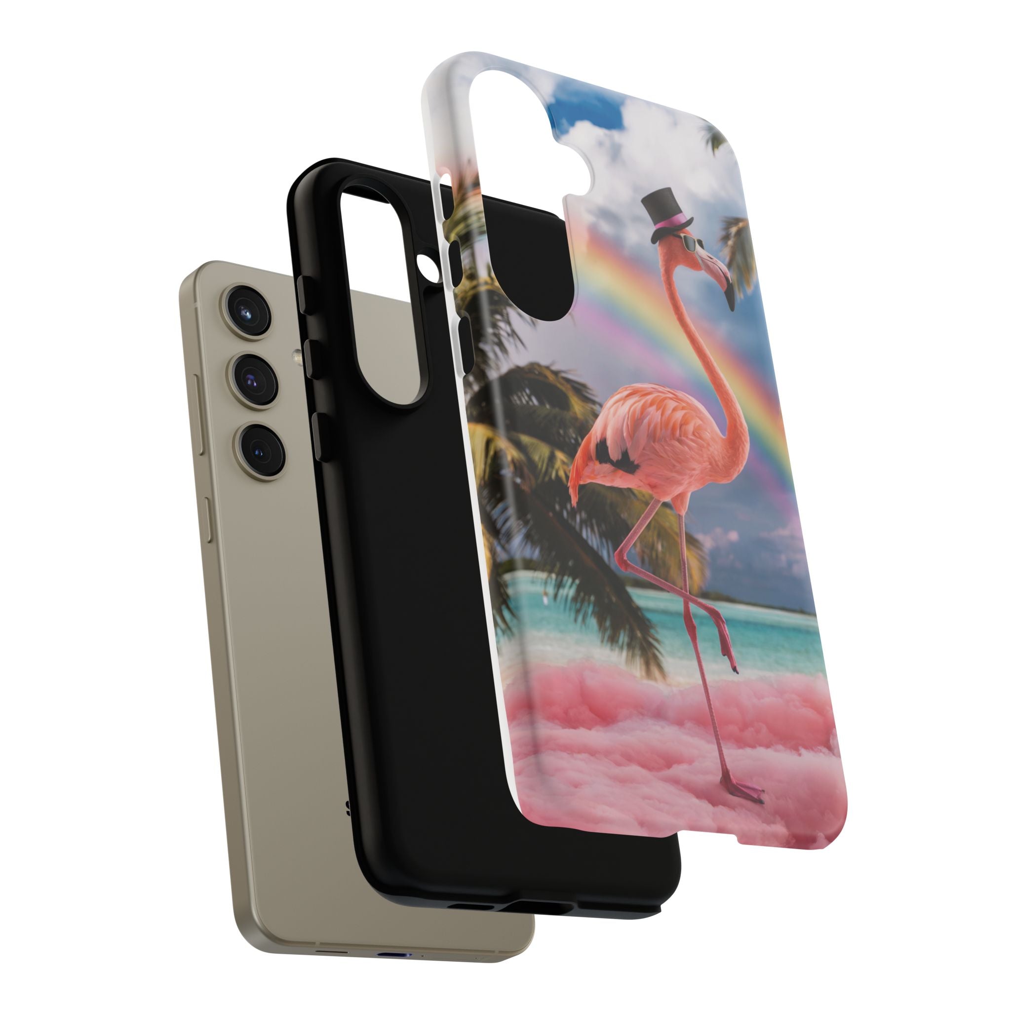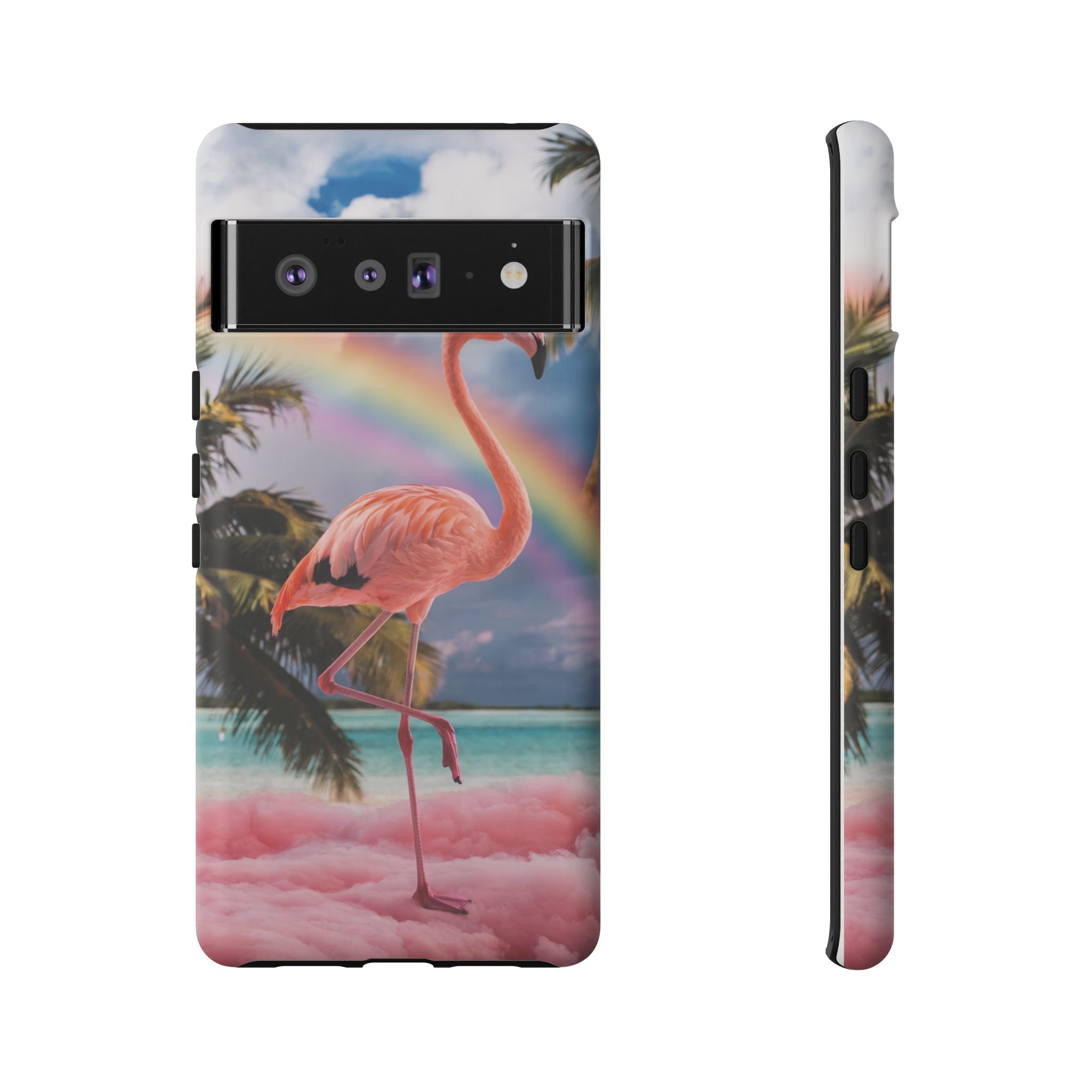 A dreamy, tropical day in your pocket — a debonair flamingo balances on cotton‑candy clouds beneath a soft pastel rainbow.... Read more