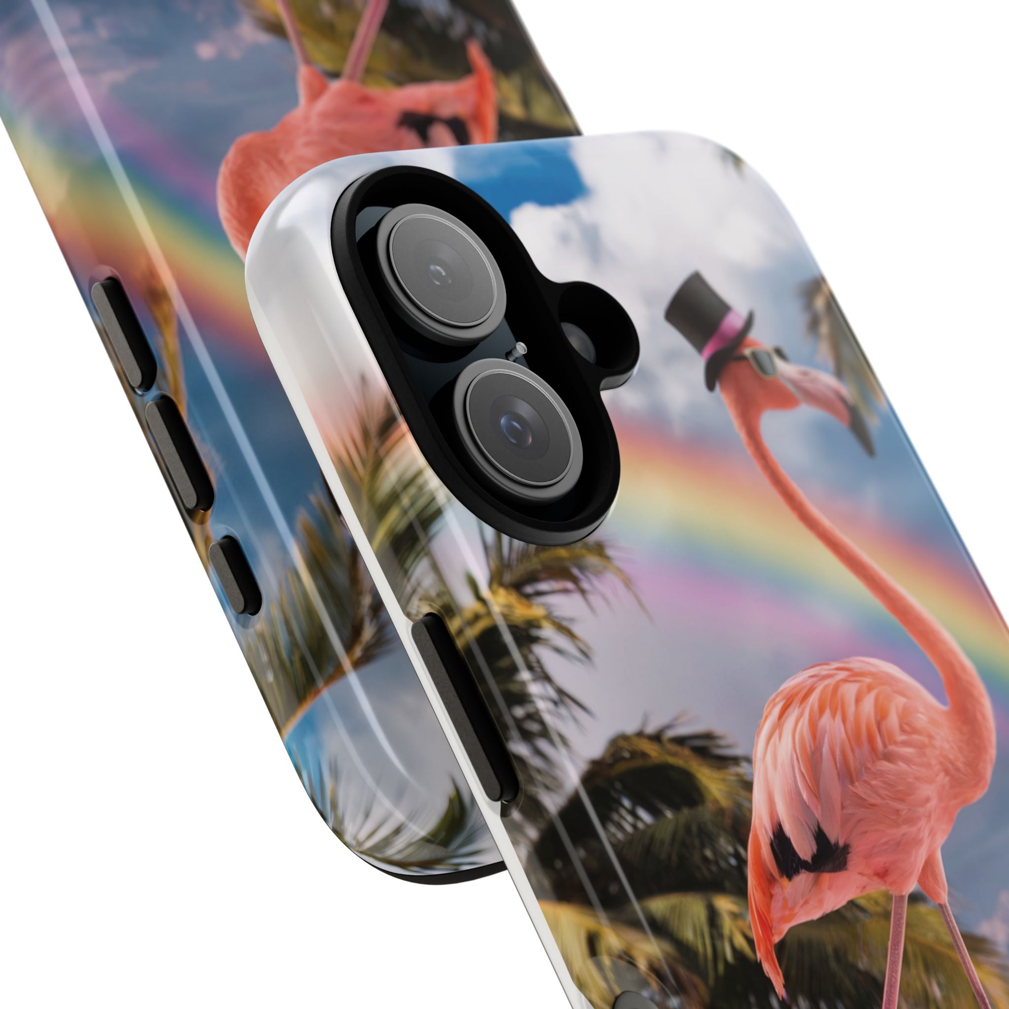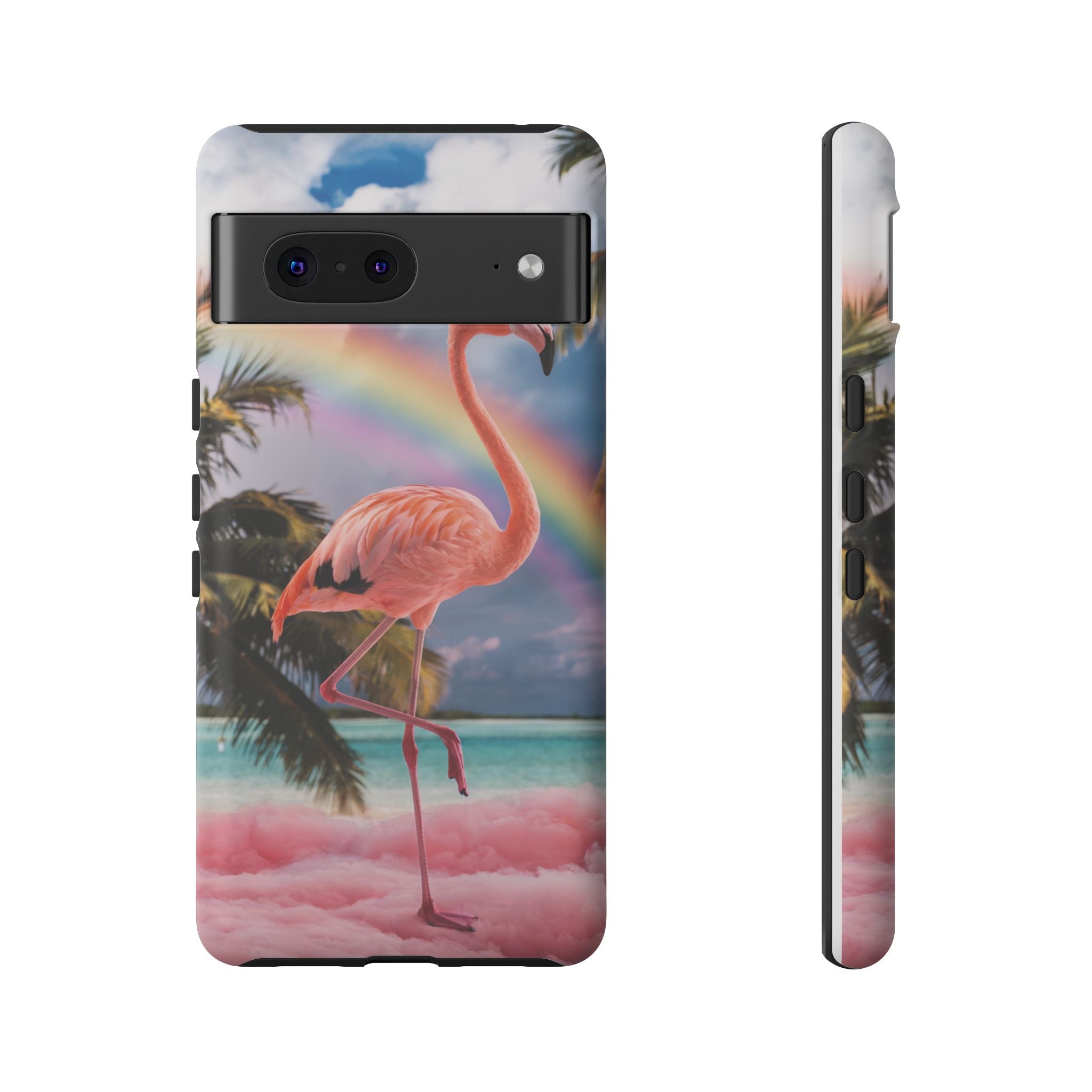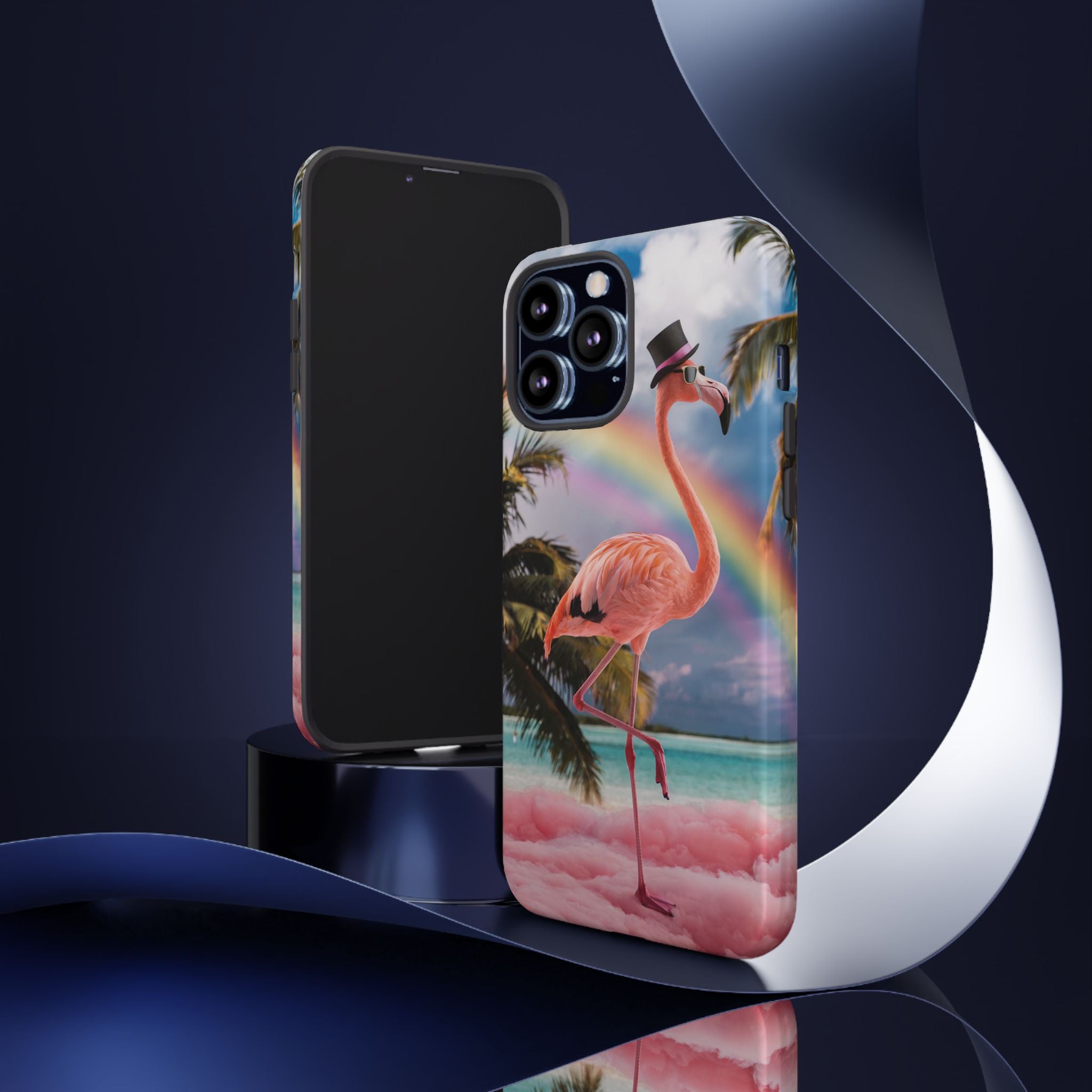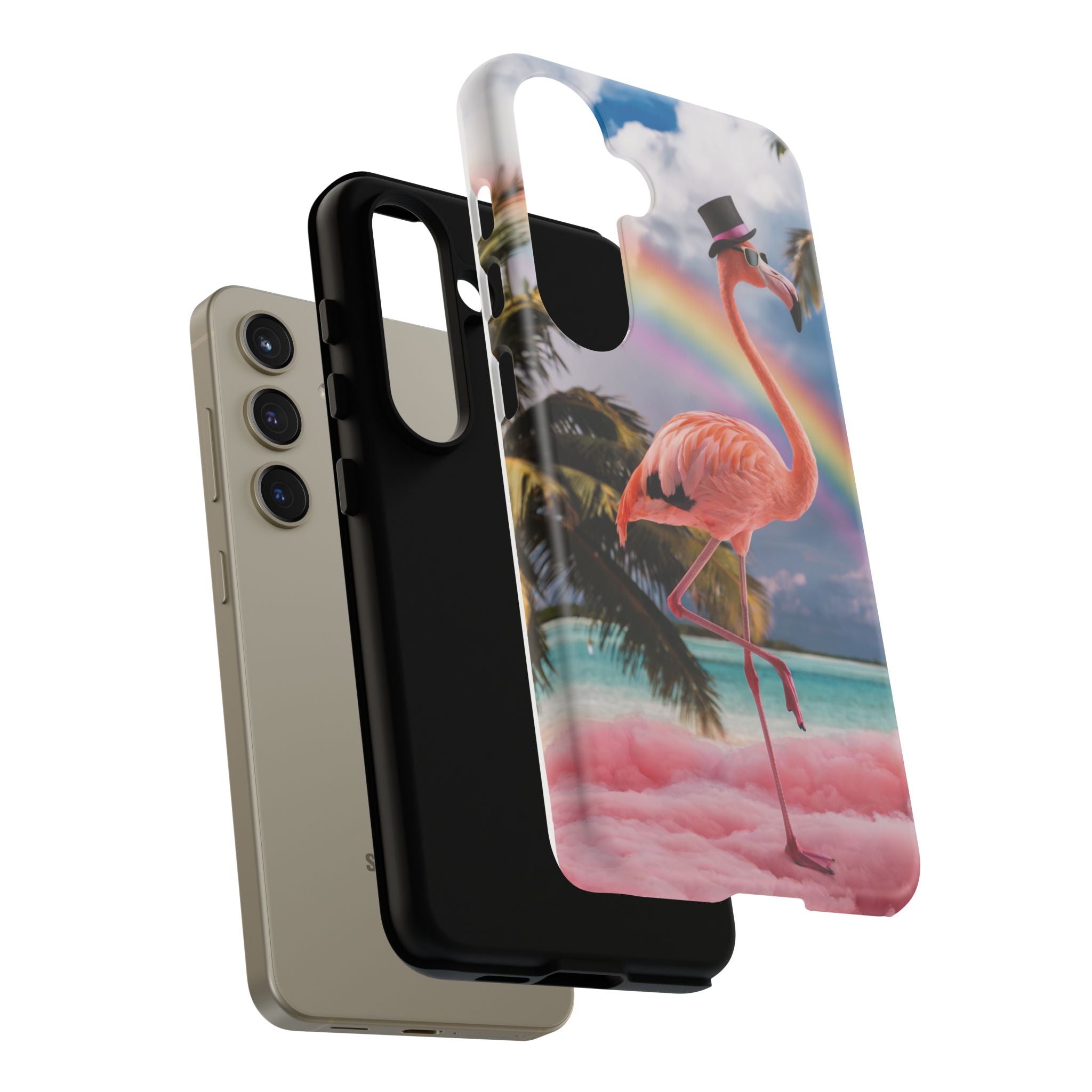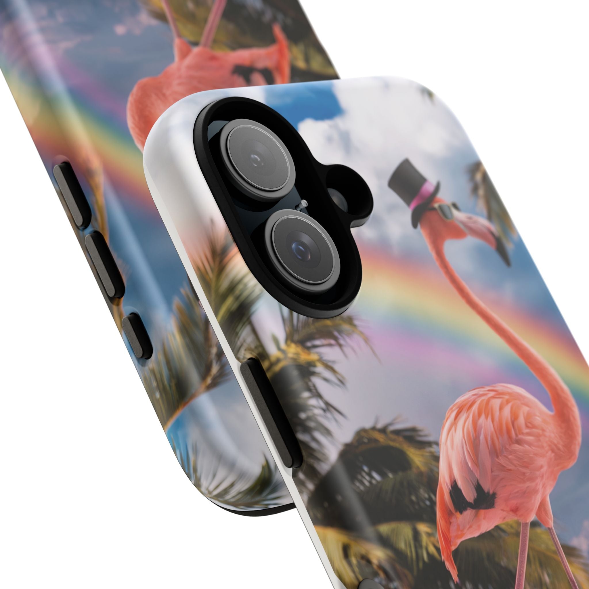 A dreamy, tropical day in your pocket — a debonair flamingo balances on cotton‑candy clouds beneath a soft pastel rainbow.... Read more