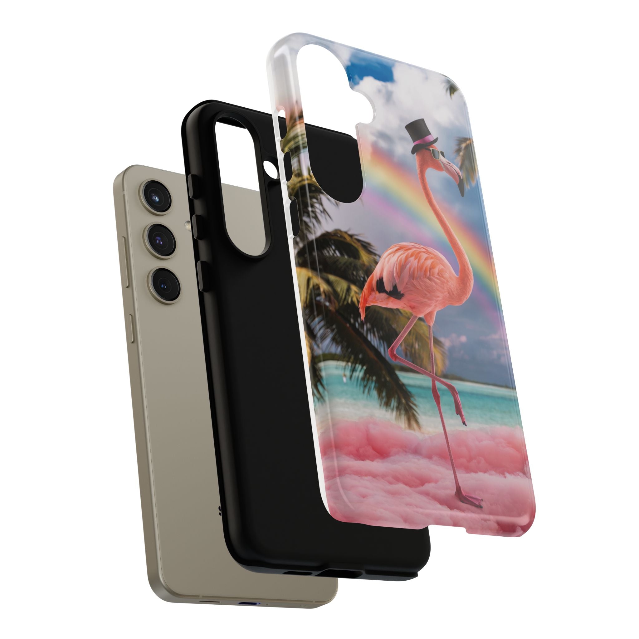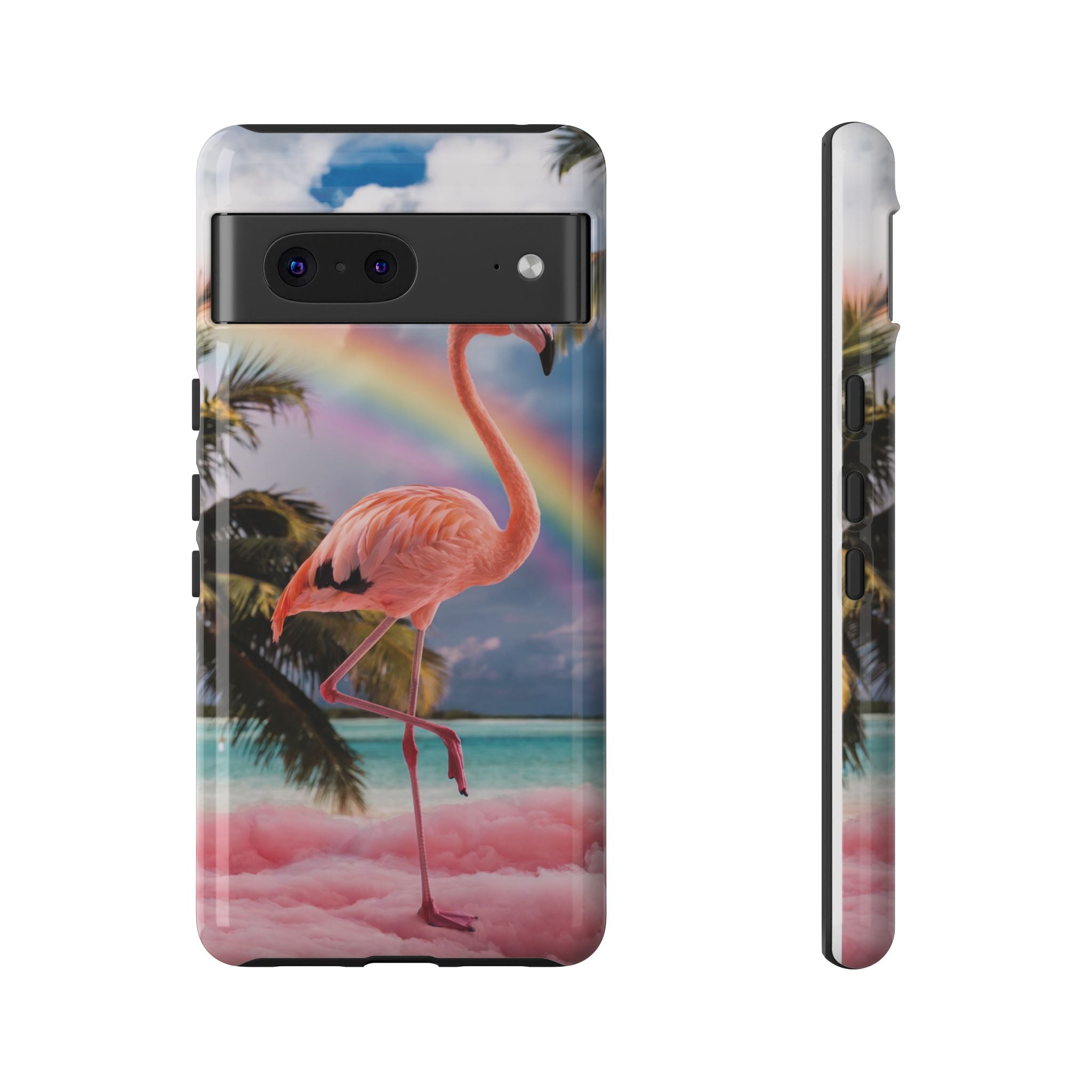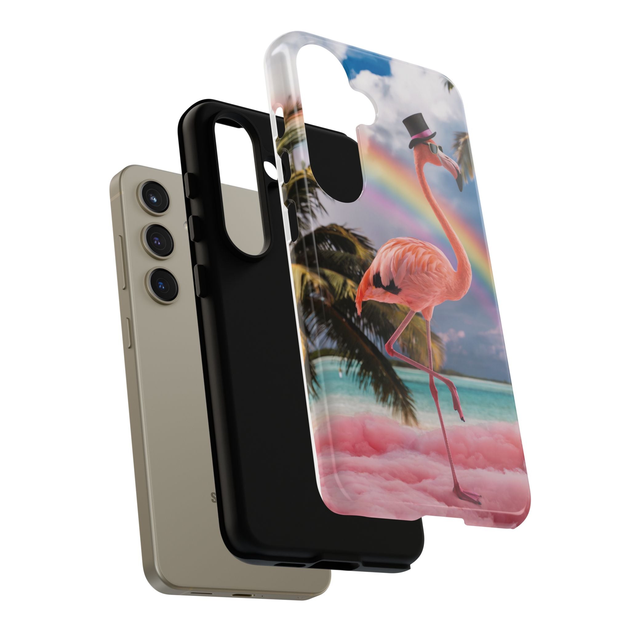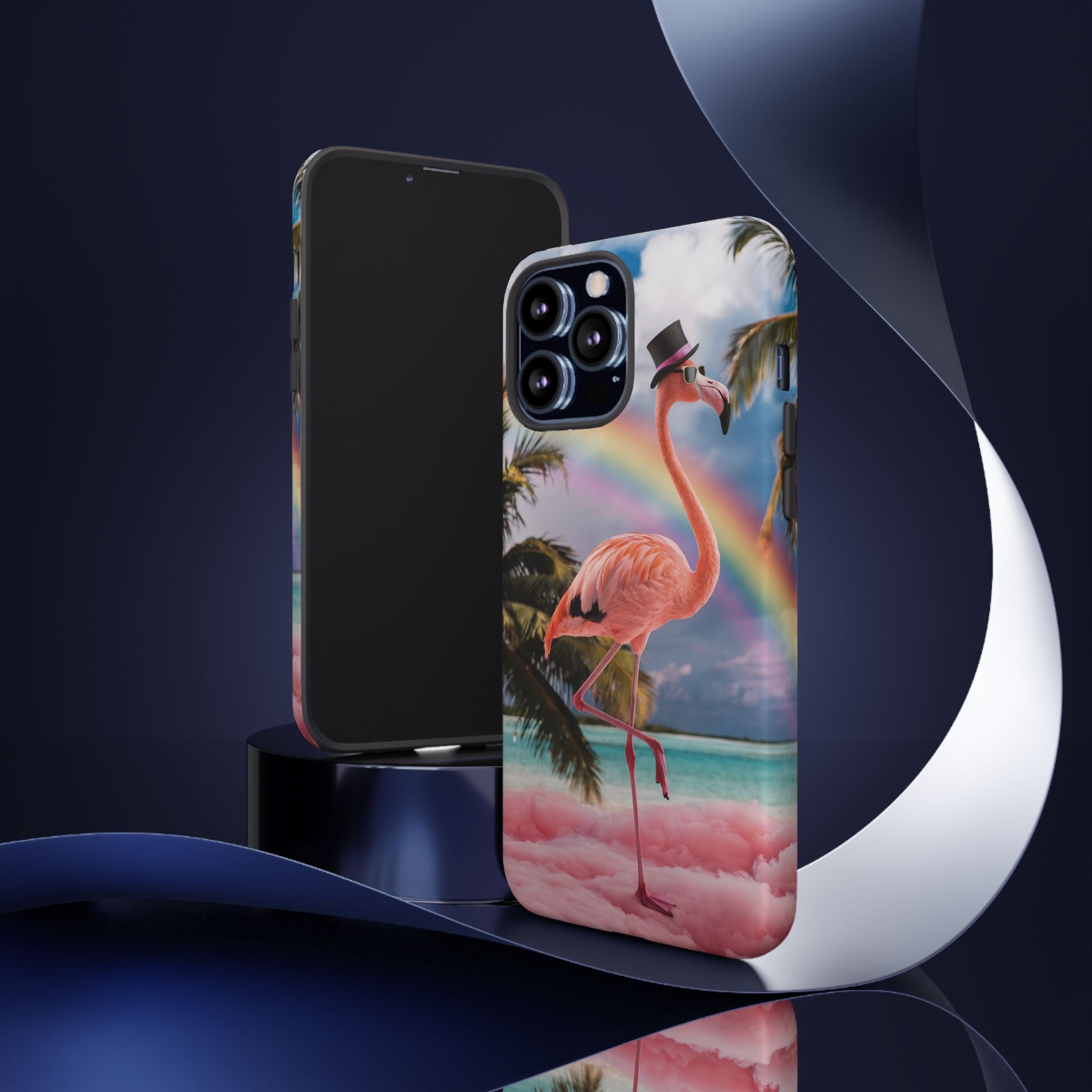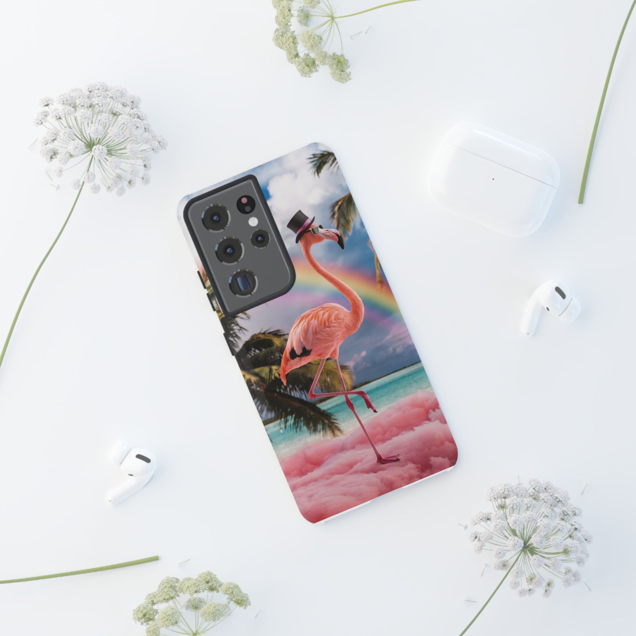 A dreamy, tropical day in your pocket — a debonair flamingo balances on cotton‑candy clouds beneath a soft pastel rainbow.... Read more