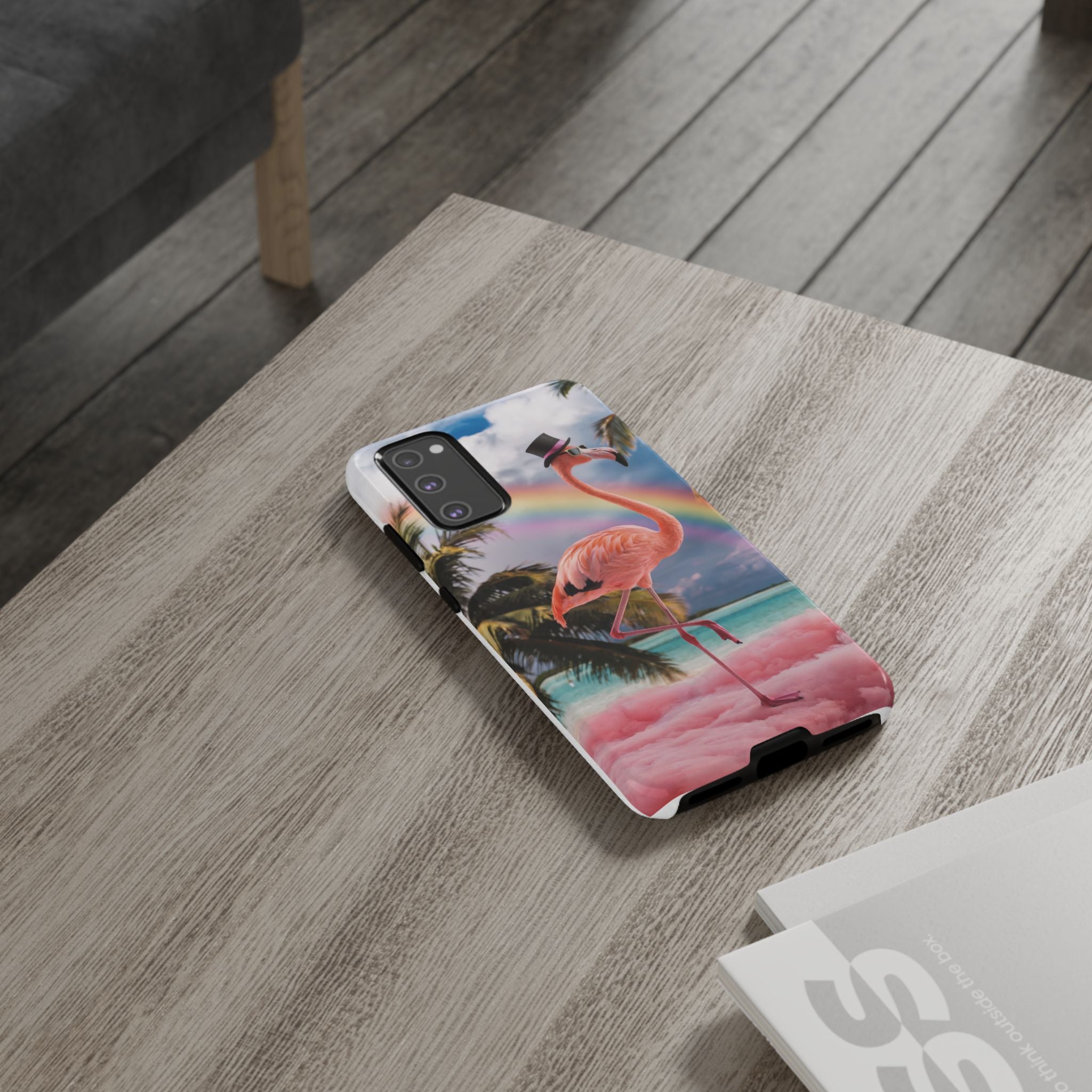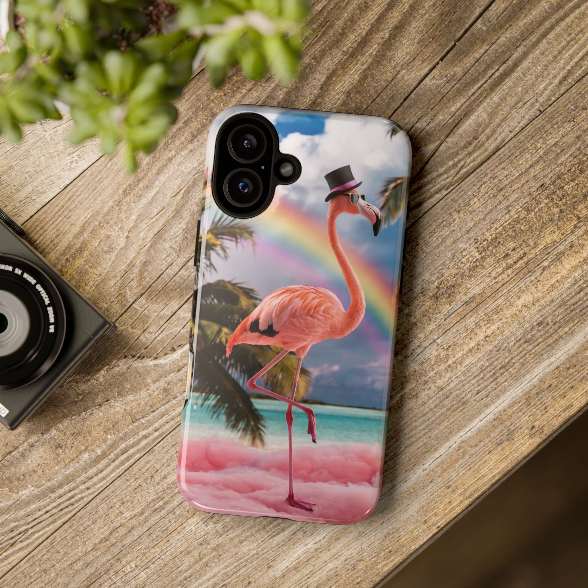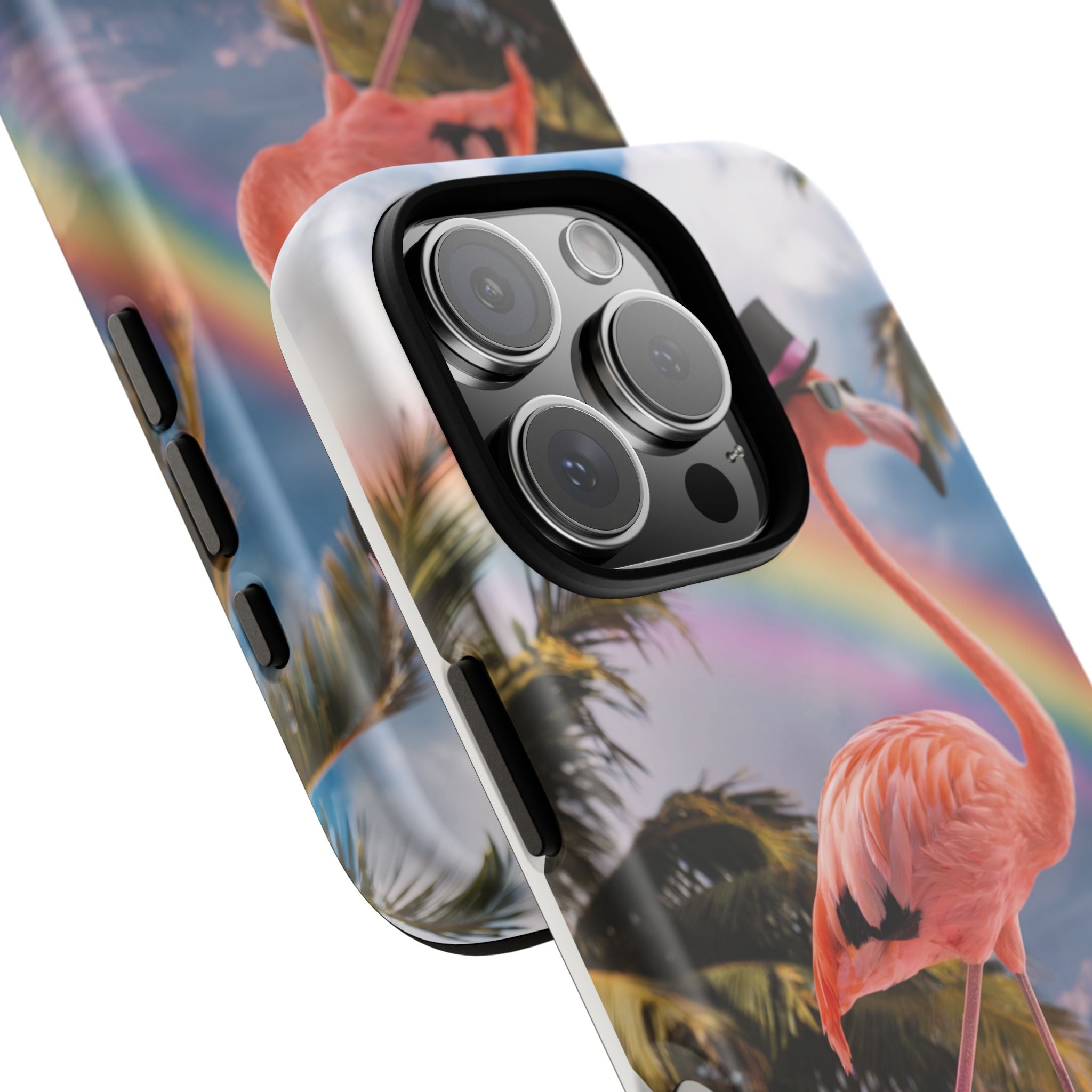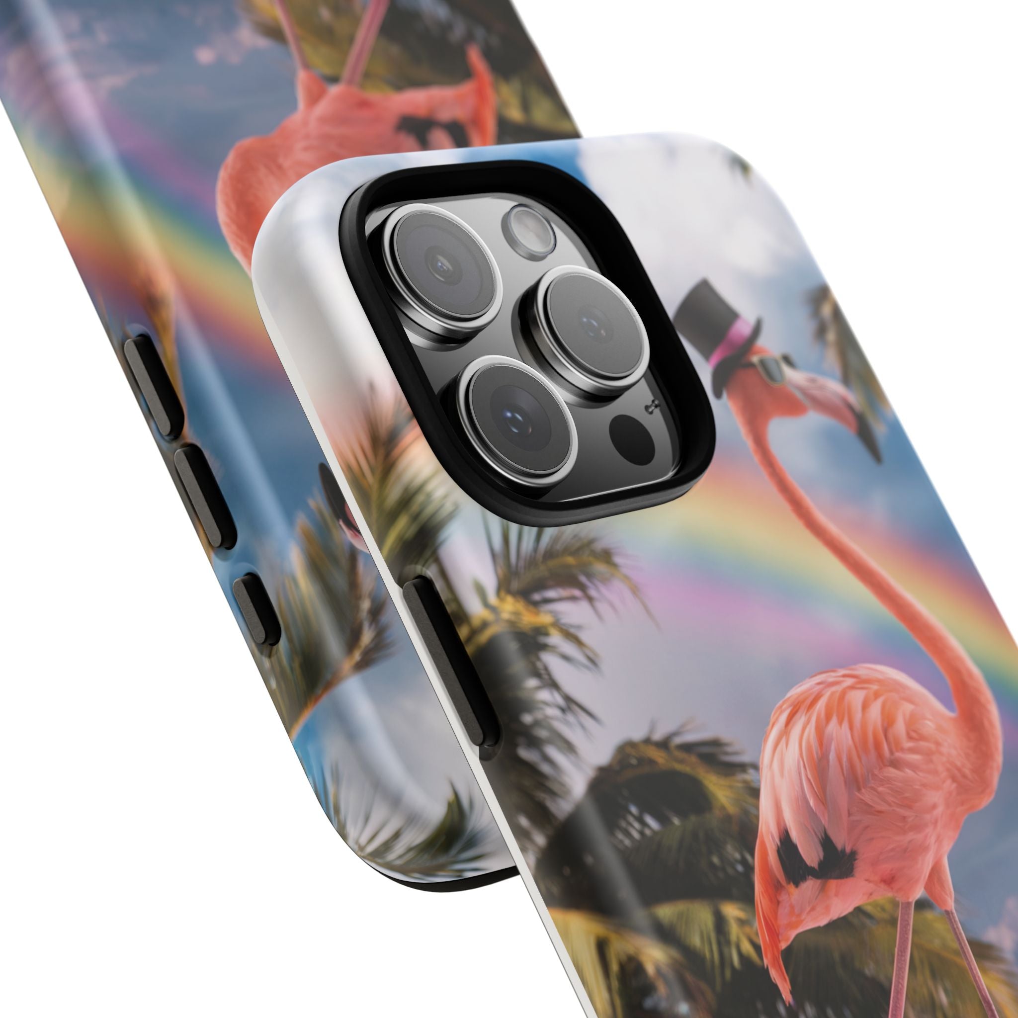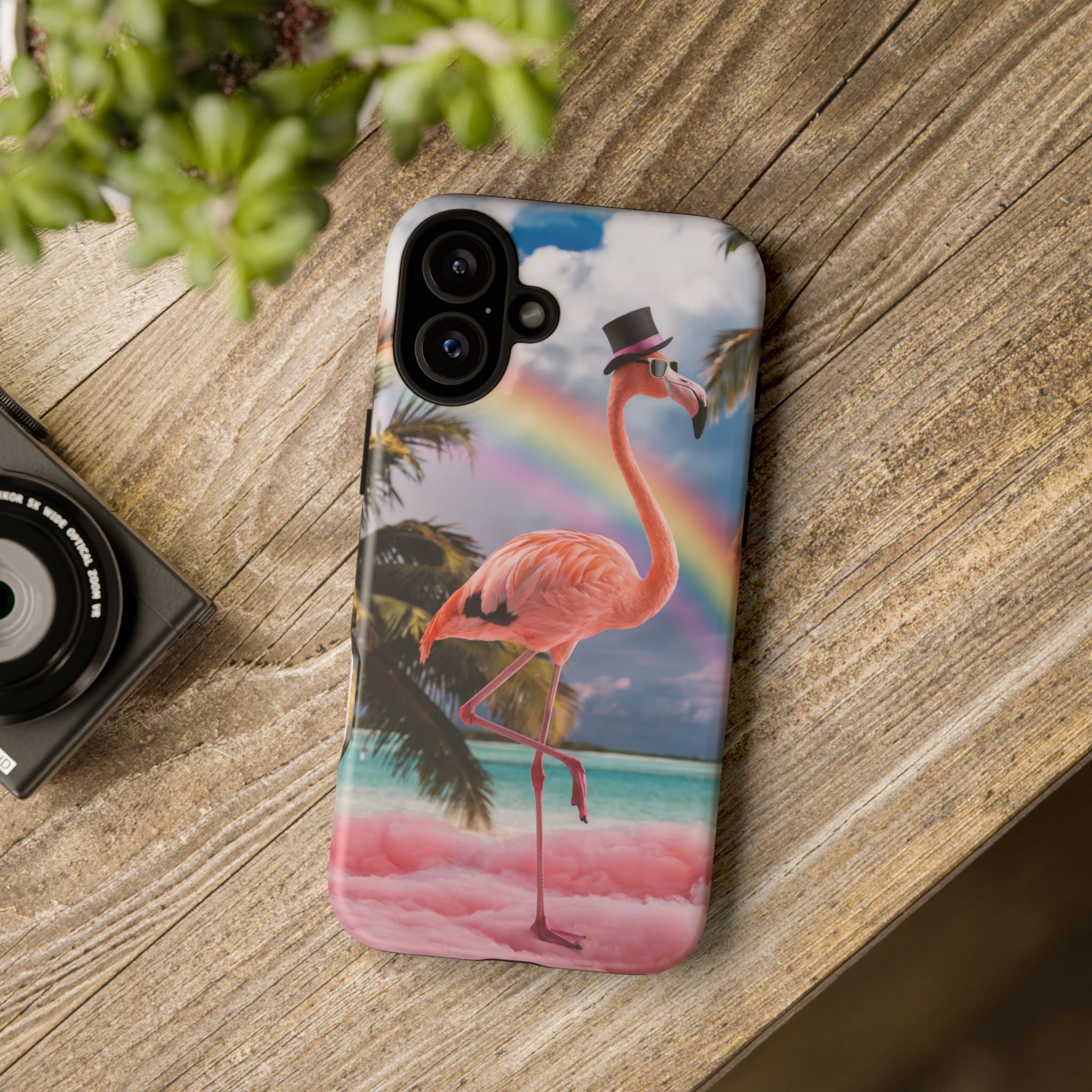 A dreamy, tropical day in your pocket — a debonair flamingo balances on cotton‑candy clouds beneath a soft pastel rainbow.... Read more