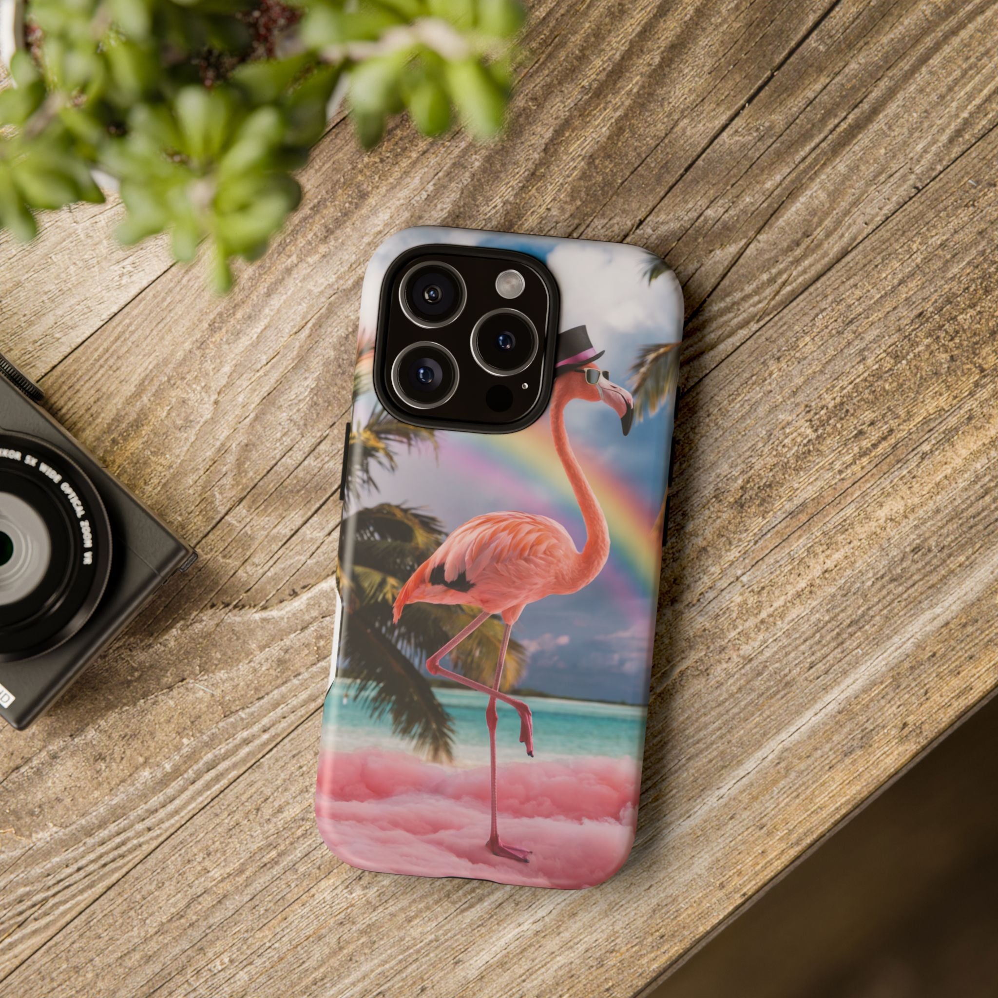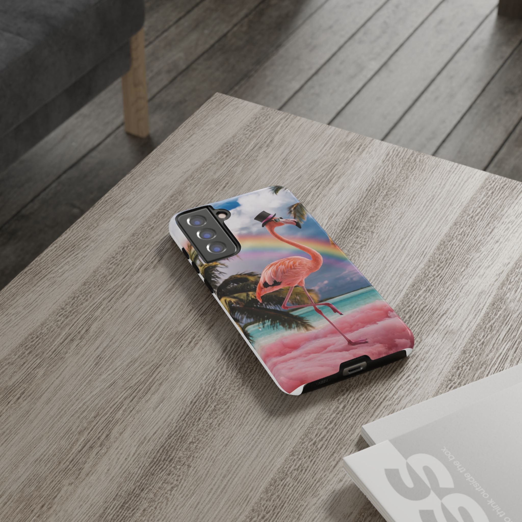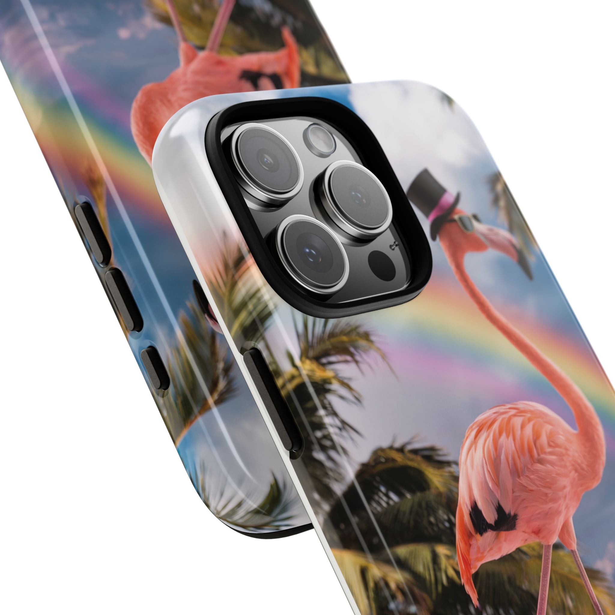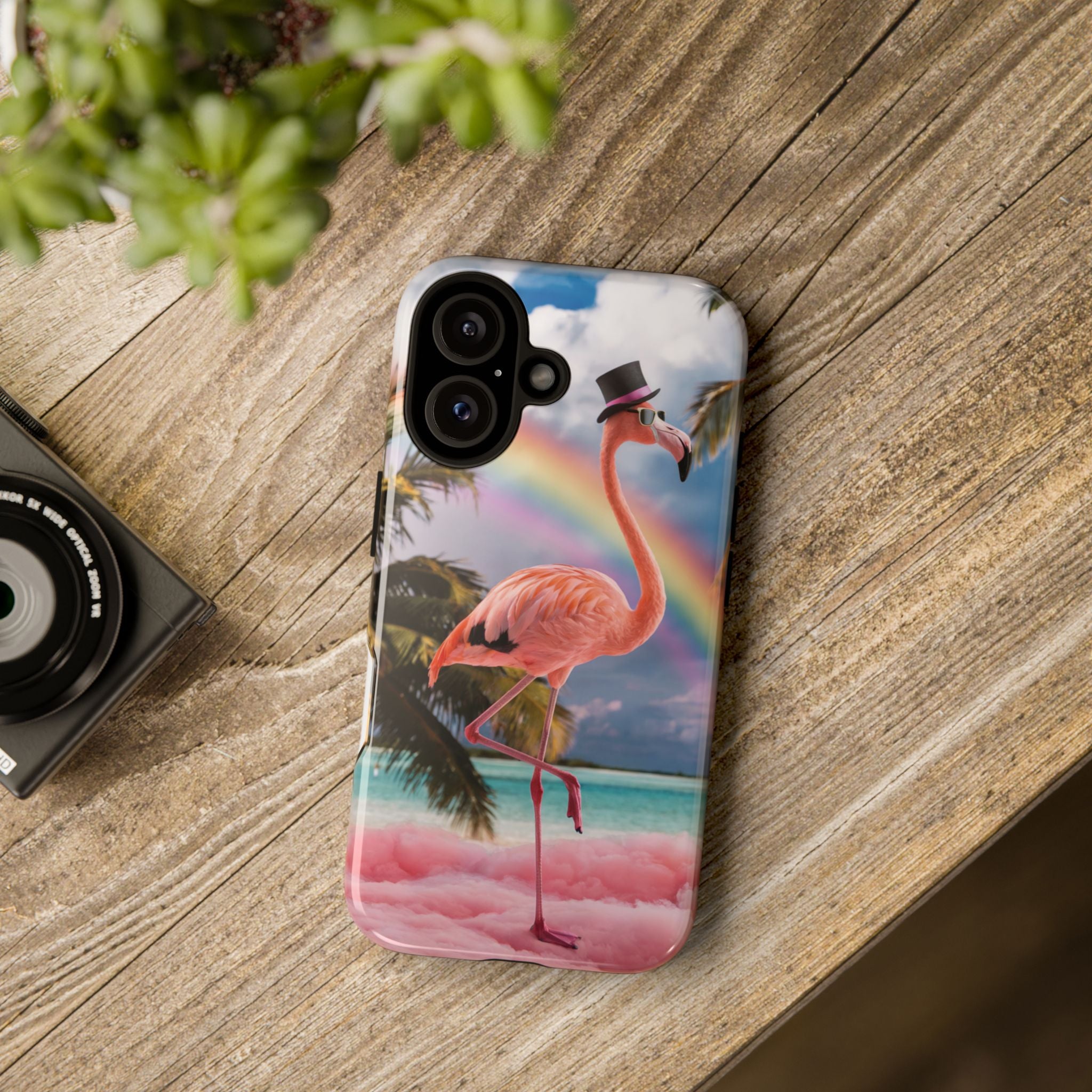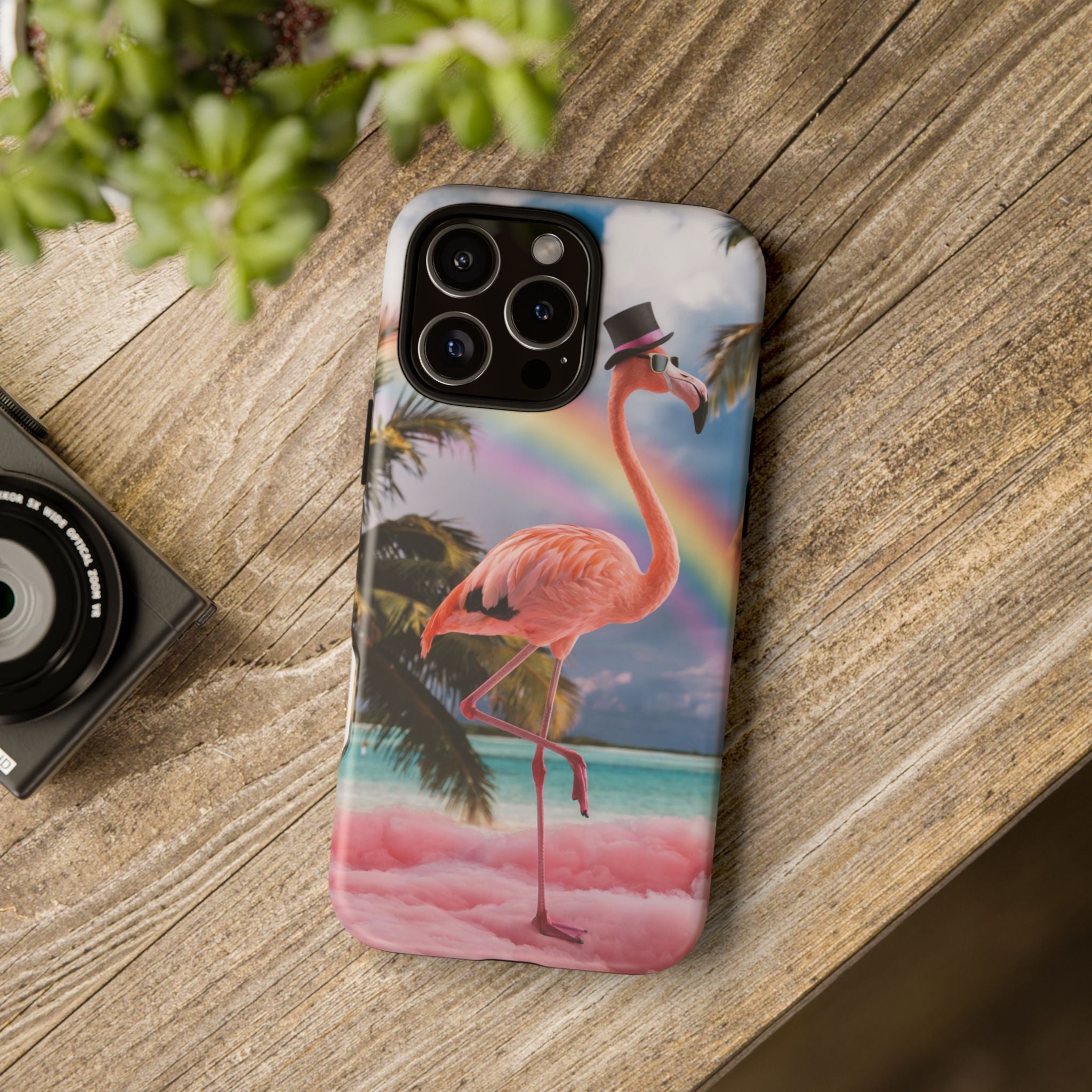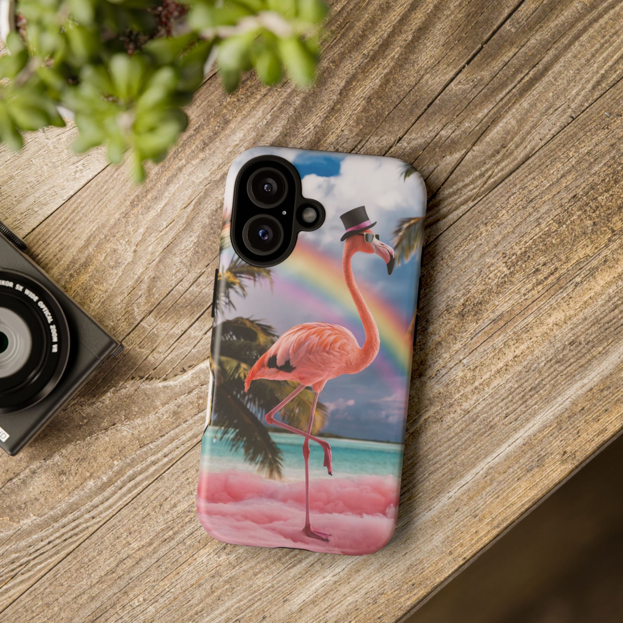 A dreamy, tropical day in your pocket — a debonair flamingo balances on cotton‑candy clouds beneath a soft pastel rainbow.... Read more