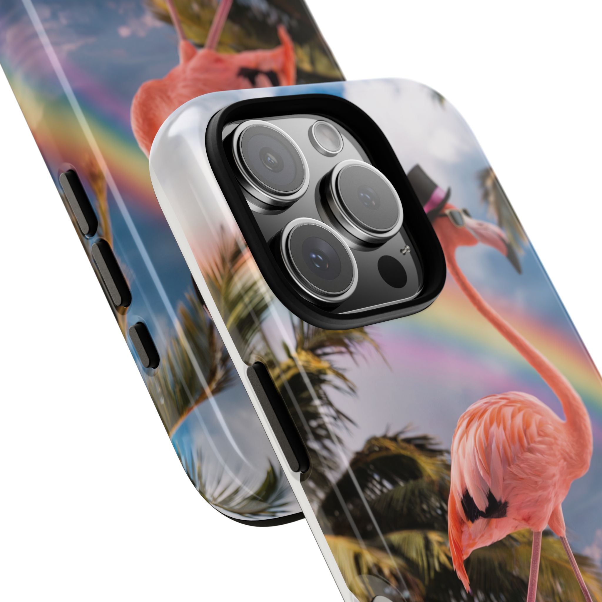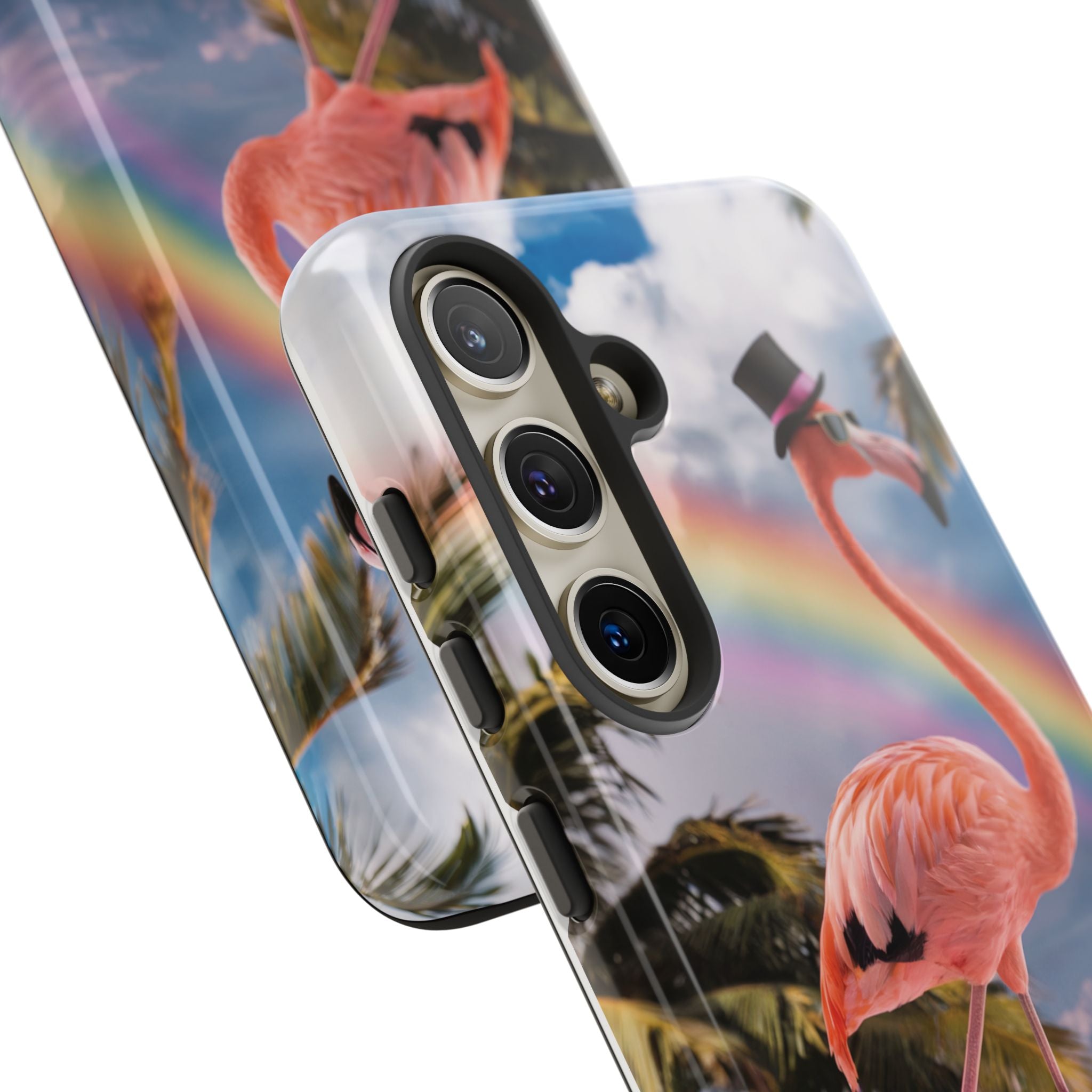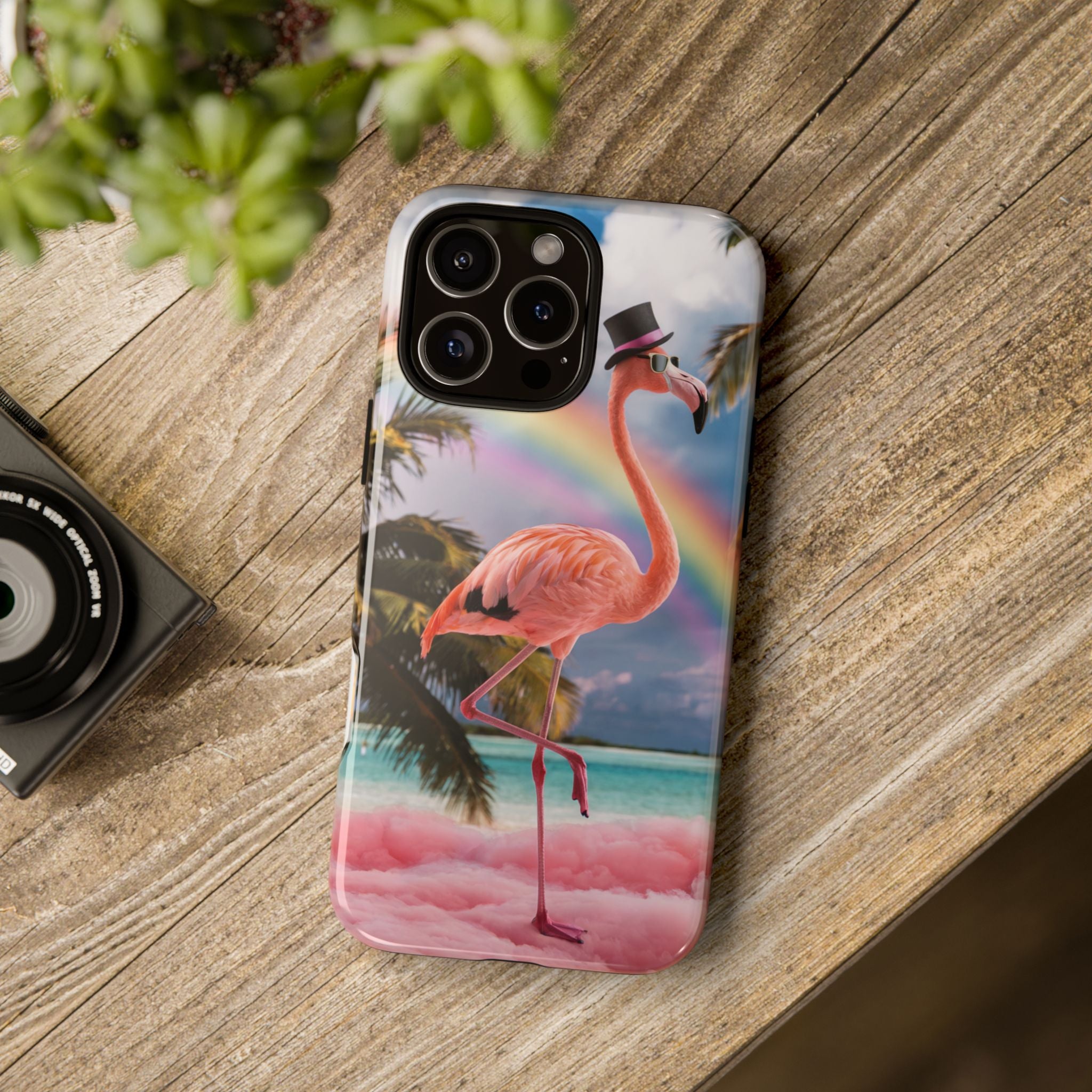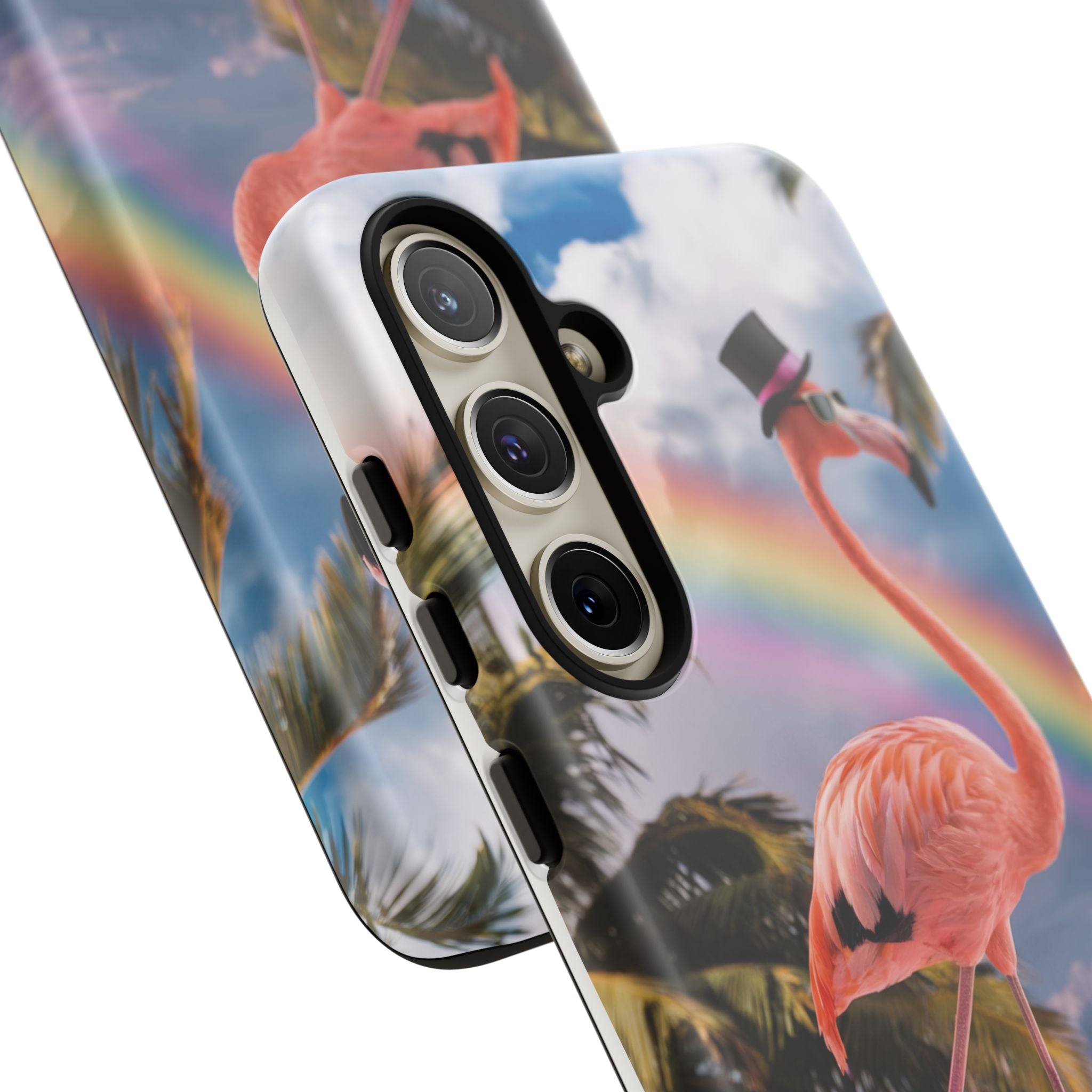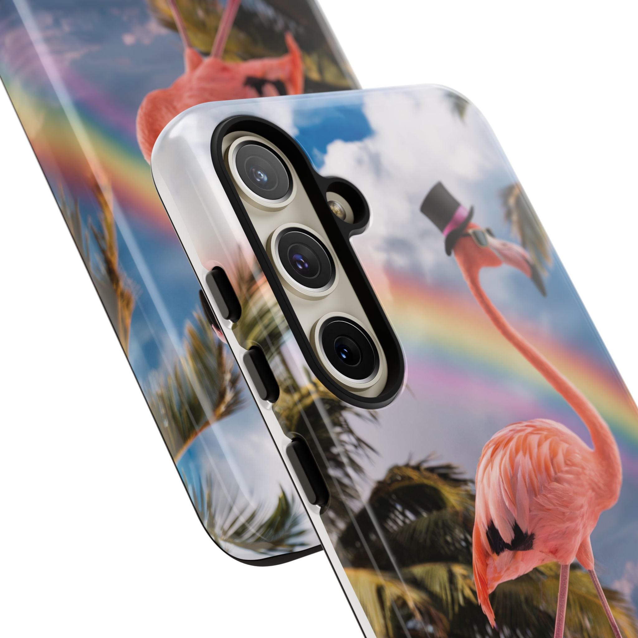 A dreamy, tropical day in your pocket — a debonair flamingo balances on cotton‑candy clouds beneath a soft pastel rainbow.... Read more
