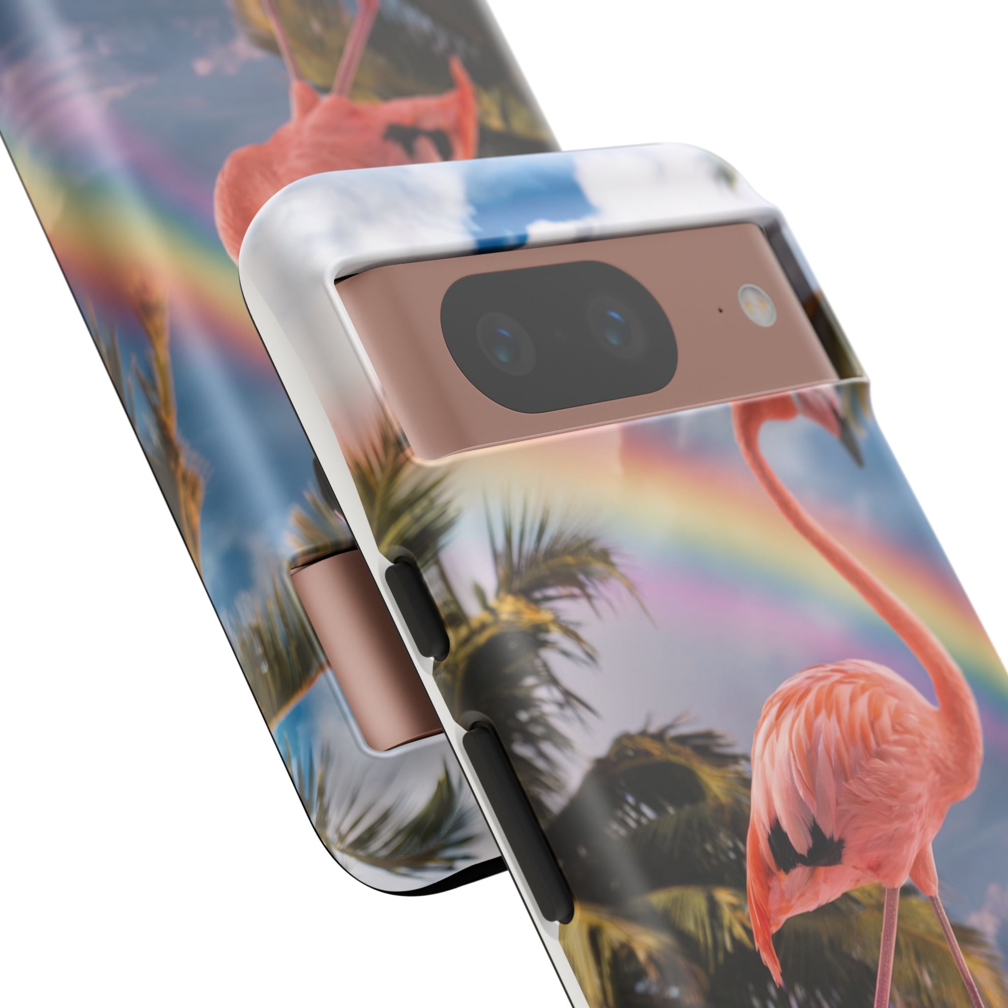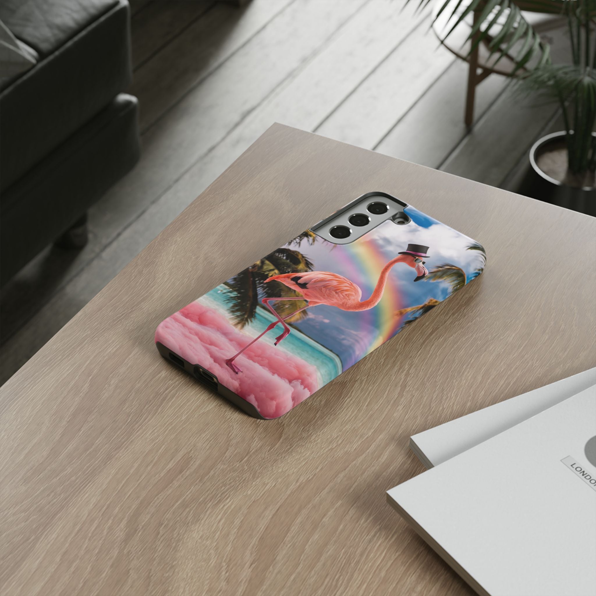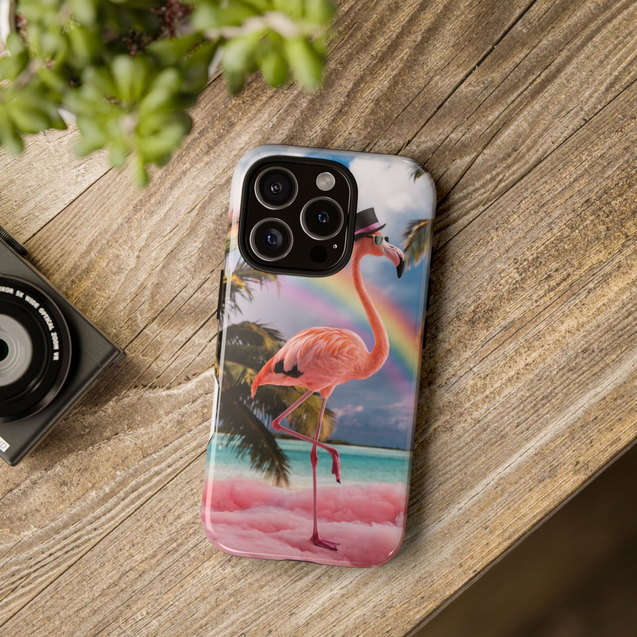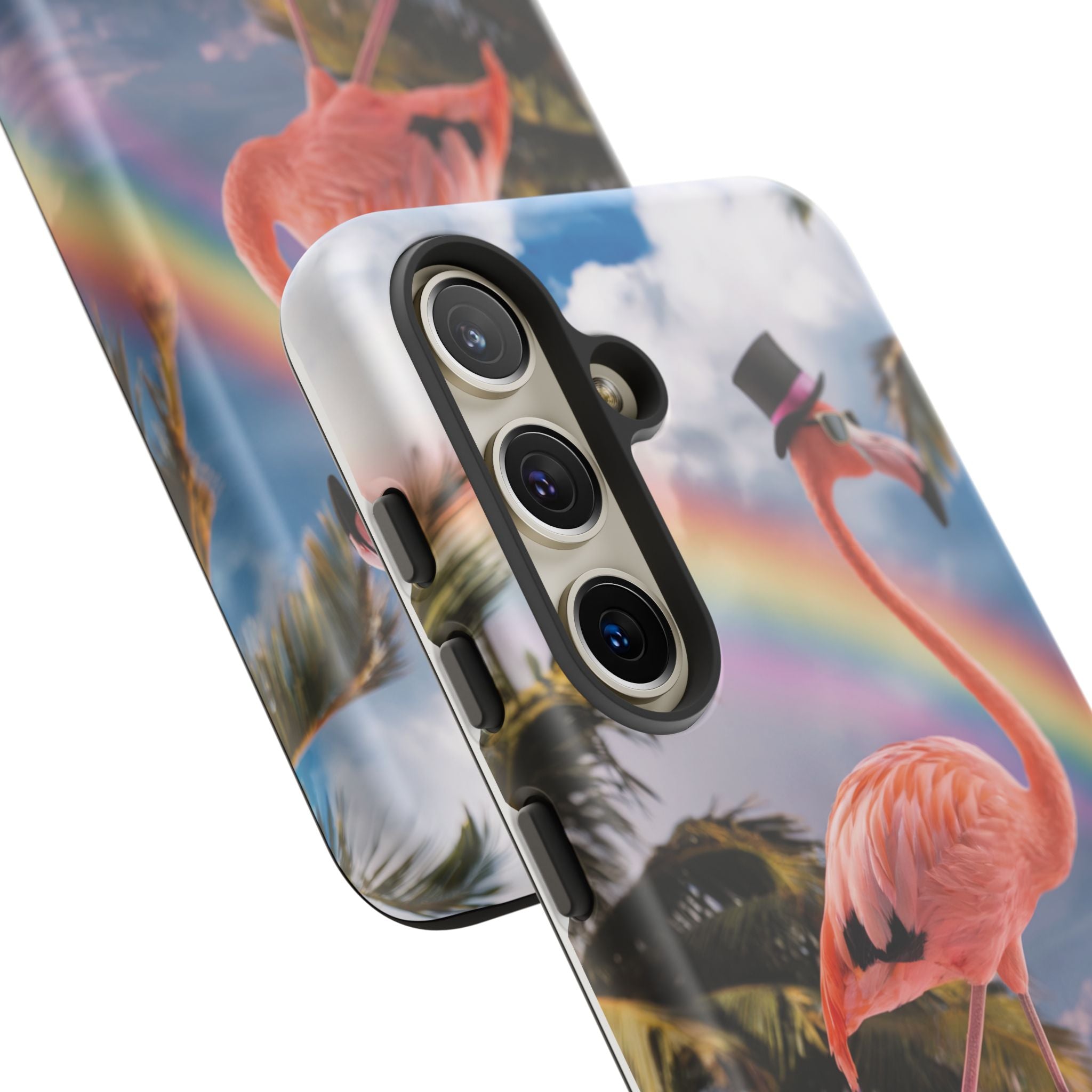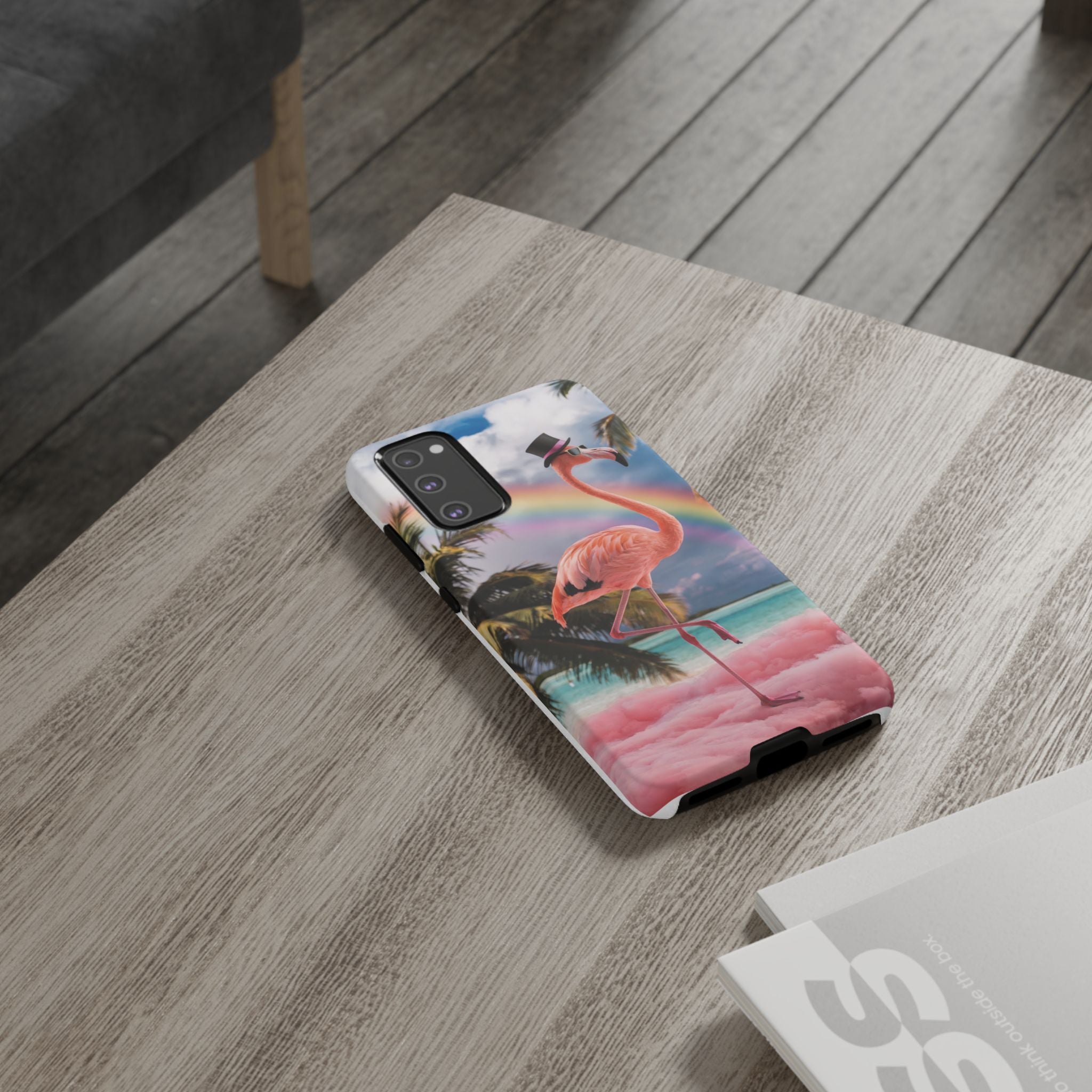 A dreamy, tropical day in your pocket — a debonair flamingo balances on cotton‑candy clouds beneath a soft pastel rainbow.... Read more
