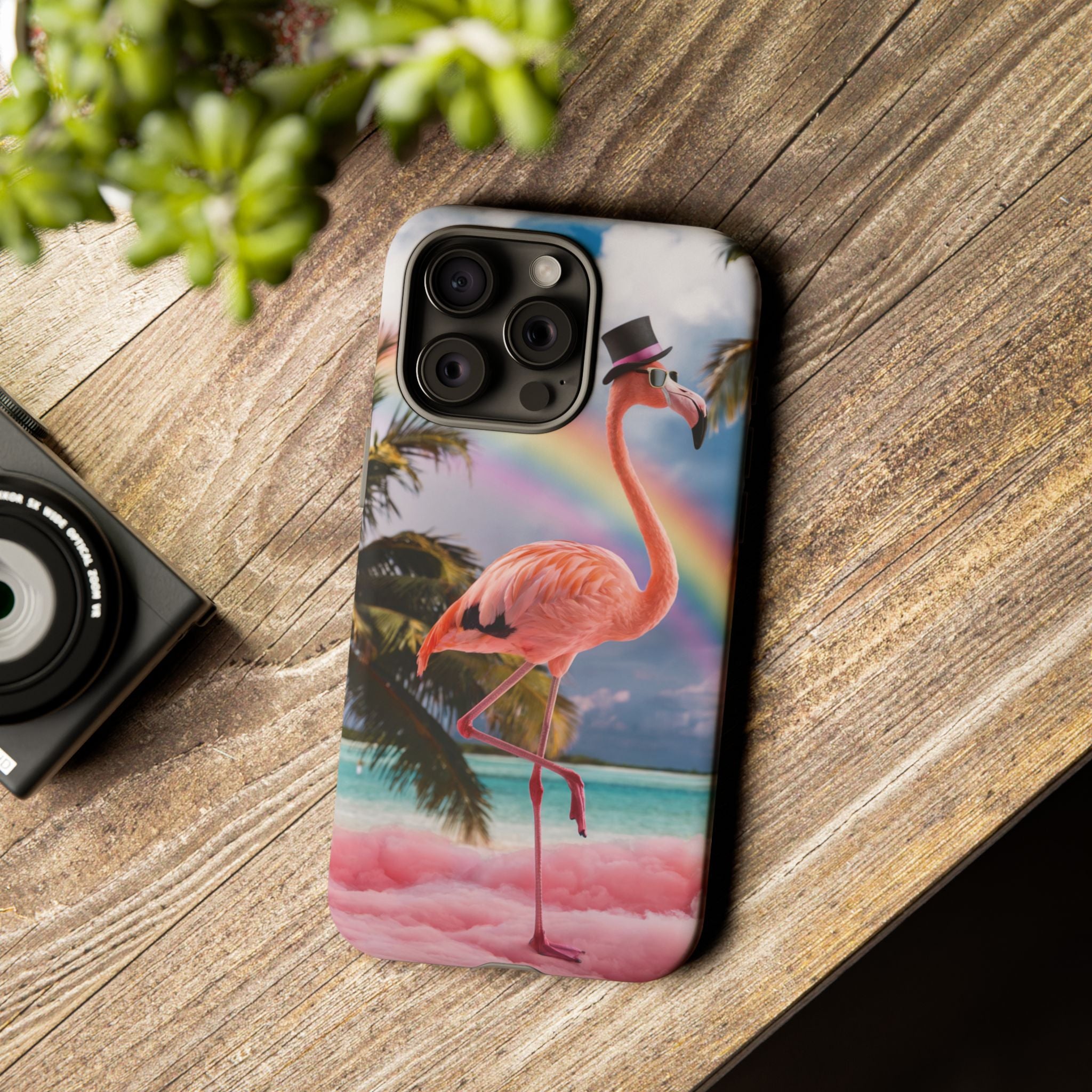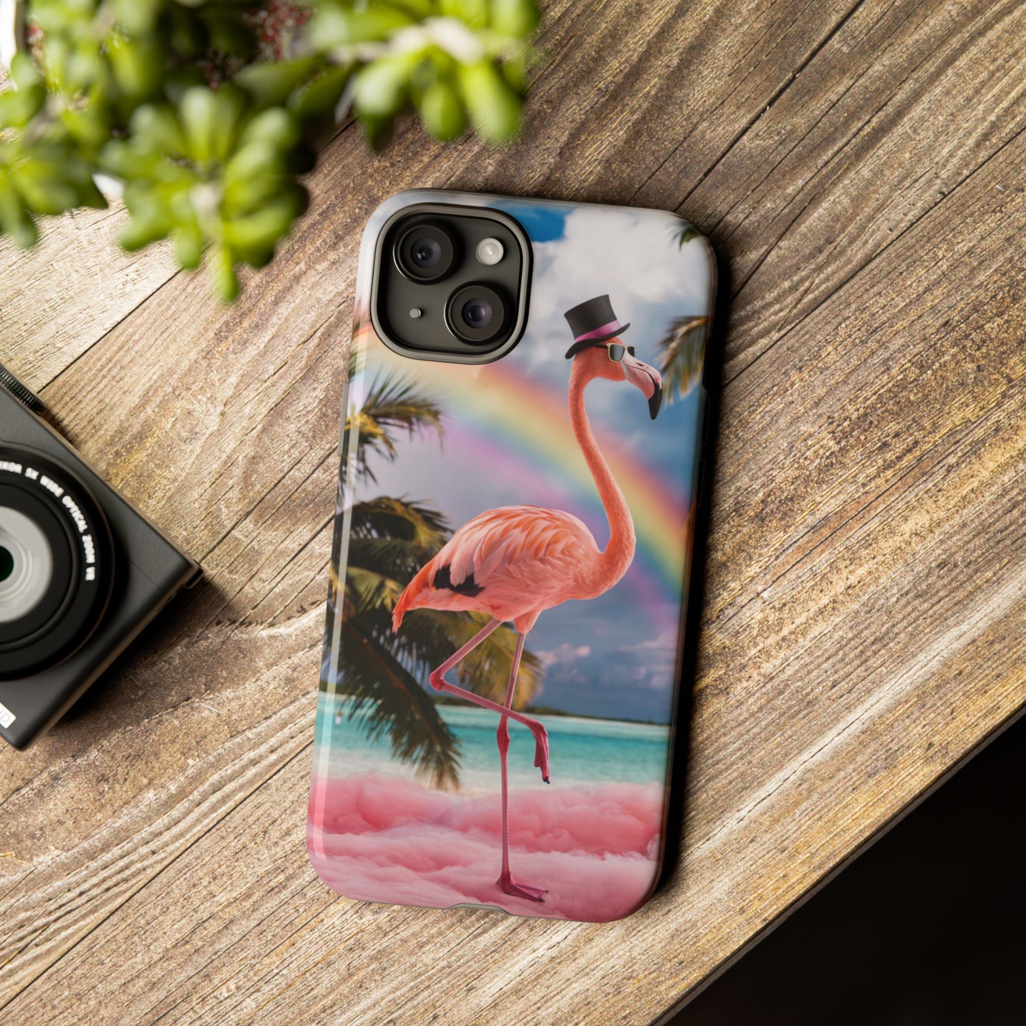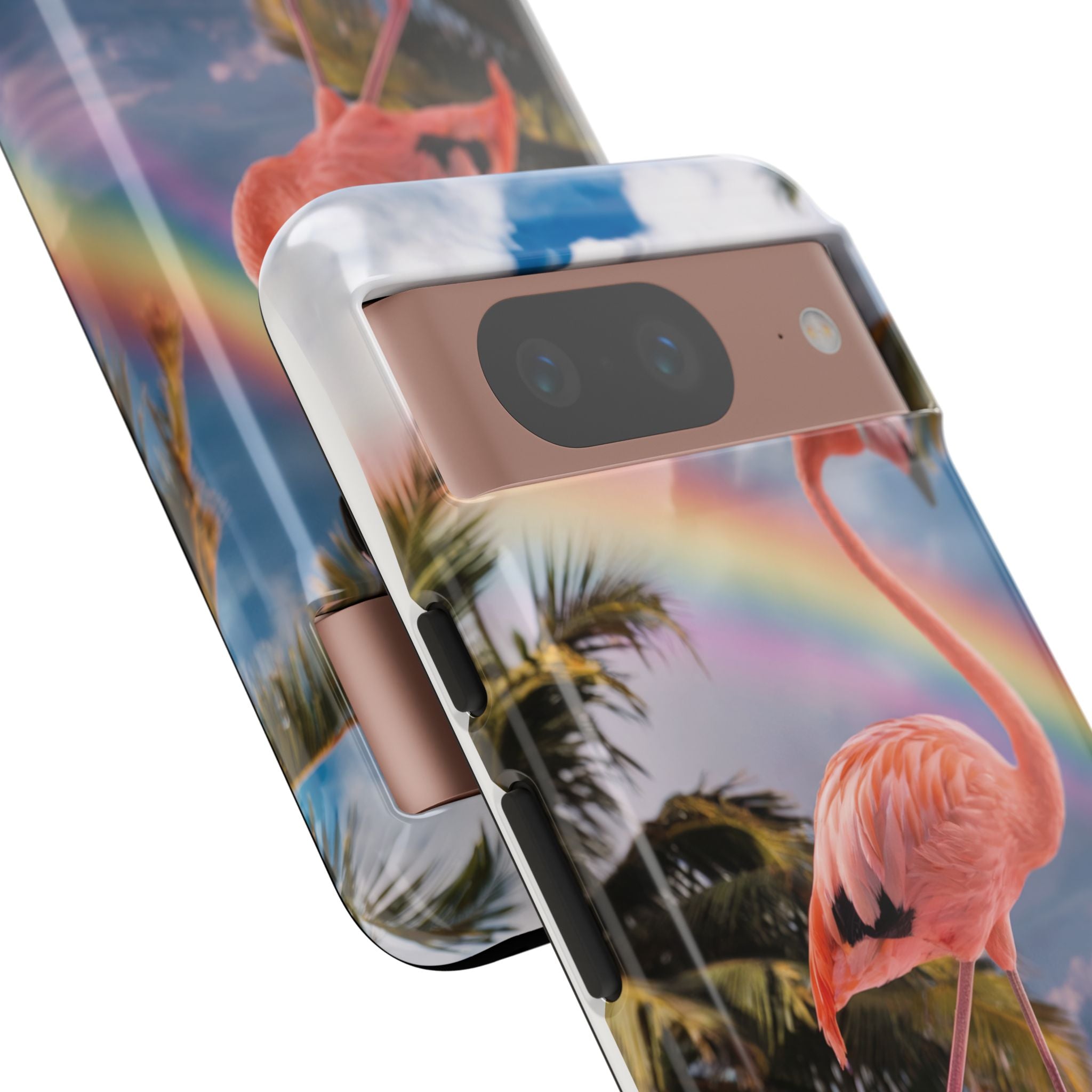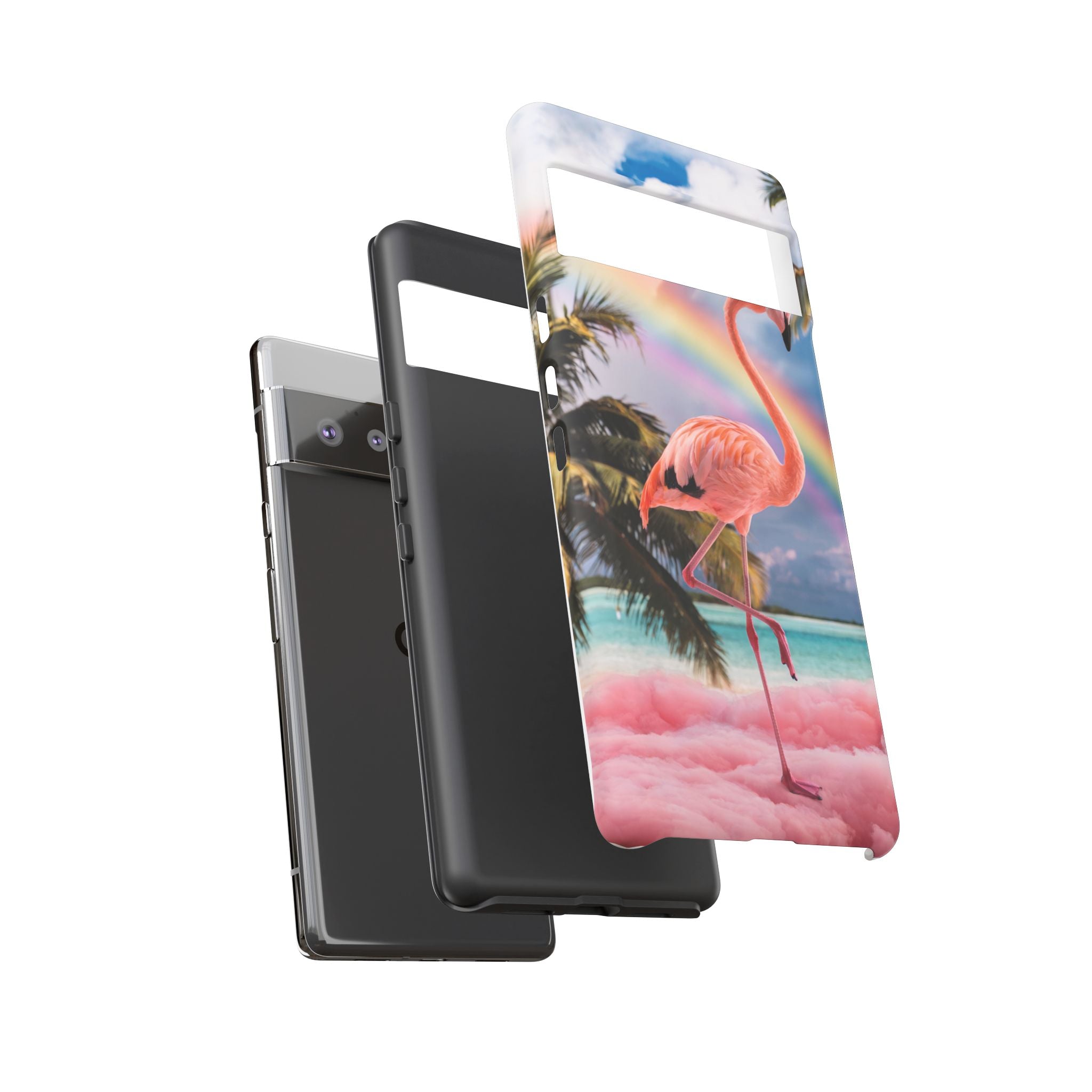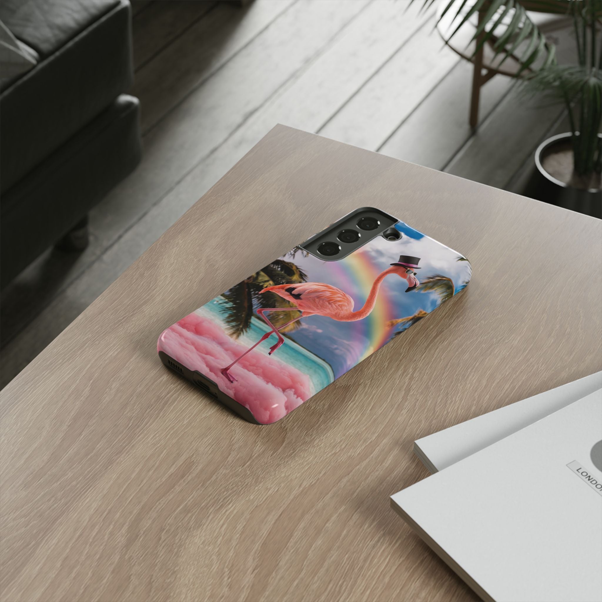 A dreamy, tropical day in your pocket — a debonair flamingo balances on cotton‑candy clouds beneath a soft pastel rainbow.... Read more