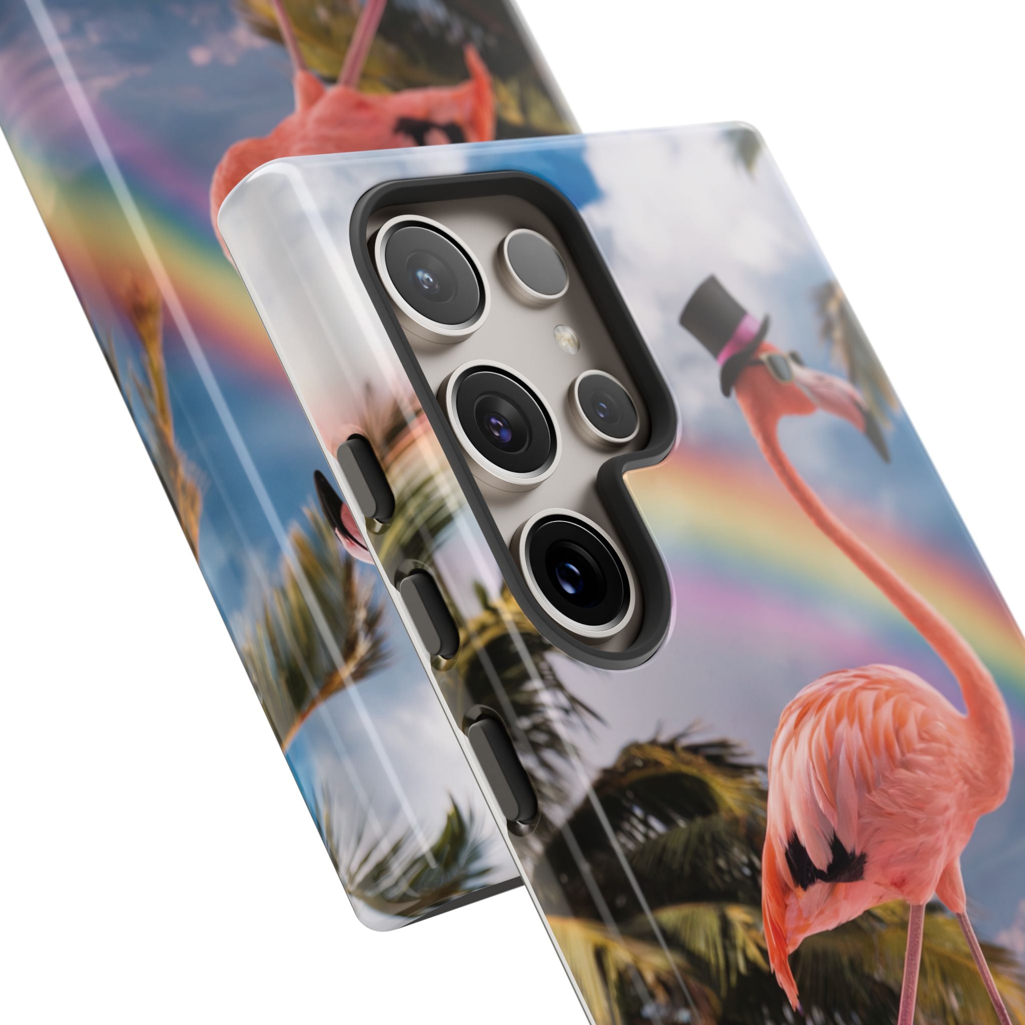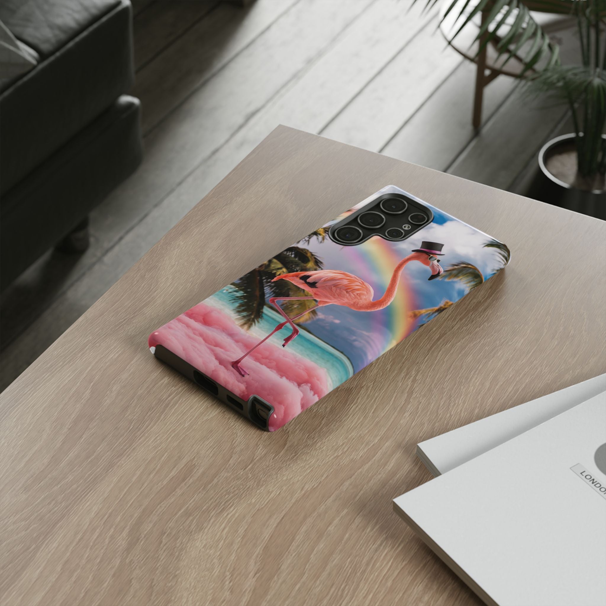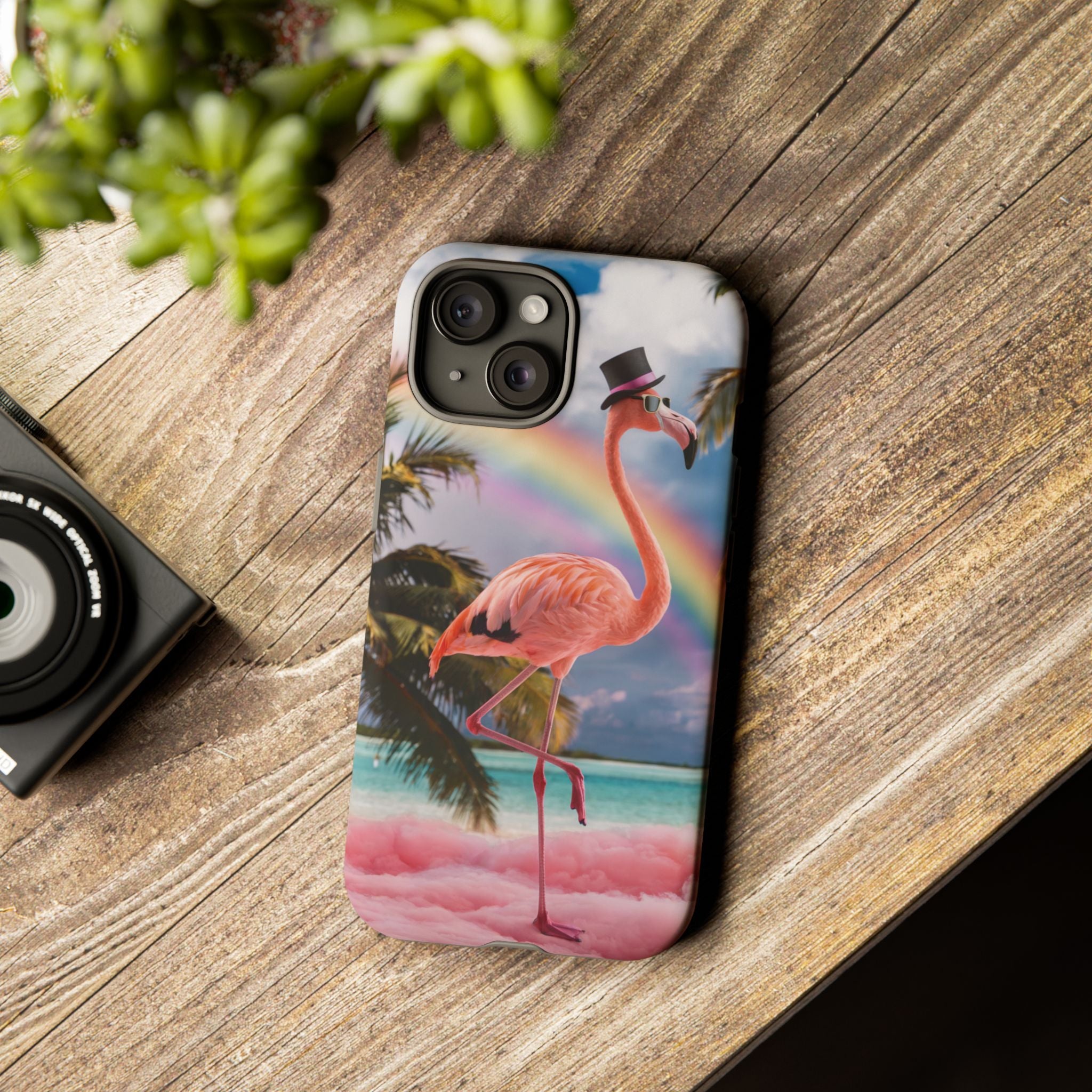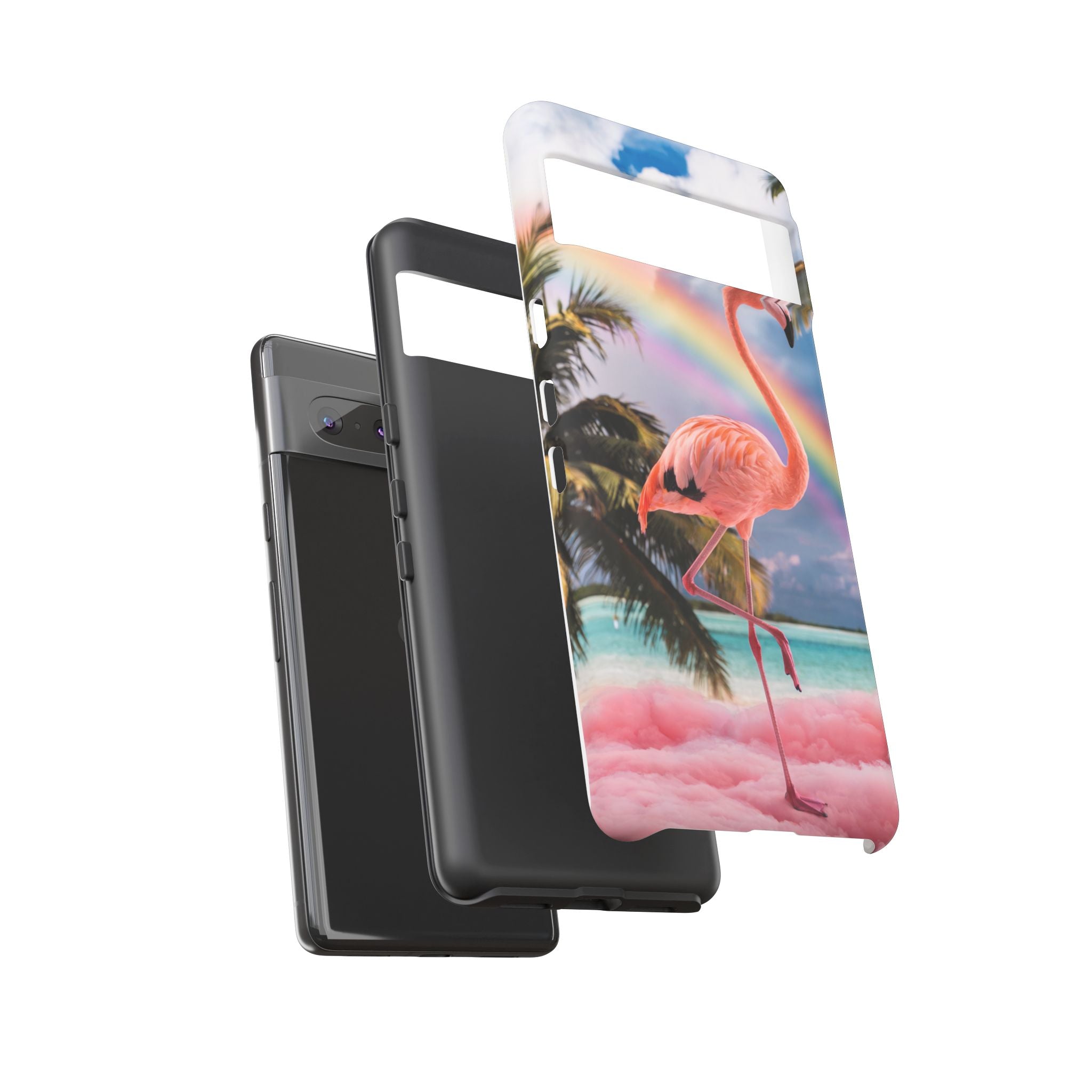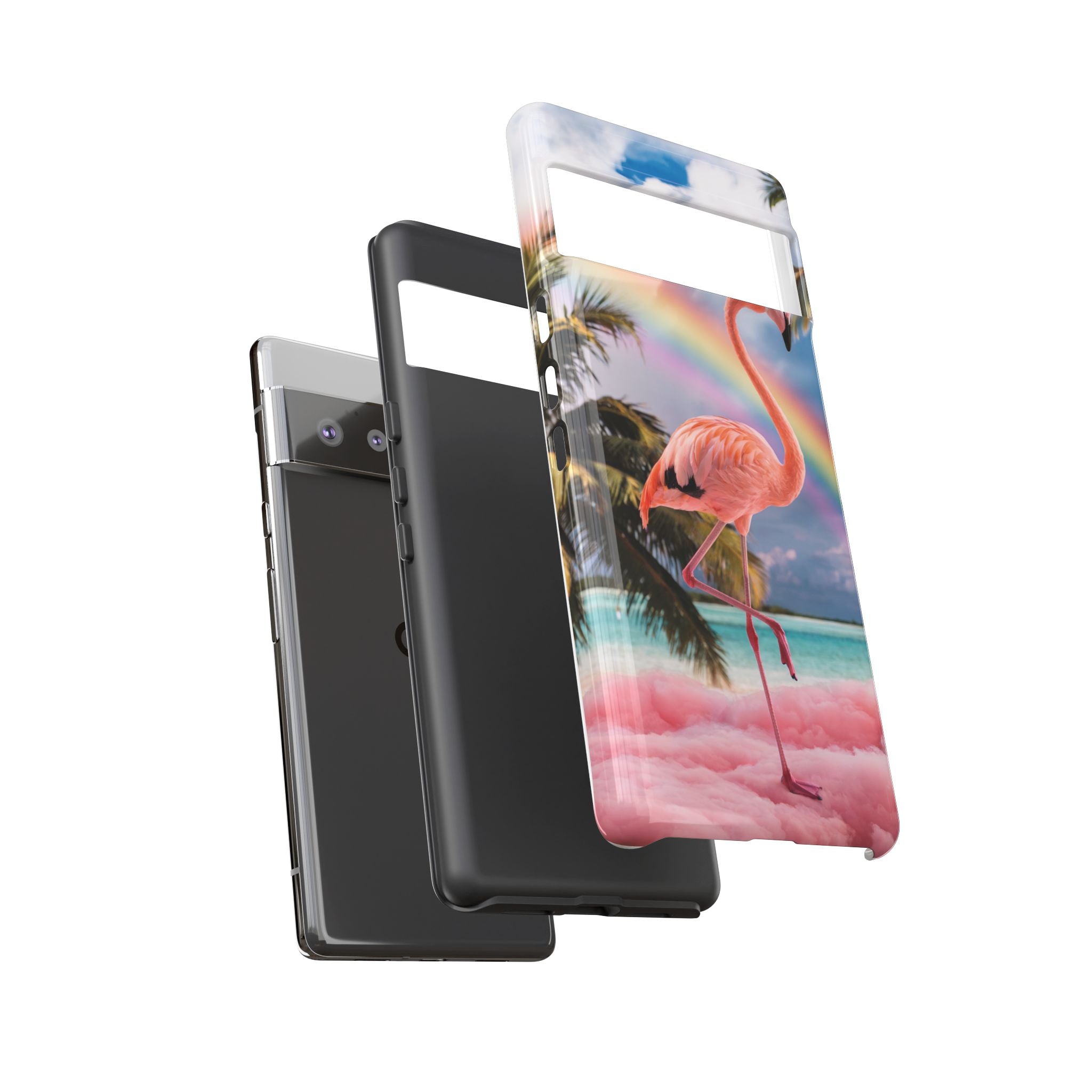 A dreamy, tropical day in your pocket — a debonair flamingo balances on cotton‑candy clouds beneath a soft pastel rainbow.... Read more