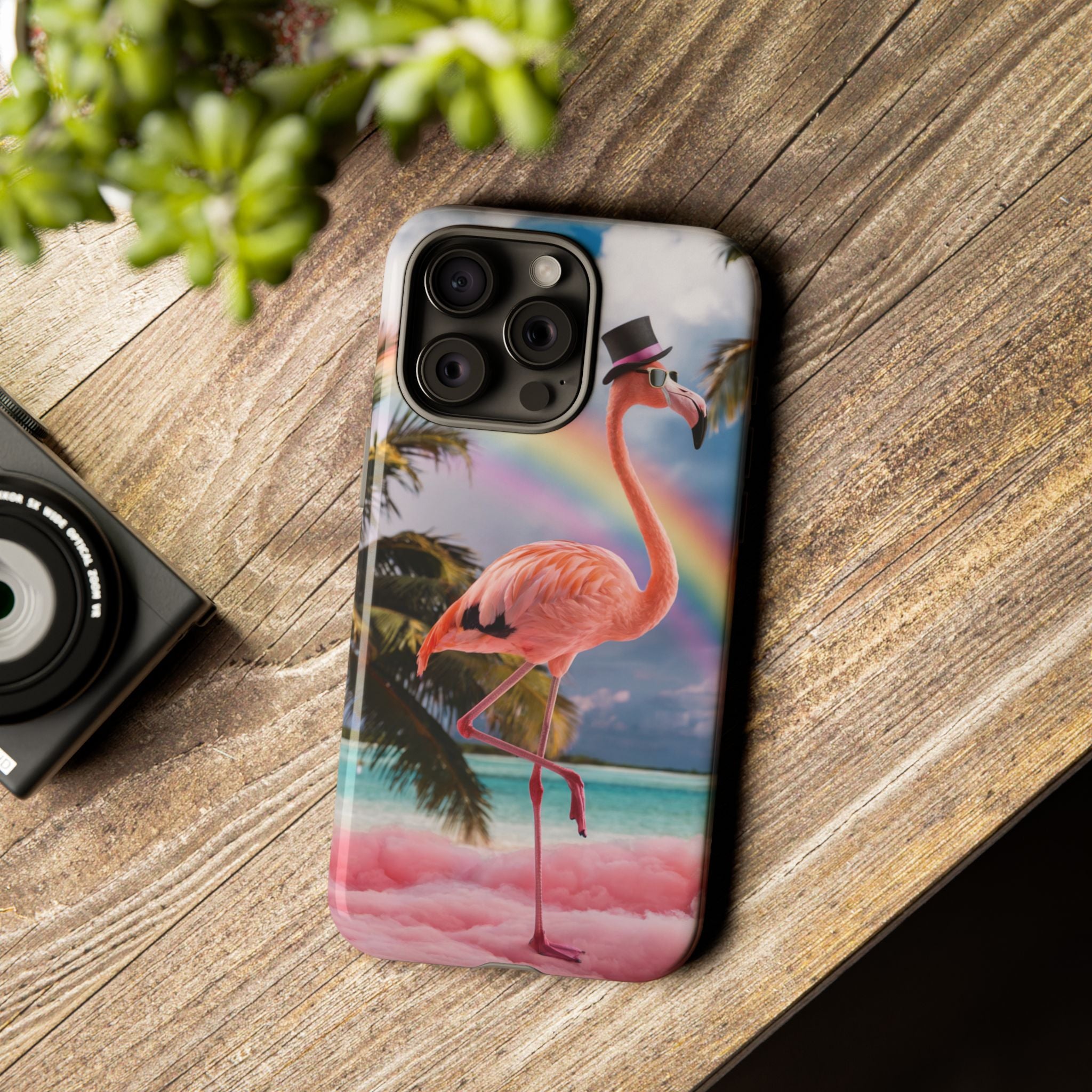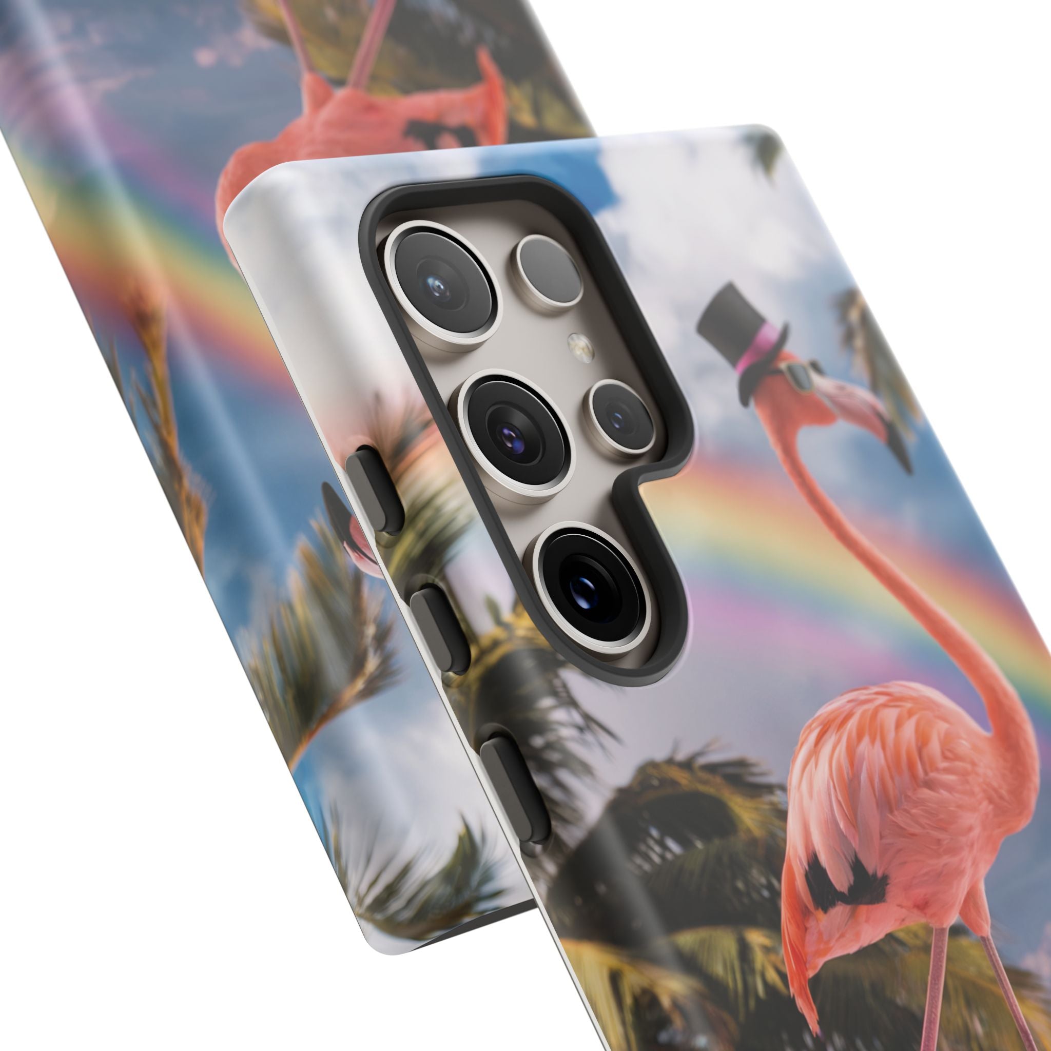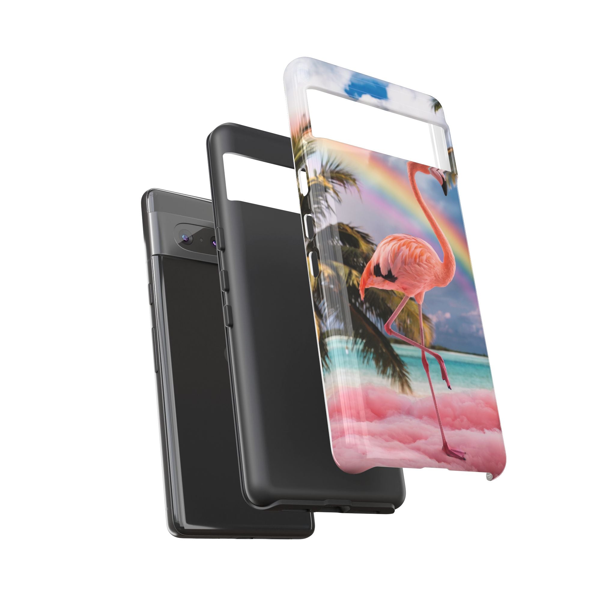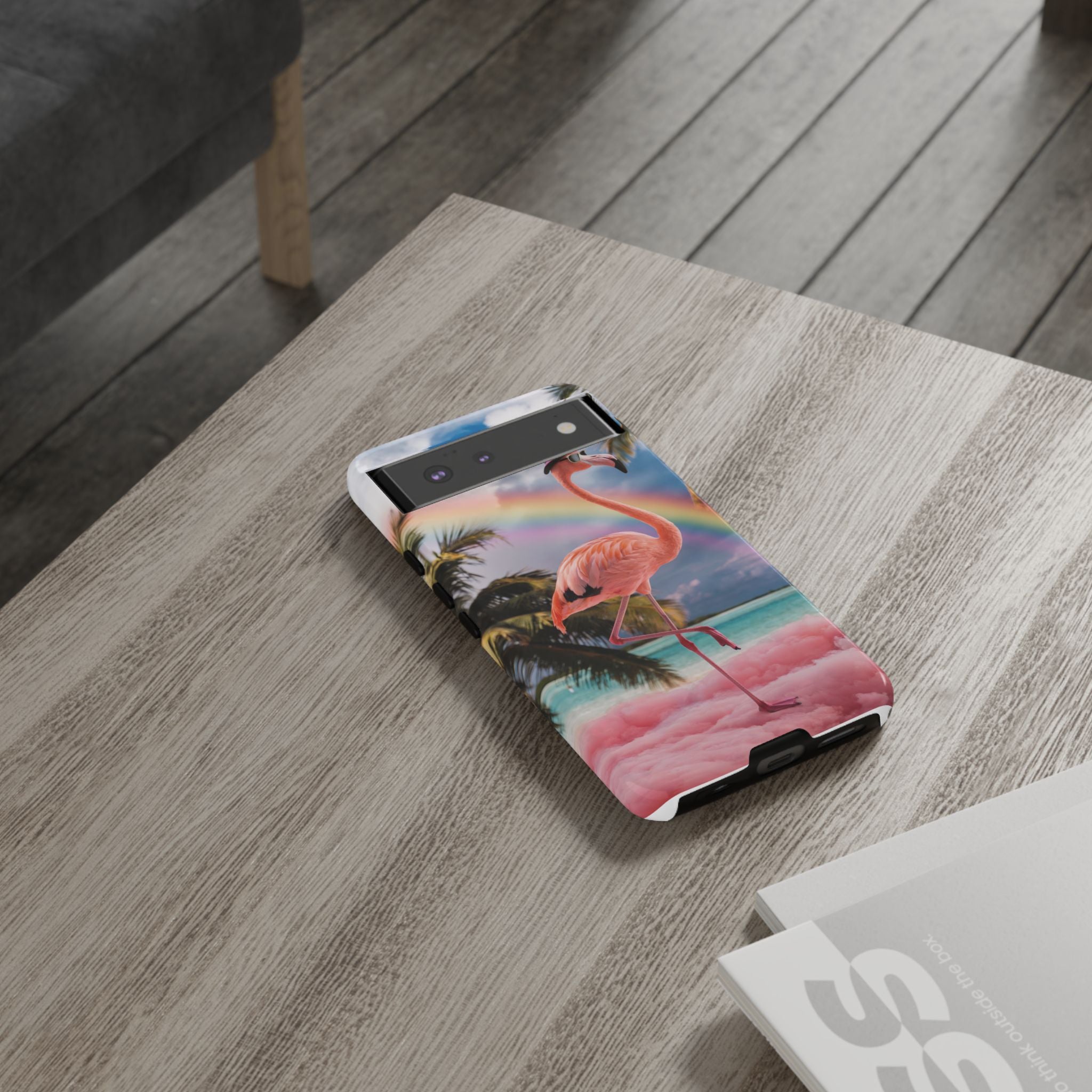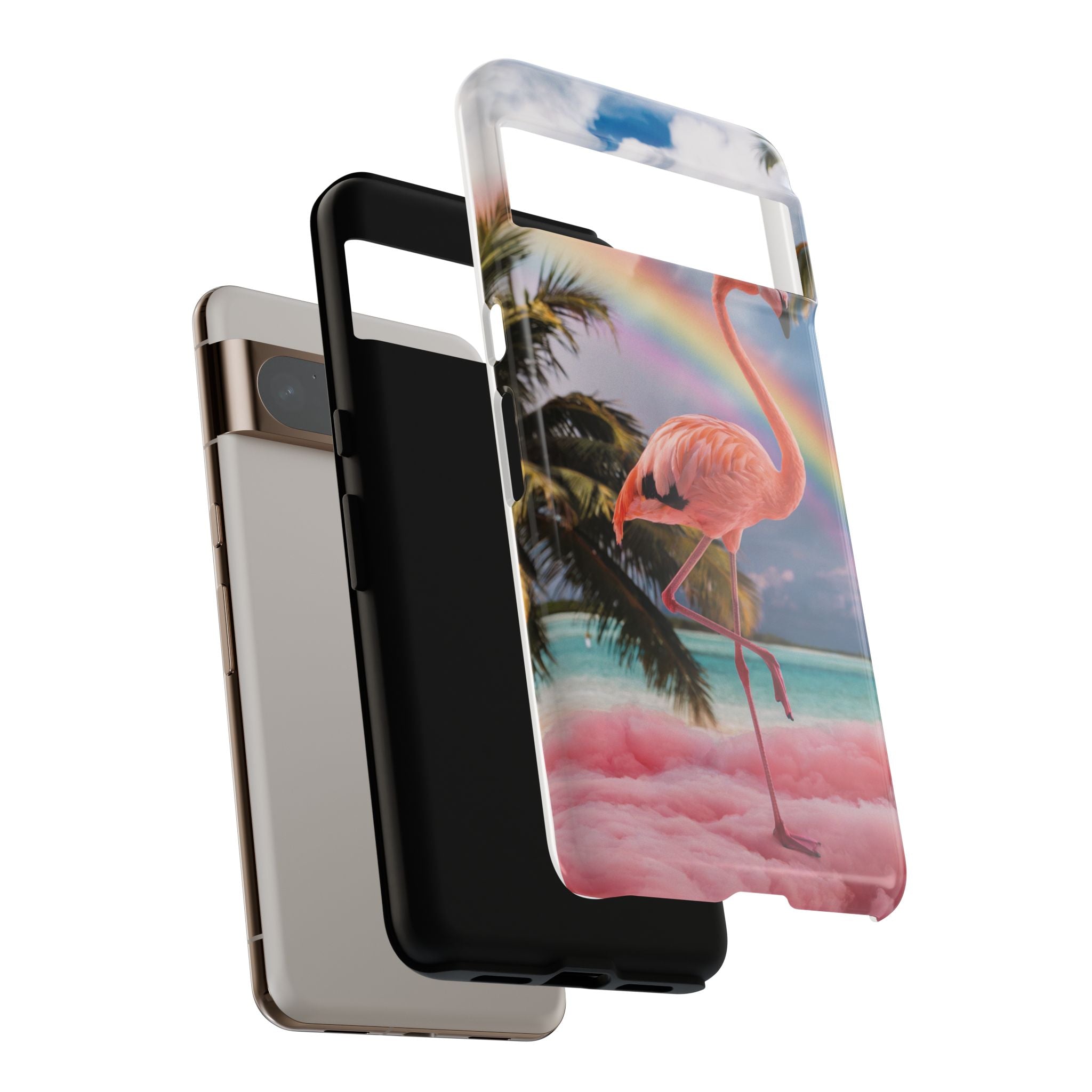 A dreamy, tropical day in your pocket — a debonair flamingo balances on cotton‑candy clouds beneath a soft pastel rainbow.... Read more