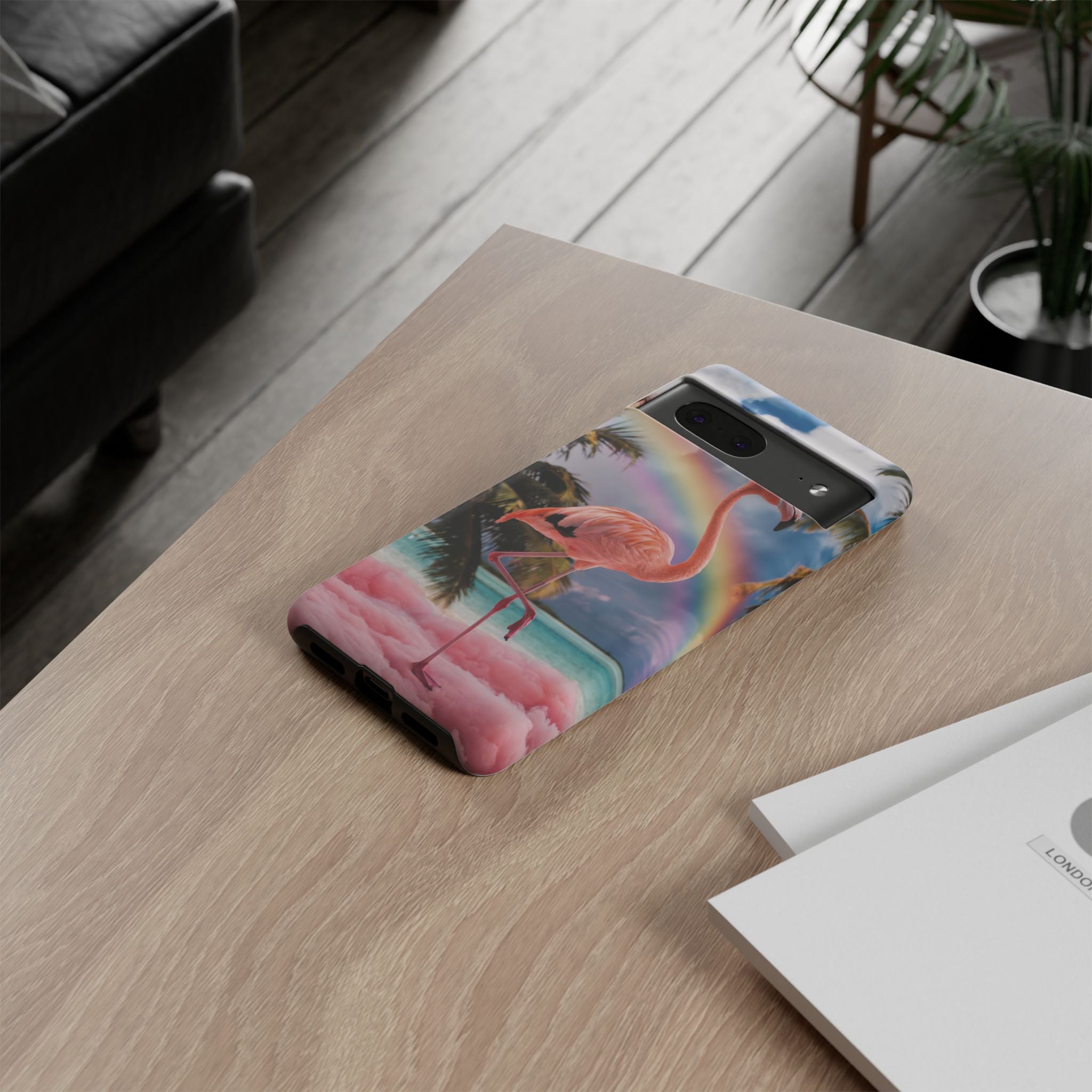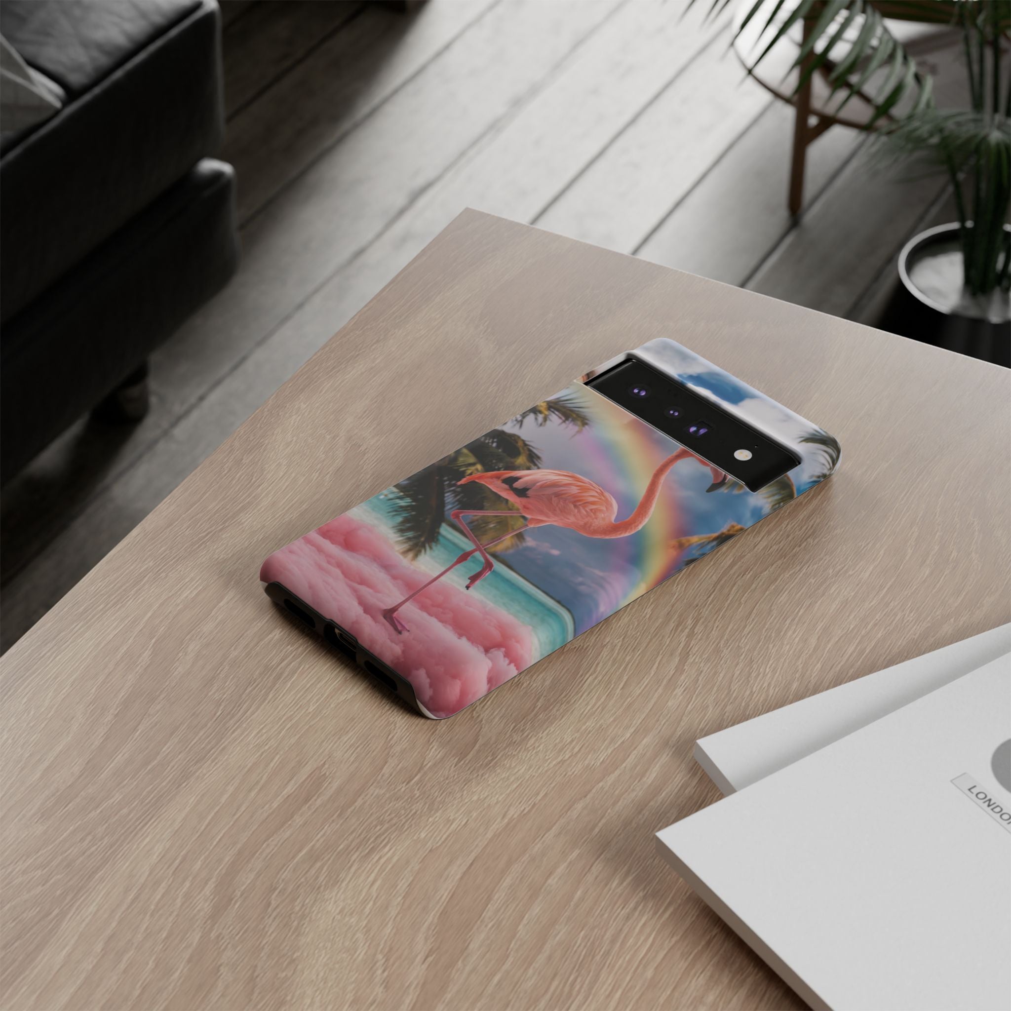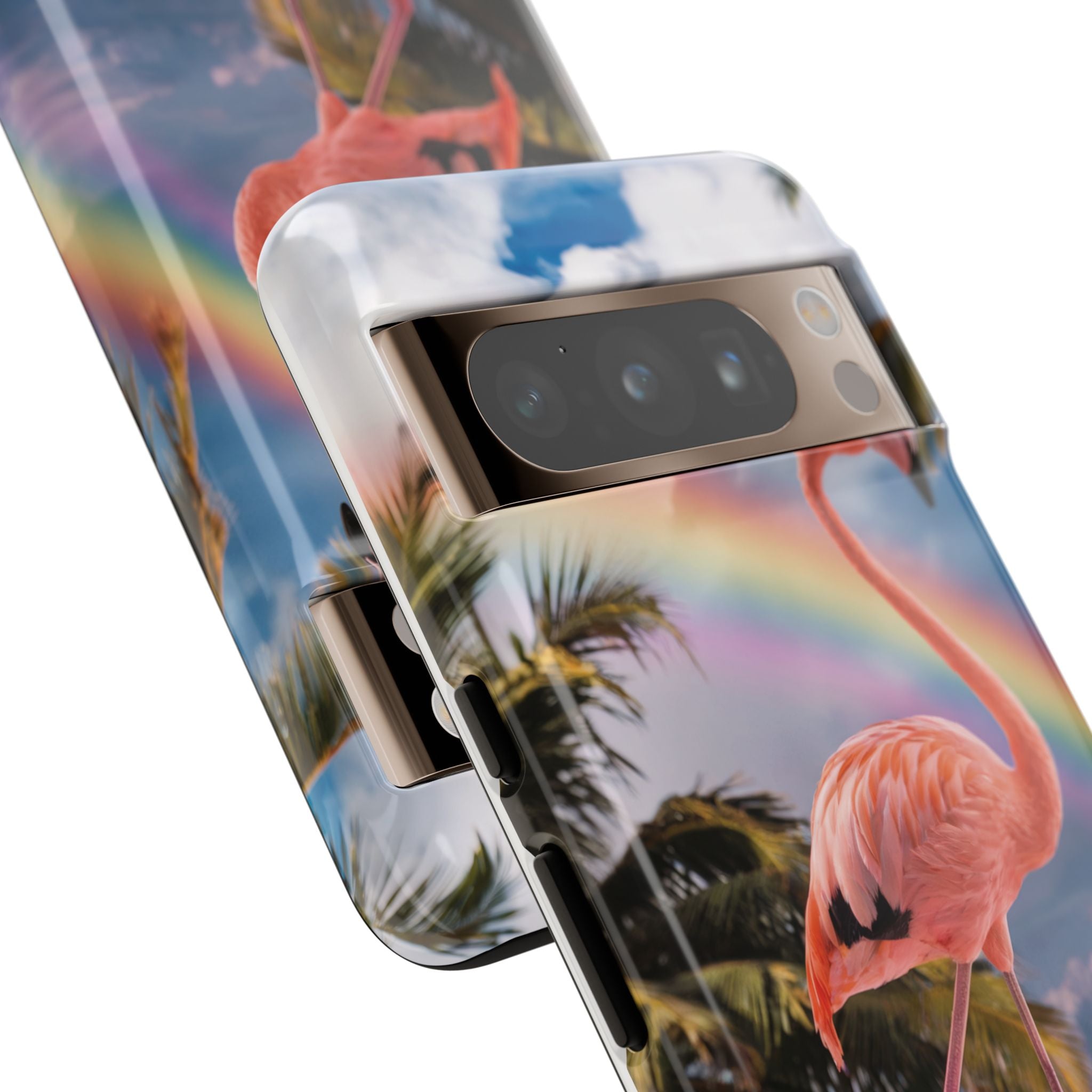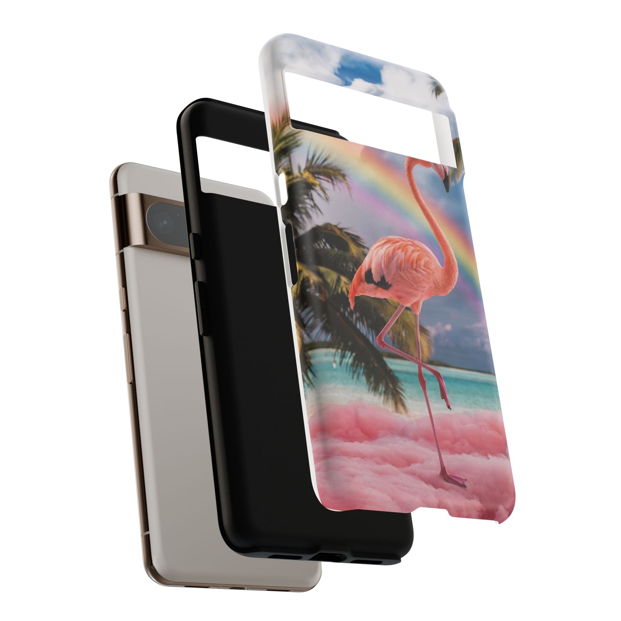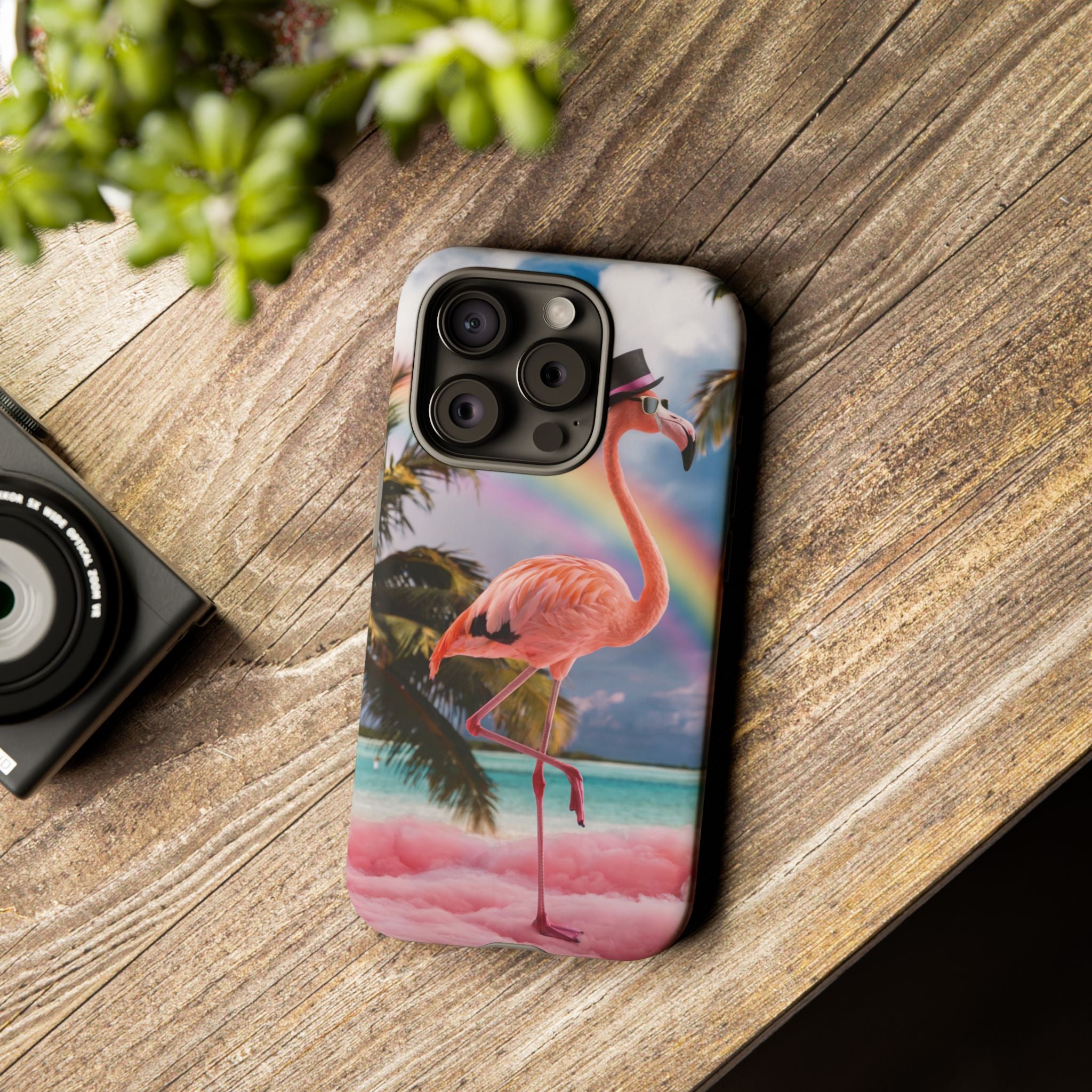 A dreamy, tropical day in your pocket — a debonair flamingo balances on cotton‑candy clouds beneath a soft pastel rainbow.... Read more