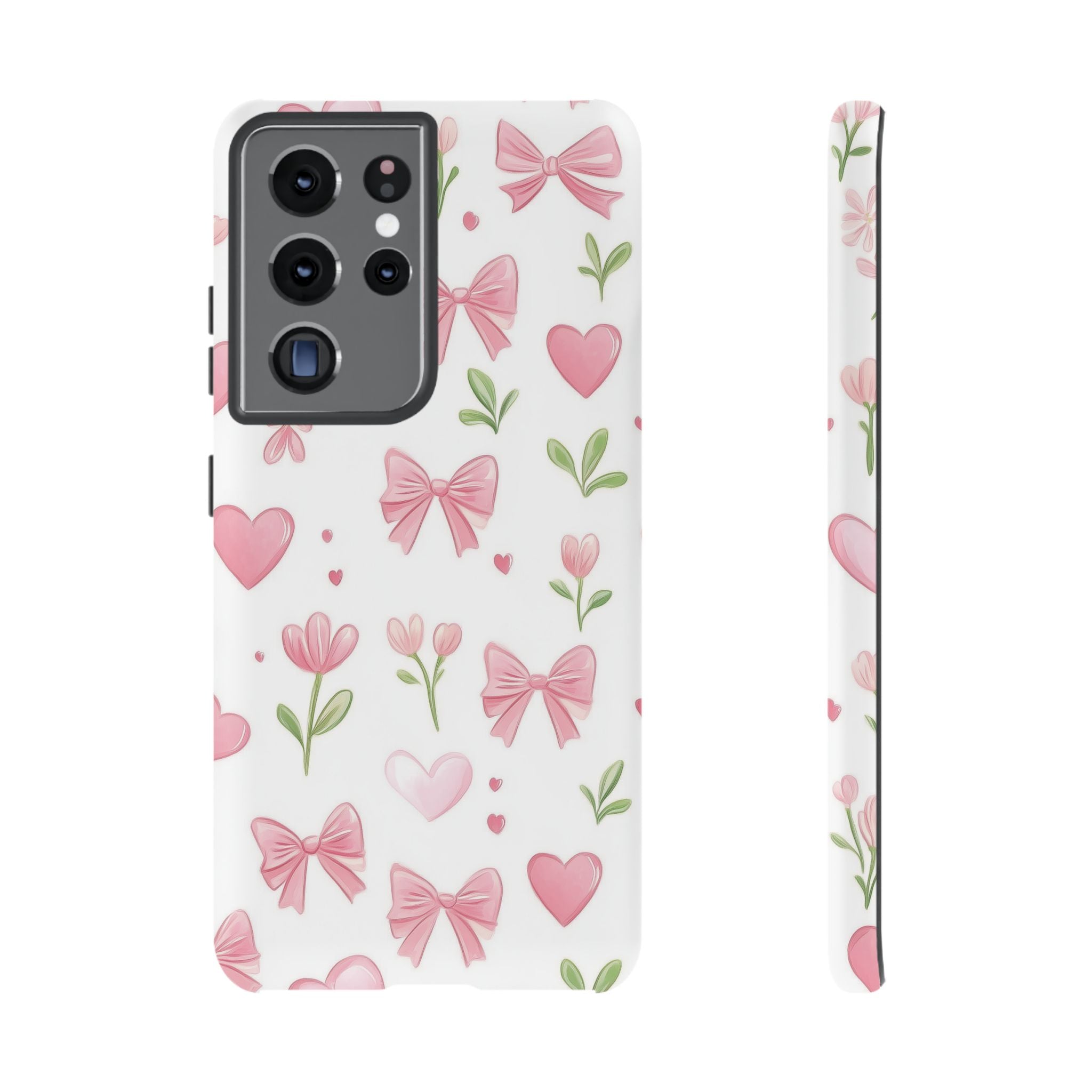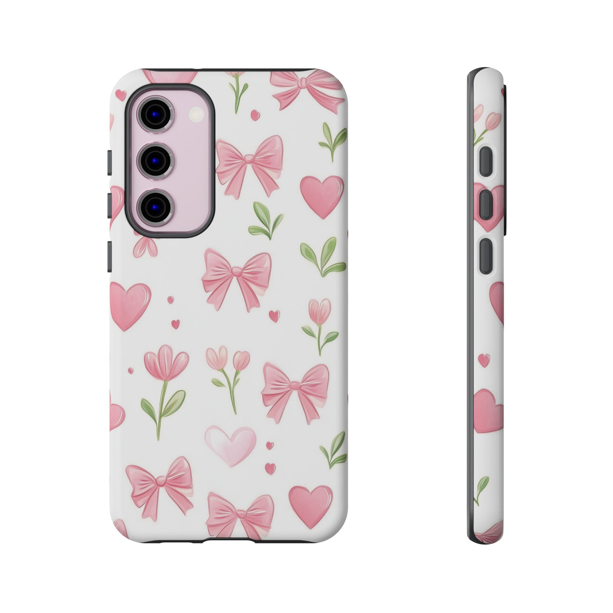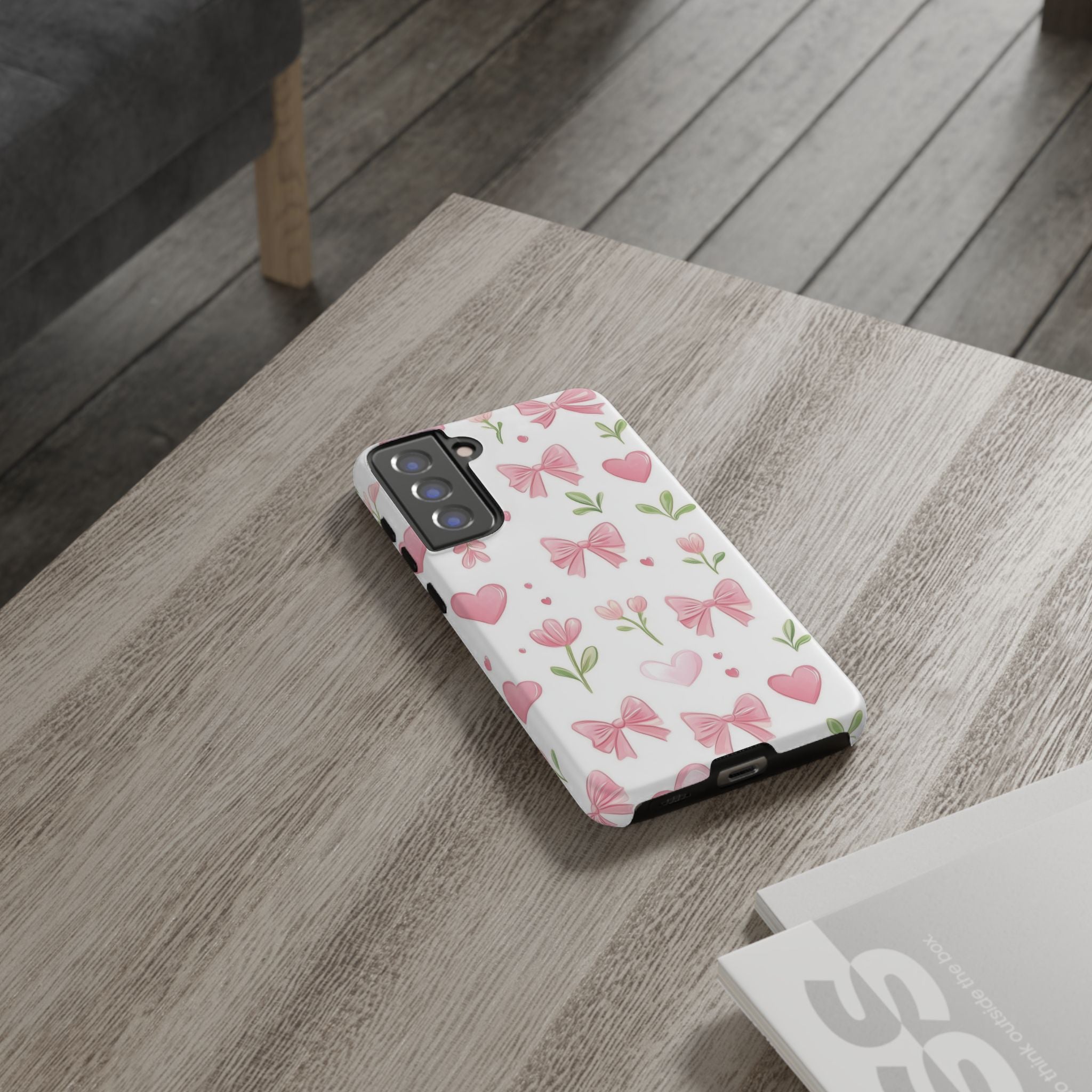 A dreamy, ribbon-strewn accent for your everyday — soft pink bows, tiny hearts and hand-drawn blooms float across a clean... Read more