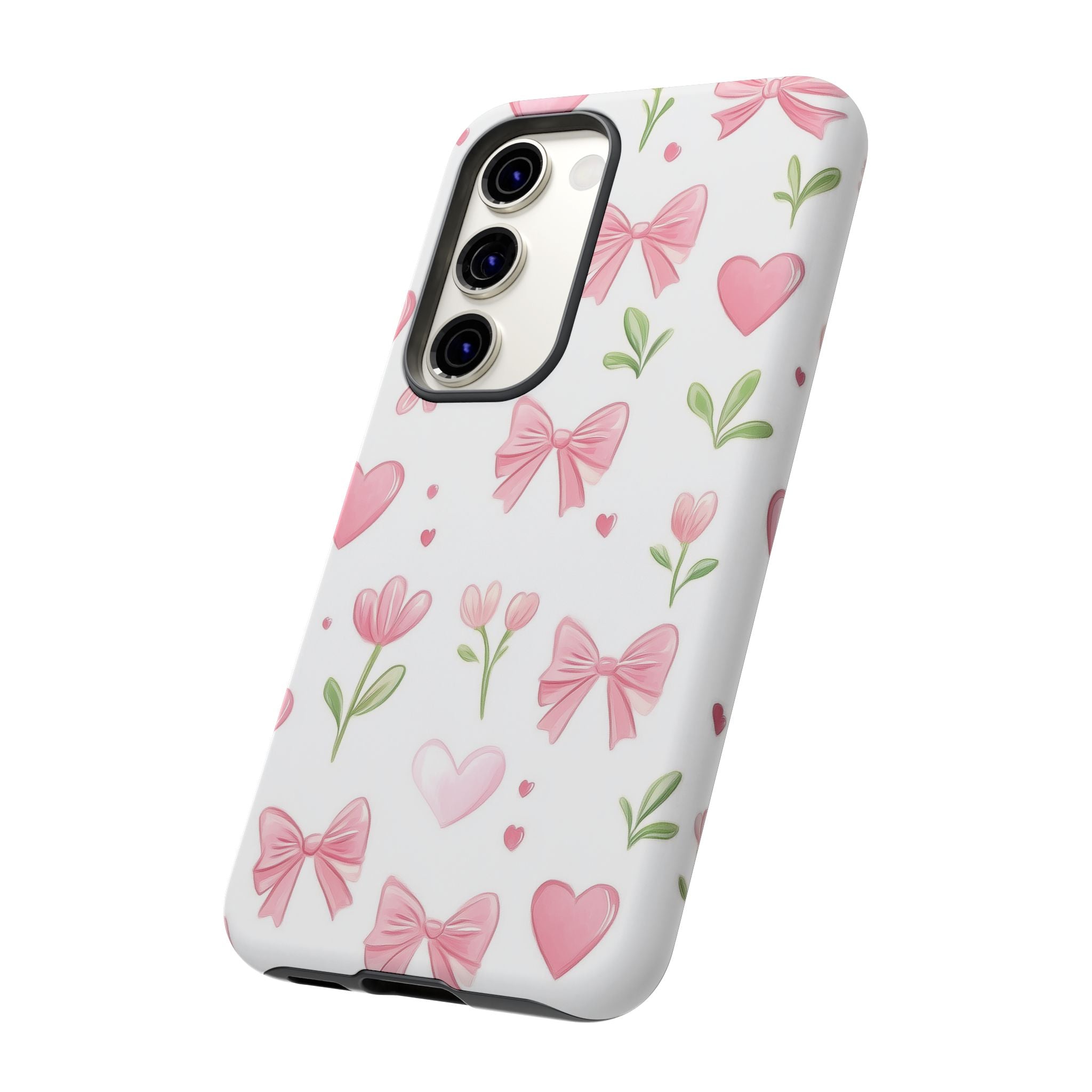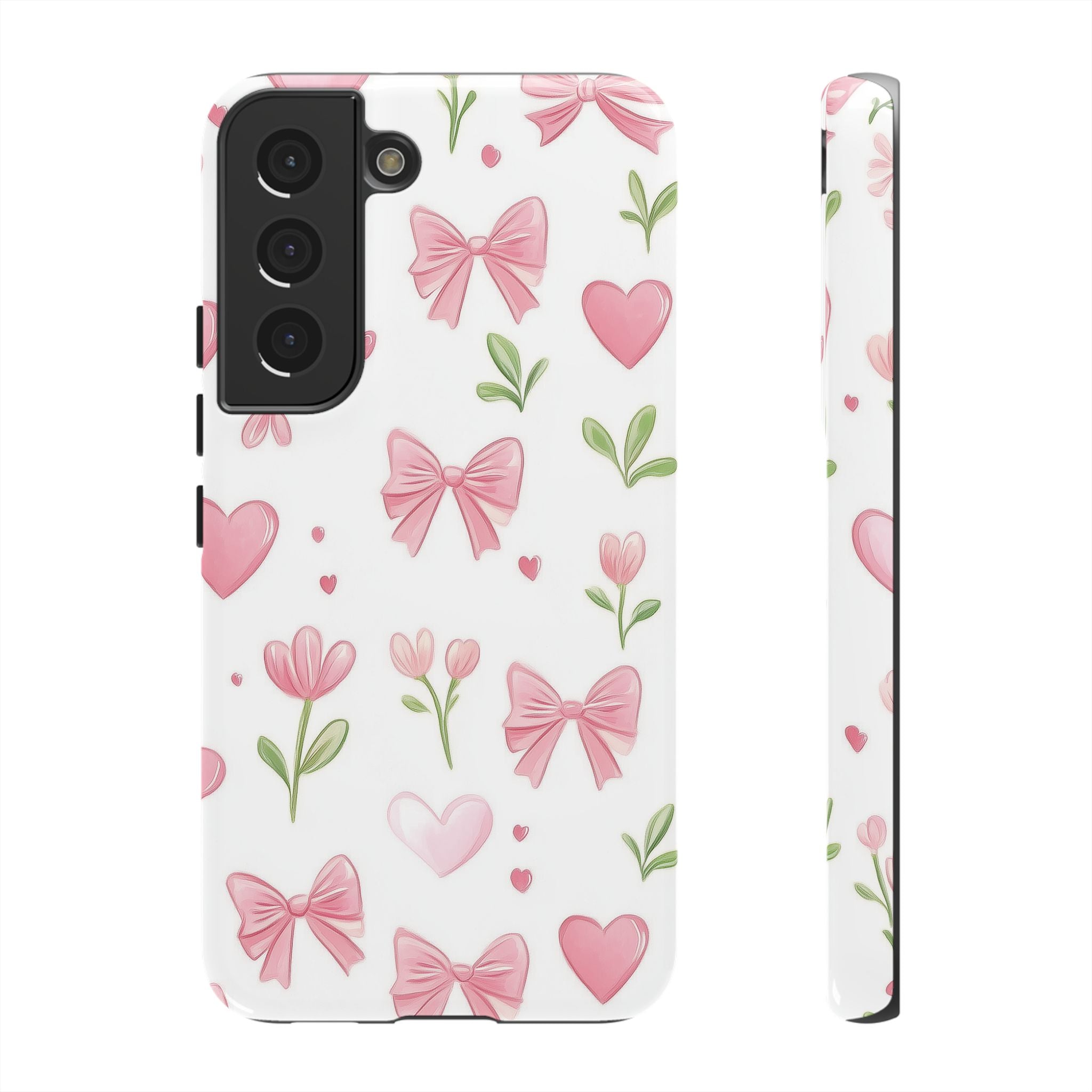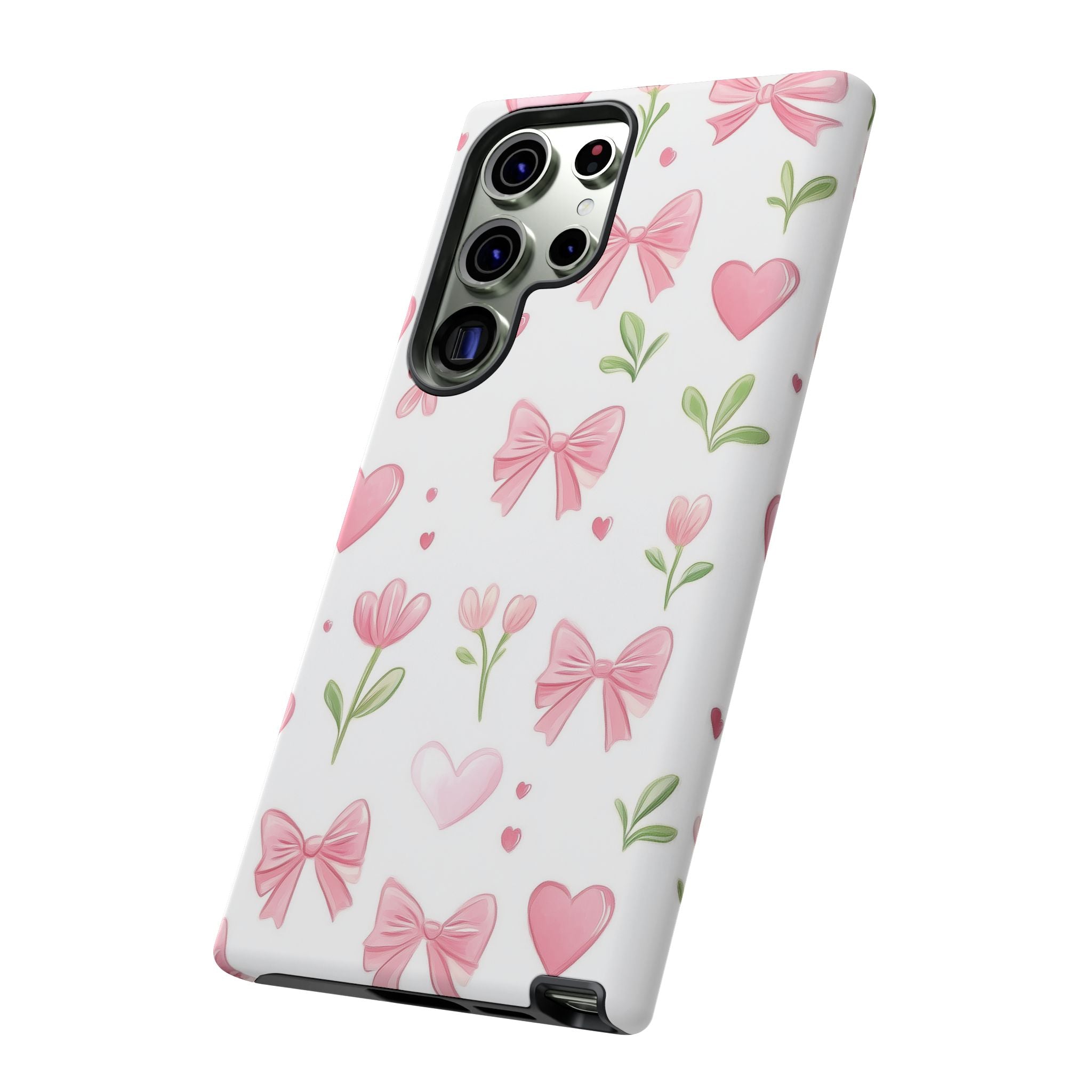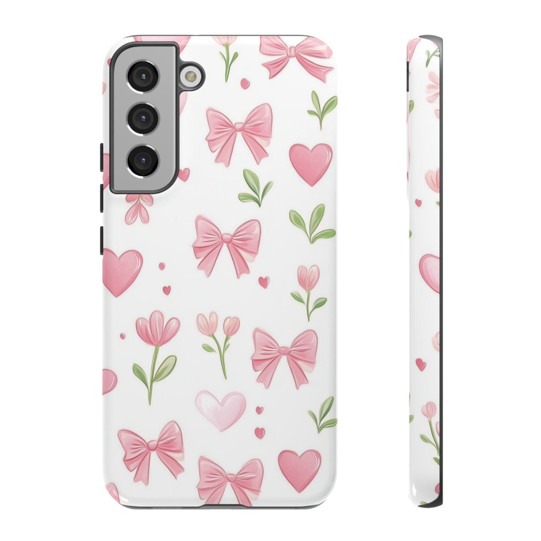 A dreamy, ribbon-strewn accent for your everyday — soft pink bows, tiny hearts and hand-drawn blooms float across a clean... Read more