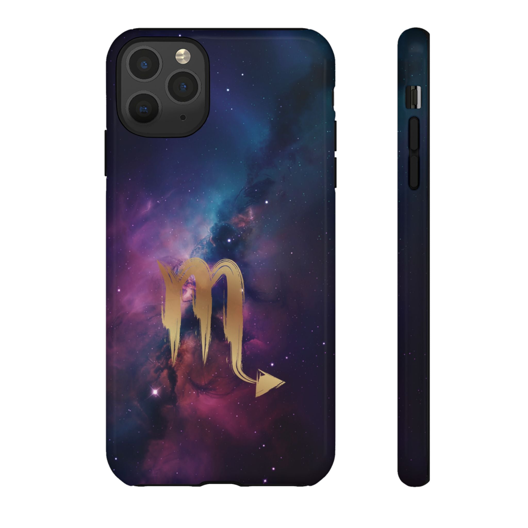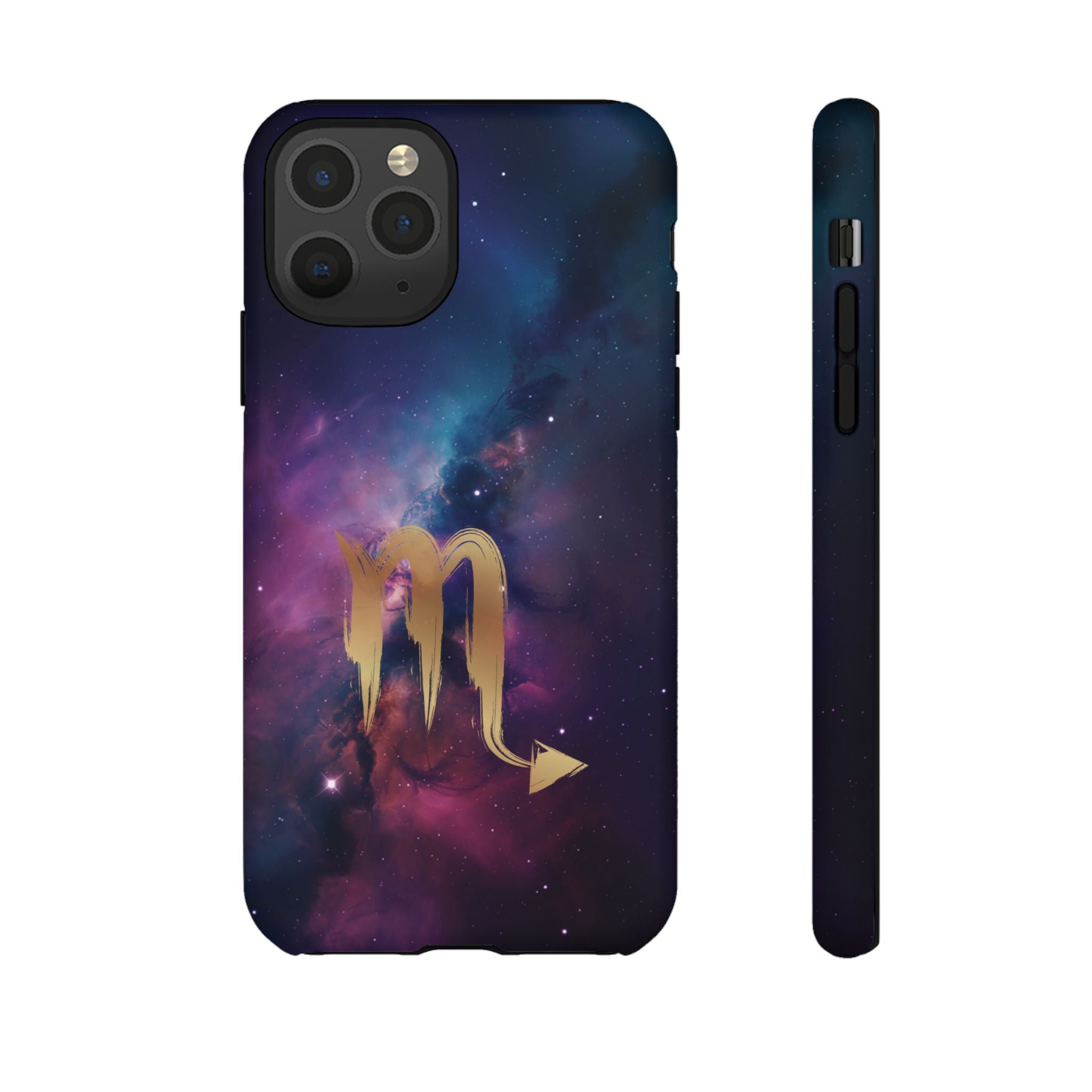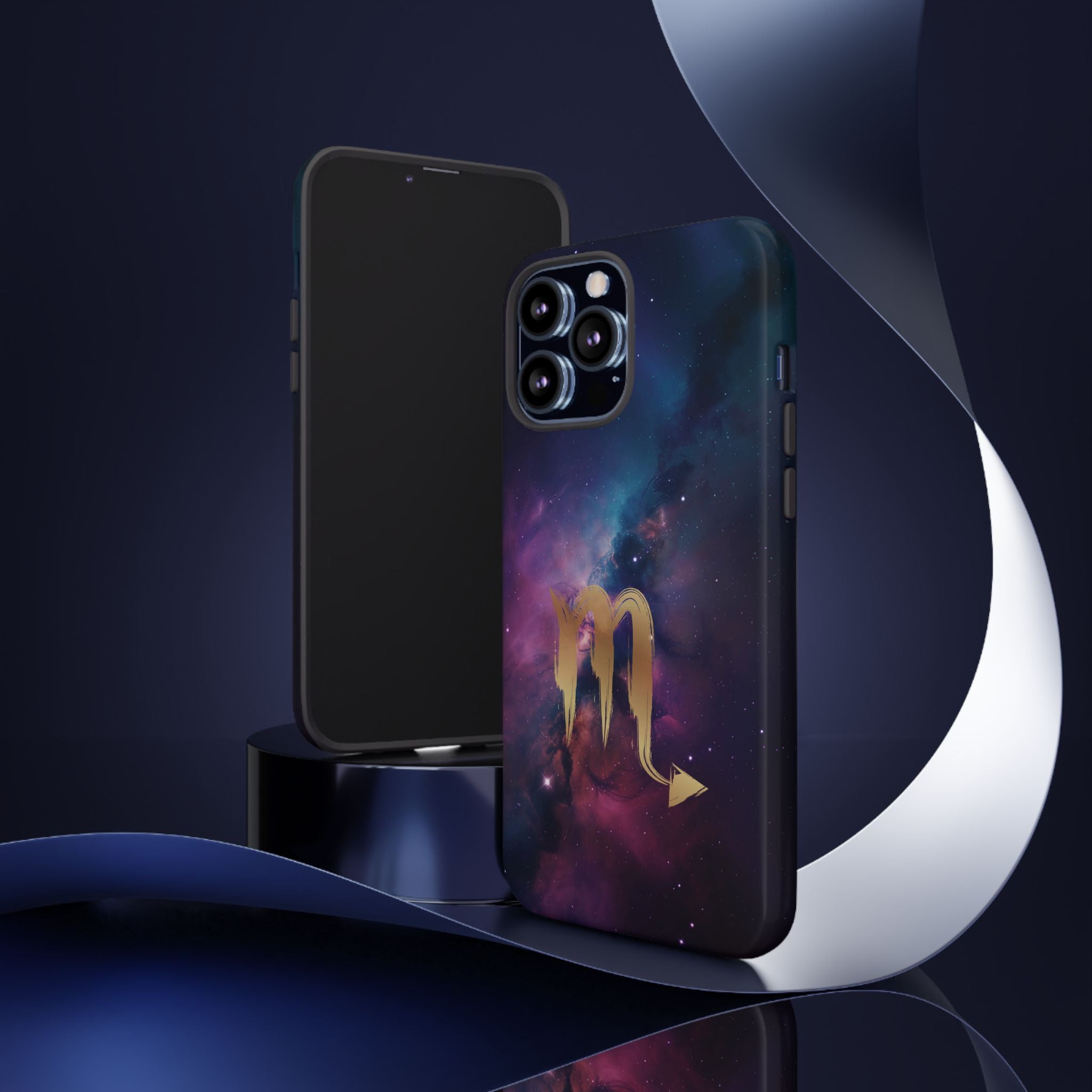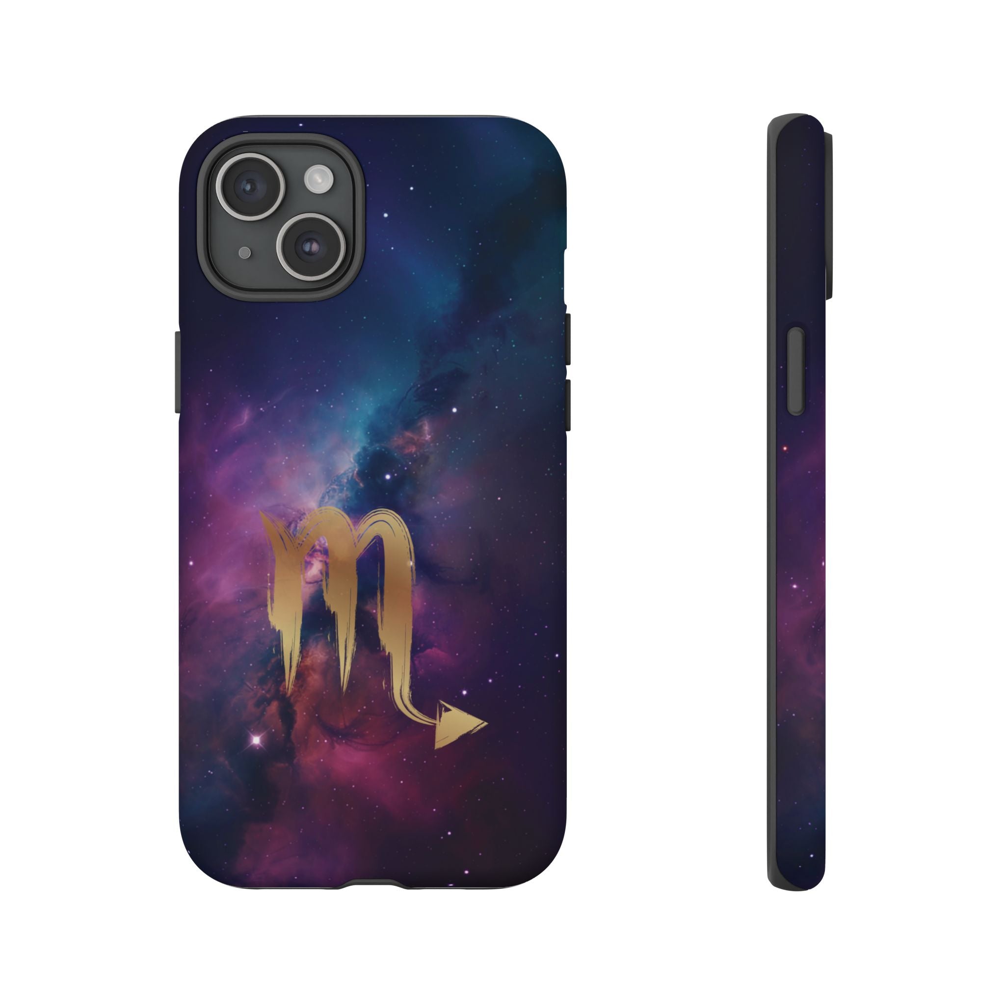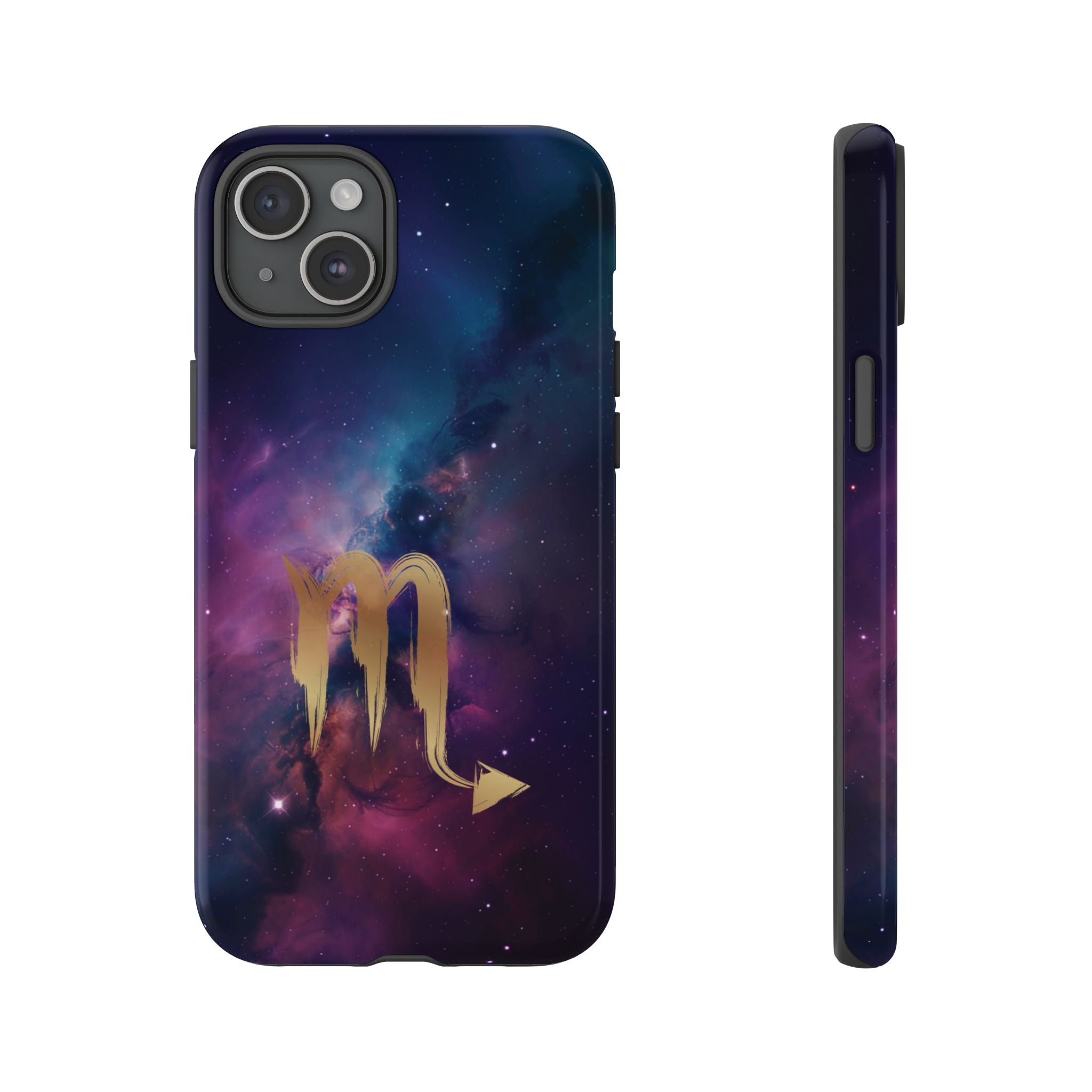 Carry the cosmos in your pocket — a midnight nebula of deep purples and teal with a brushed-gold scorpion glyph... Read more