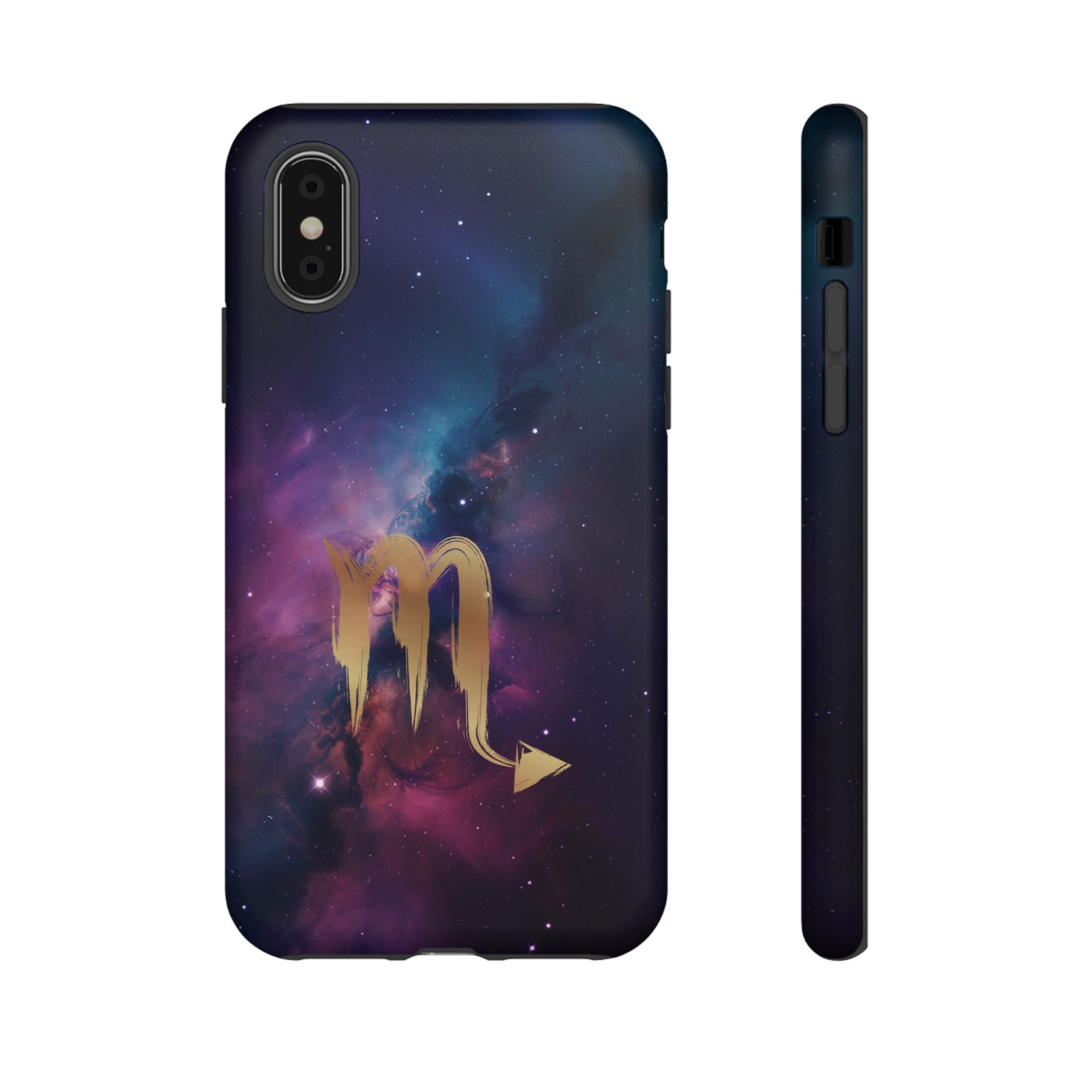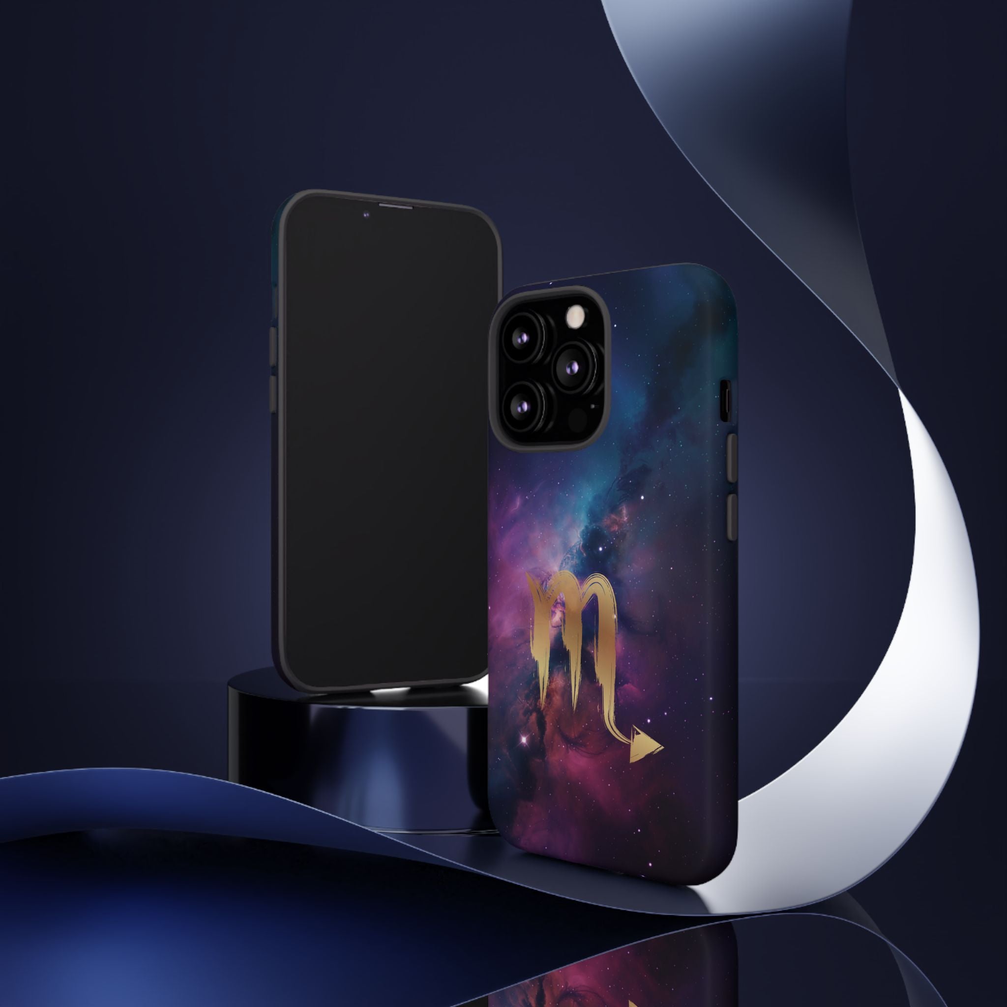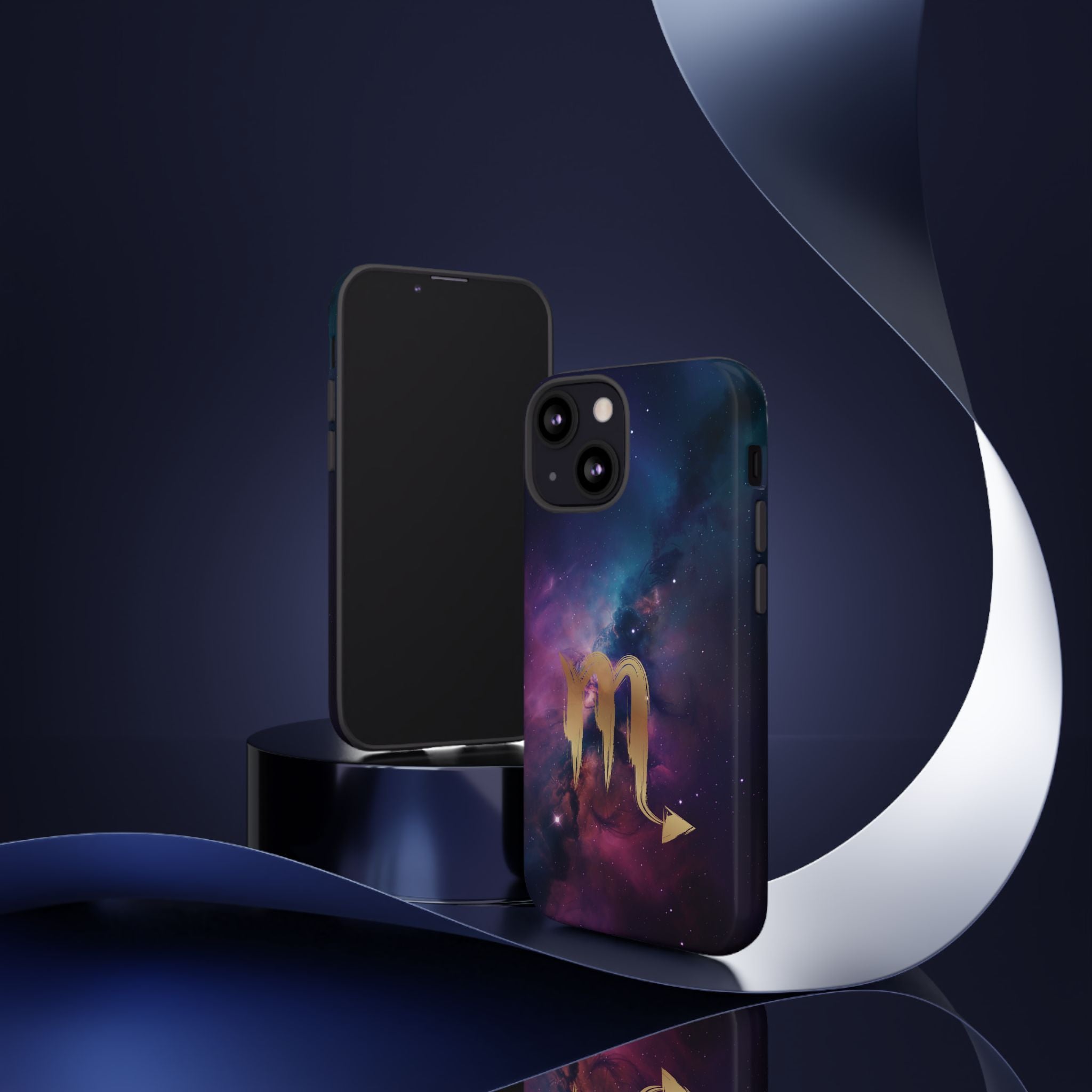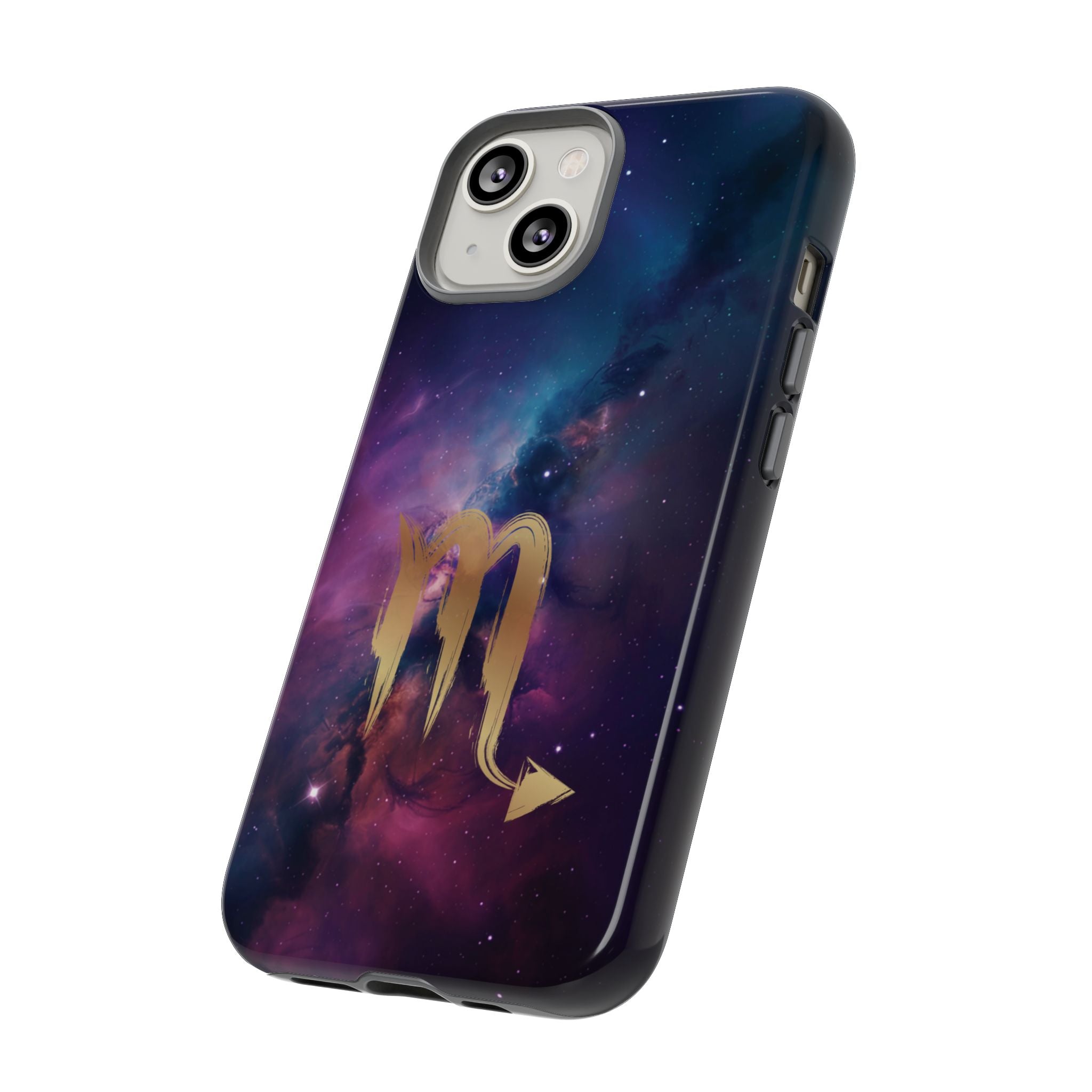 Carry the cosmos in your pocket — a midnight nebula of deep purples and teal with a brushed-gold scorpion glyph... Read more