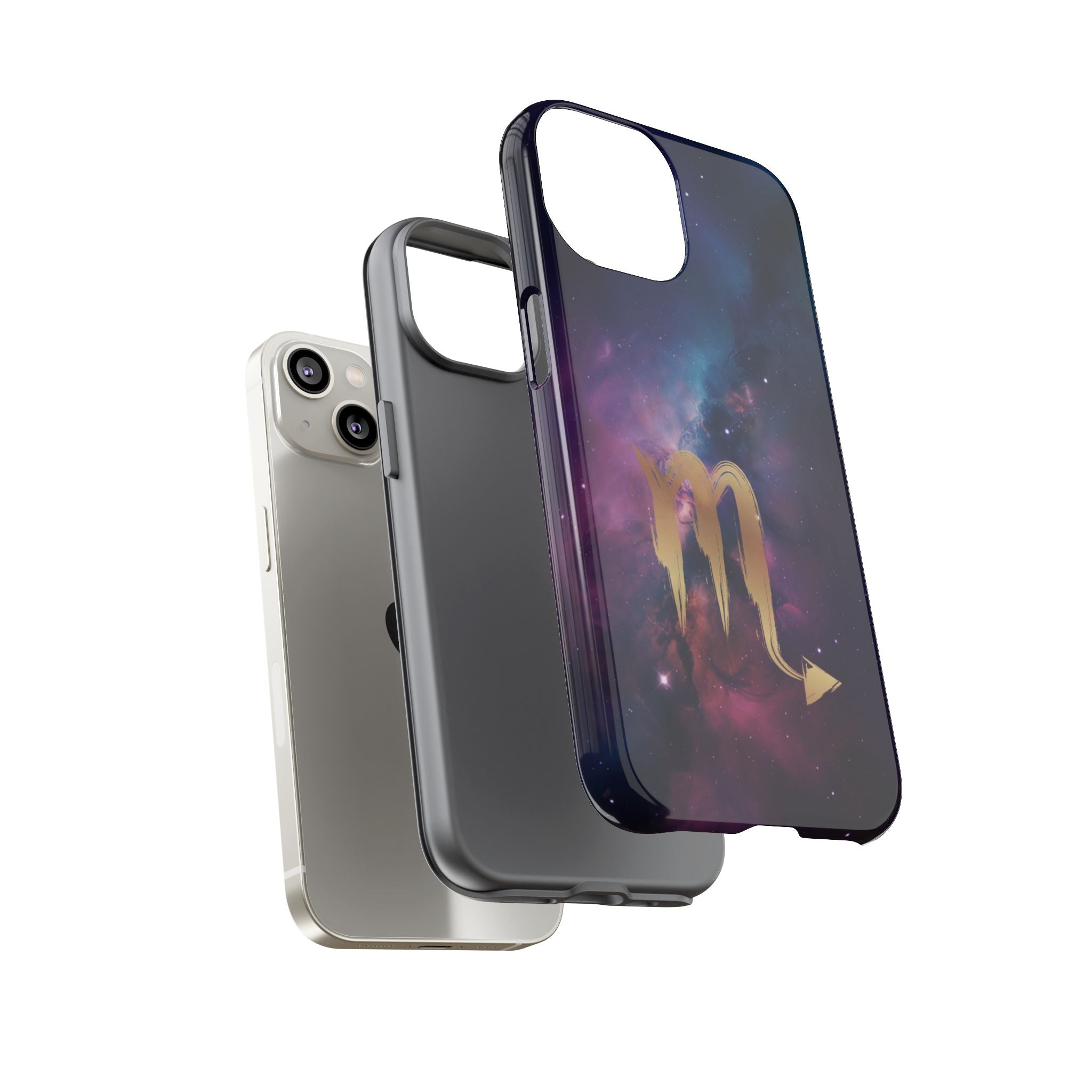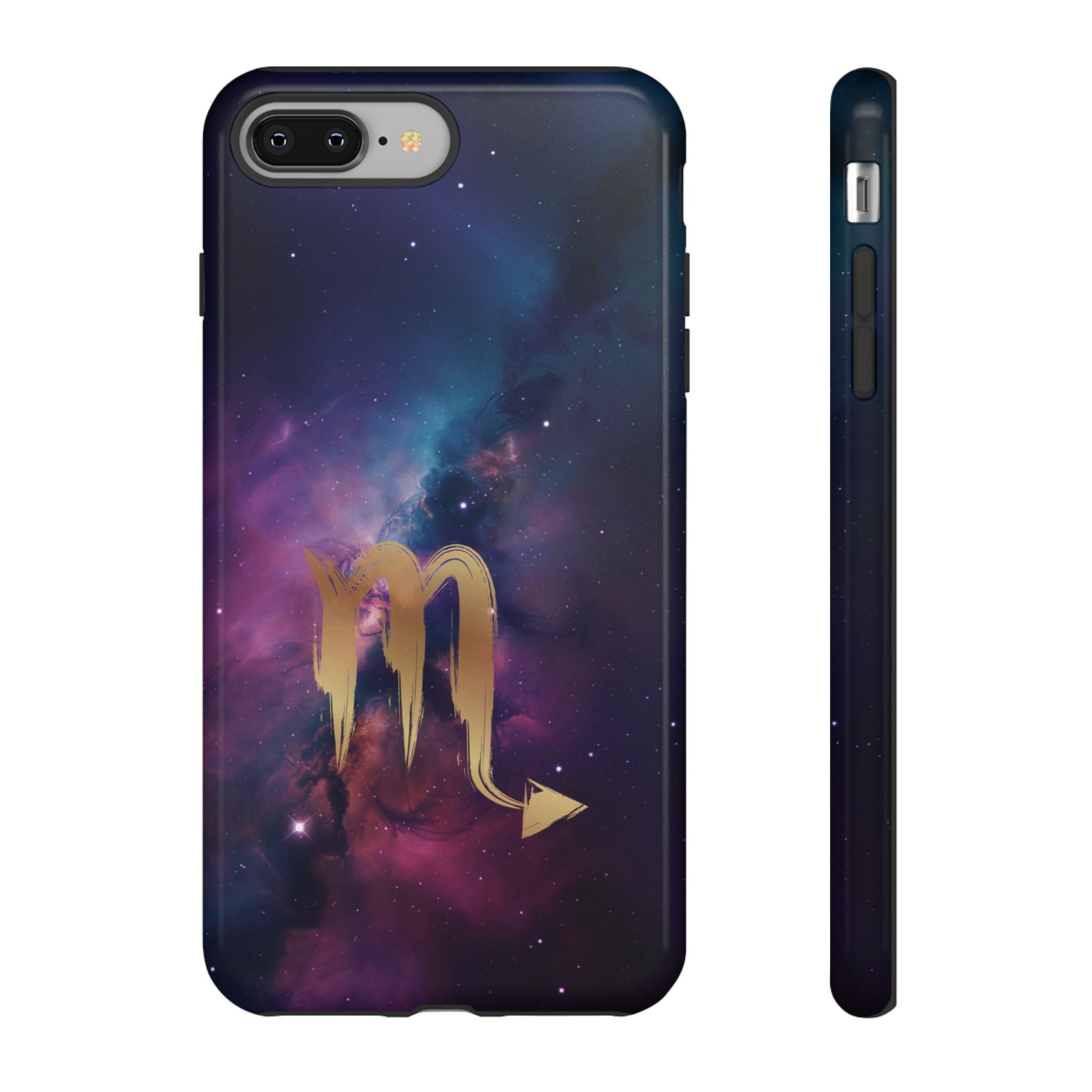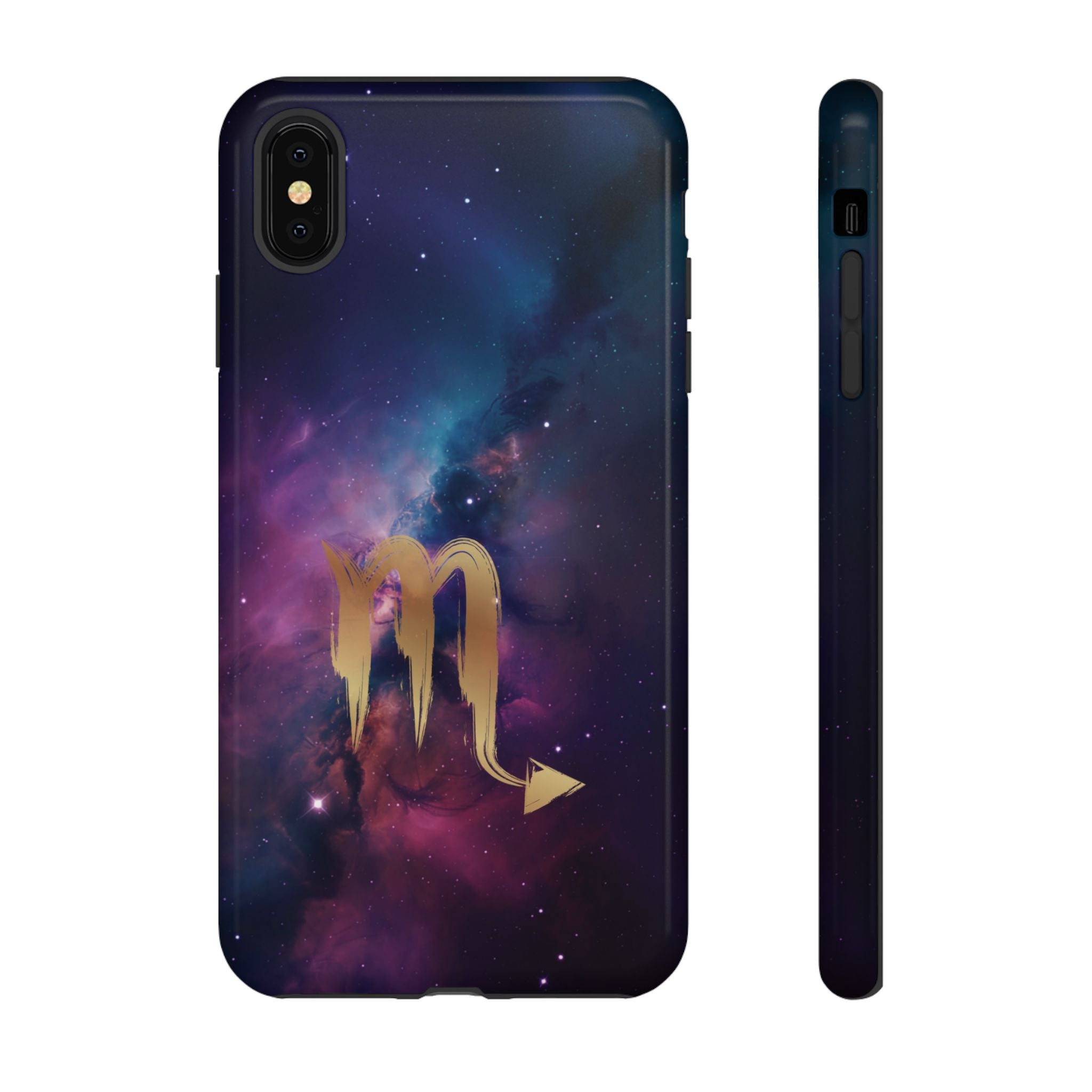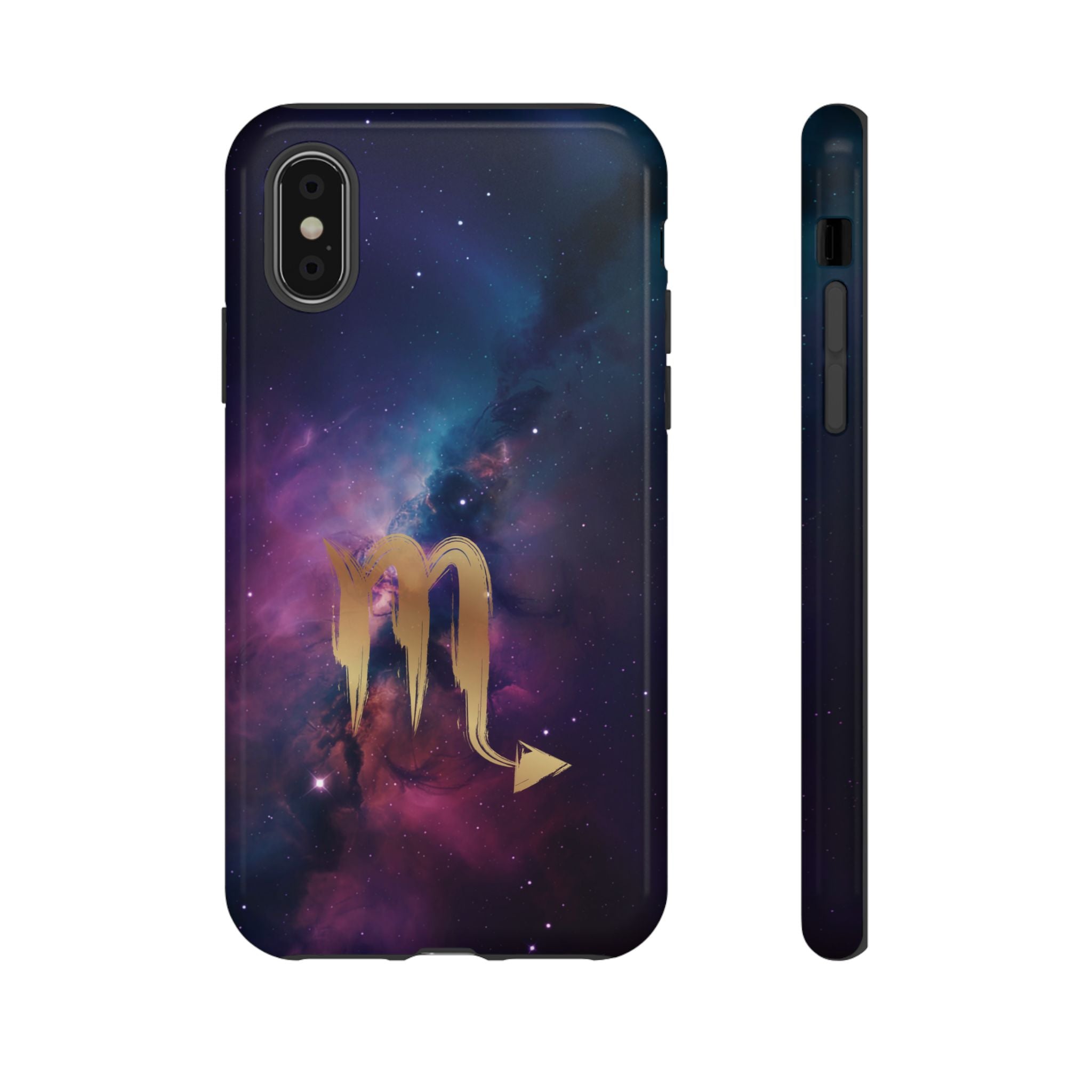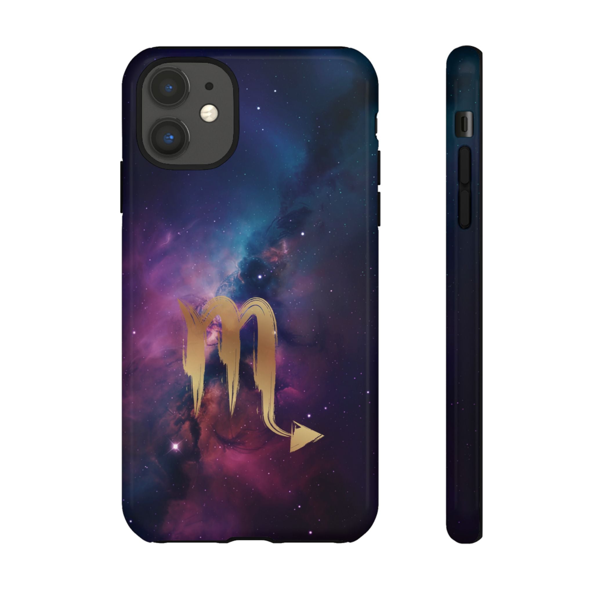 Carry the cosmos in your pocket — a midnight nebula of deep purples and teal with a brushed-gold scorpion glyph... Read more