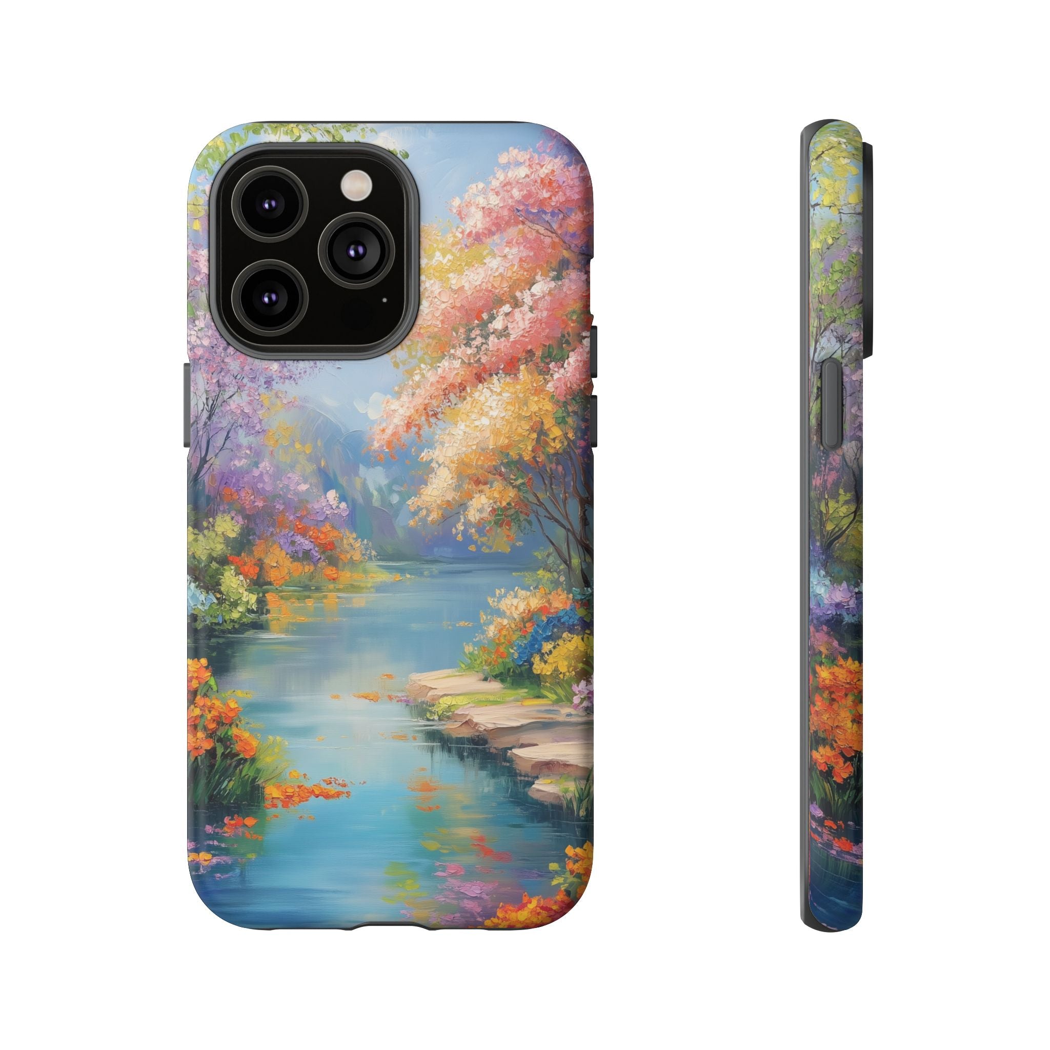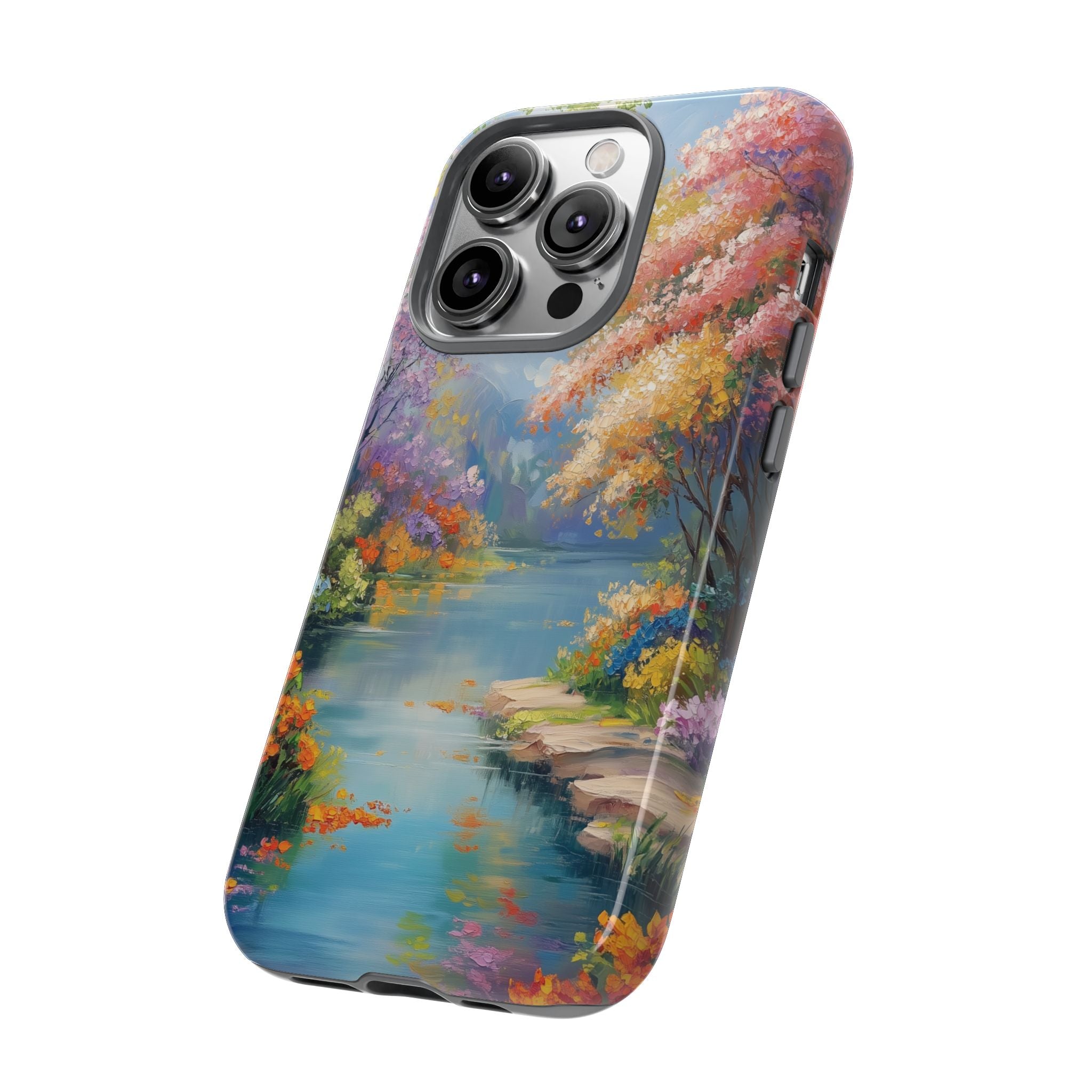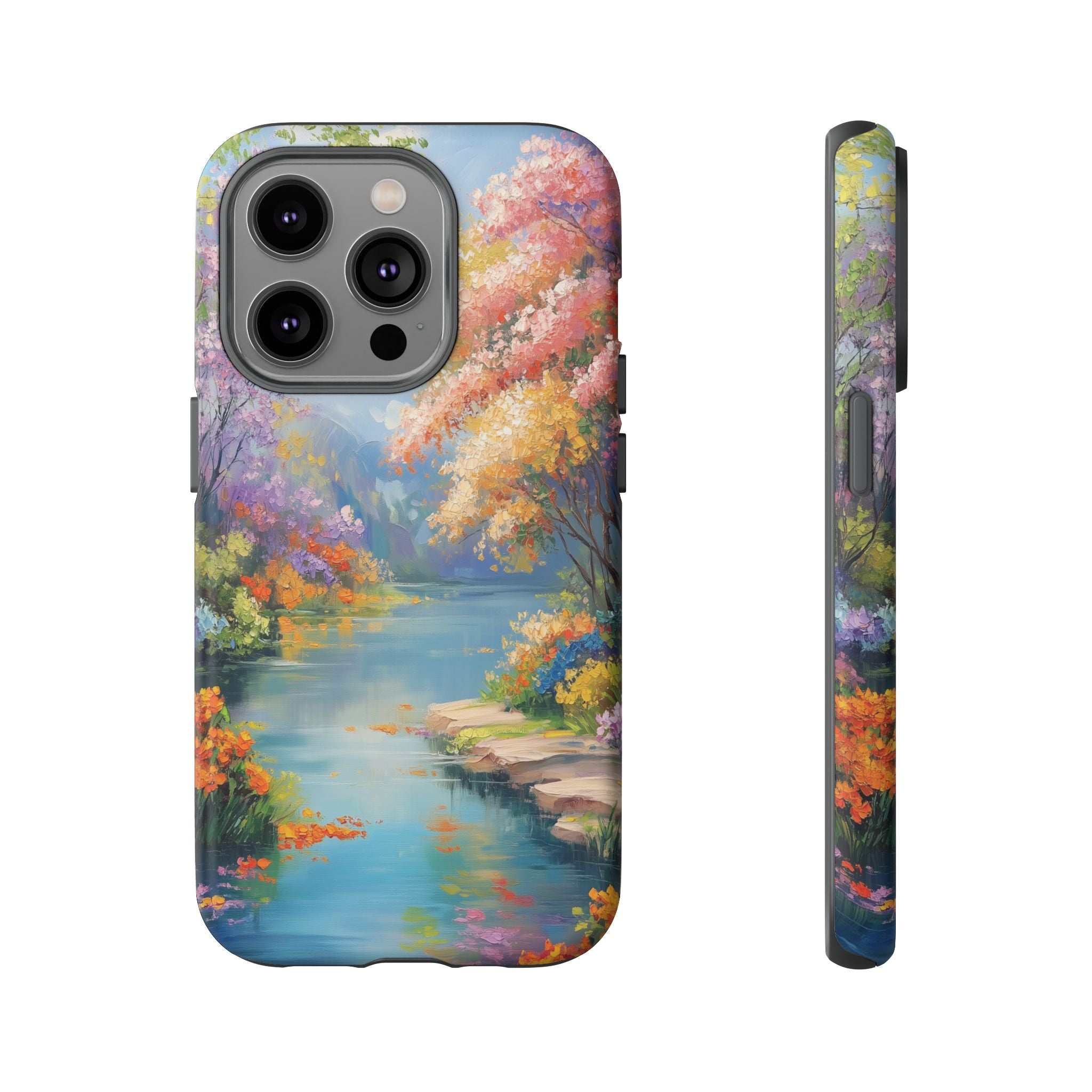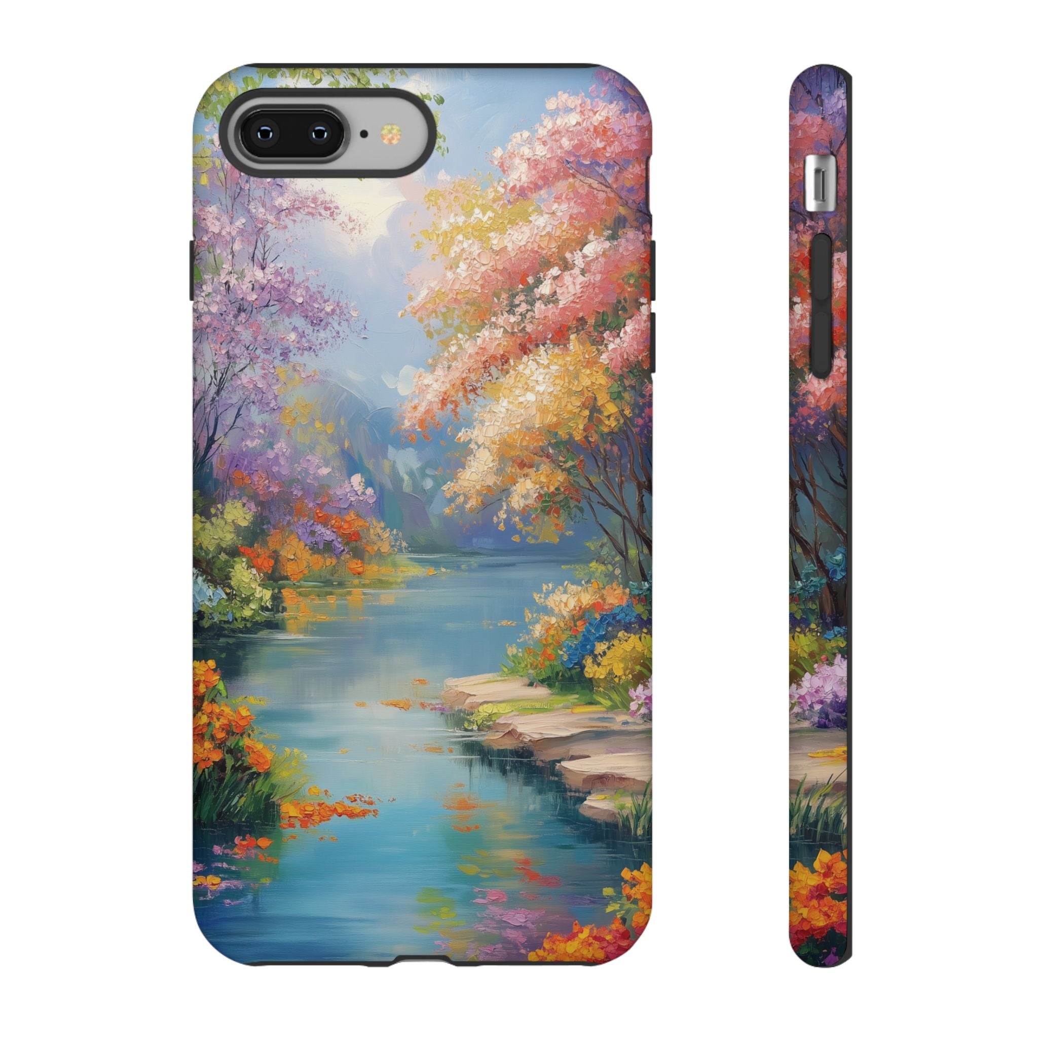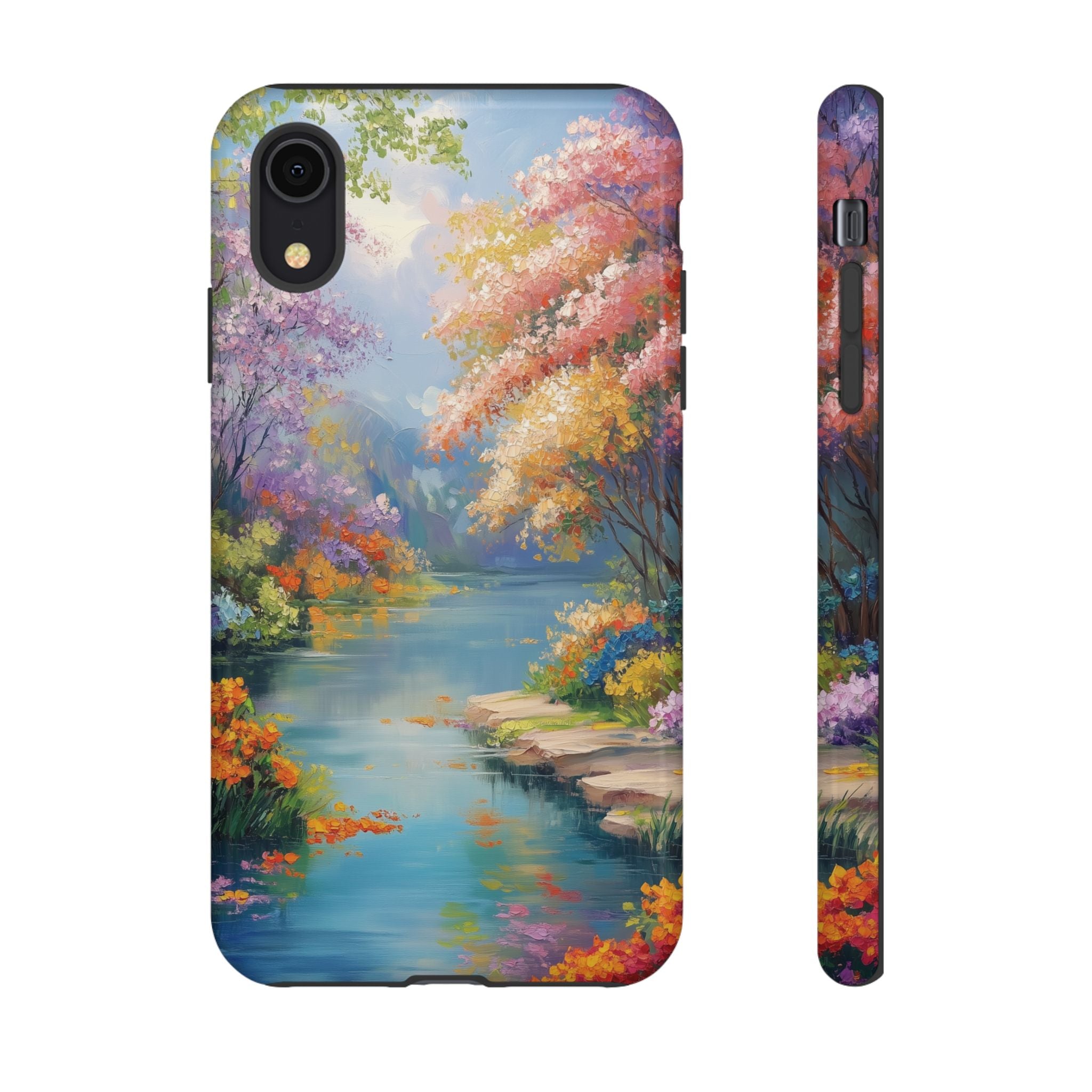 Carry a quiet lakeside with you — a painterly scene of blooming trees and glassy water rendered in soft pastels... Read more