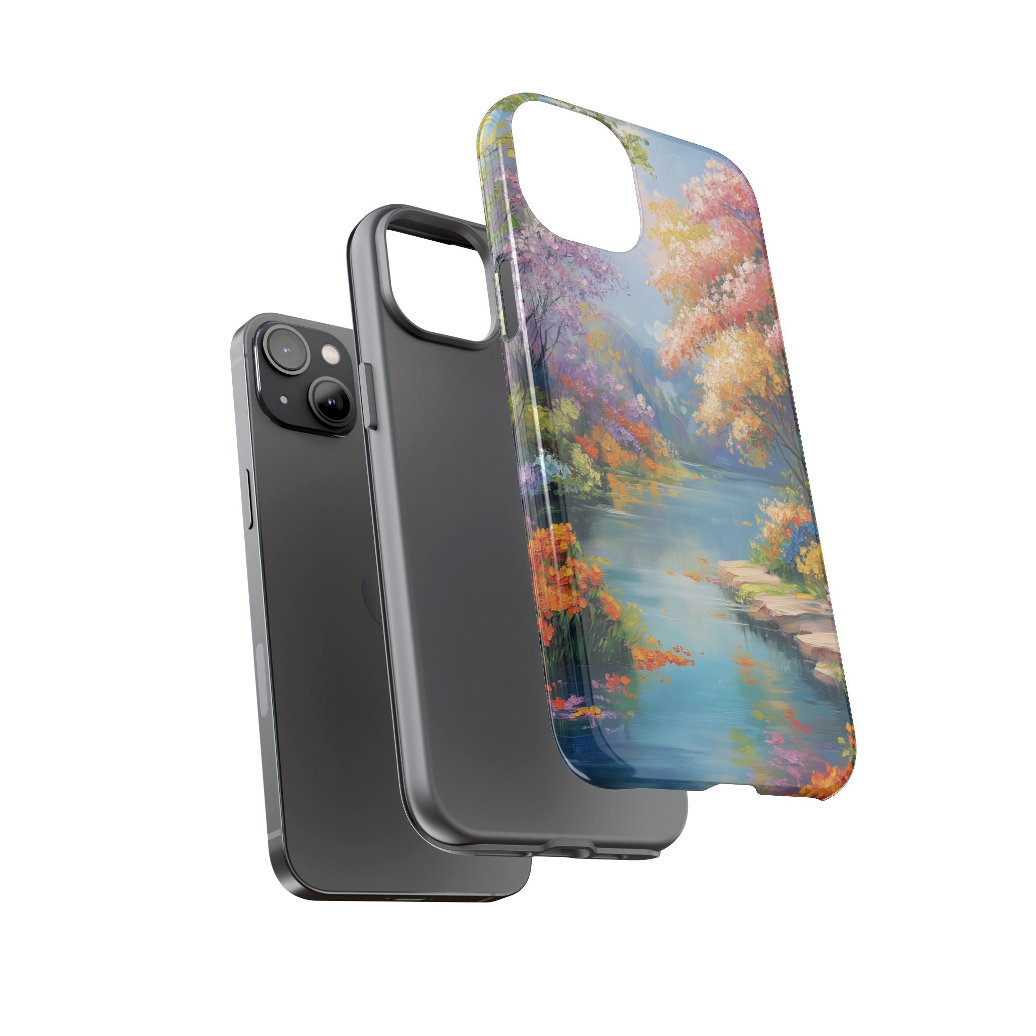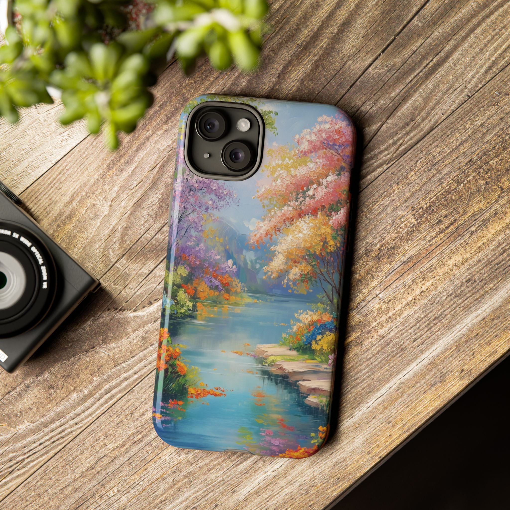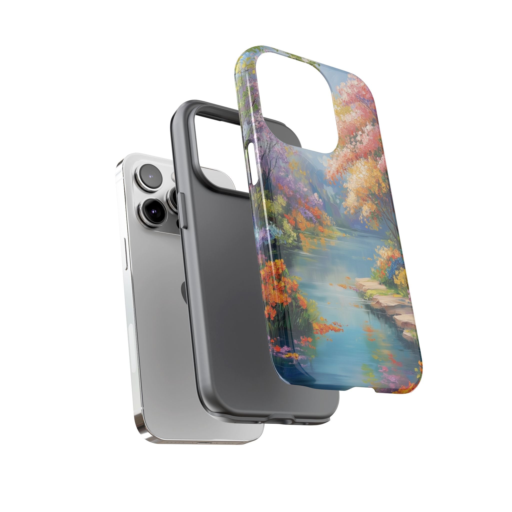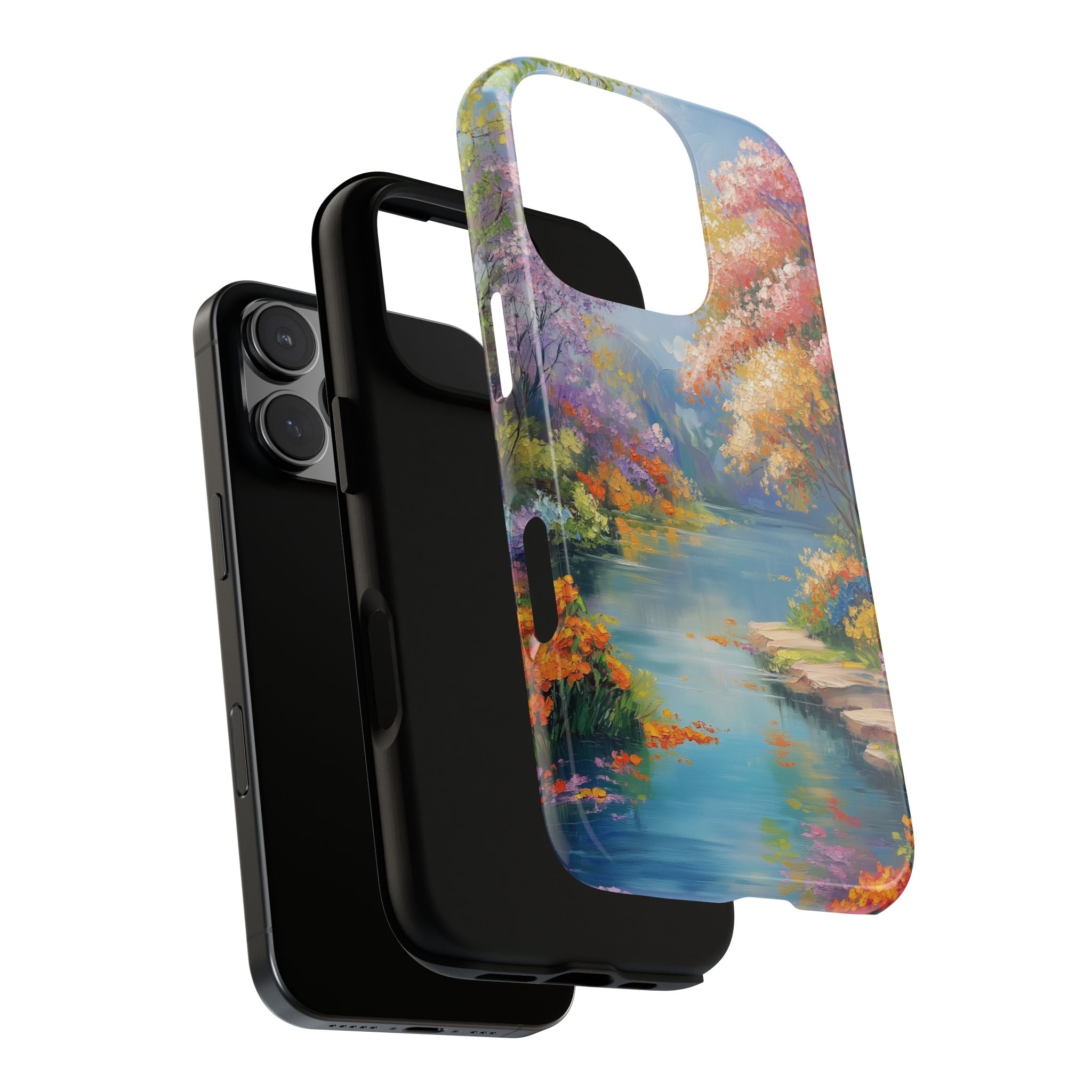 Carry a quiet lakeside with you — a painterly scene of blooming trees and glassy water rendered in soft pastels... Read more