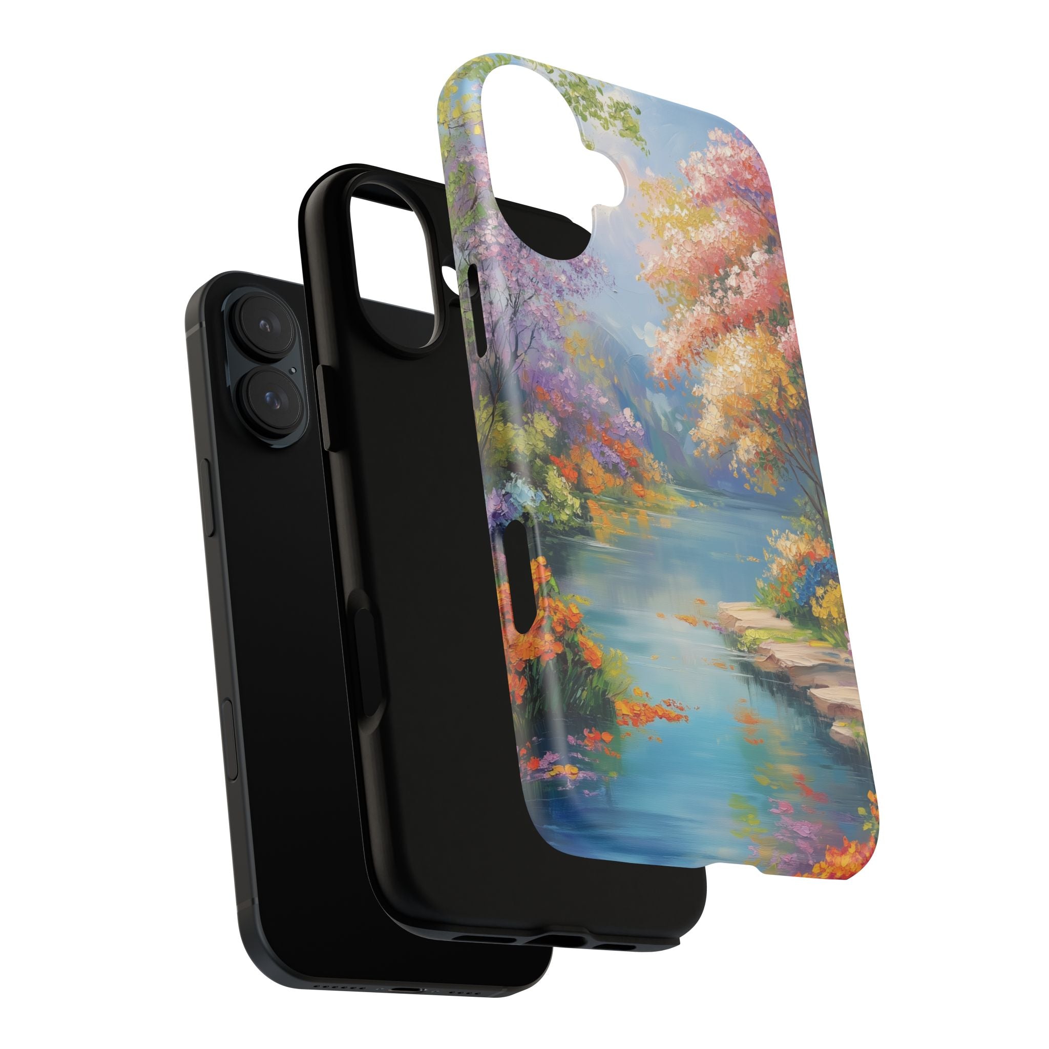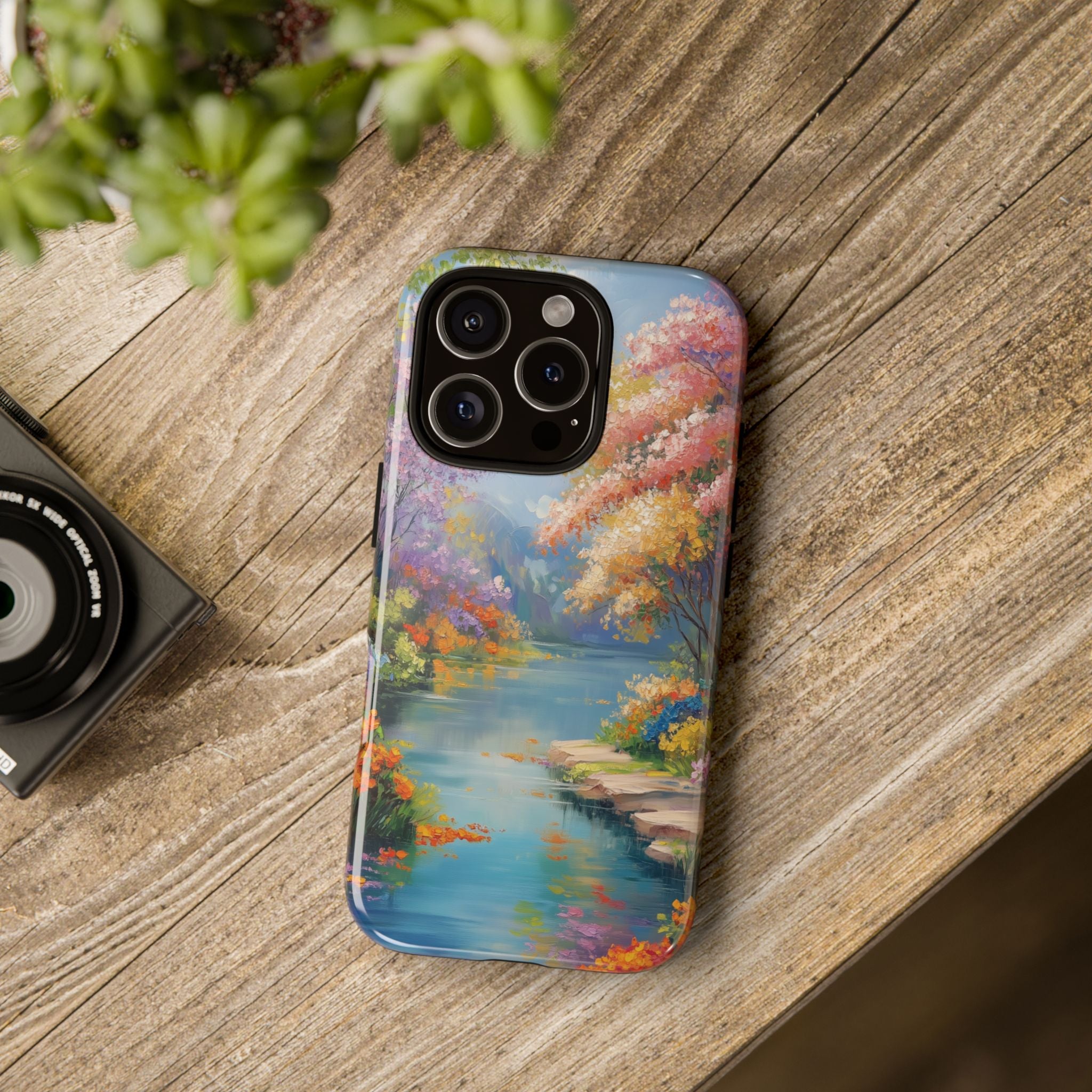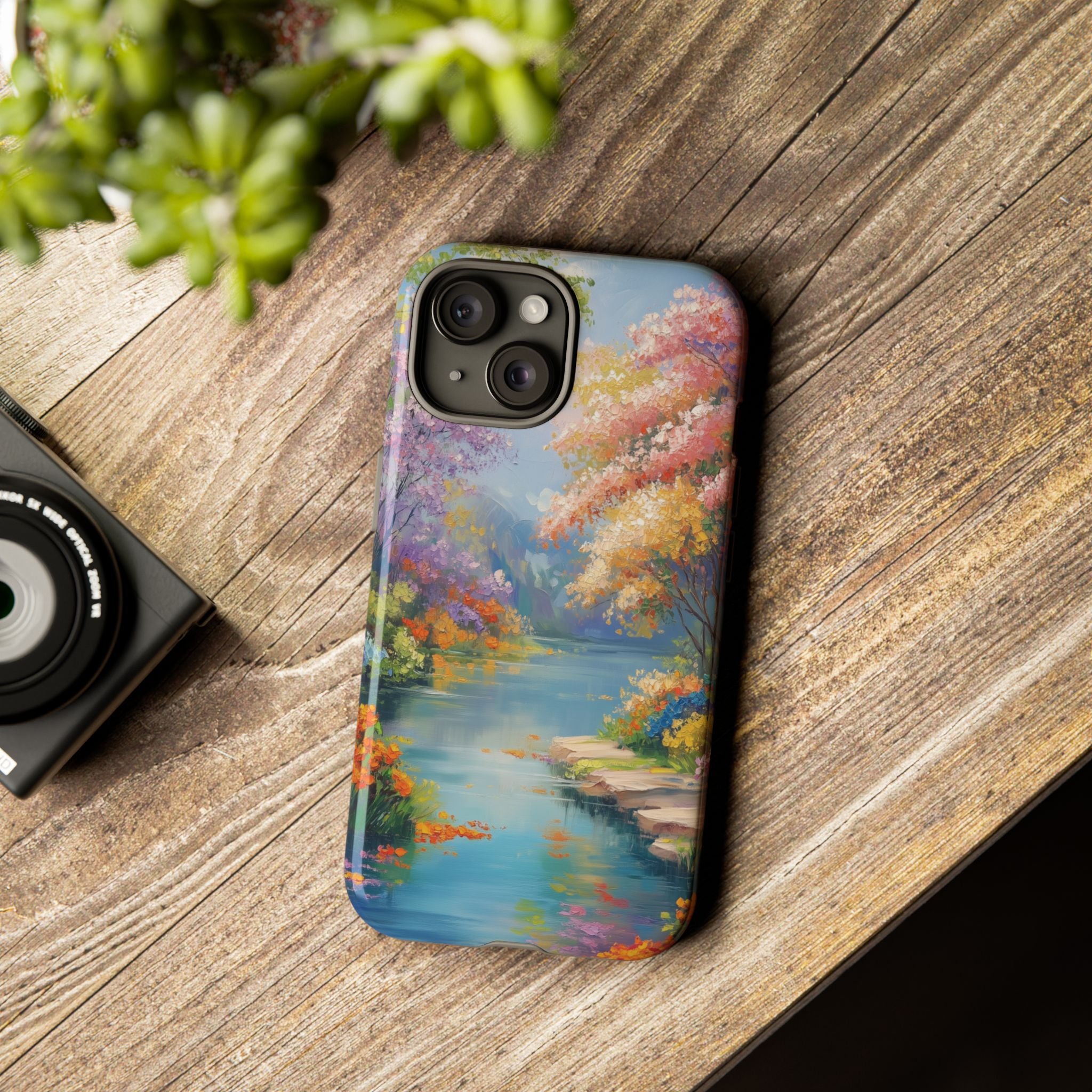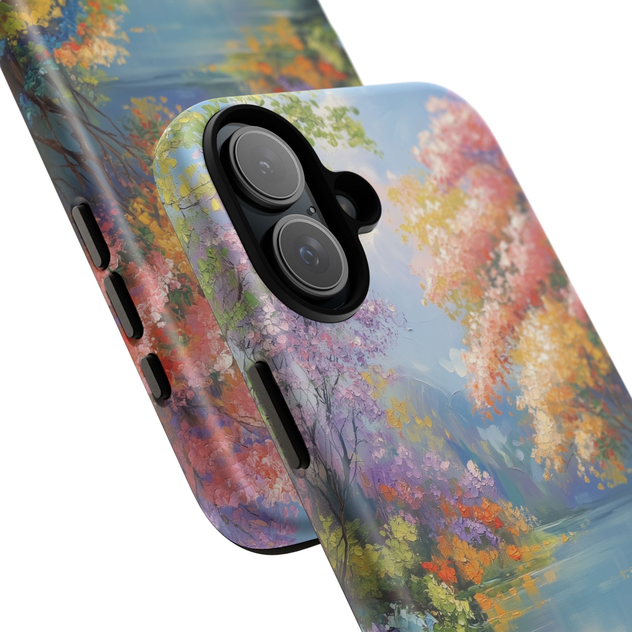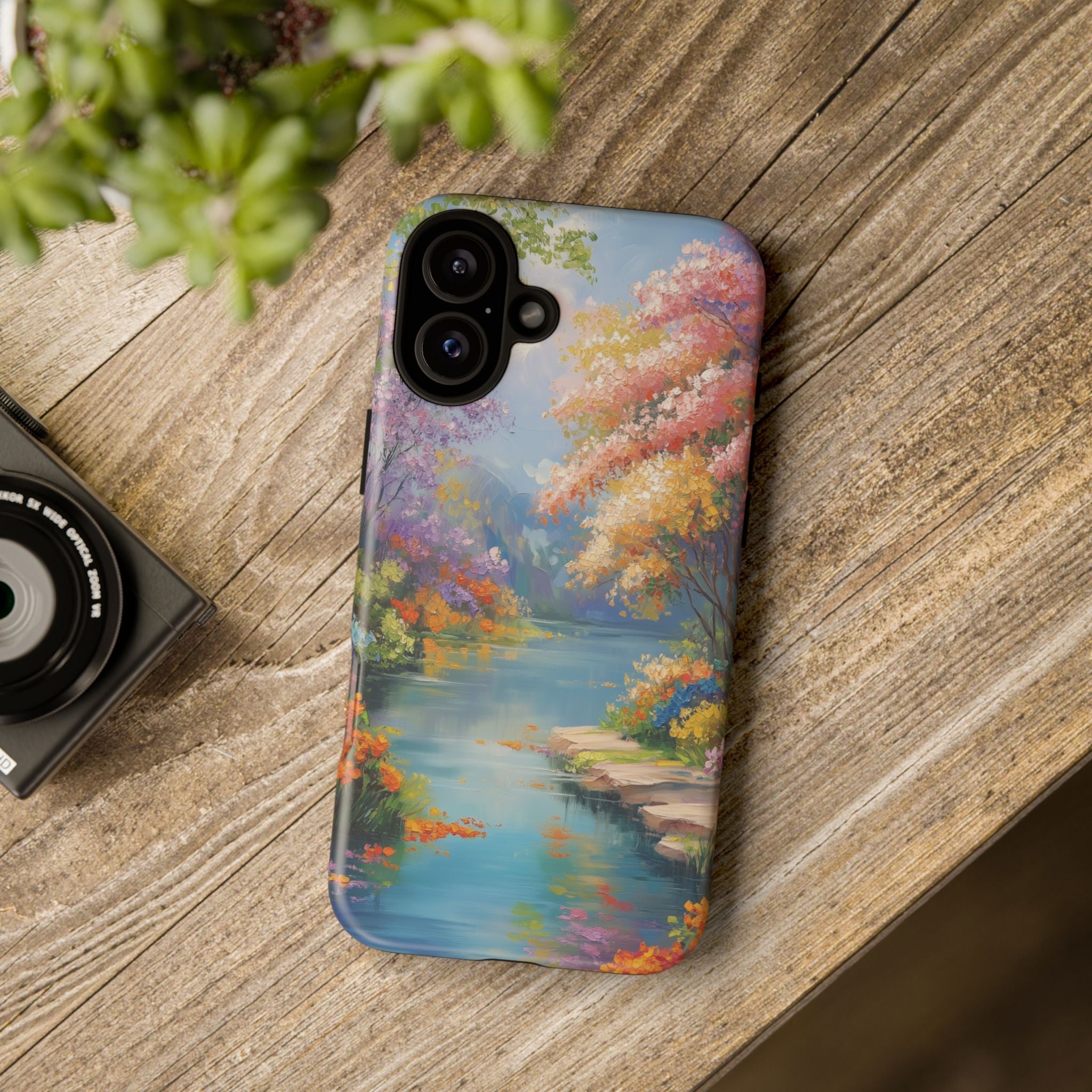 Carry a quiet lakeside with you — a painterly scene of blooming trees and glassy water rendered in soft pastels... Read more