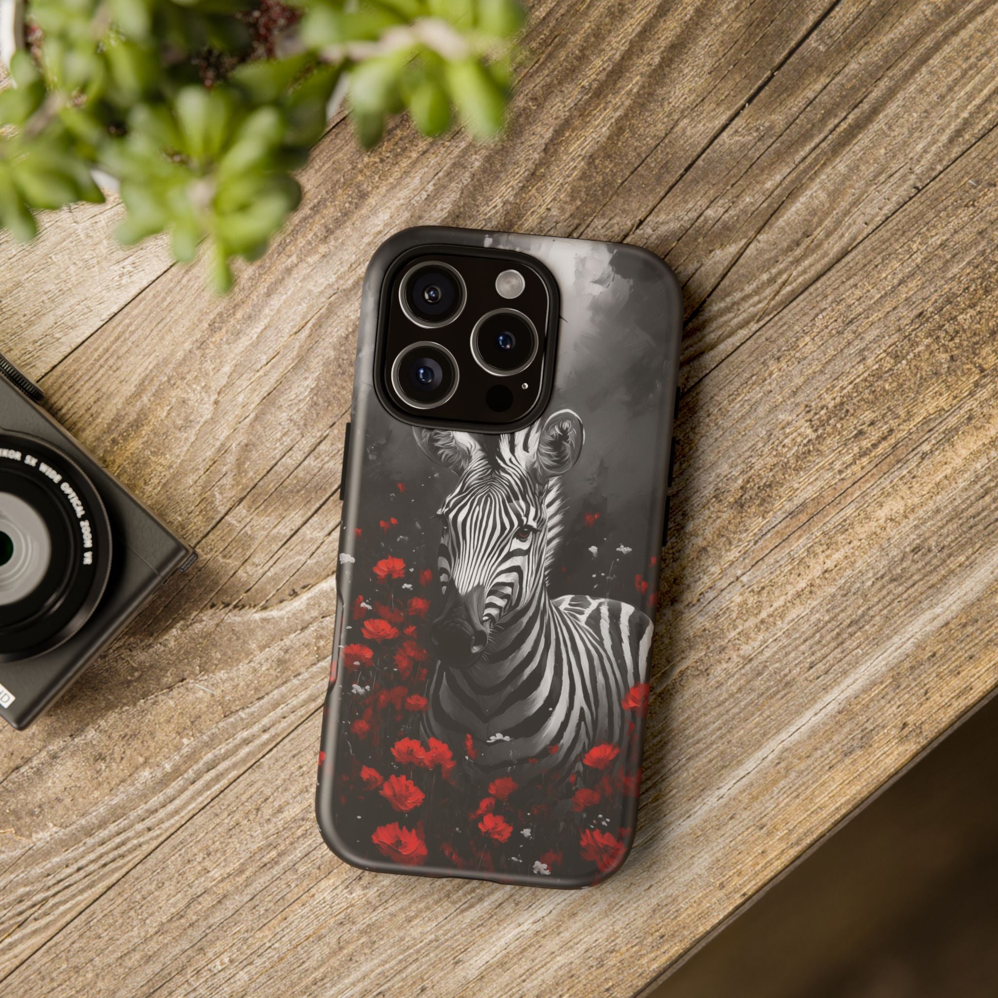 Moody and magnetic — a monochrome zebra rising through a field of scarlet poppies, designed to make your everyday carry... Read more